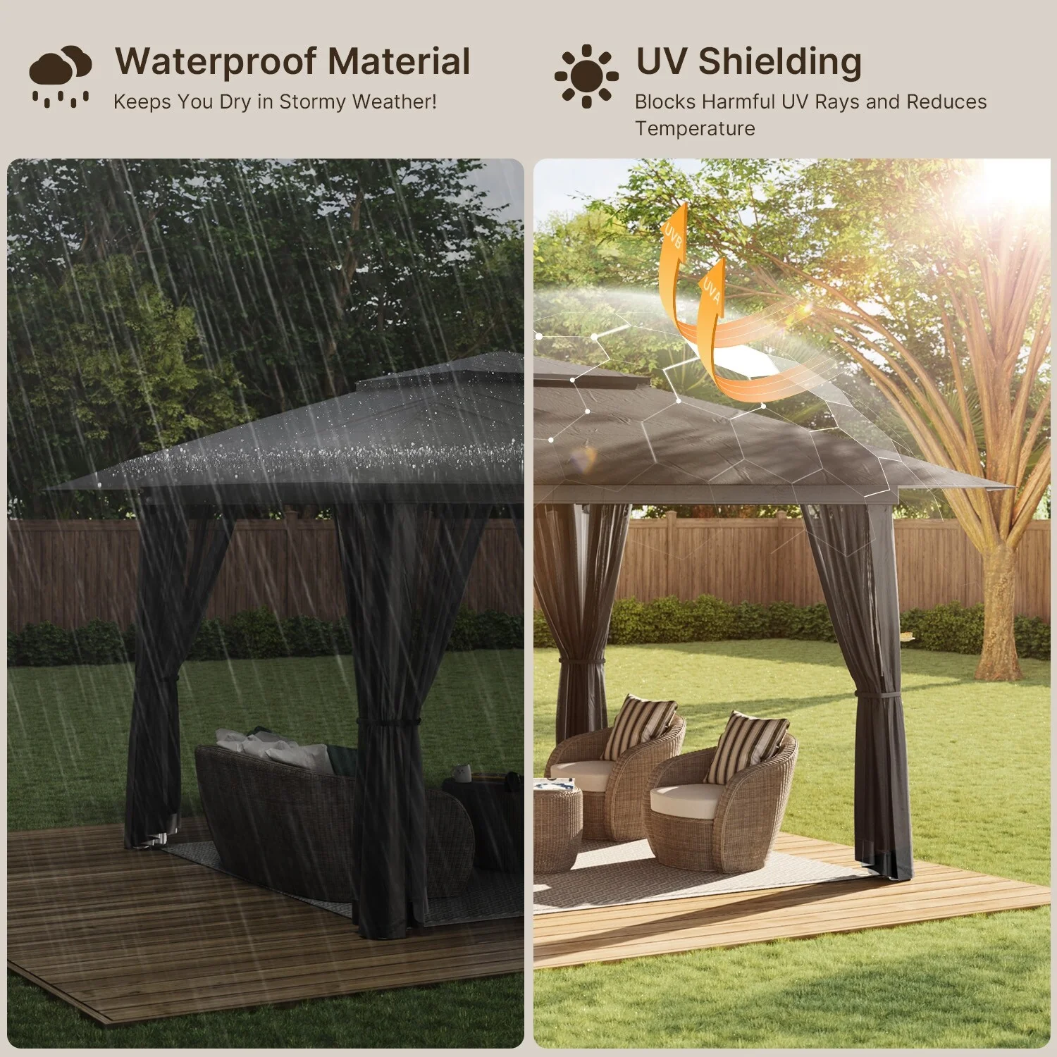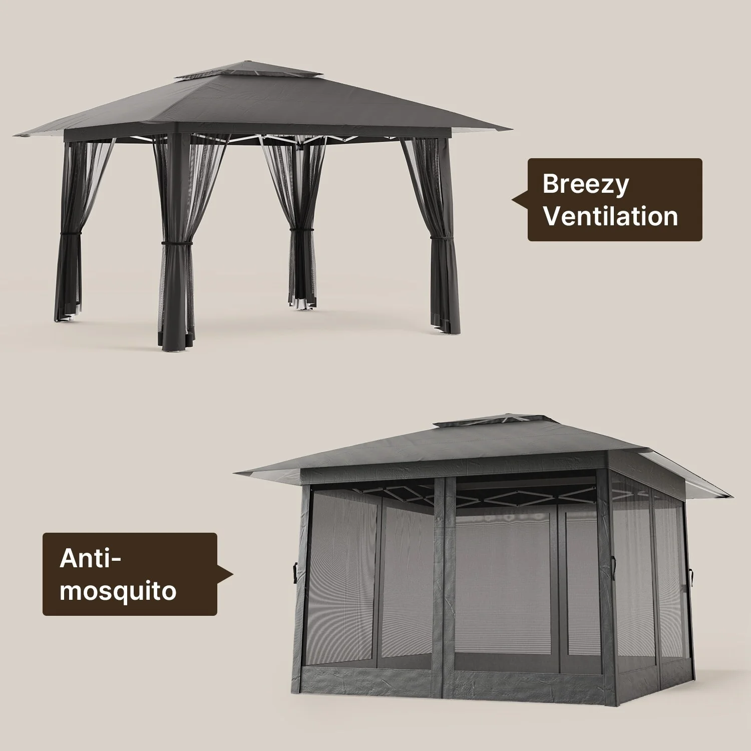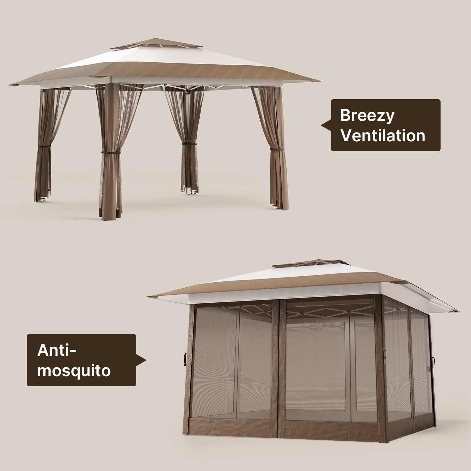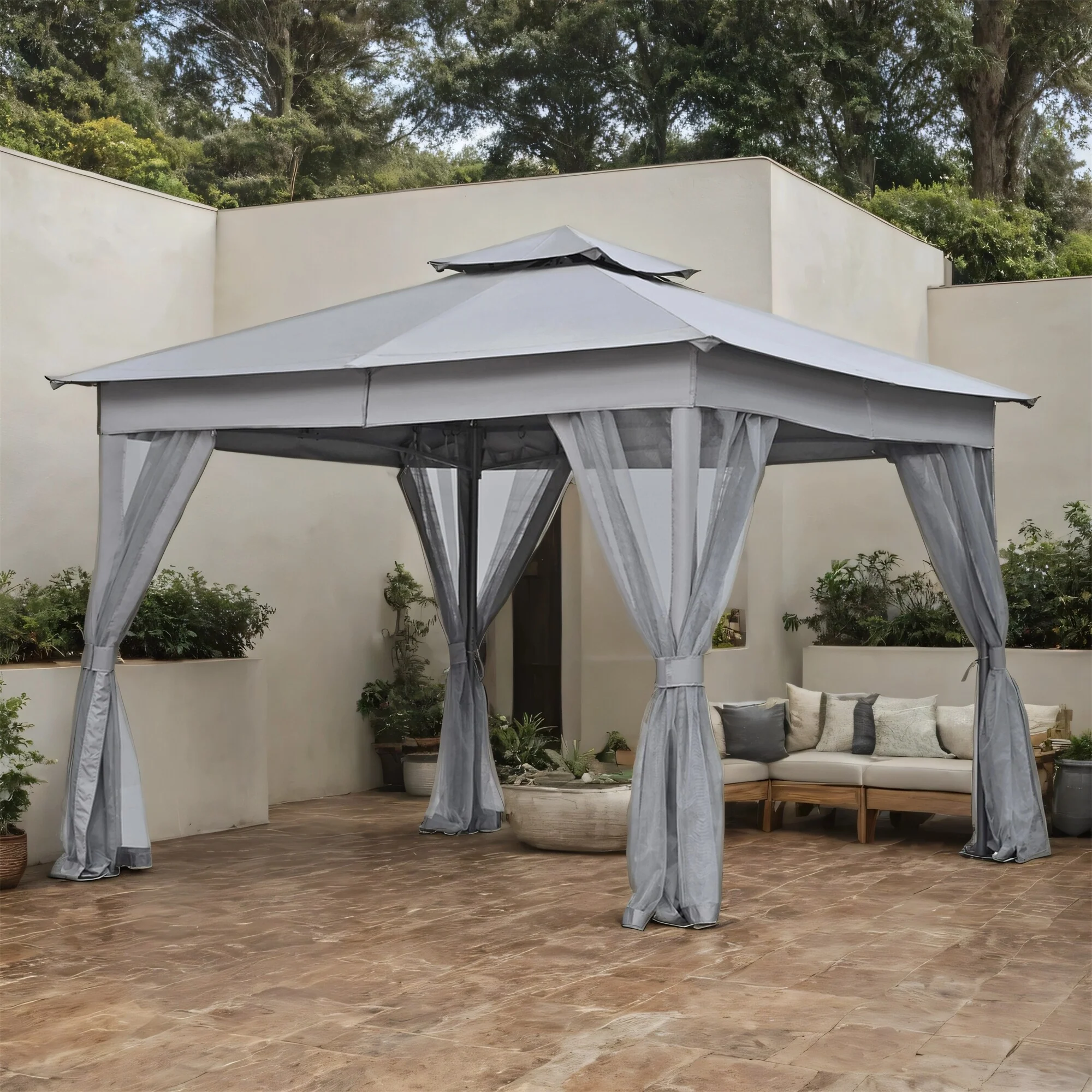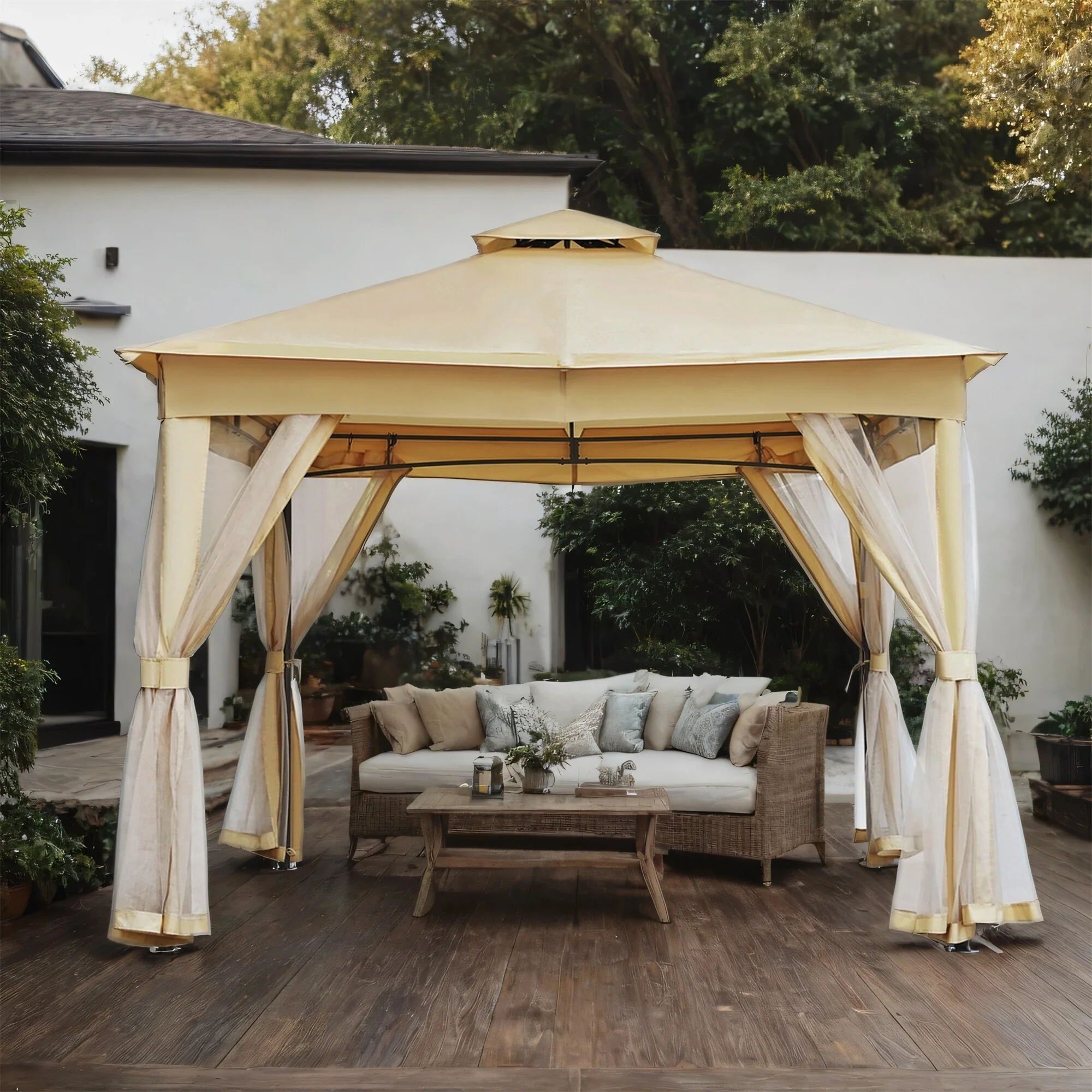 Patio Gazebo Tent with Double Roofs and Mosquito Netting for Backyard