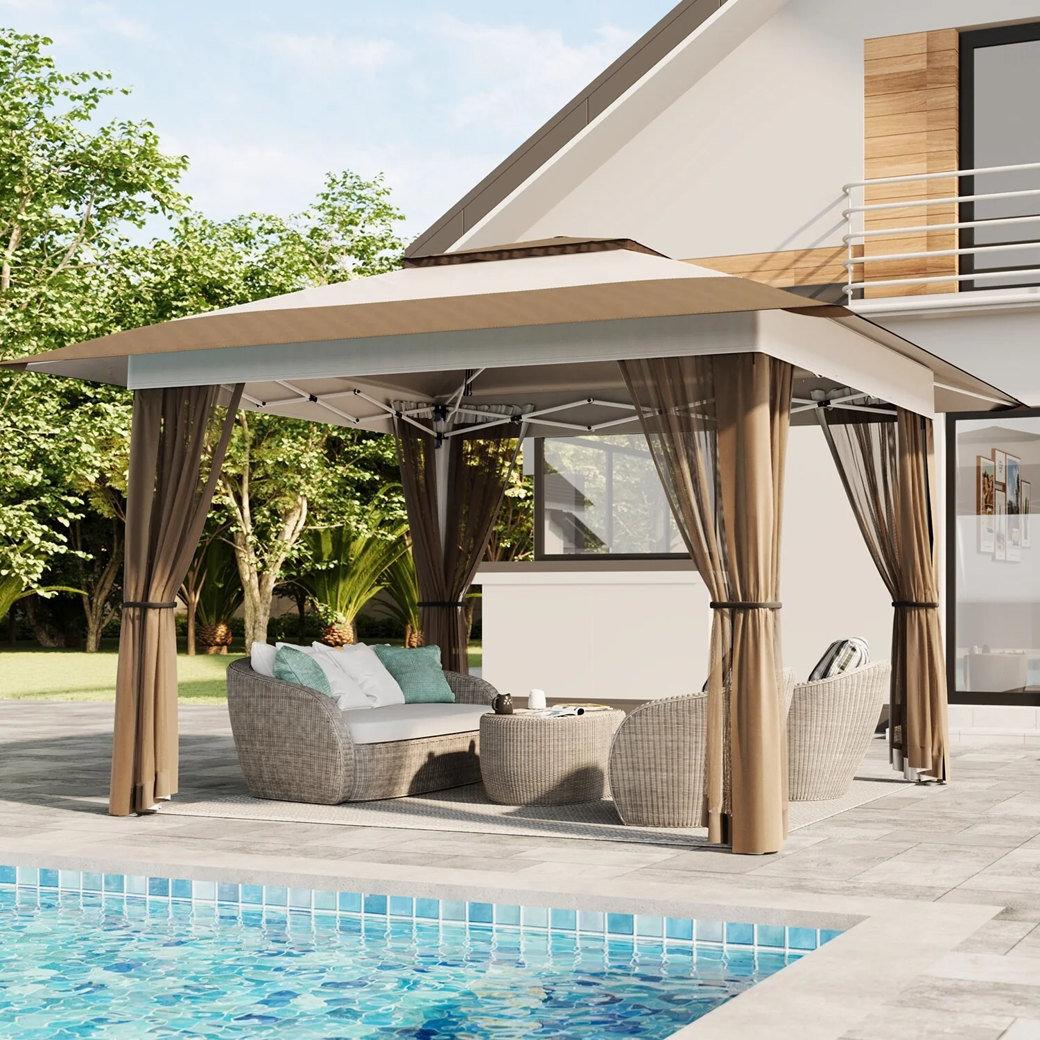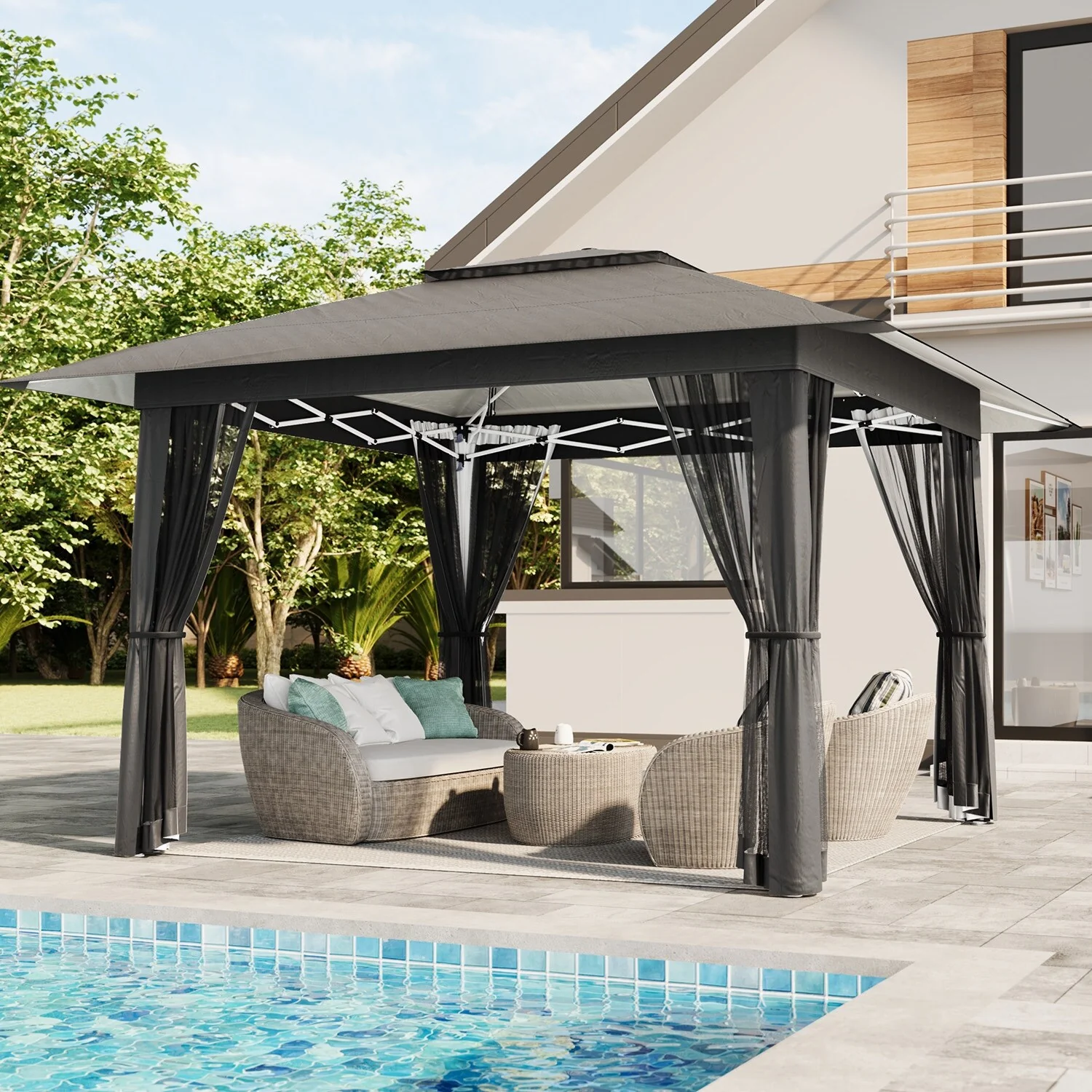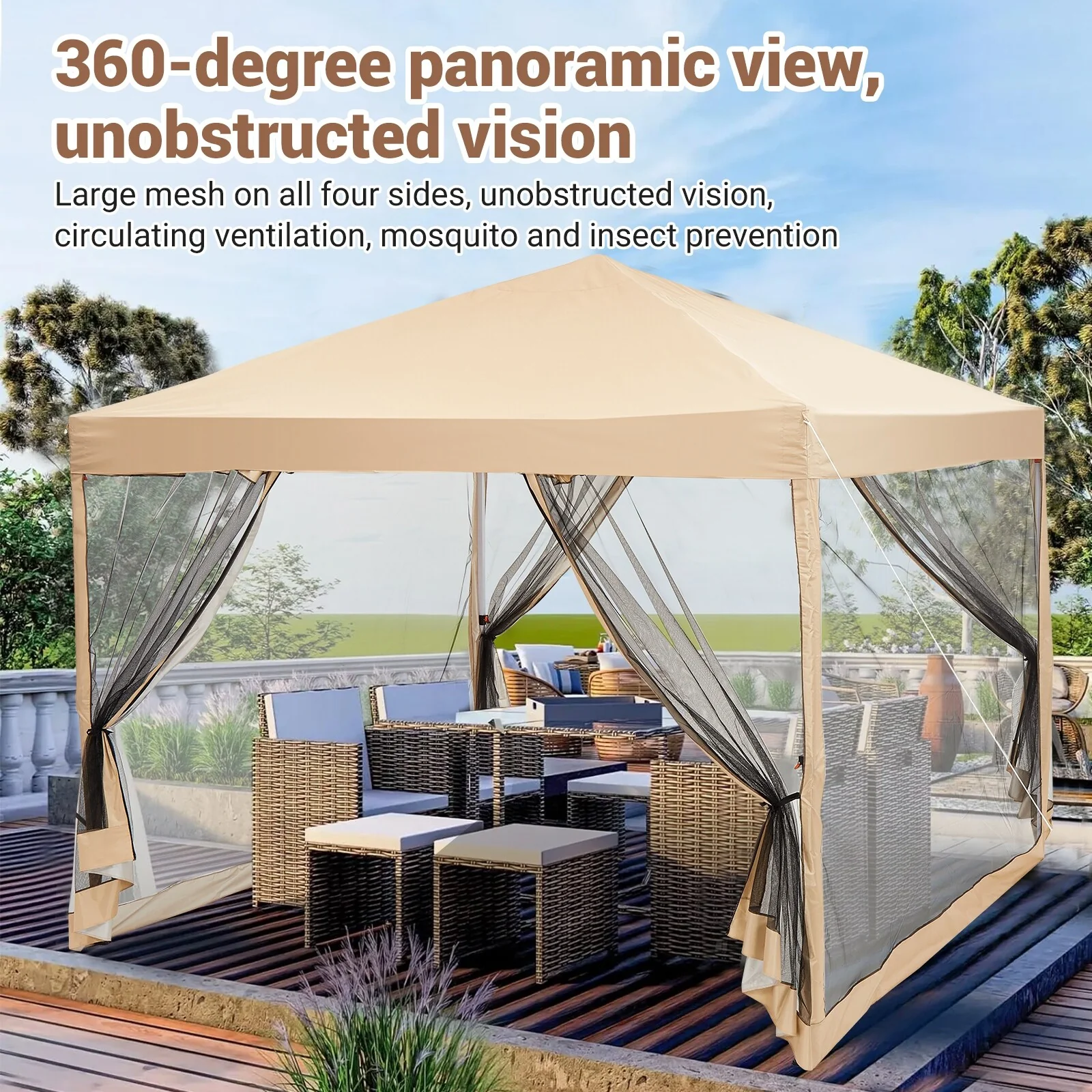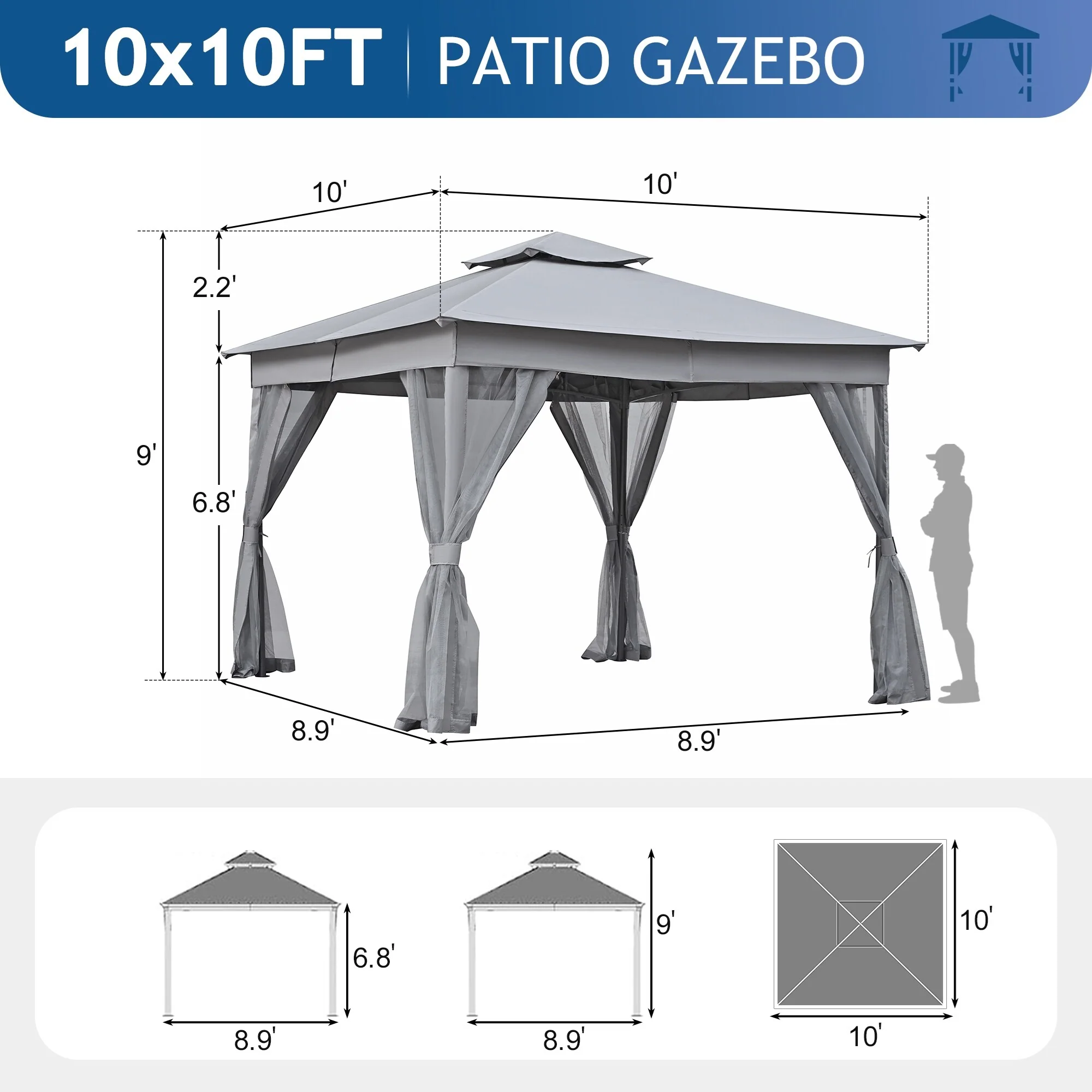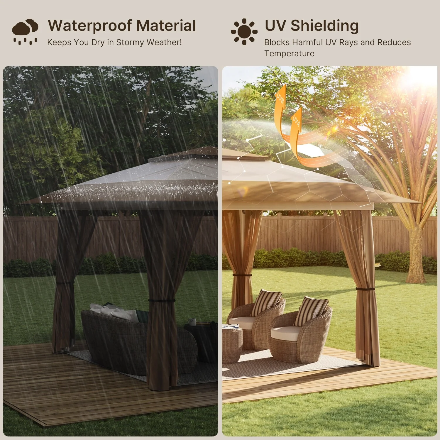 Patio Gazebo Tent with Double Roofs and Mosquito Netting for Backyard