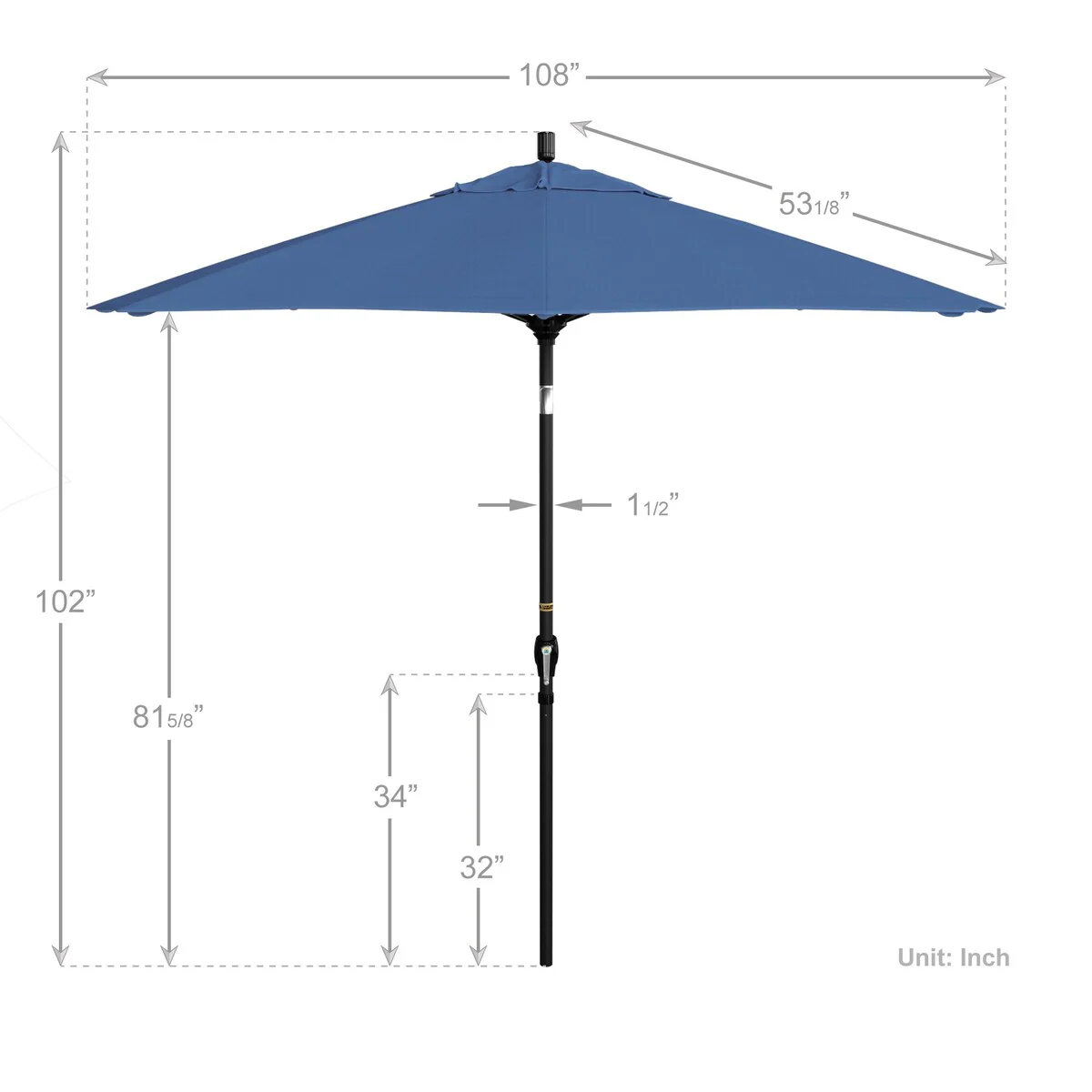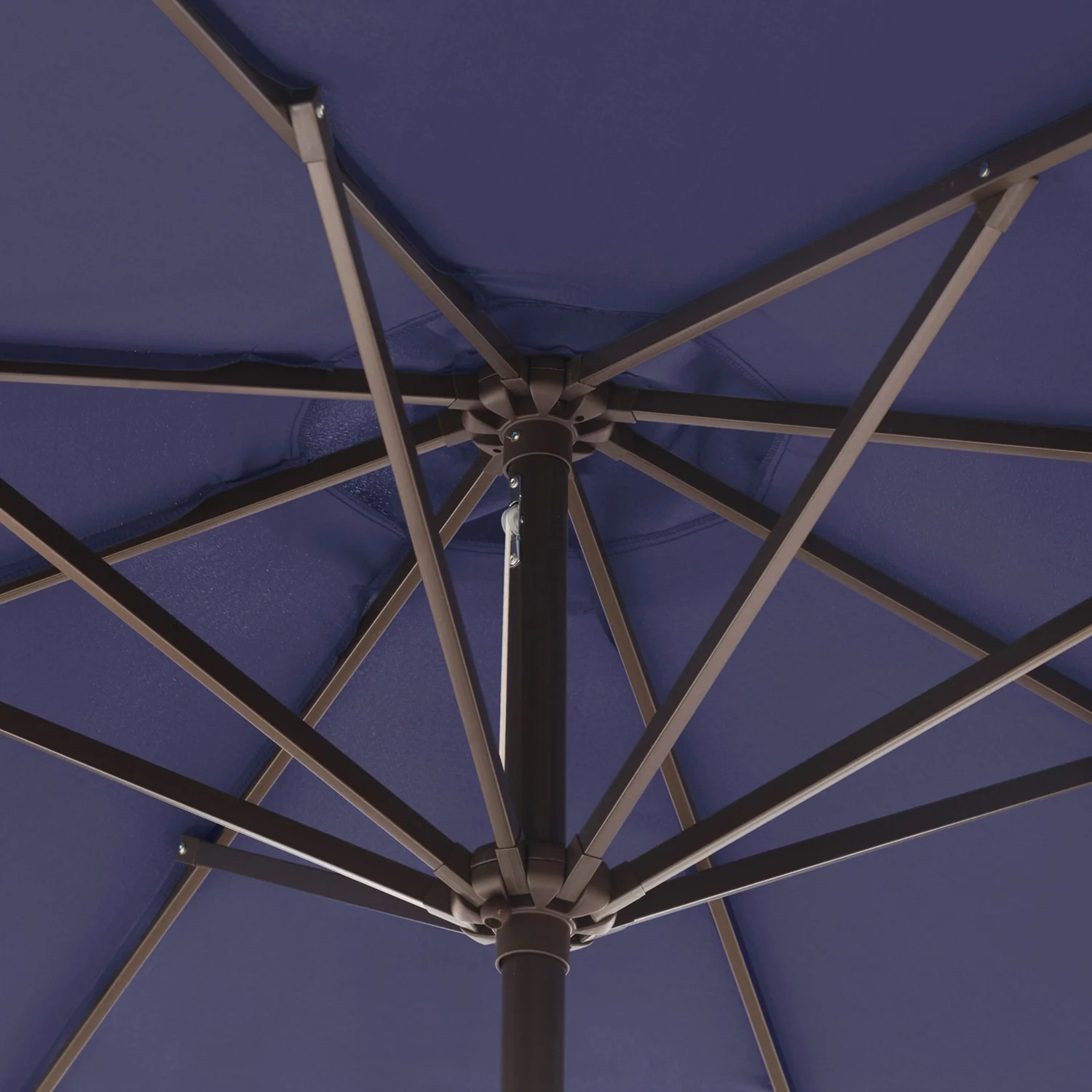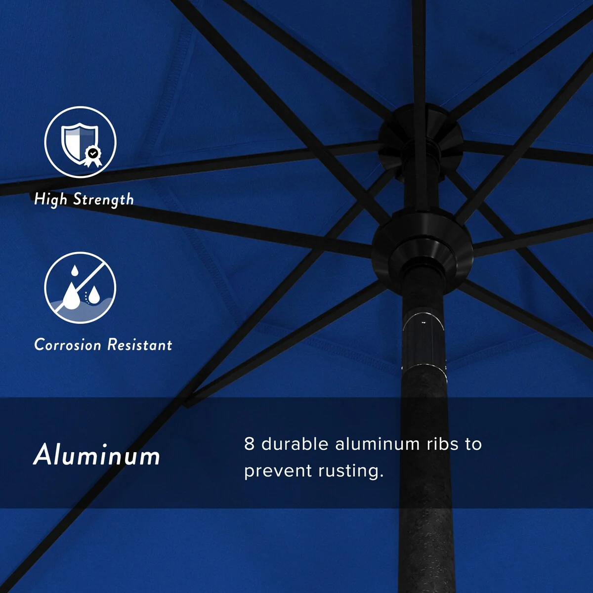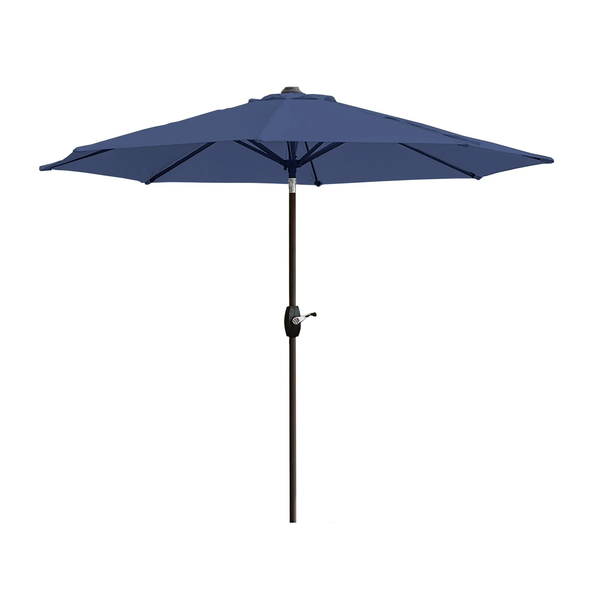California Umbrella 9' Round Crank Lift Push Button Tilt Black Aluminum Patio Umbrella with Olefin Royal Blue Fabric