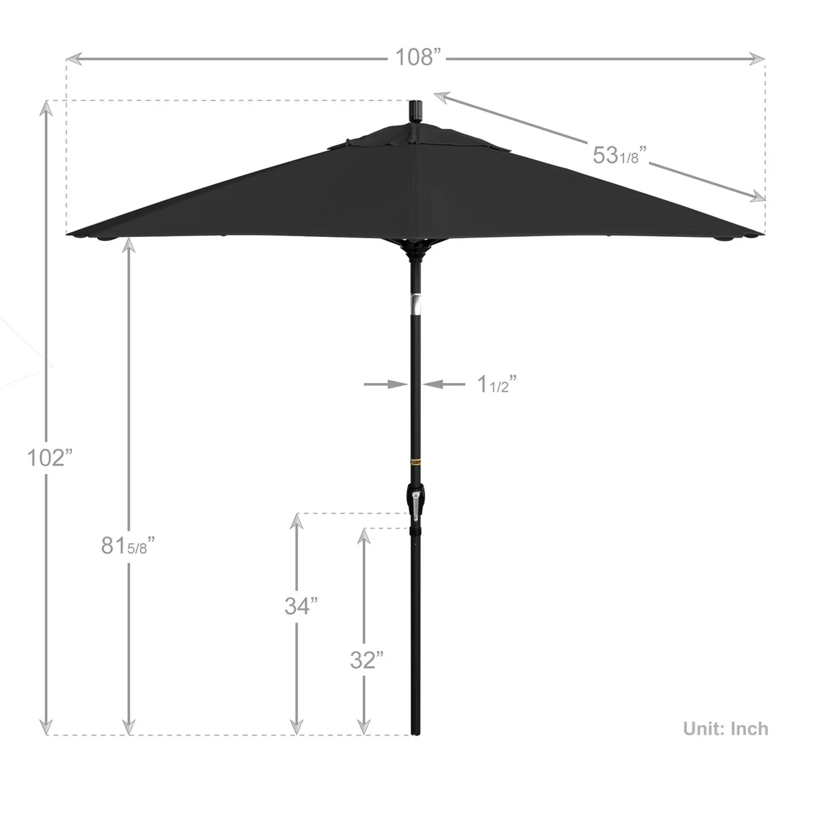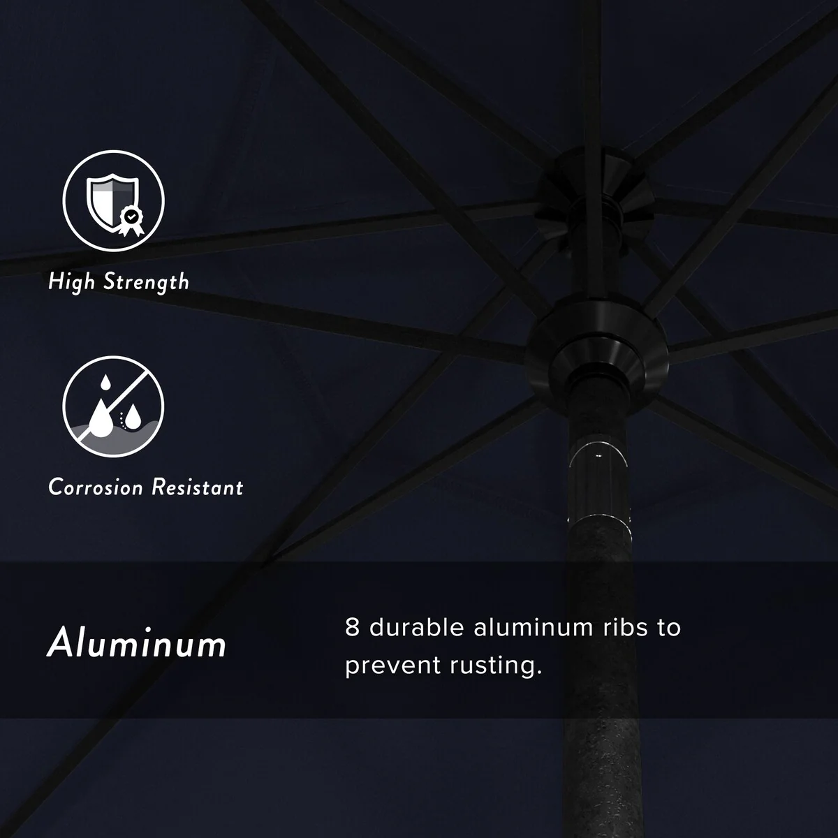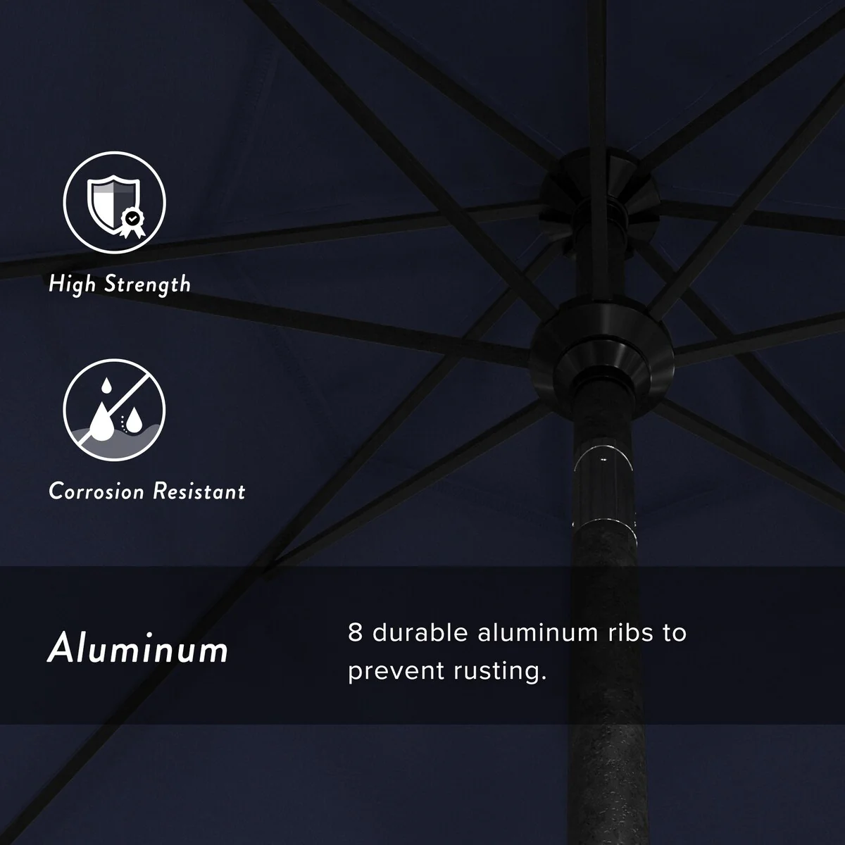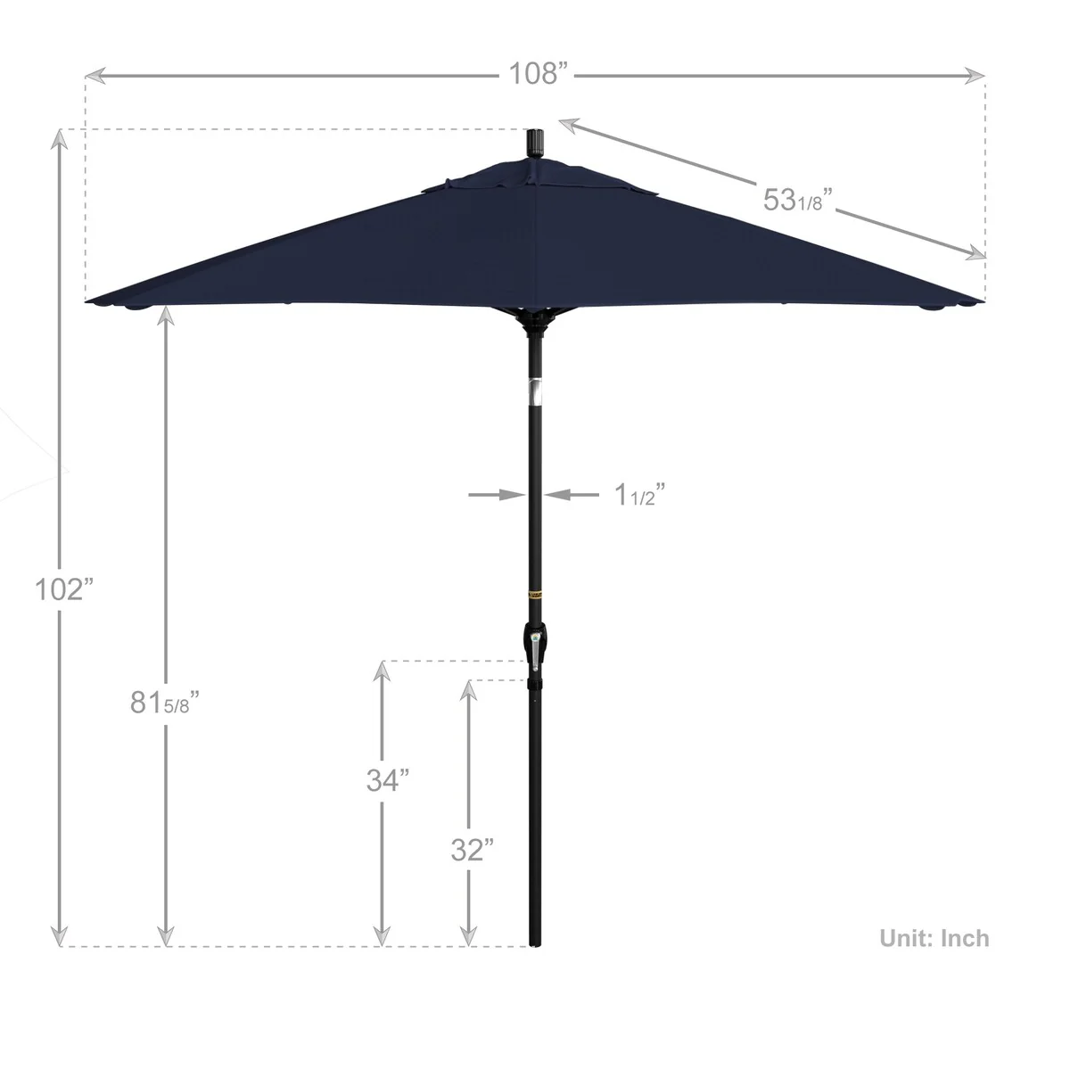 California Umbrella 9' Round Crank Lift Push Button Tilt Black Aluminum Patio Umbrella with Olefin Royal Blue Fabric
