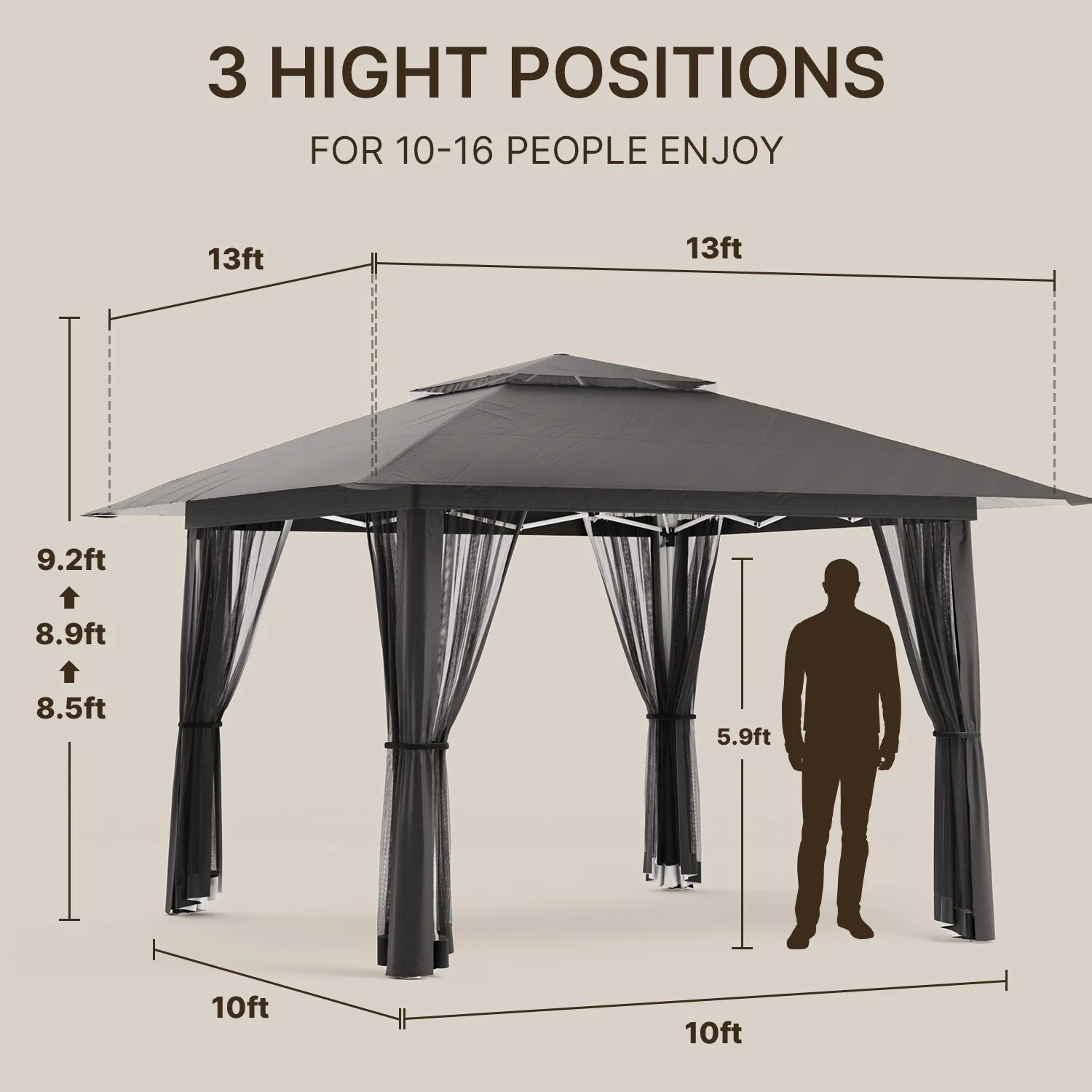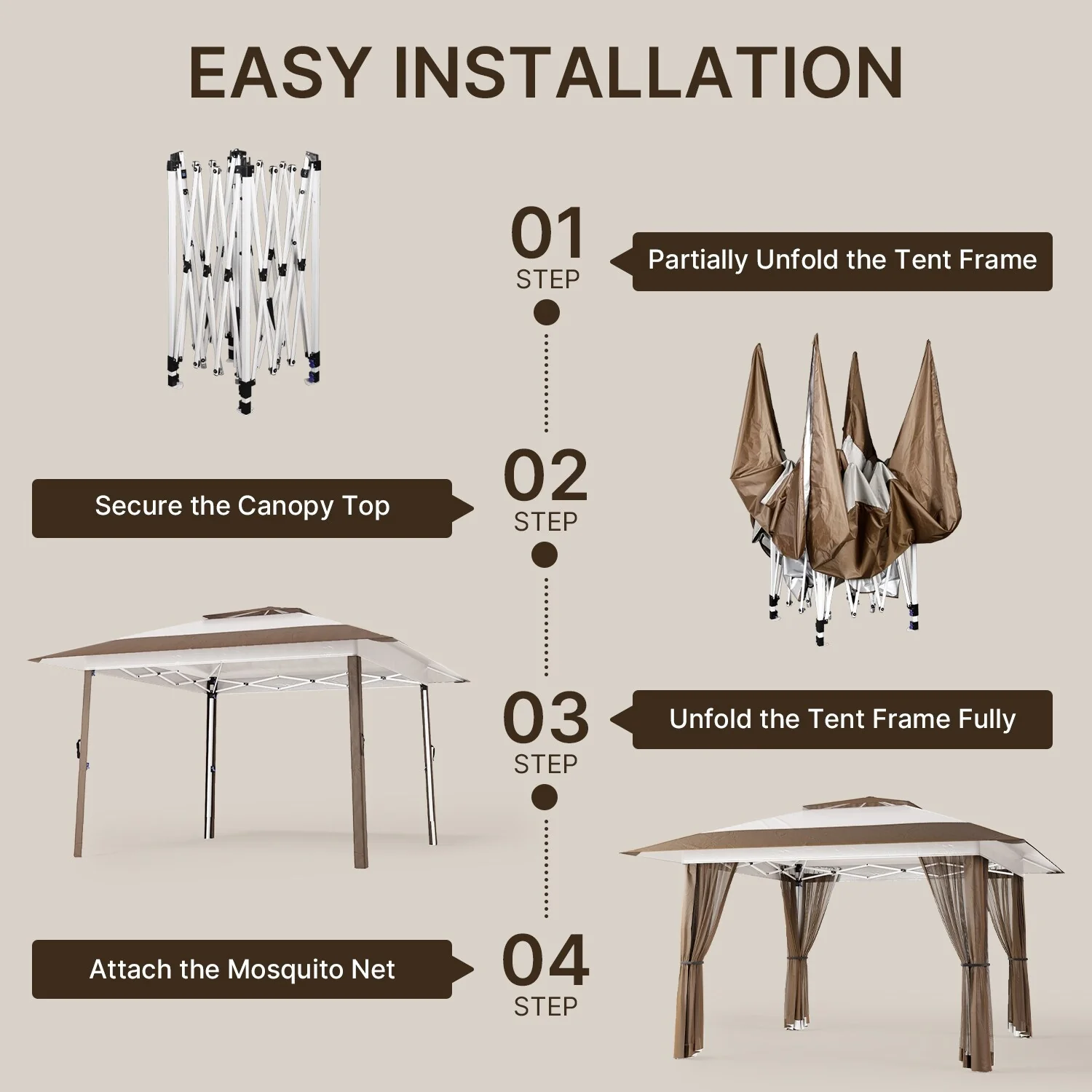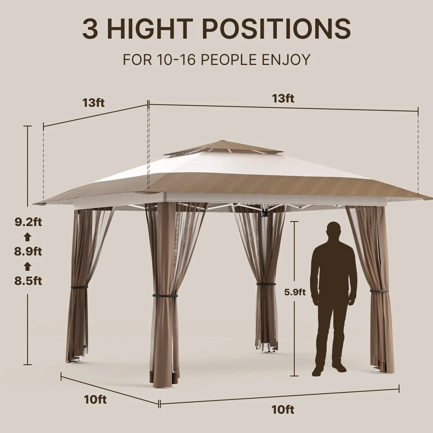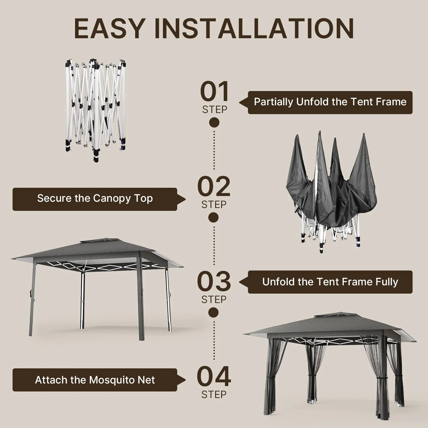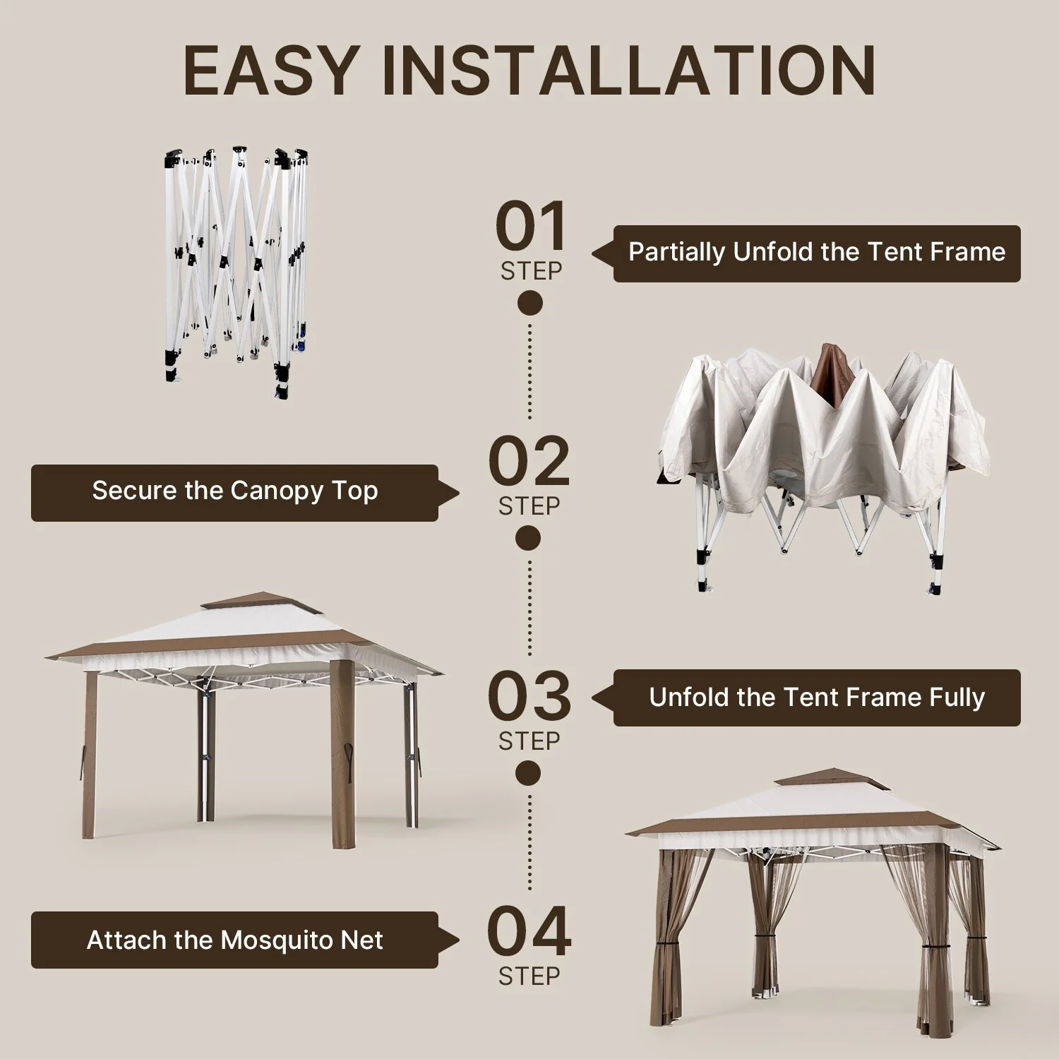 11 x 11 / 13 x 13 Pop Up Gazebo Tent with Mosquito Netting, Outdoor Canopy Tent