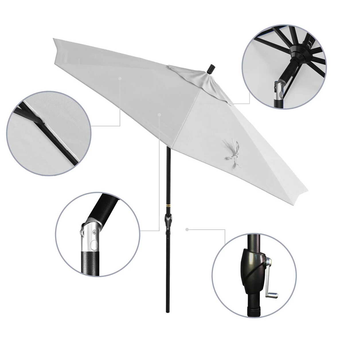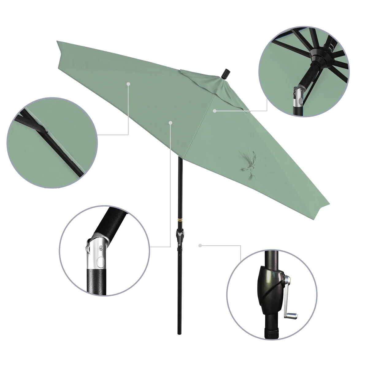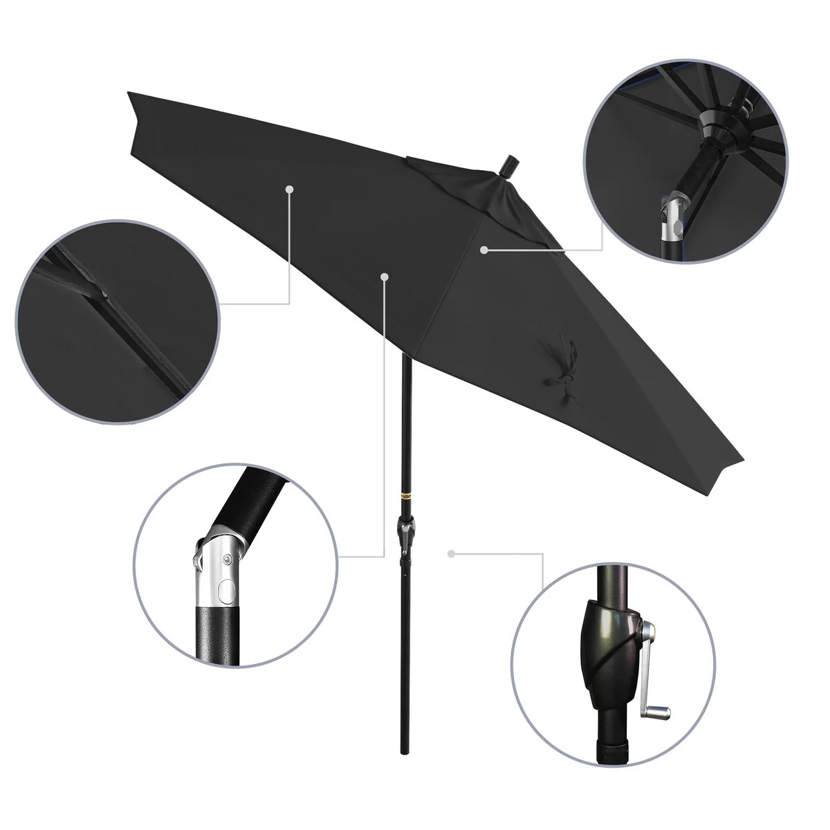 California Umbrella 9' Round Crank Lift Push Button Tilt Black Aluminum Patio Umbrella with Pacifica Pacific Blue Fabric