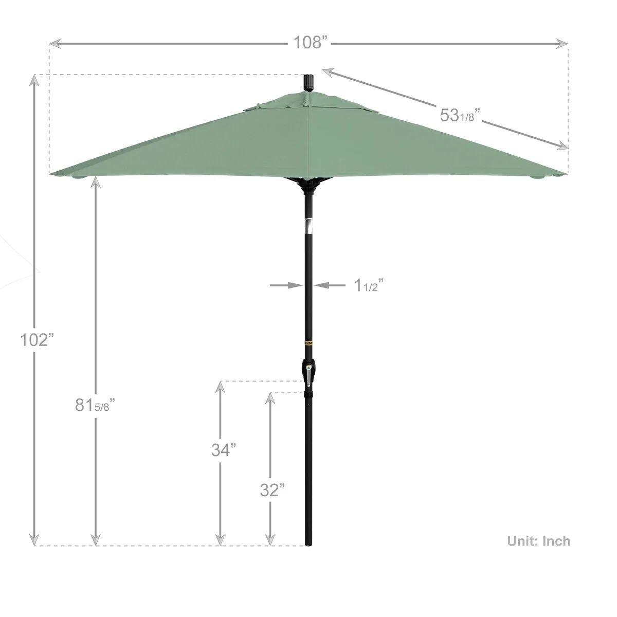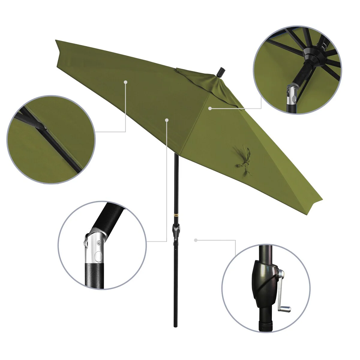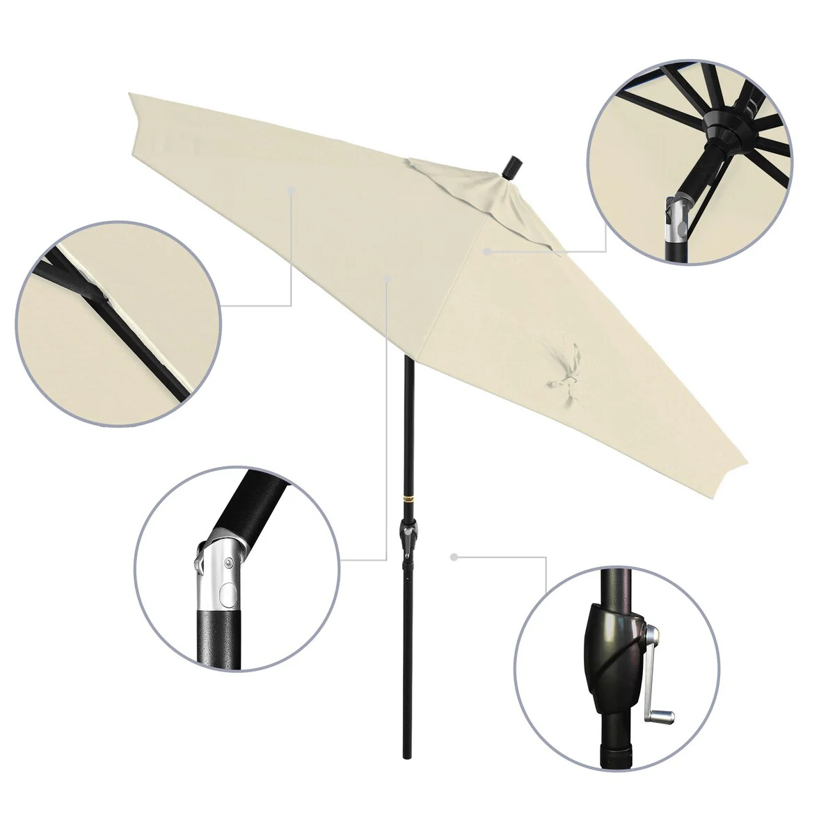 California Umbrella 9' Round Crank Lift Push Button Tilt Black Aluminum Patio Umbrella with Pacifica Pacific Blue Fabric