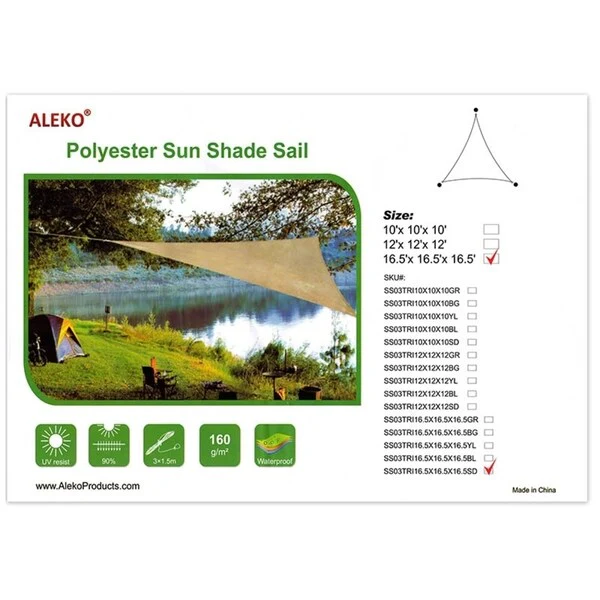 ALEKO Waterproof Sun Shade Sail Tent 16.5 X 16.5 X 16.5 Feet Sand - 16.5 x 16.5 x 16.5 ft