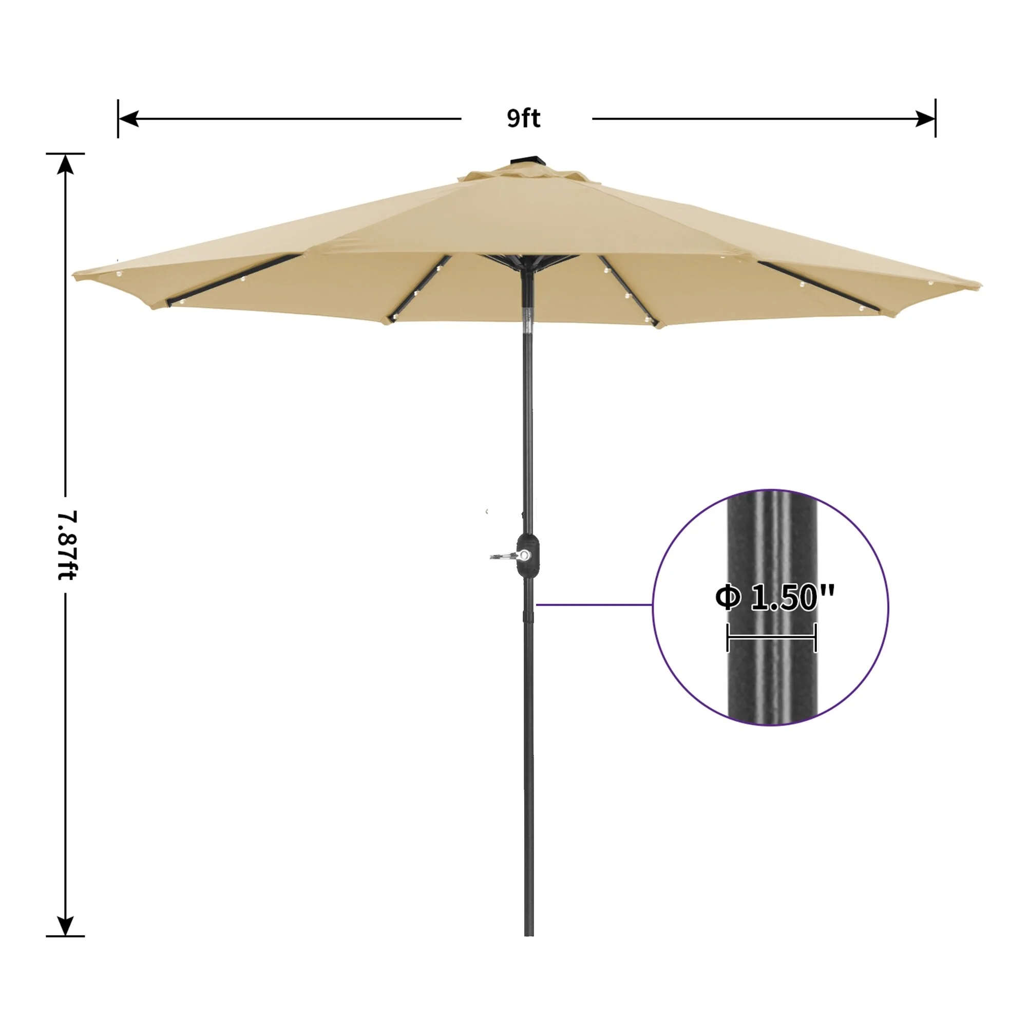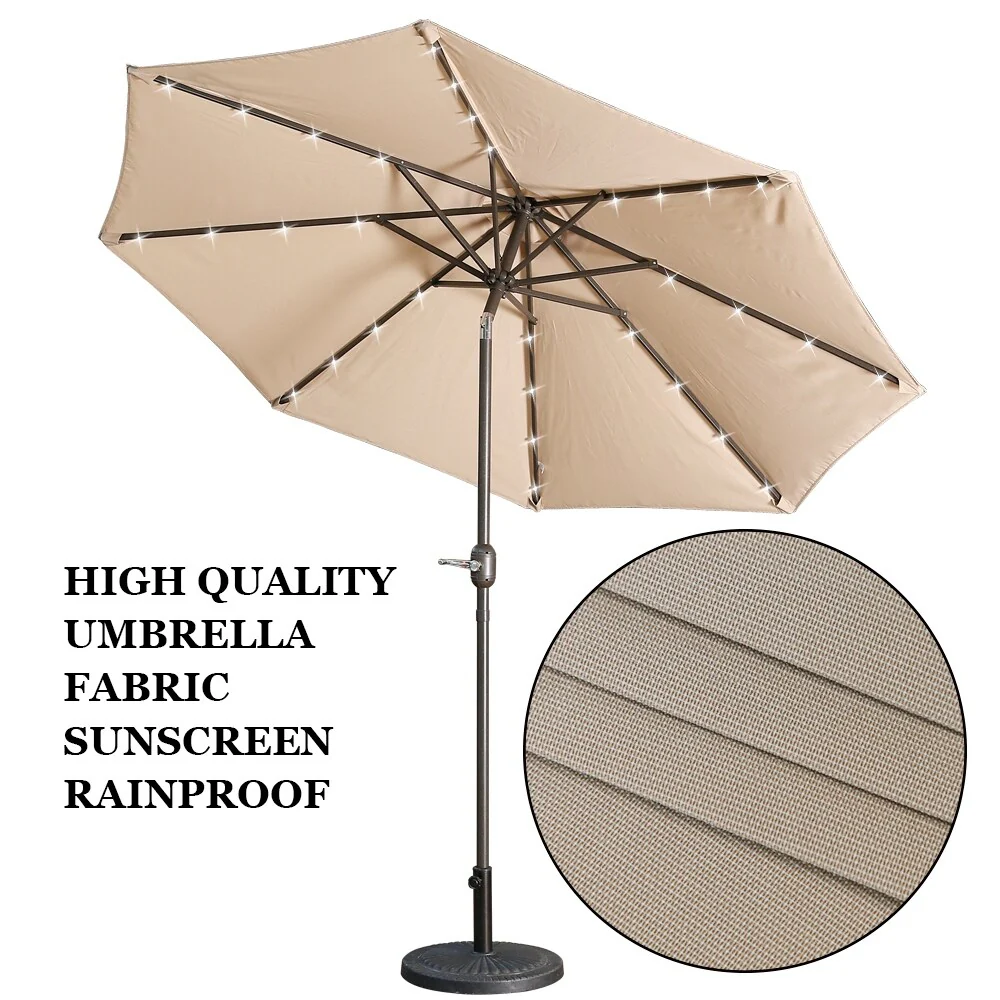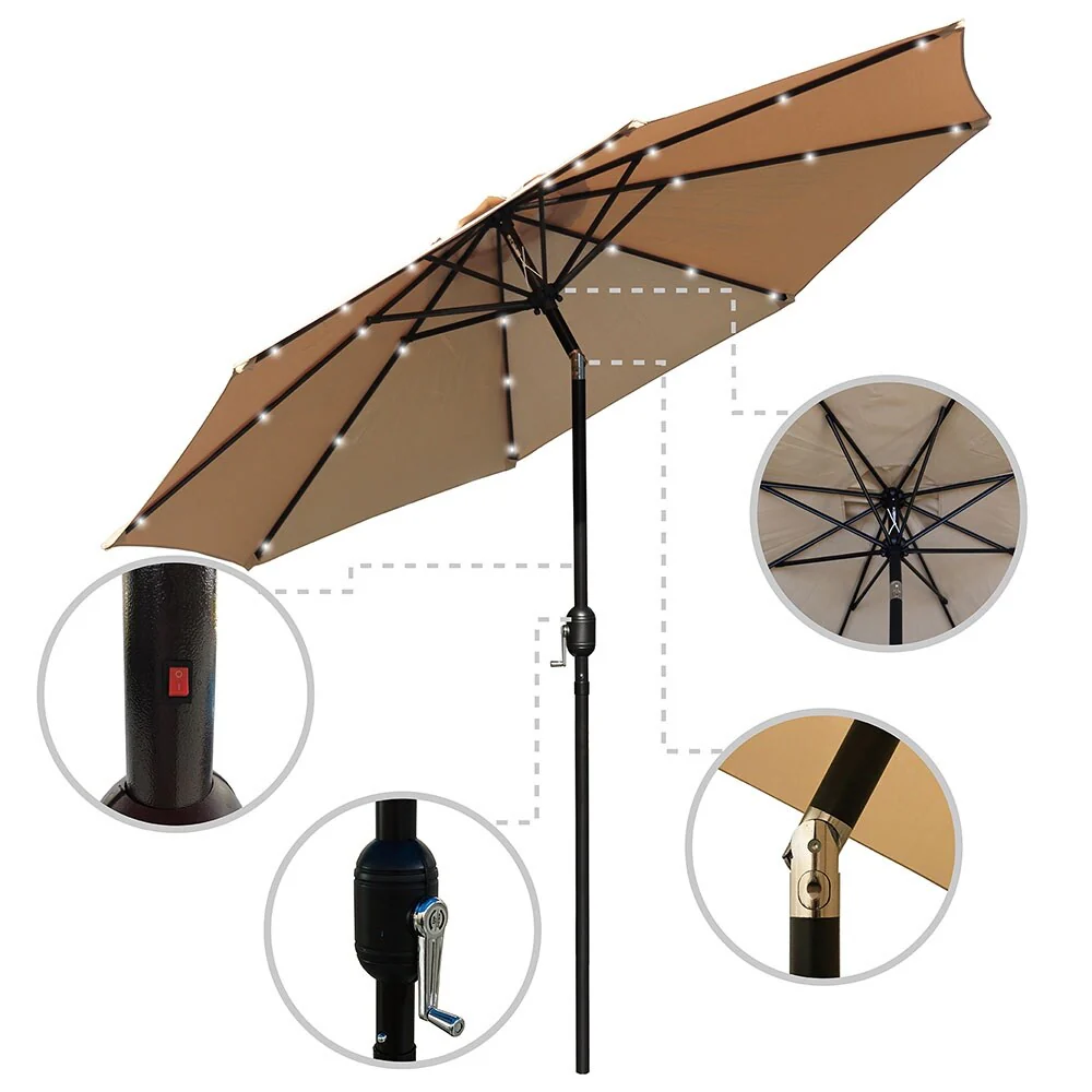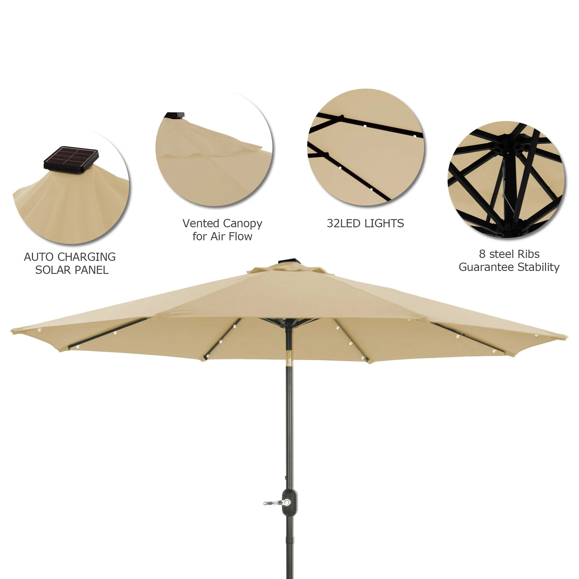 9ft Patio Umbrella Outdoor Market 32 LED Solar Umbrella with Tilt and Crank