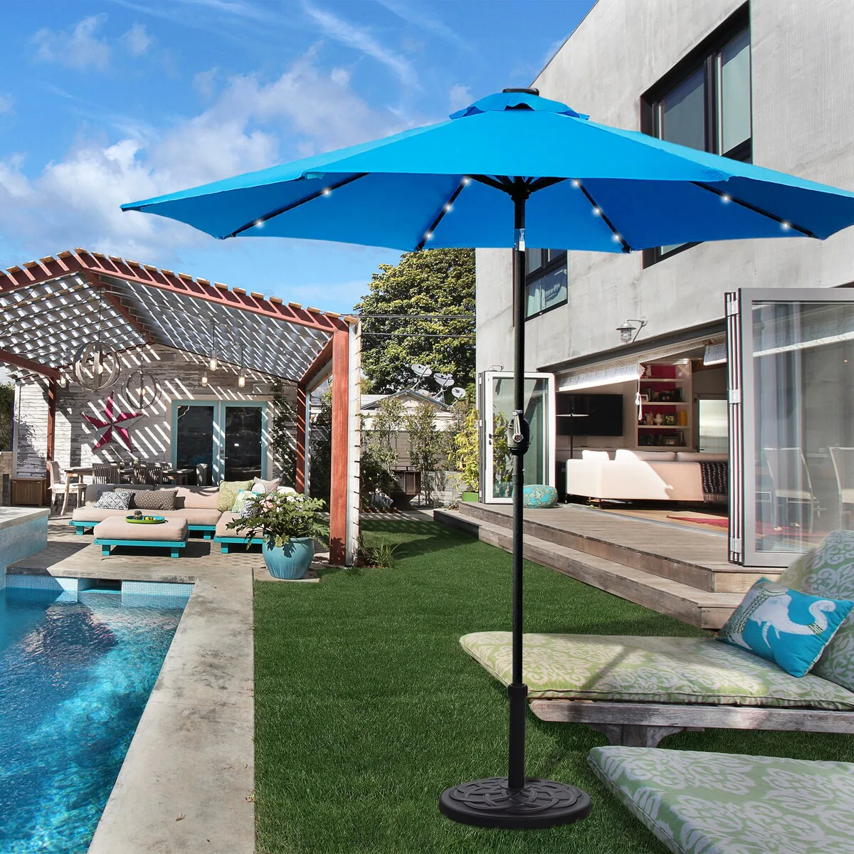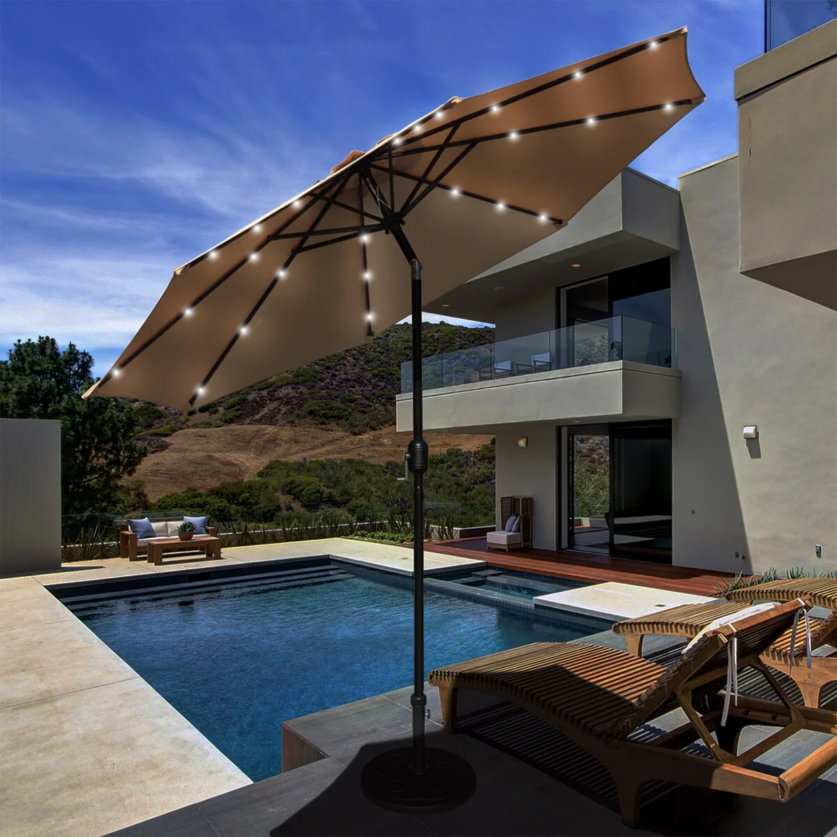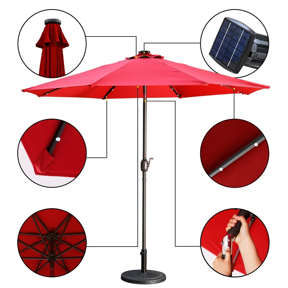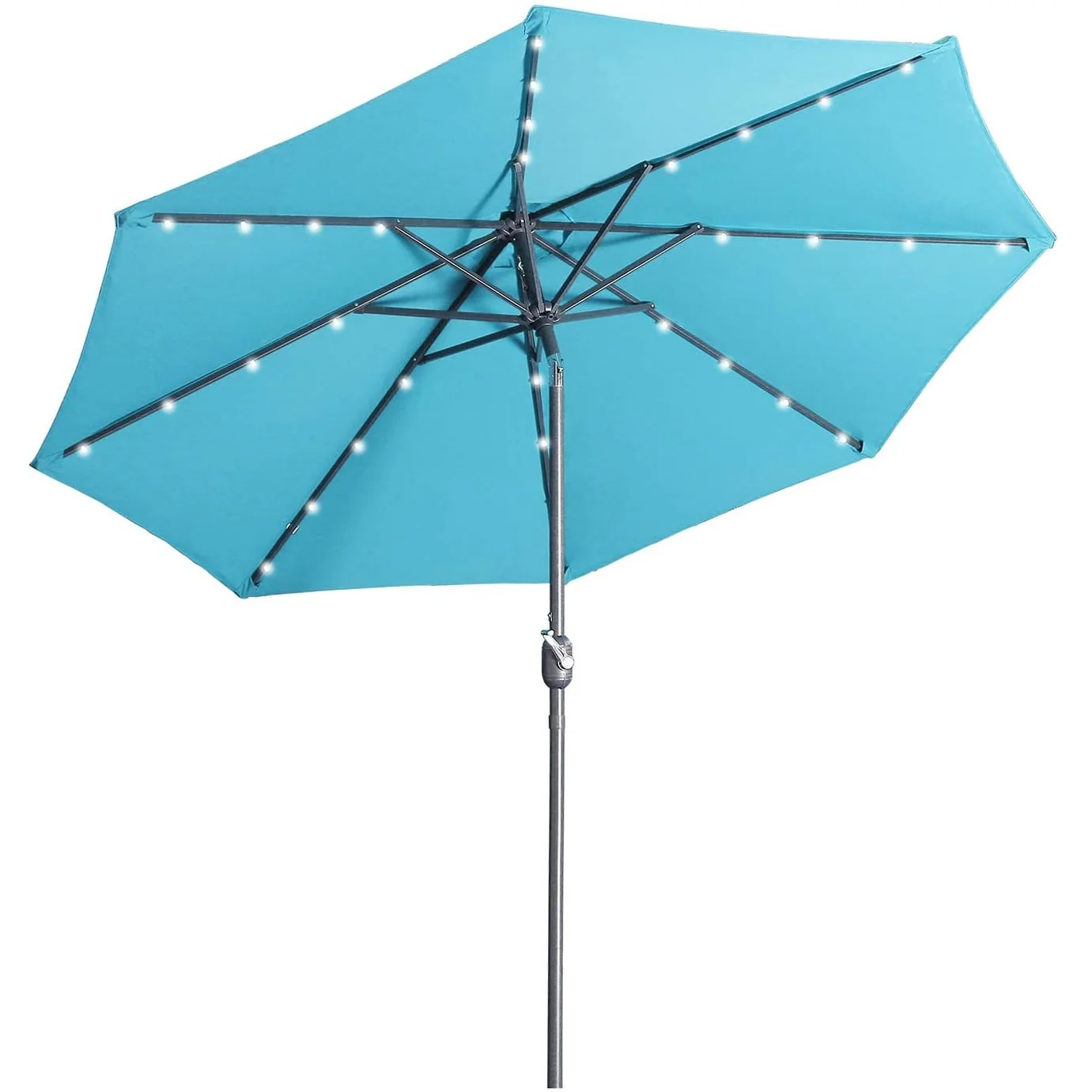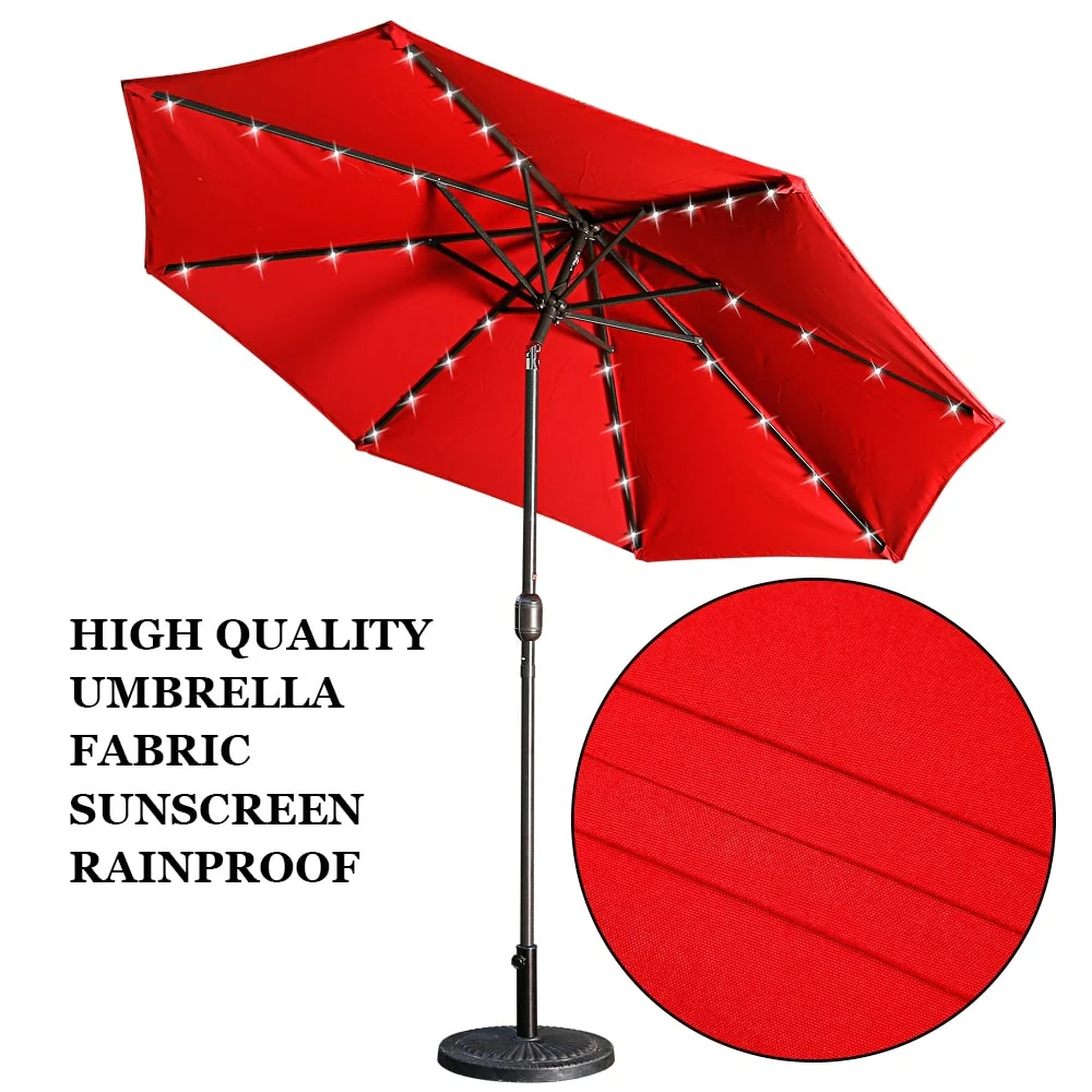 9ft Patio Umbrella Outdoor Market 32 LED Solar Umbrella with Tilt and Crank