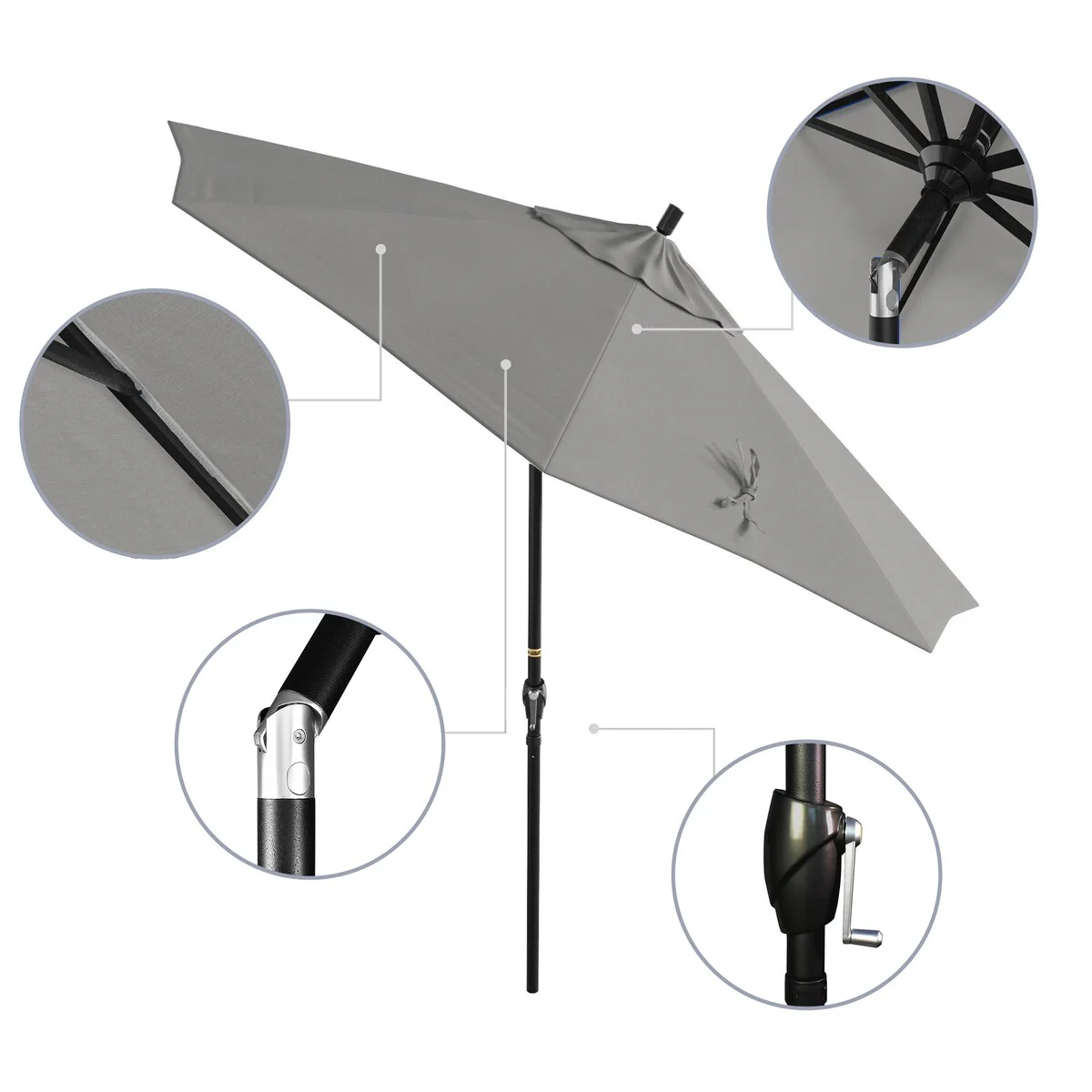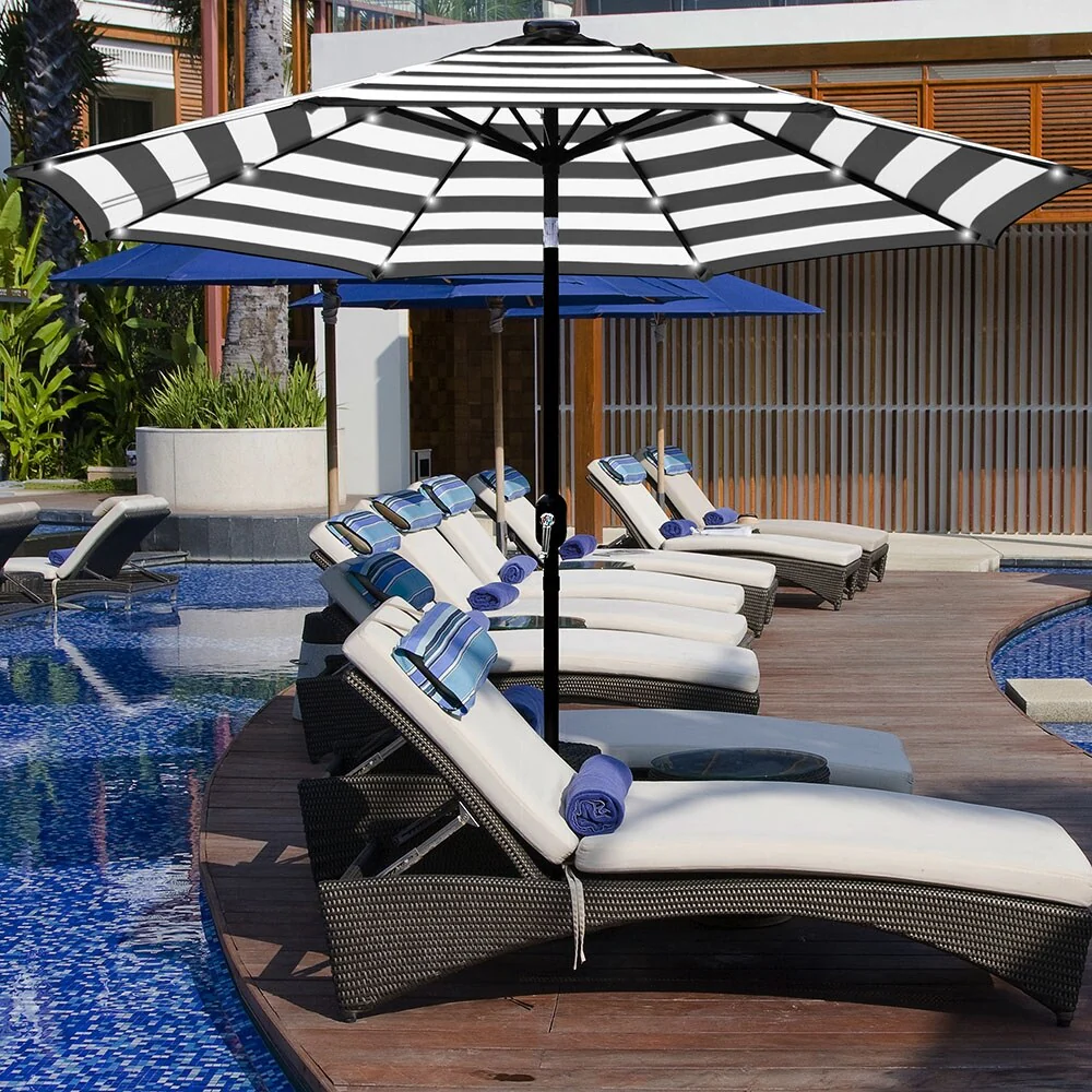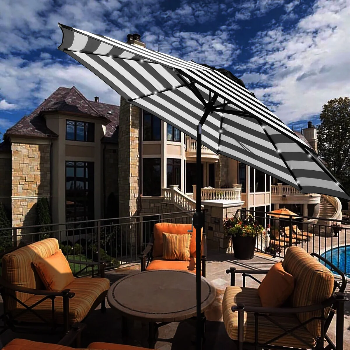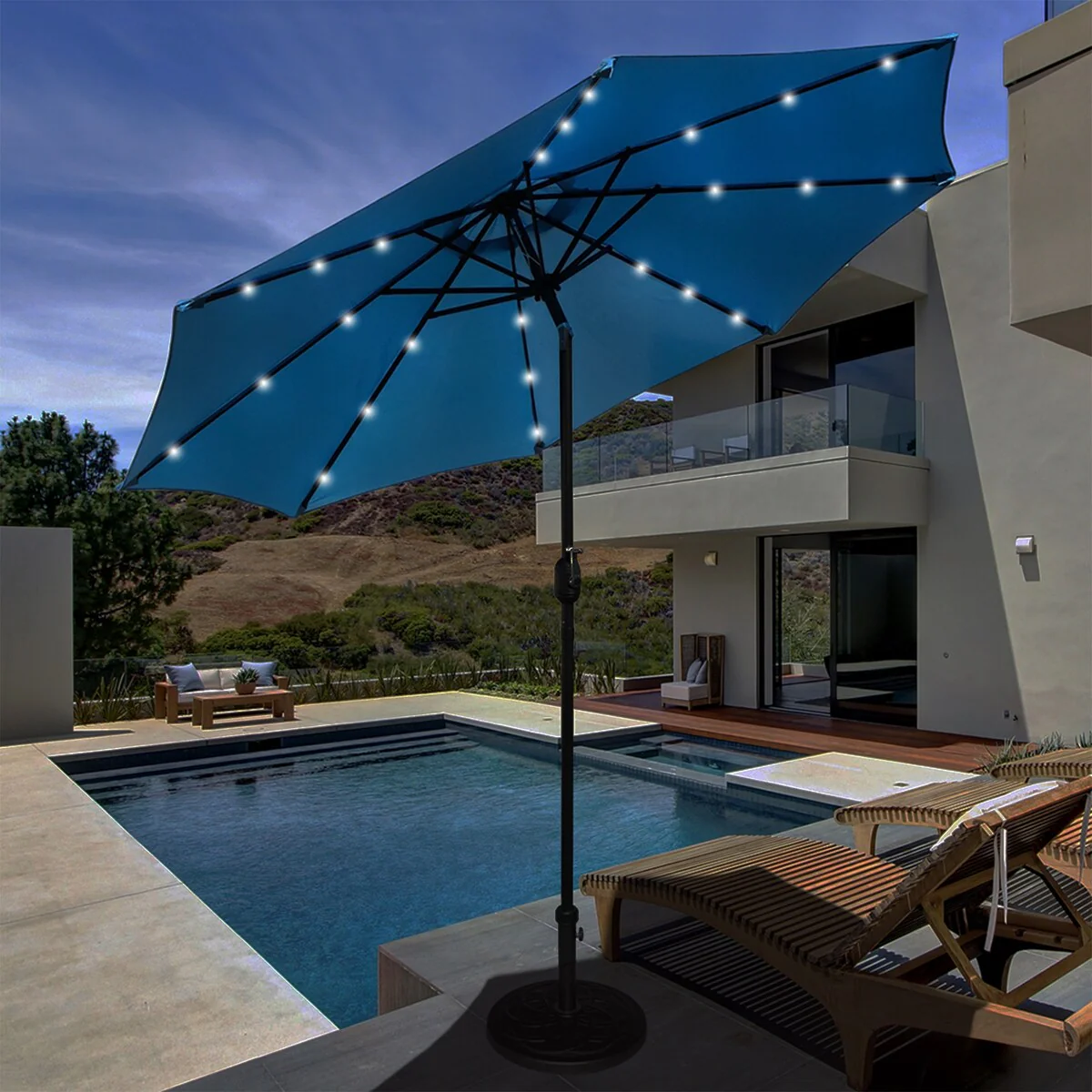 9ft Patio Umbrella Outdoor Market 32 LED Solar Umbrella with Tilt and Crank