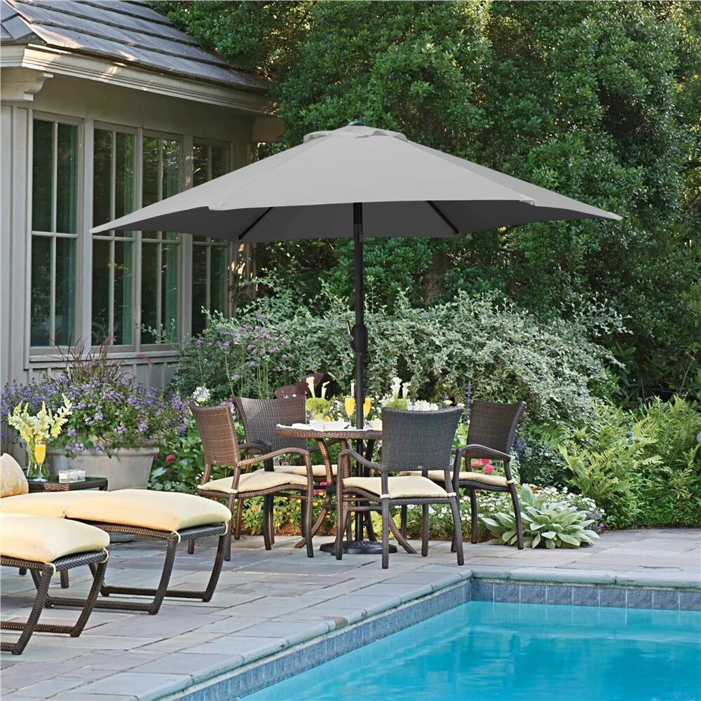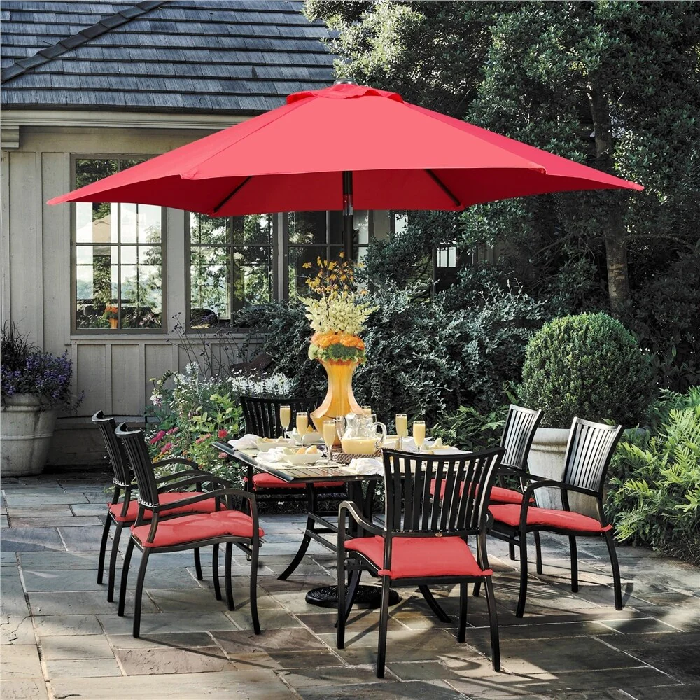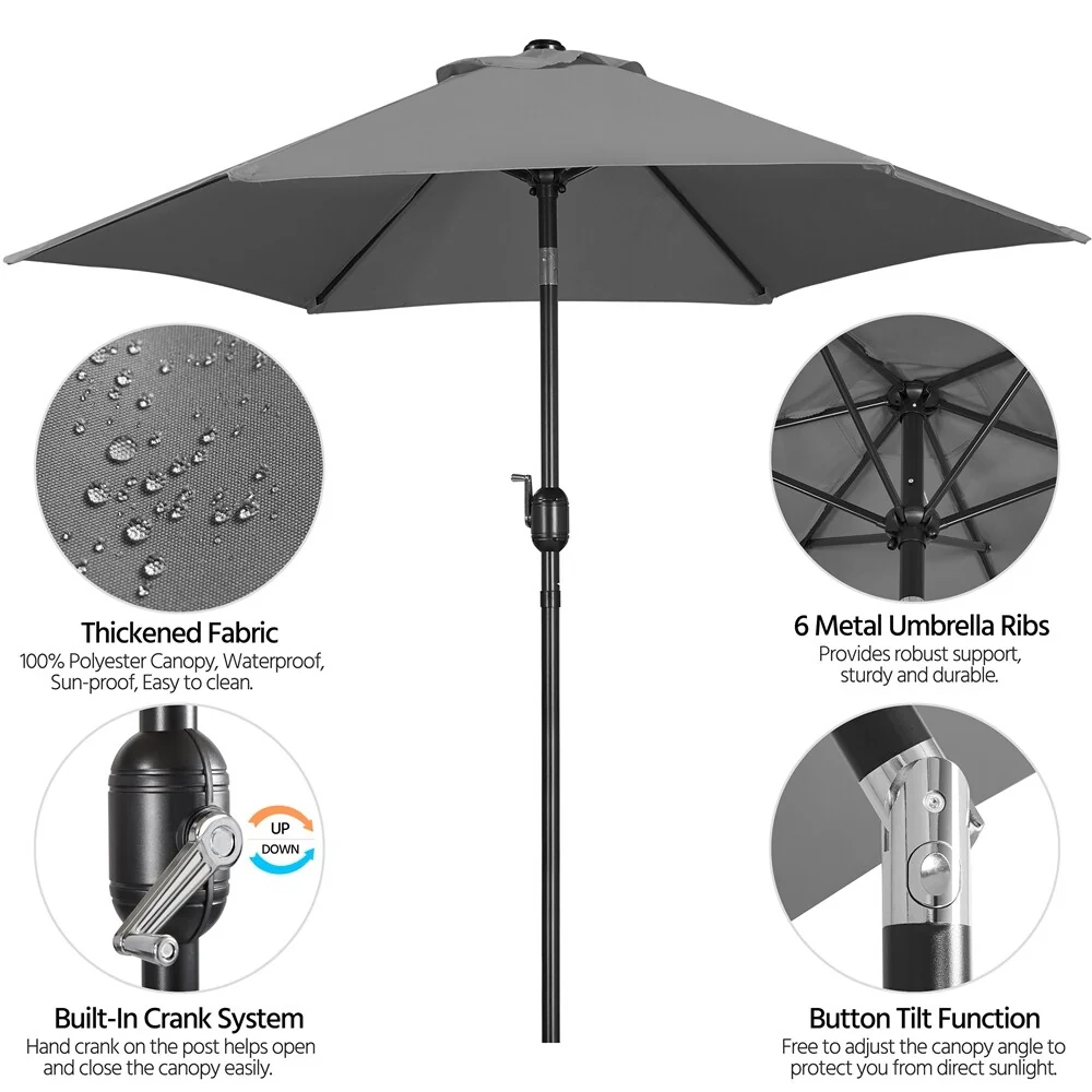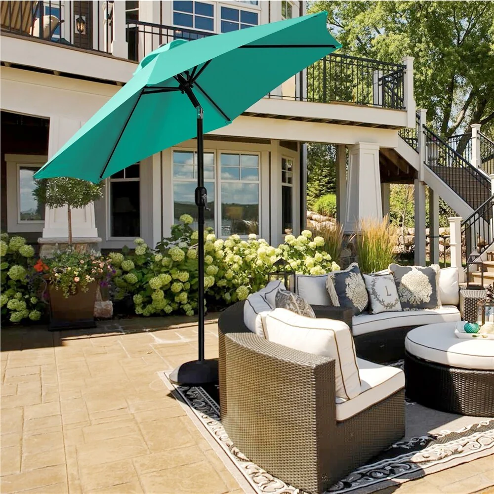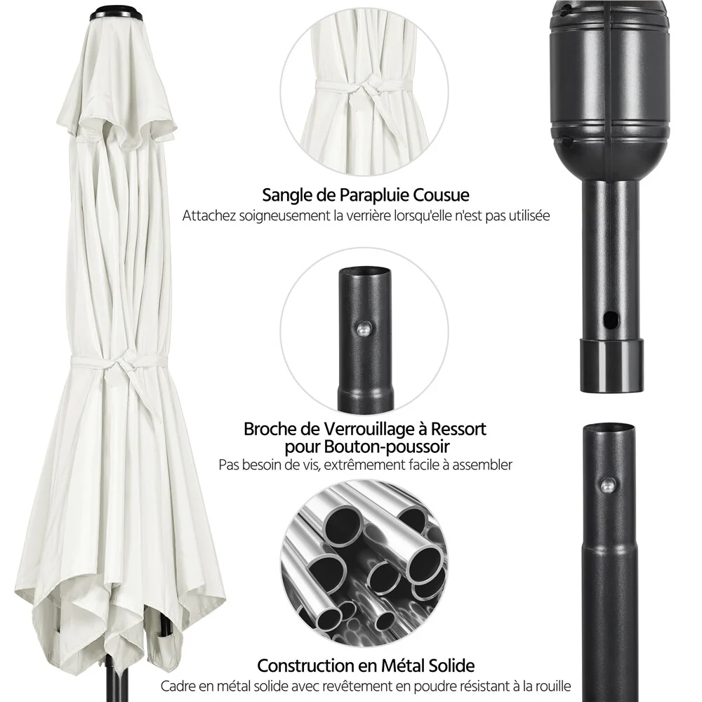 9ft Patio Umbrella Outdoor Market 32 LED Solar Umbrella with Tilt and Crank