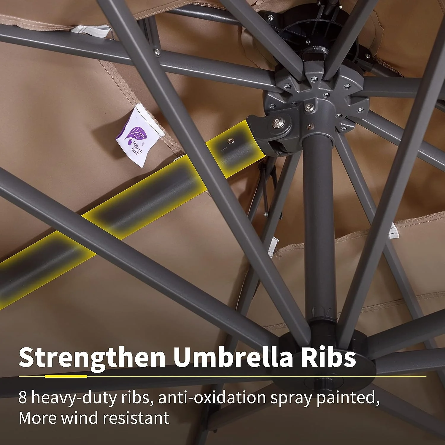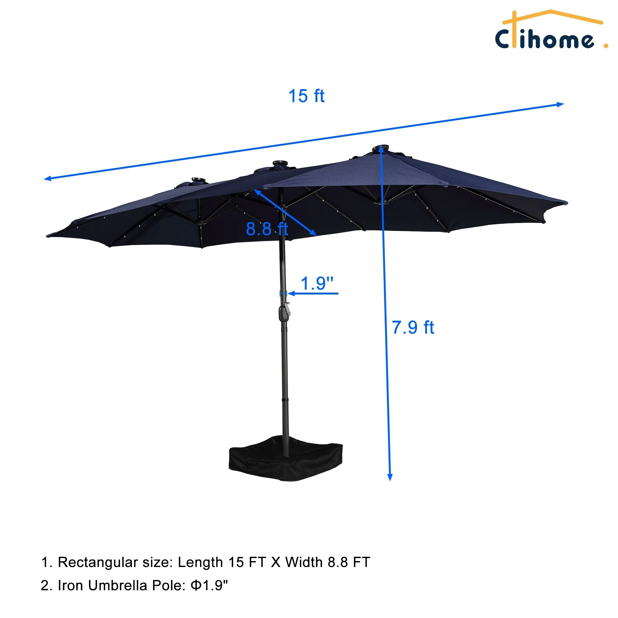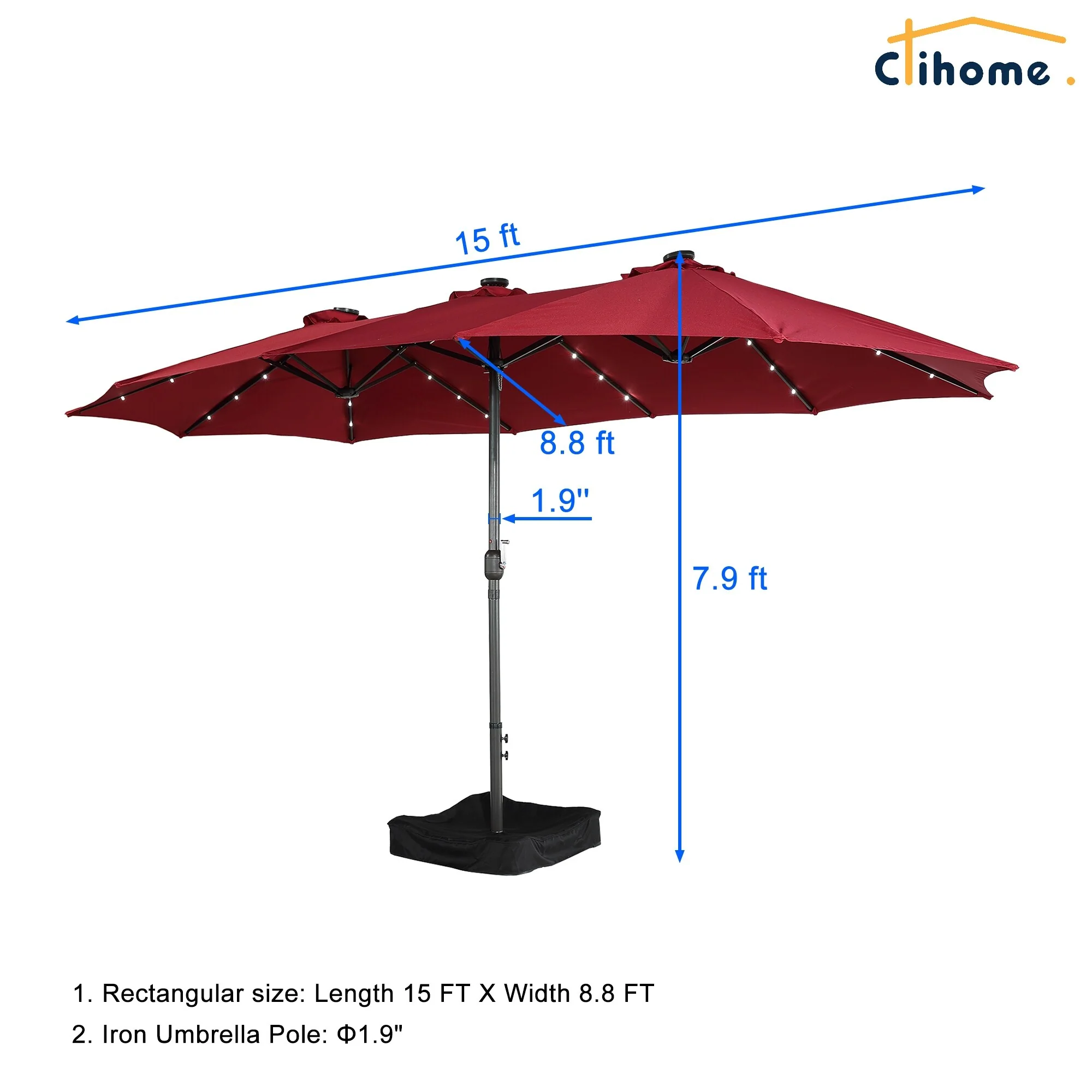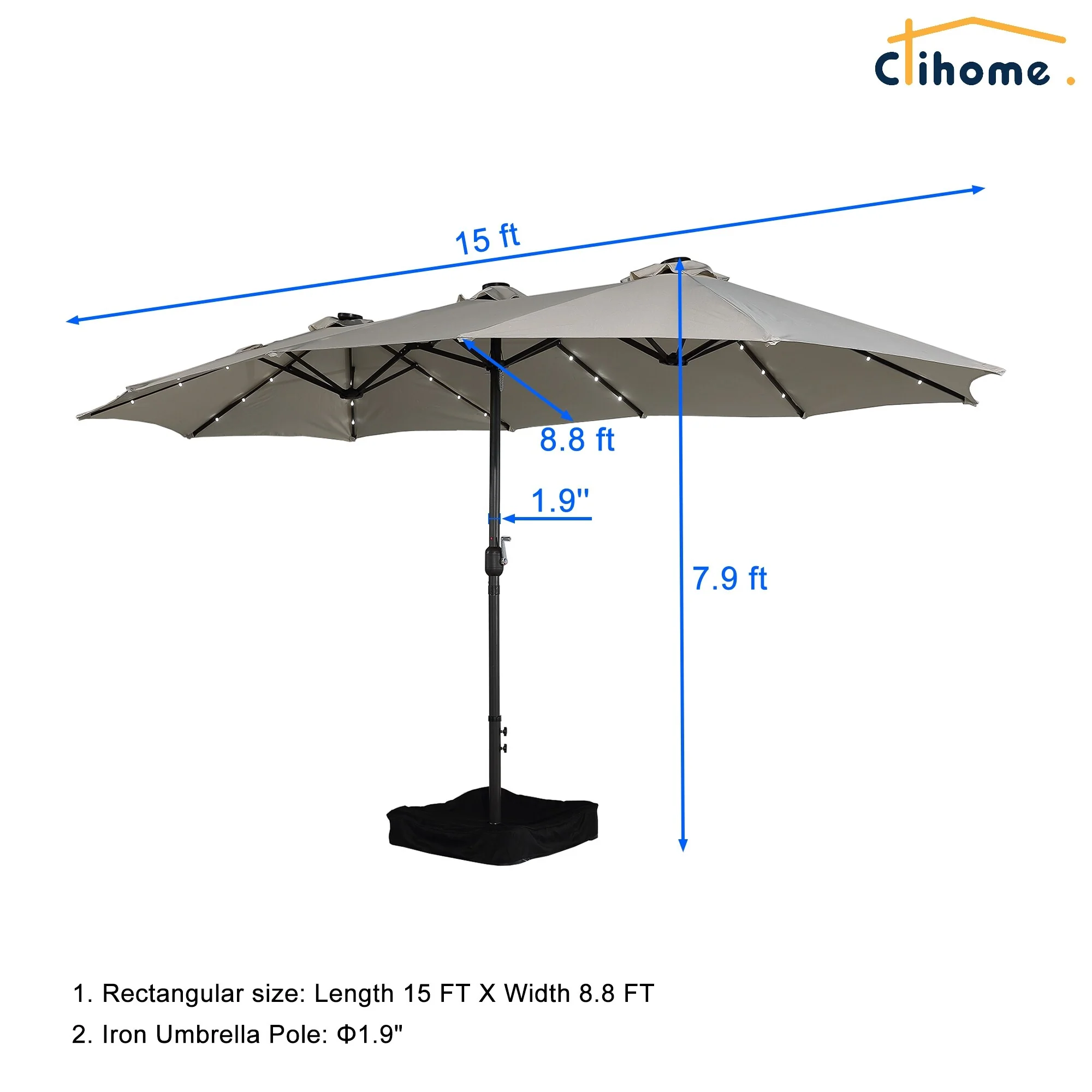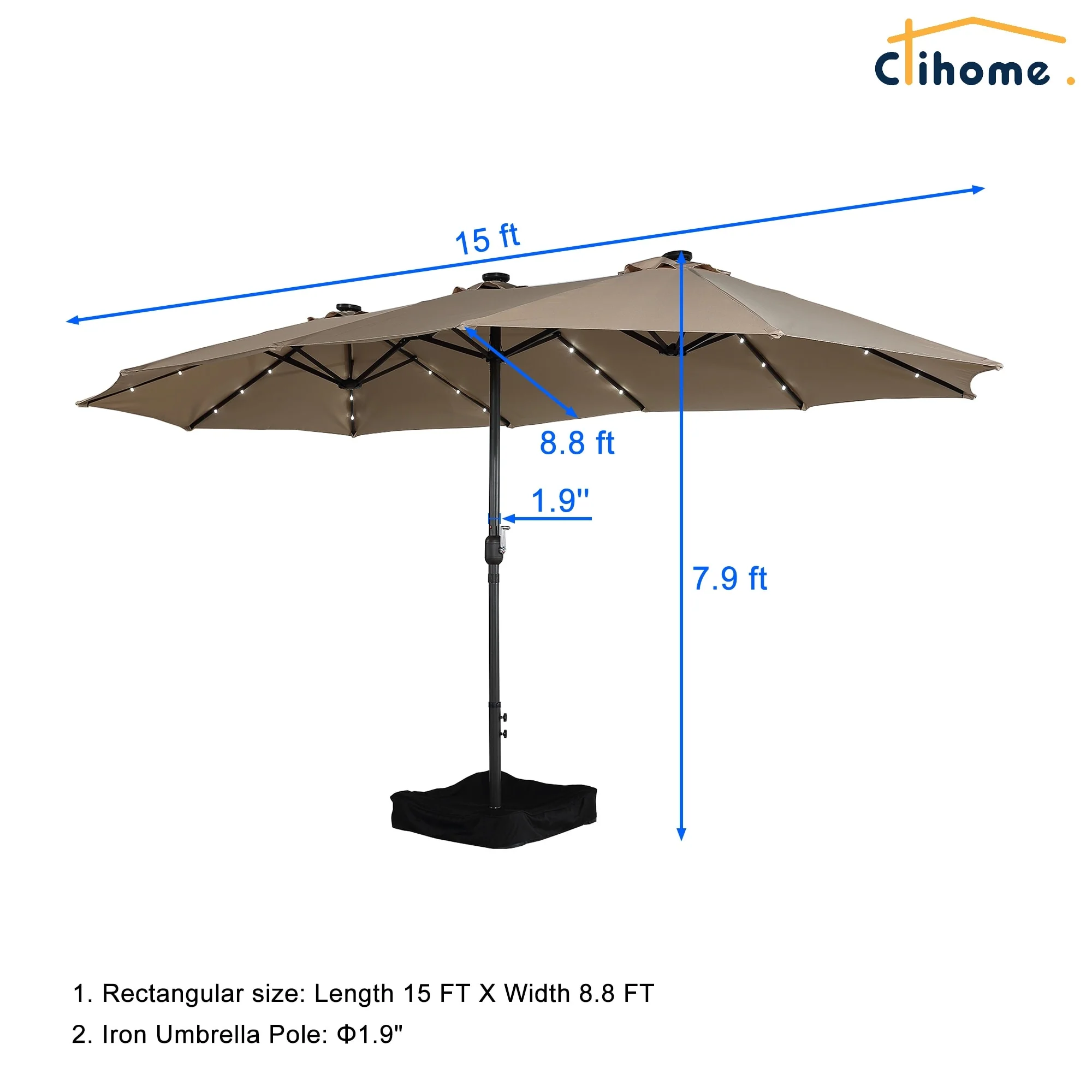 Clihome 15FT Double-Sided Solar Light Market Crank Umbrella with Base