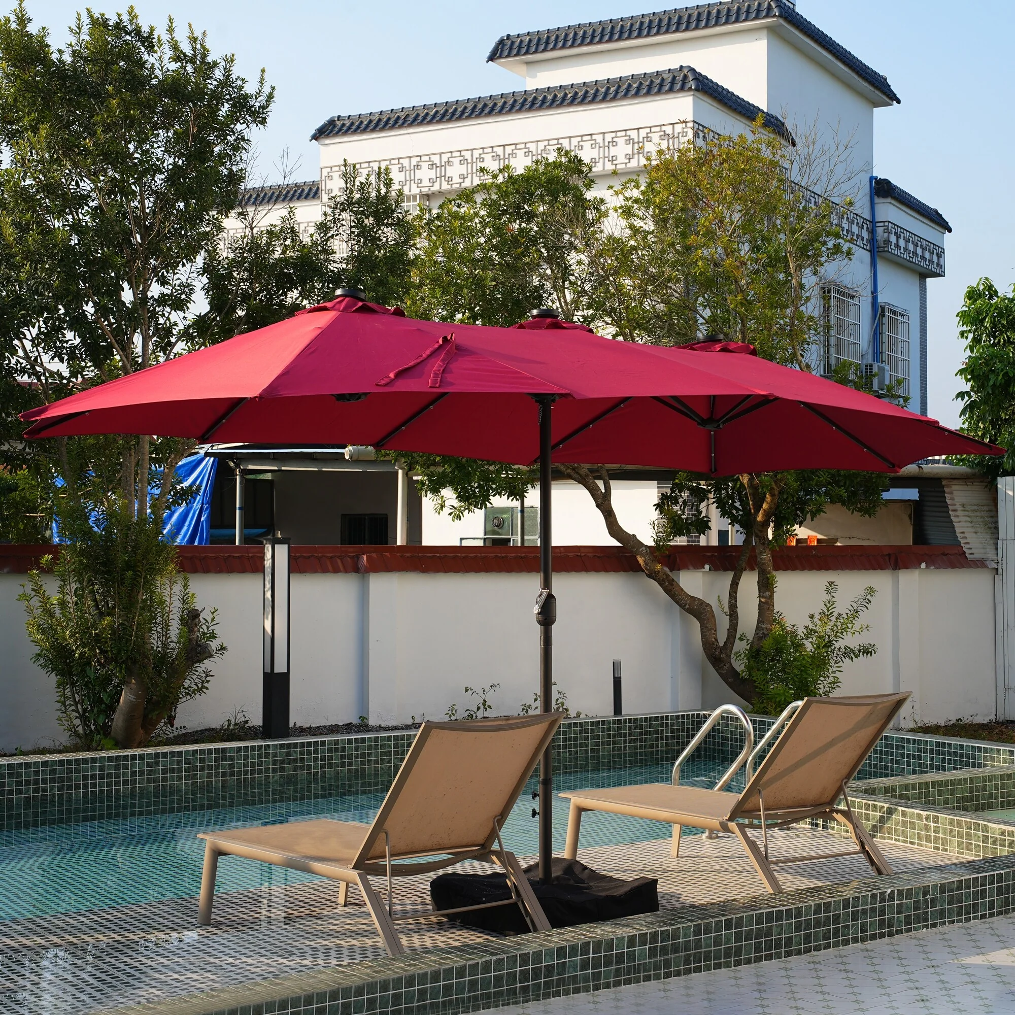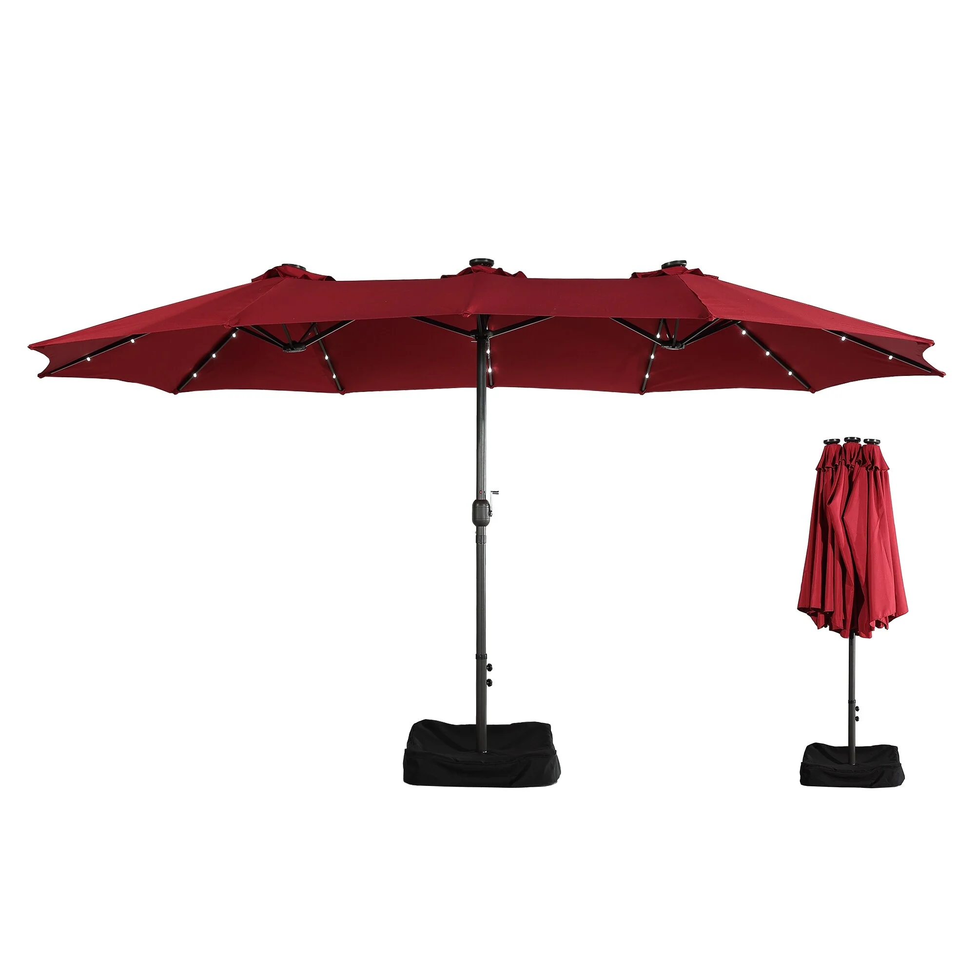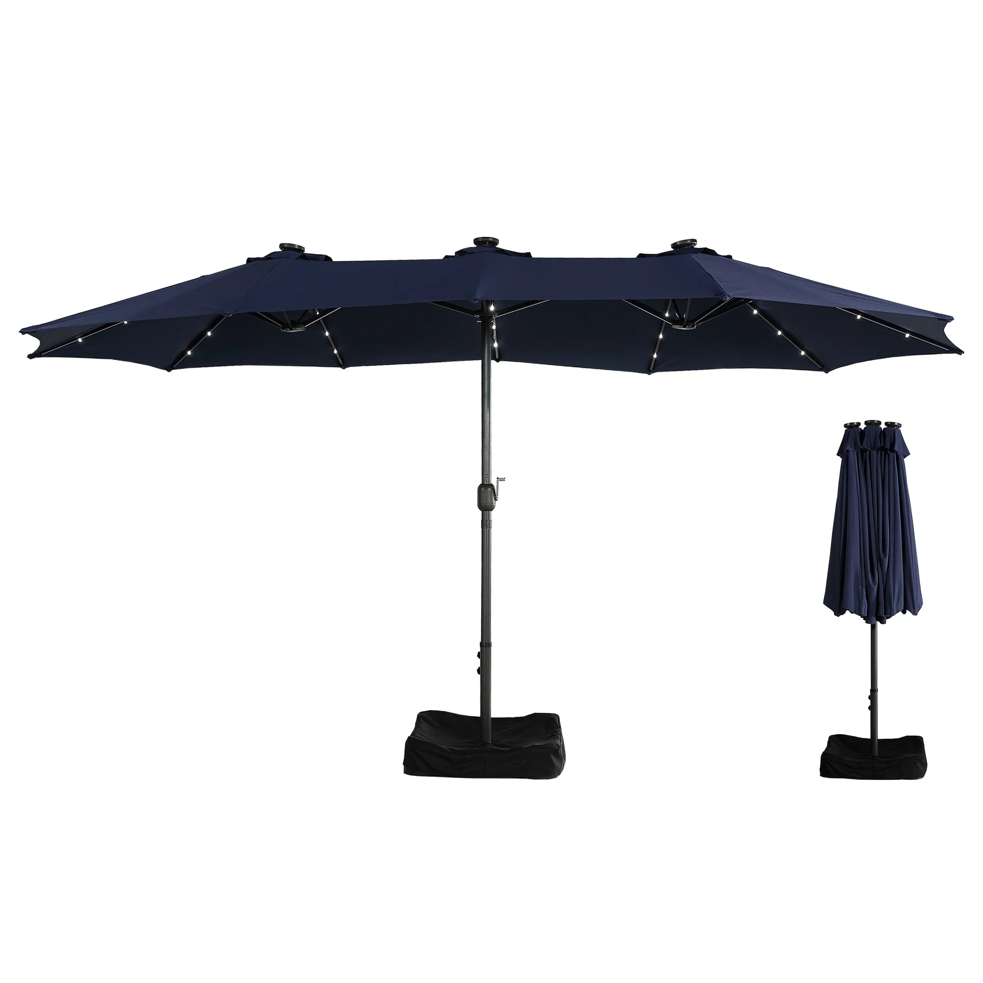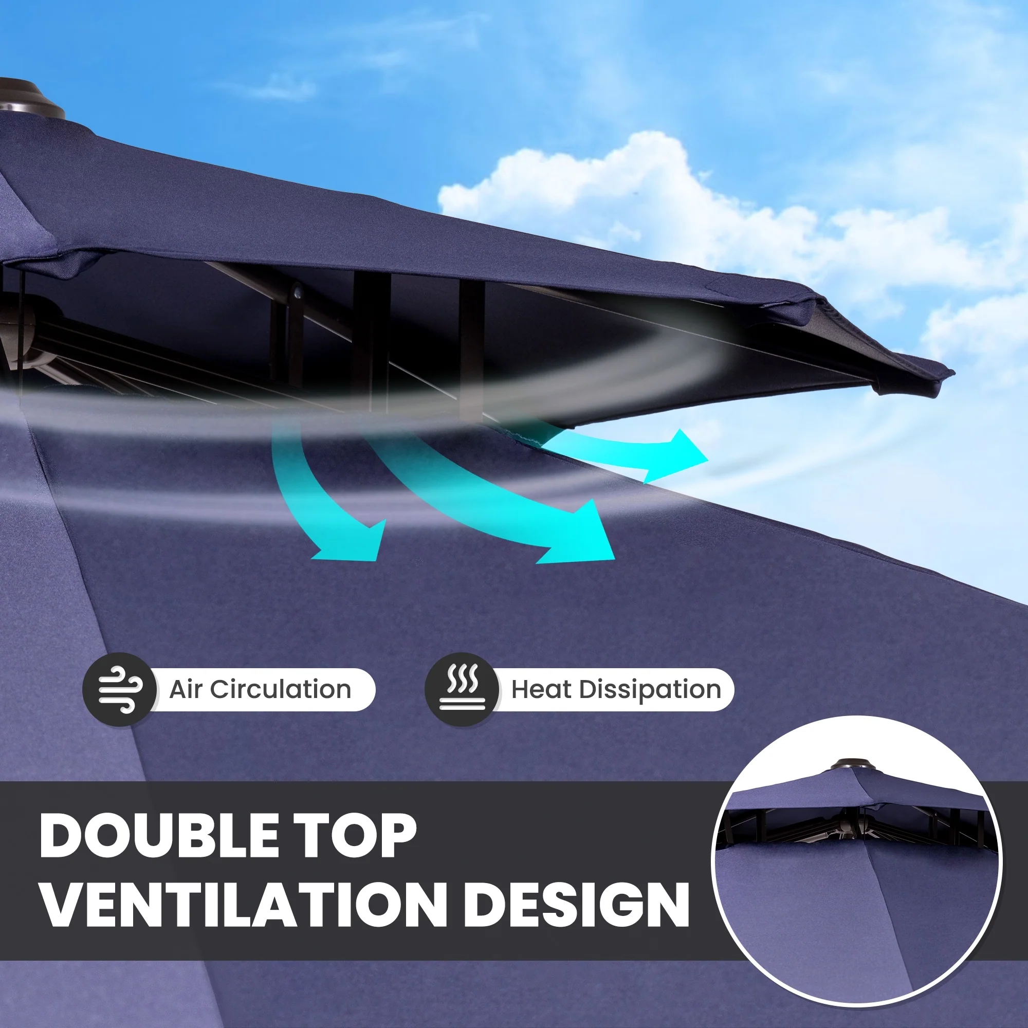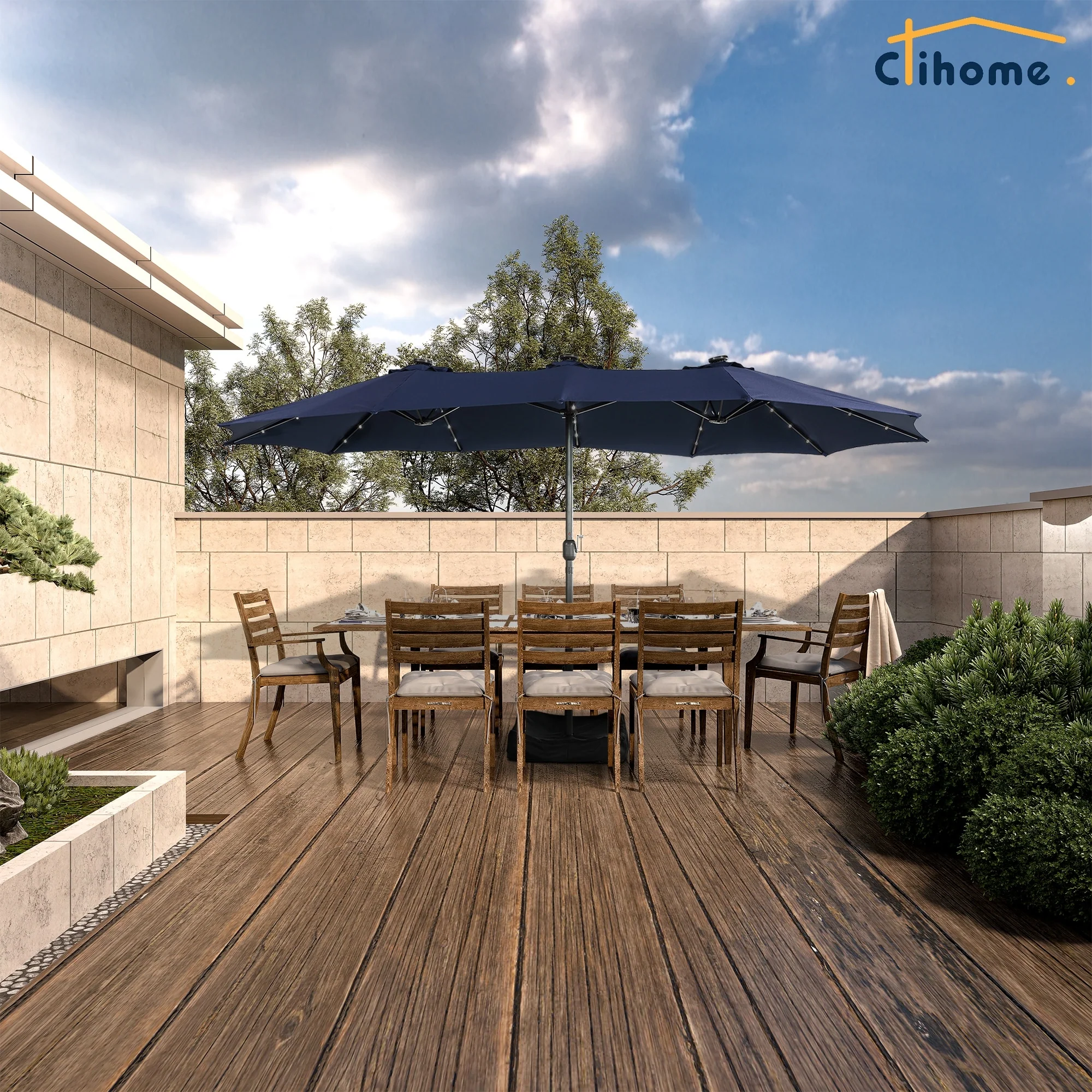 Clihome 15FT Double-Sided Solar Light Market Crank Umbrella with Base