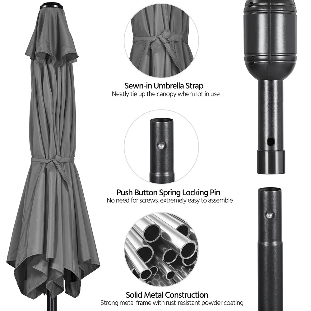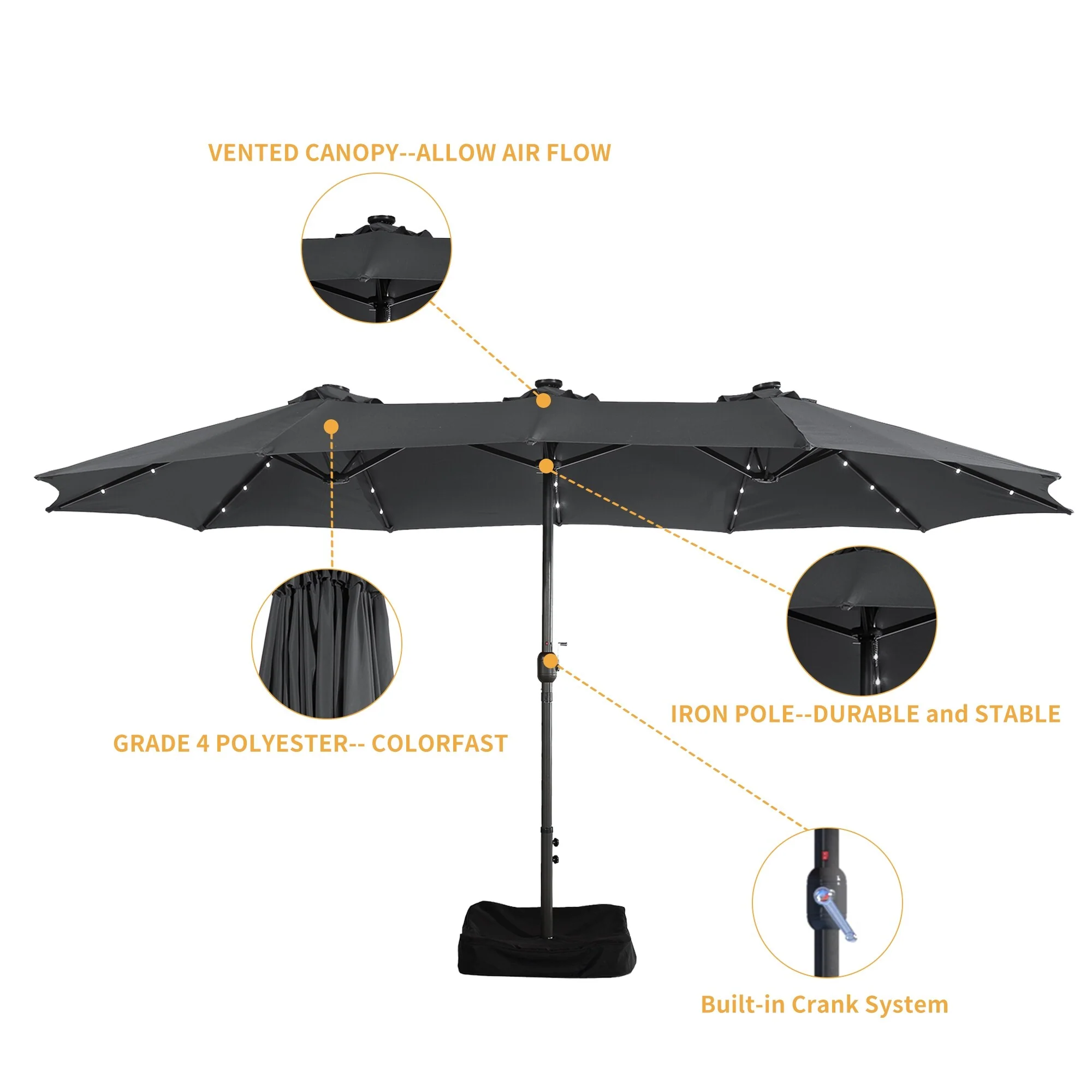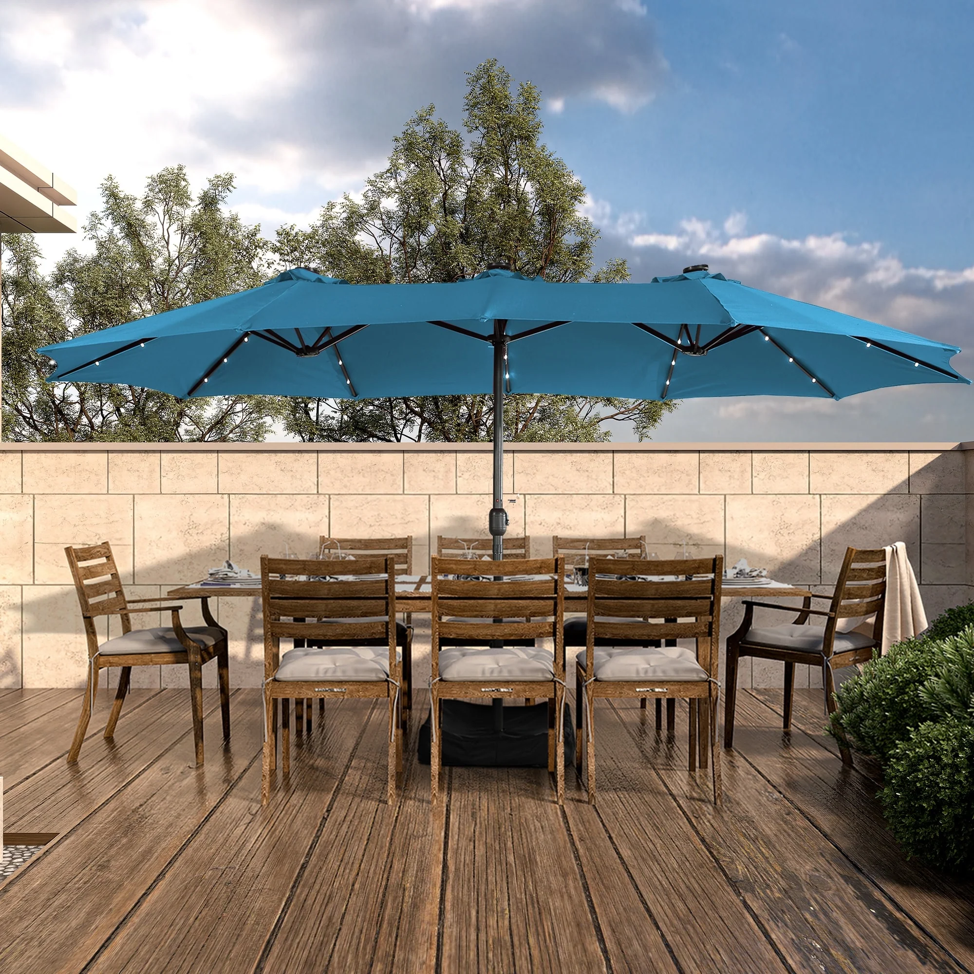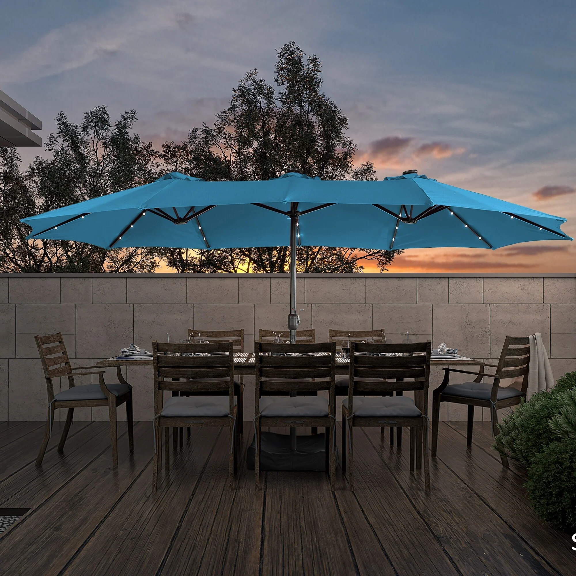 Clihome 15FT Double-Sided Solar Light Market Crank Umbrella with Base