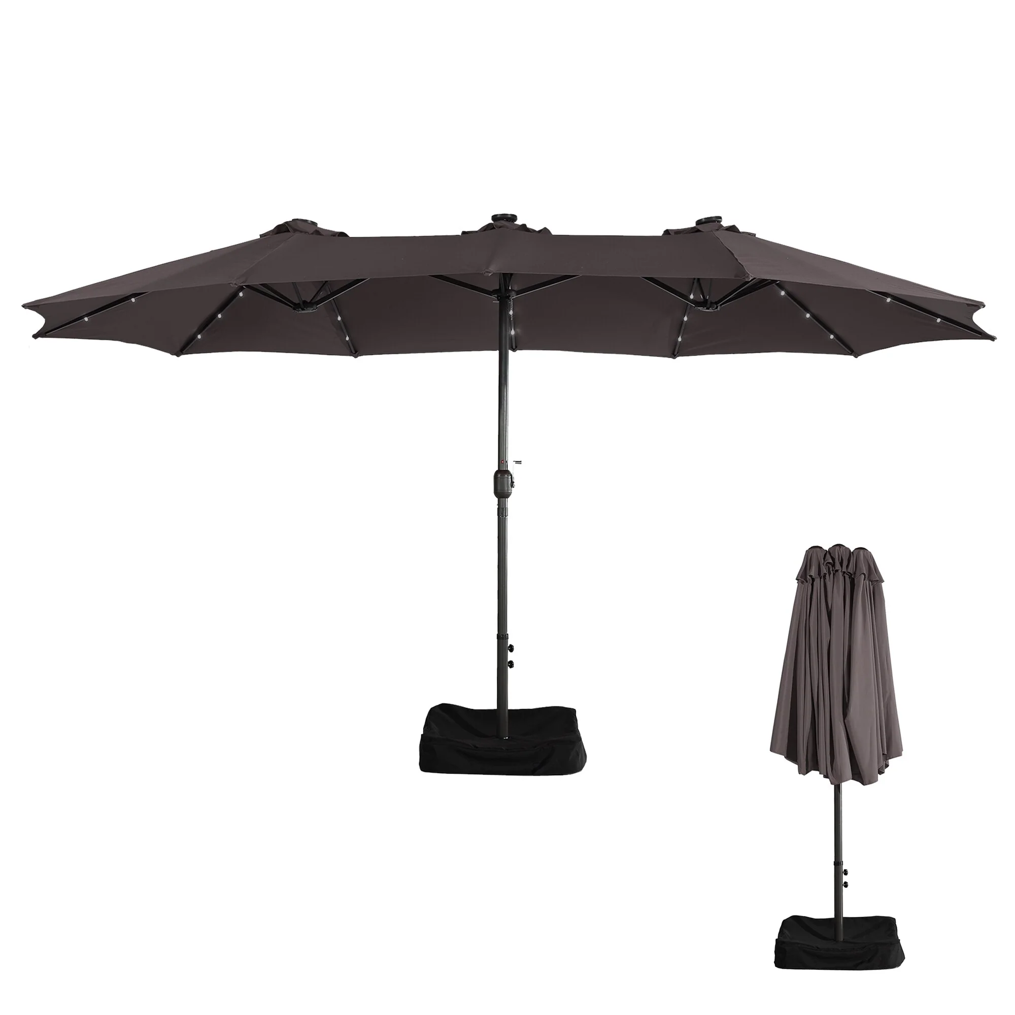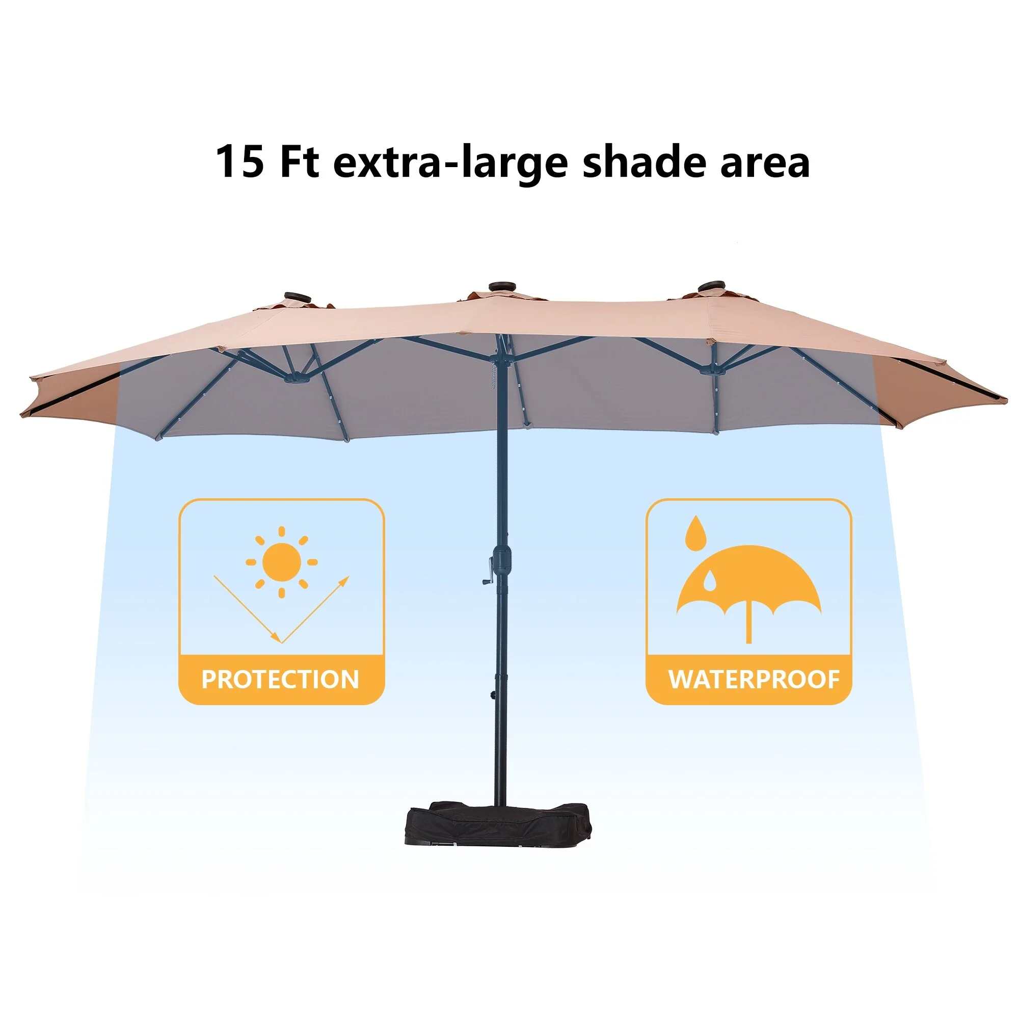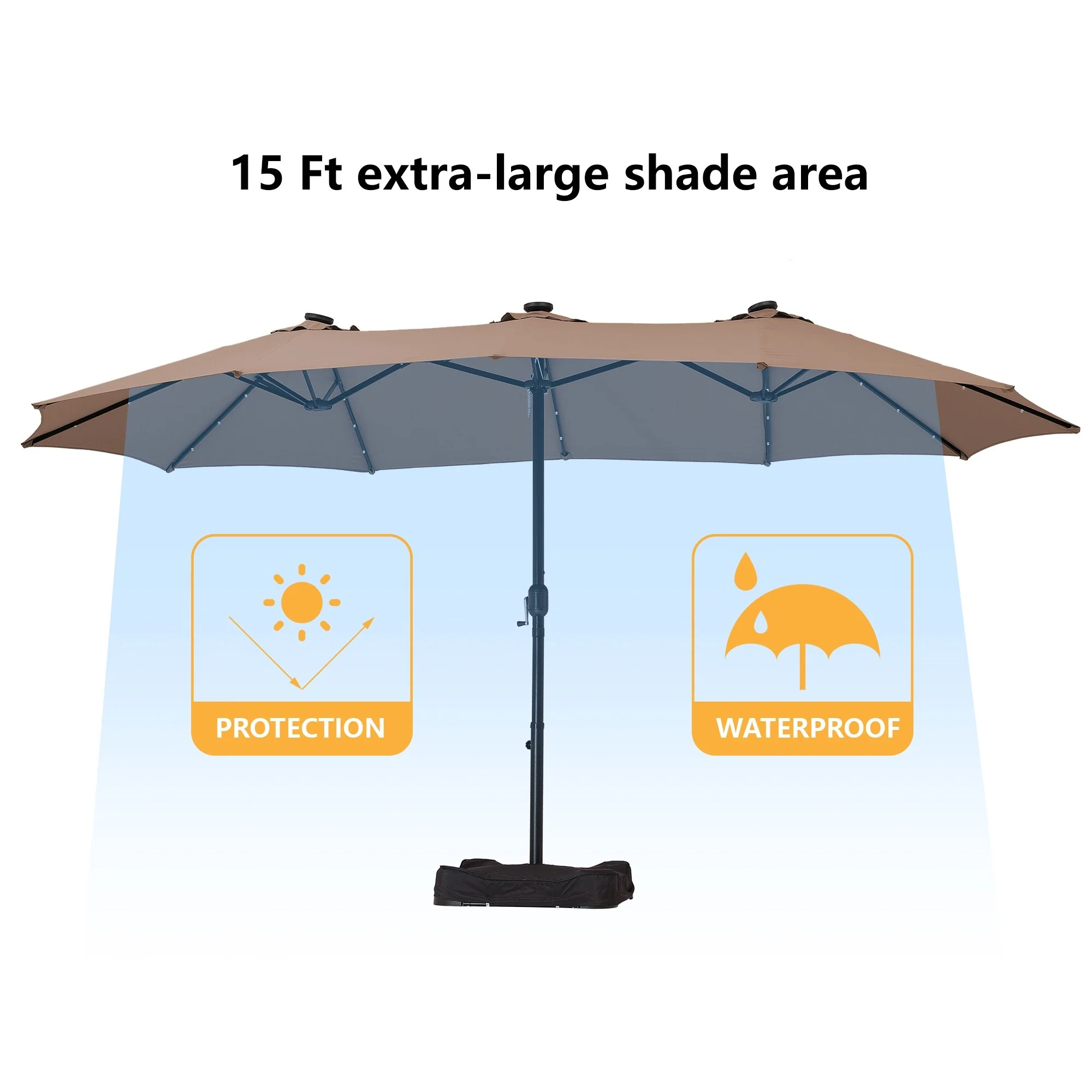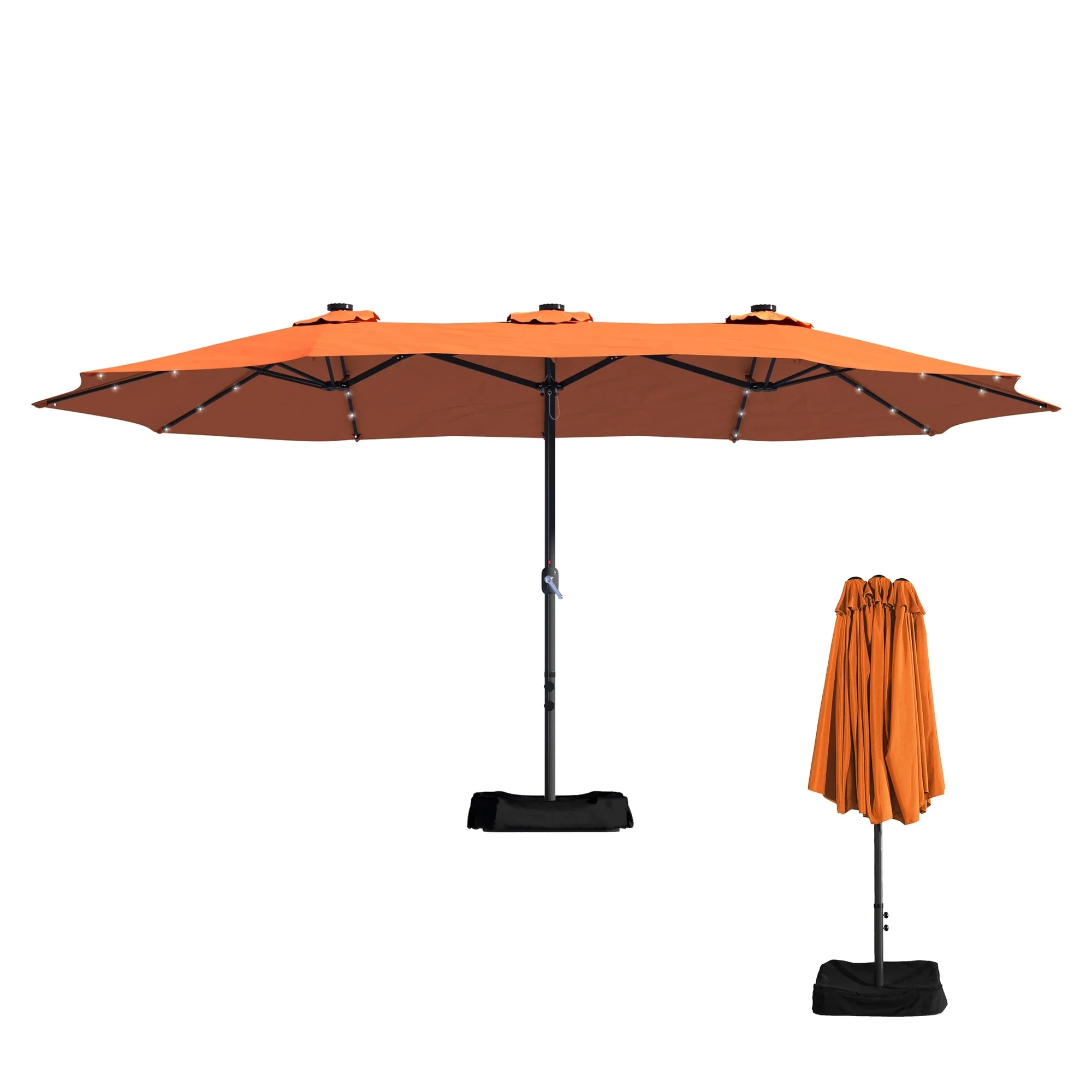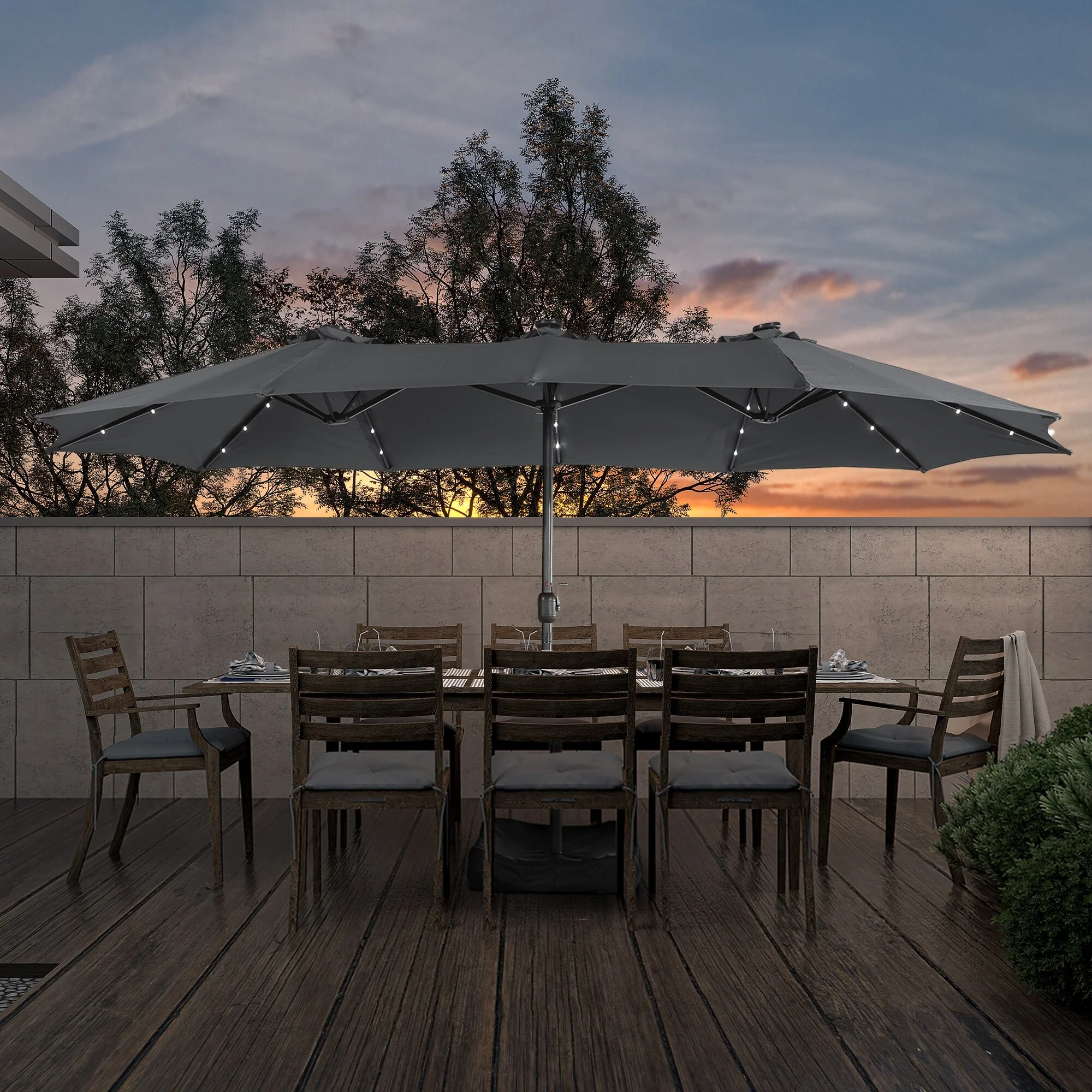 Clihome 15FT Double-Sided Solar Light Market Crank Umbrella with Base
