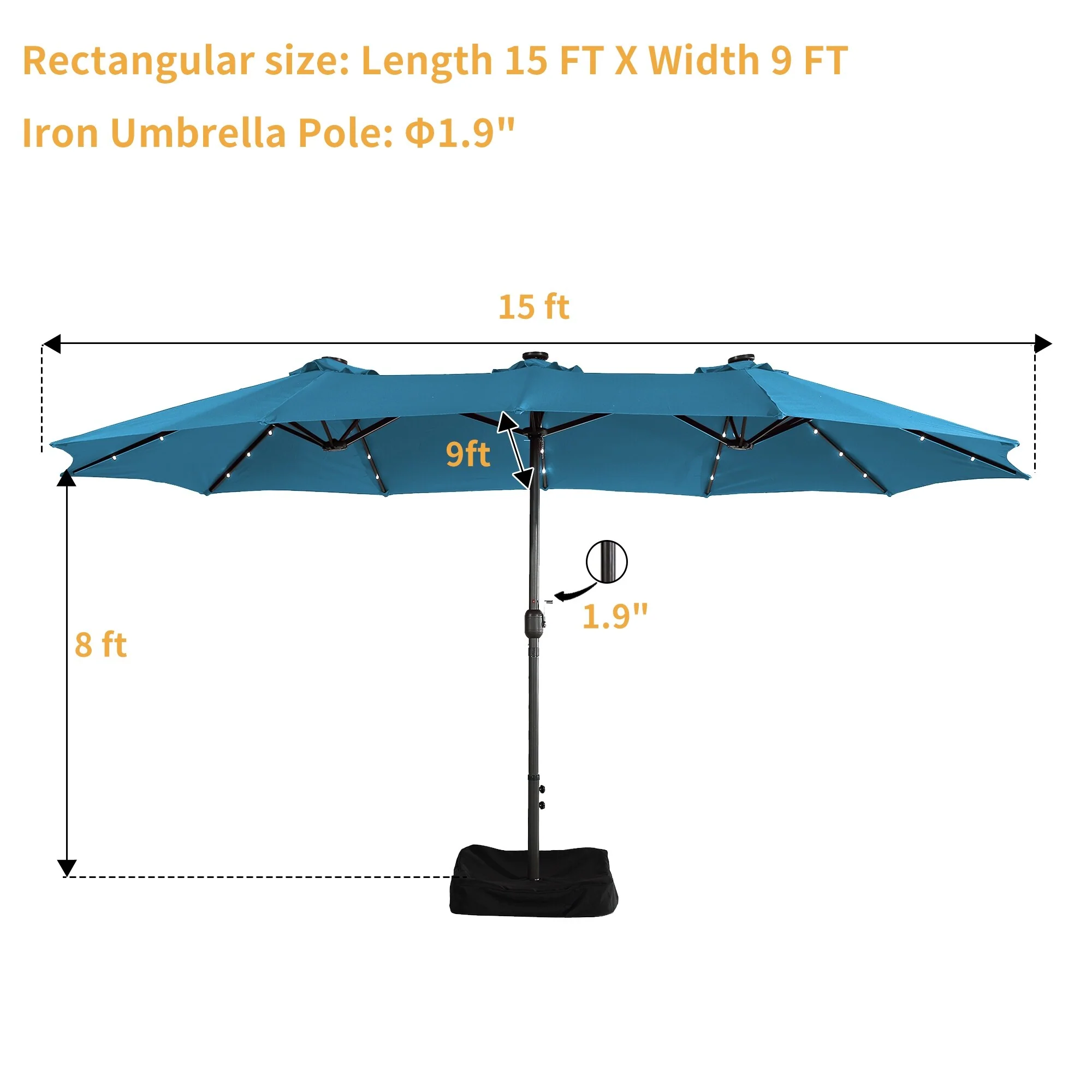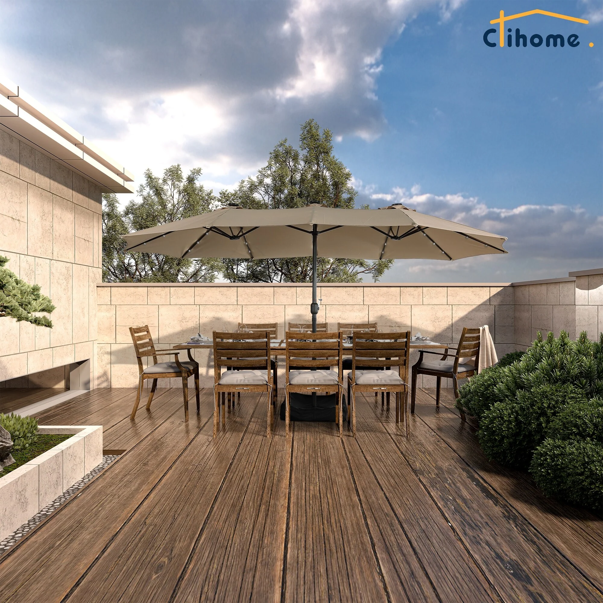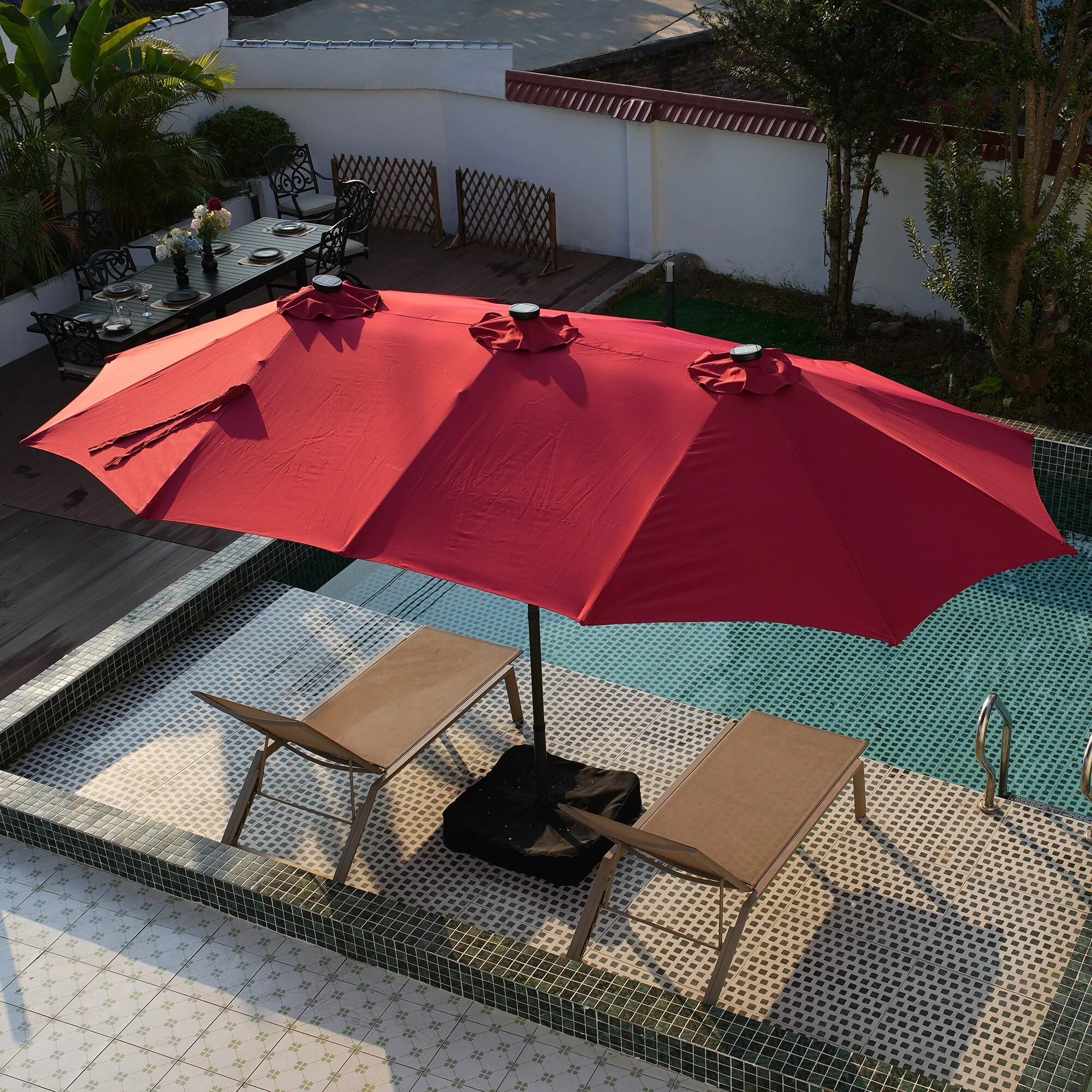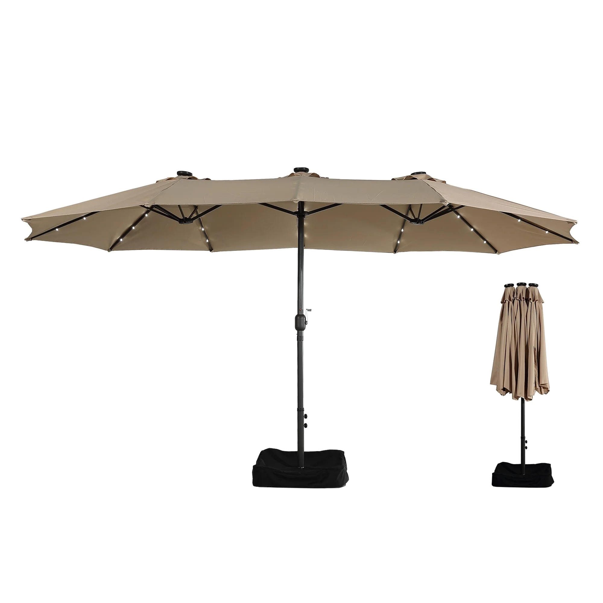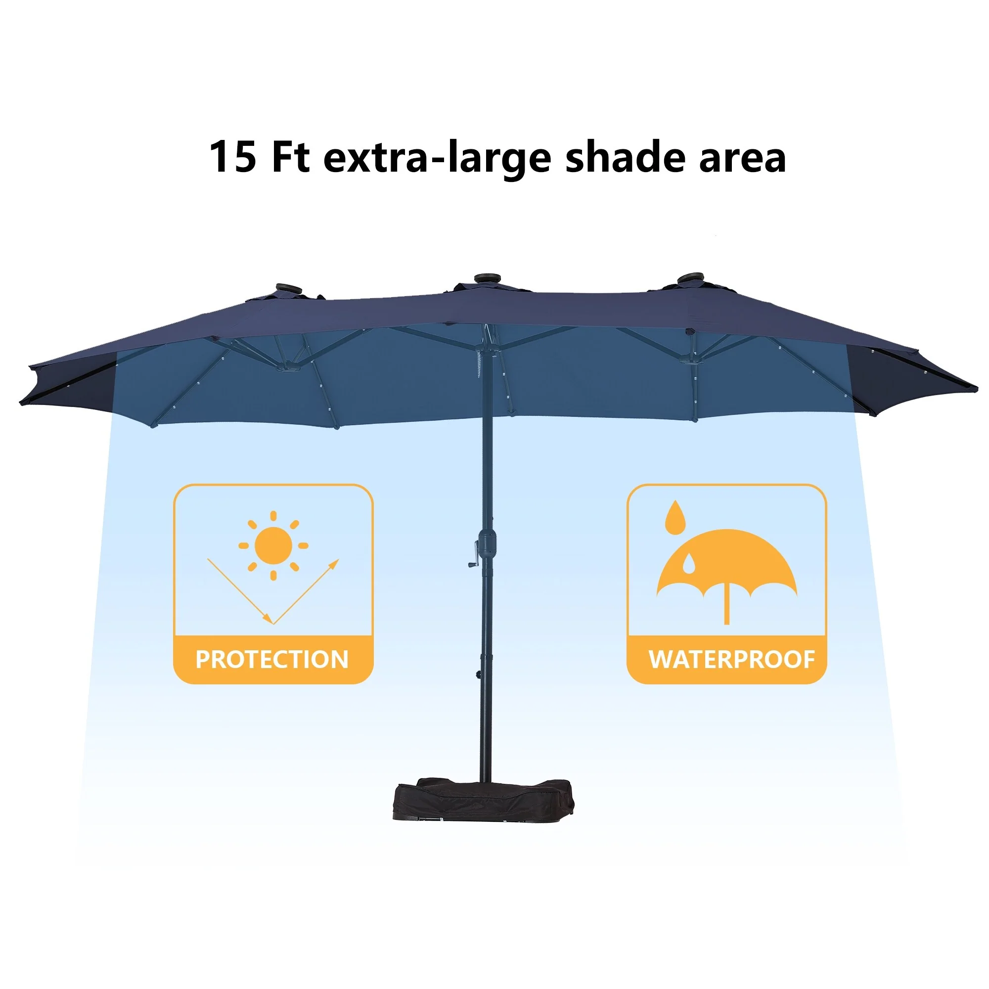 Clihome 15FT Double-Sided Solar Light Market Crank Umbrella with Base