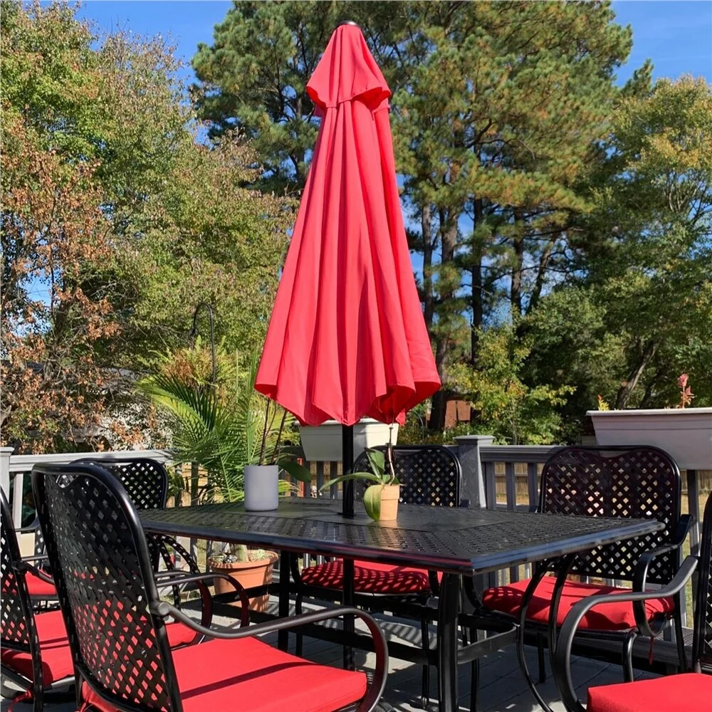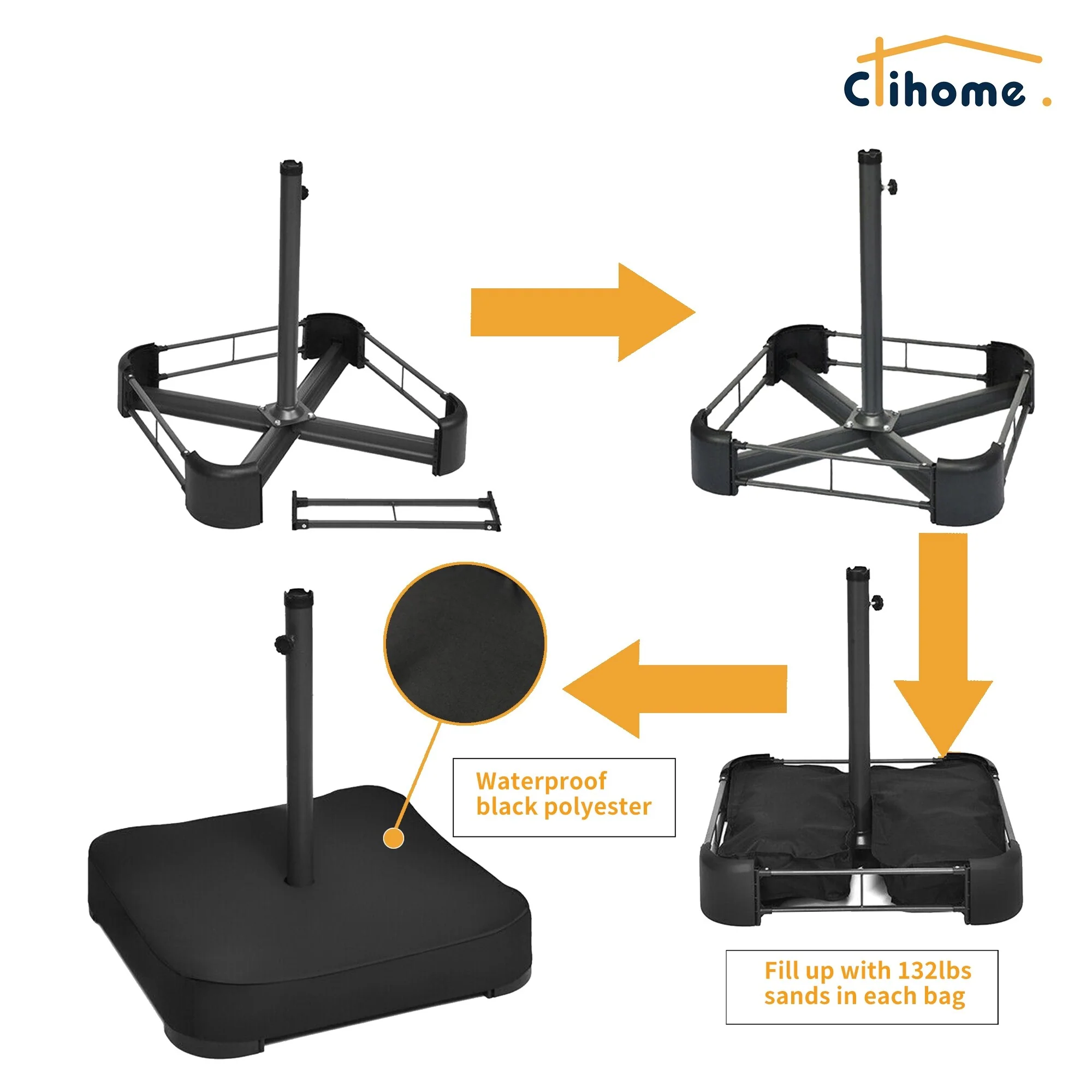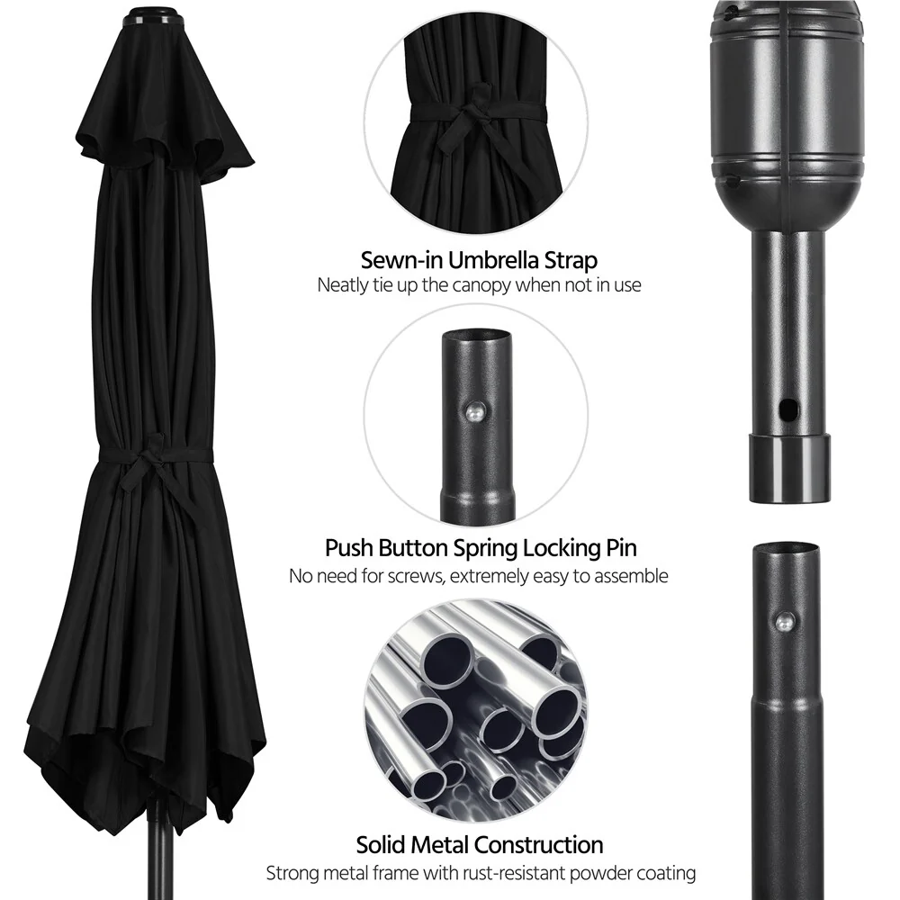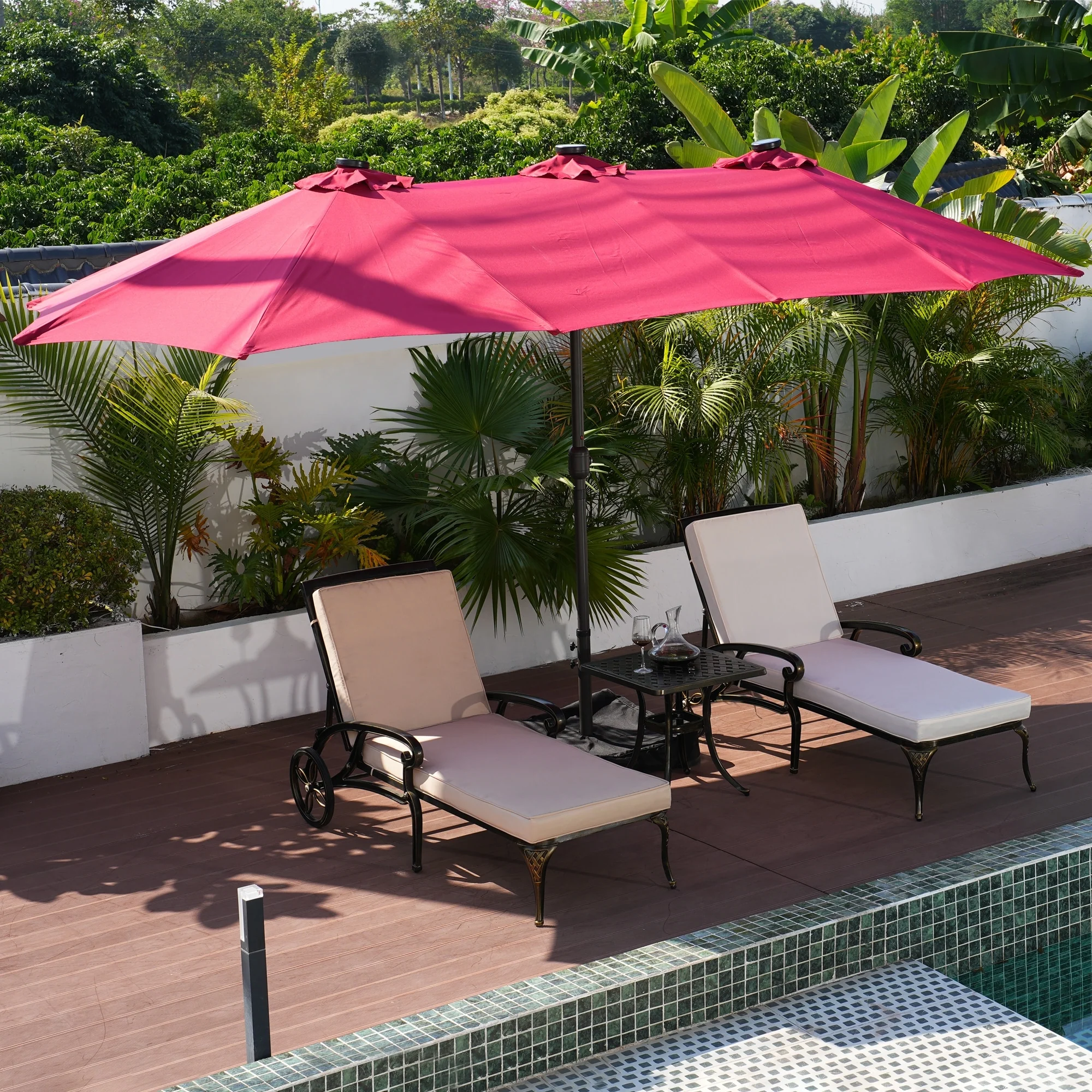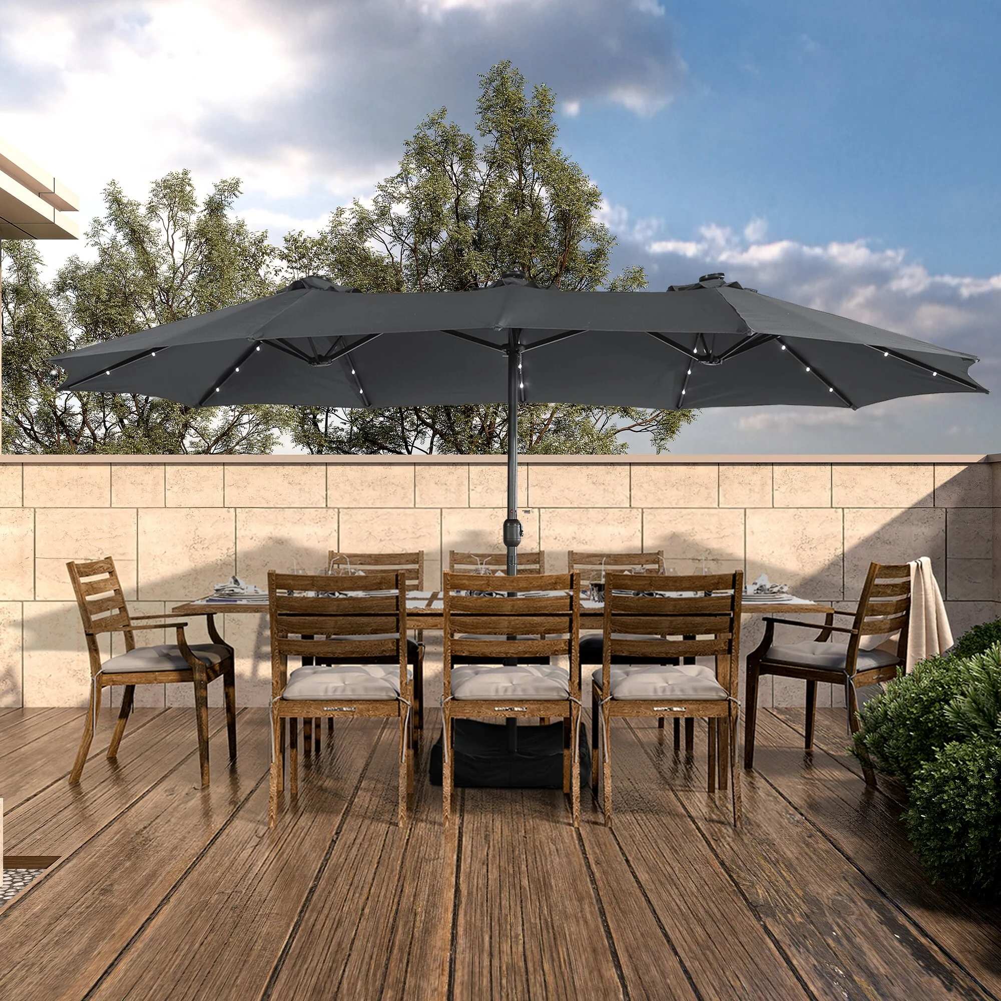 Clihome 15FT Double-Sided Solar Light Market Crank Umbrella with Base