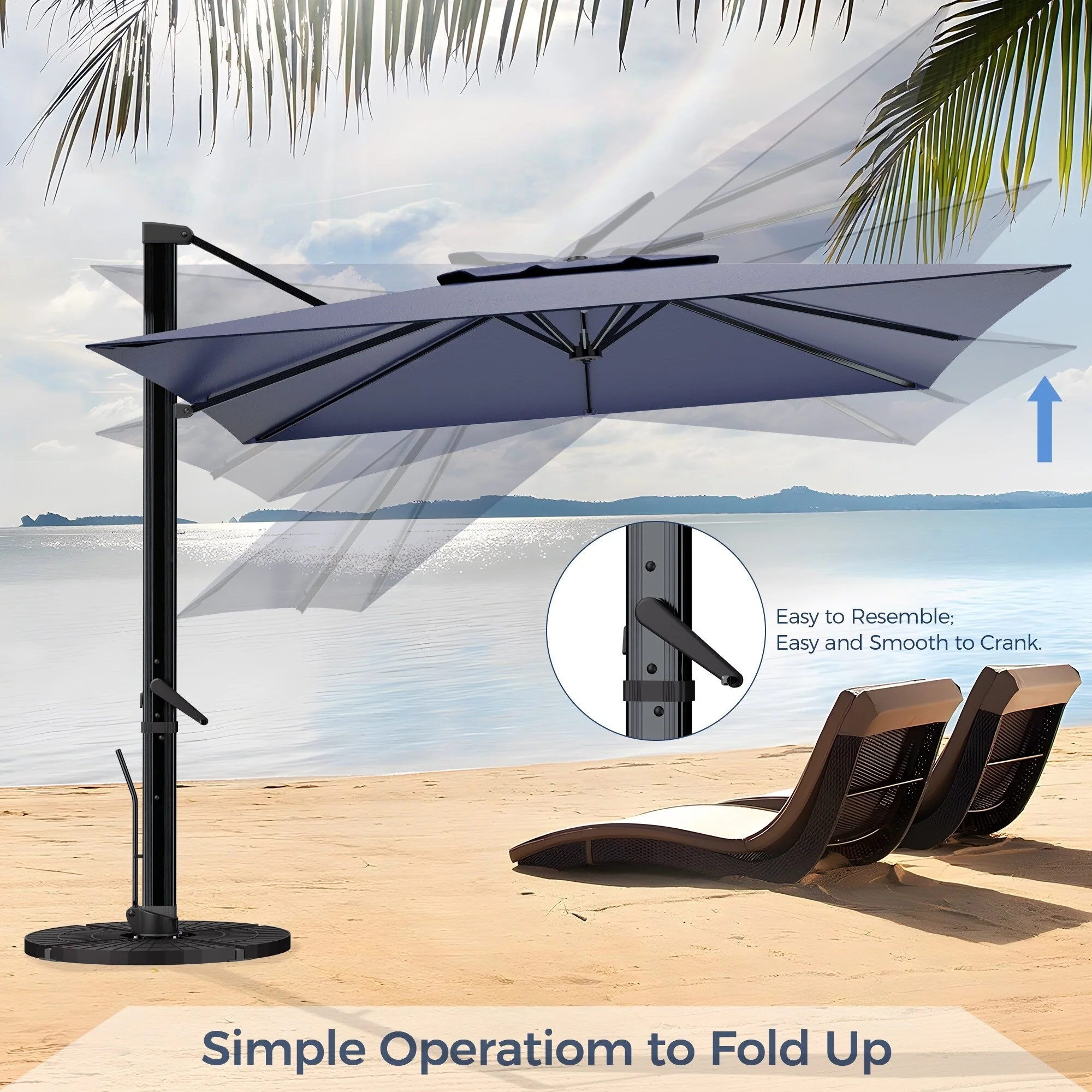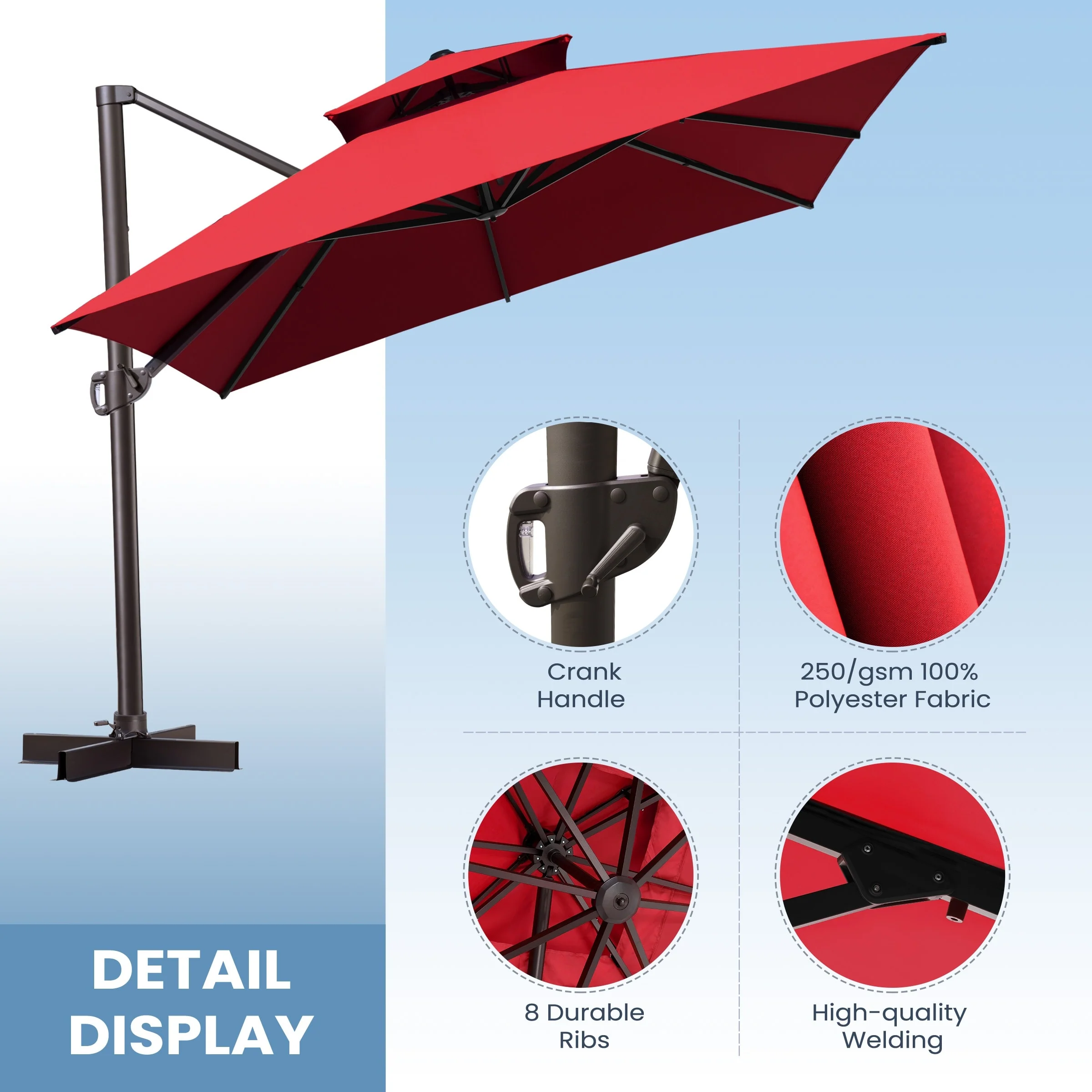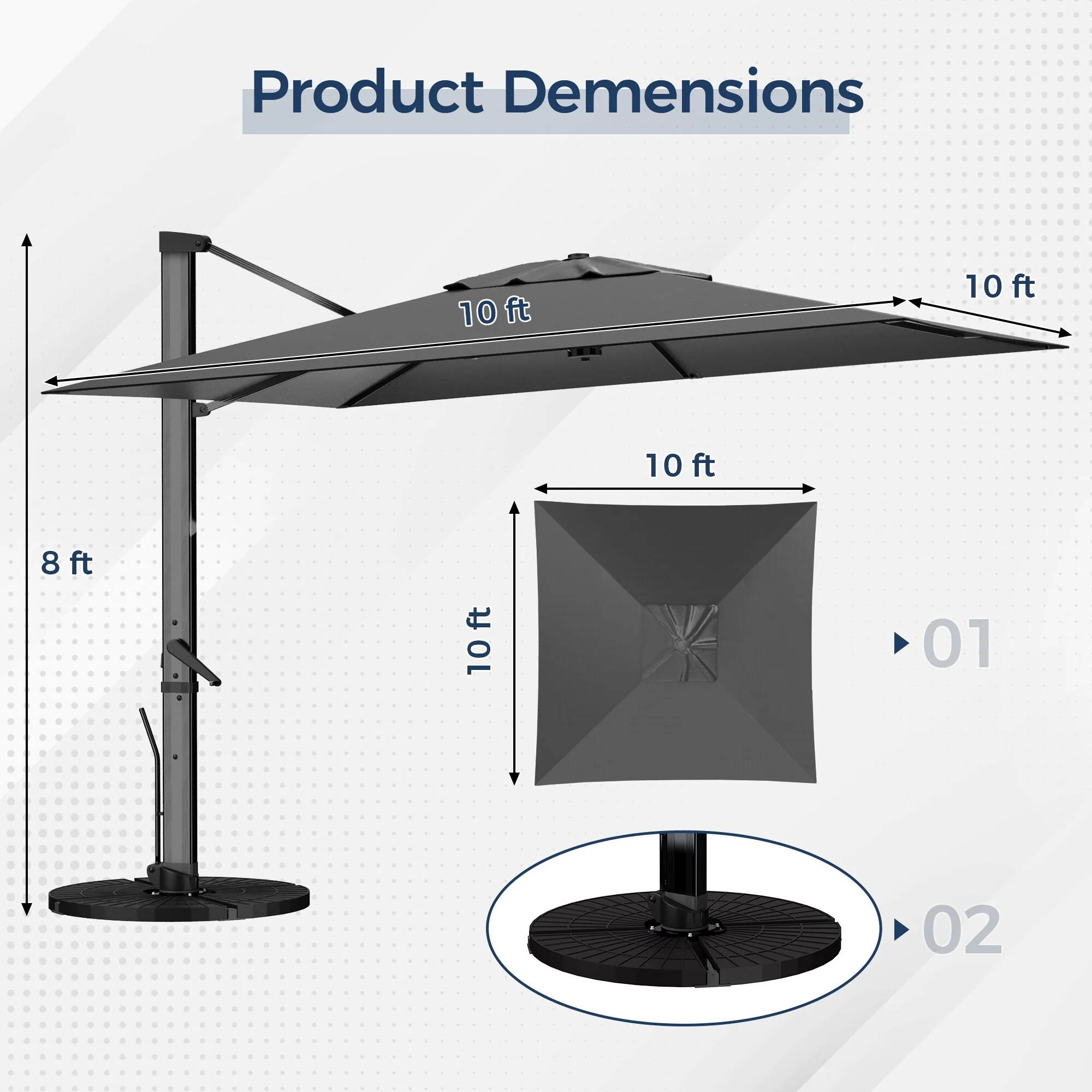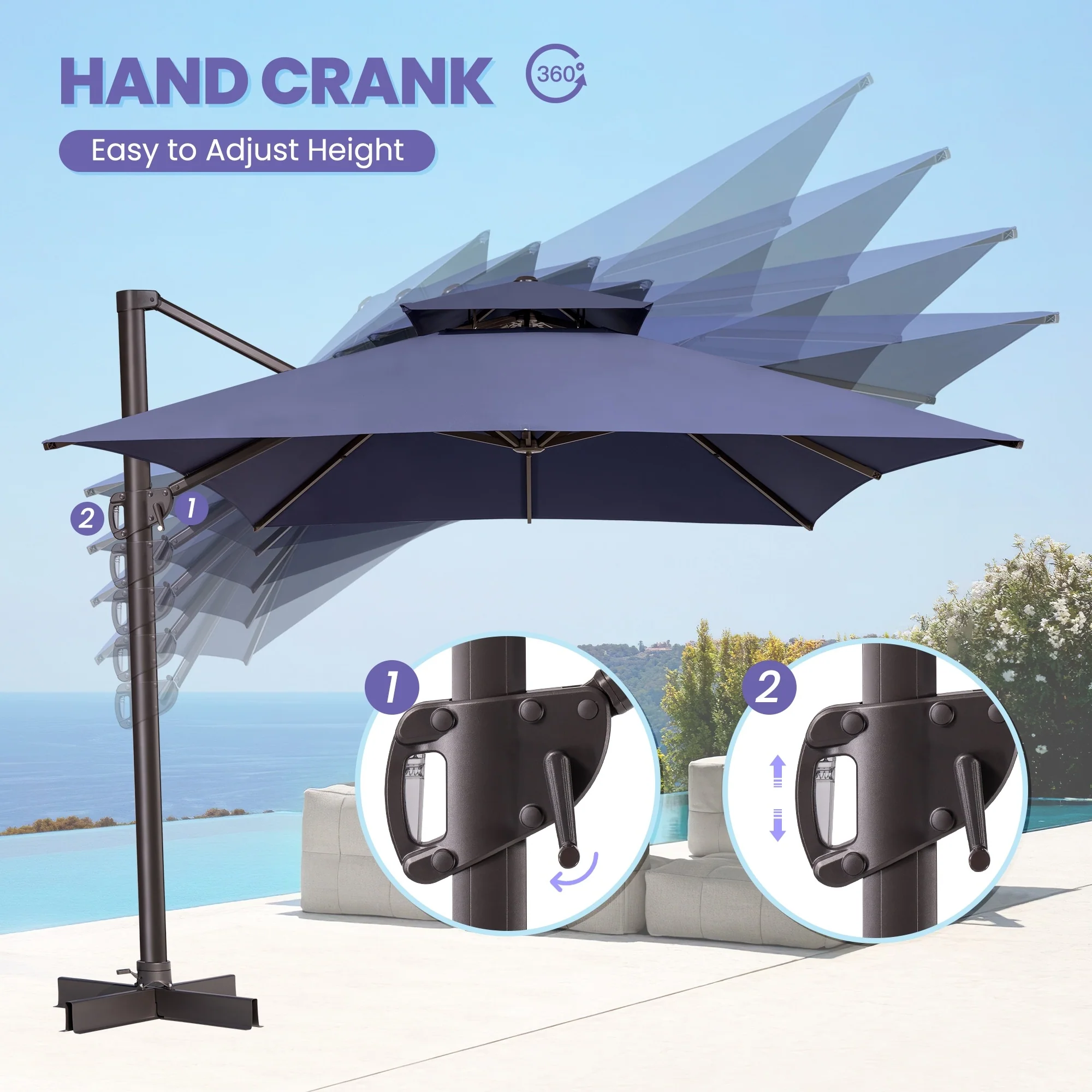 PURPLE LEAF 10ft Square Cantilever Umbrellas with Tilt-and-Crank with Base