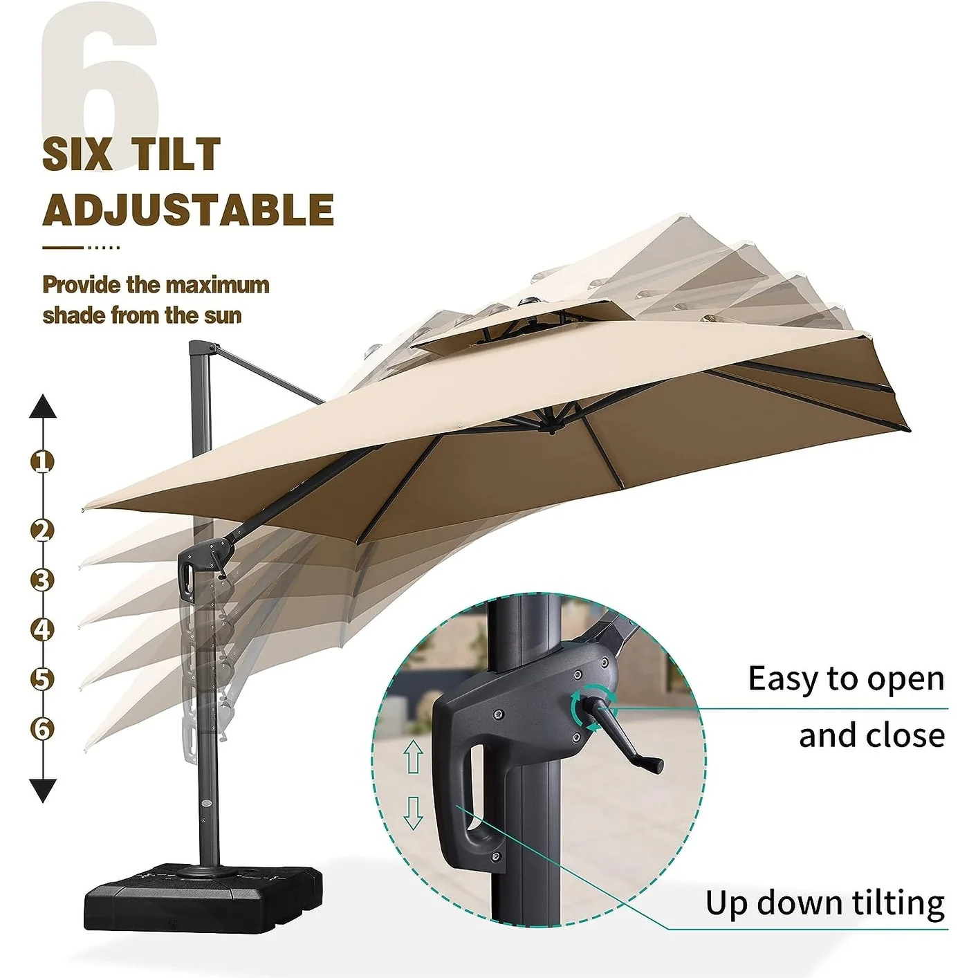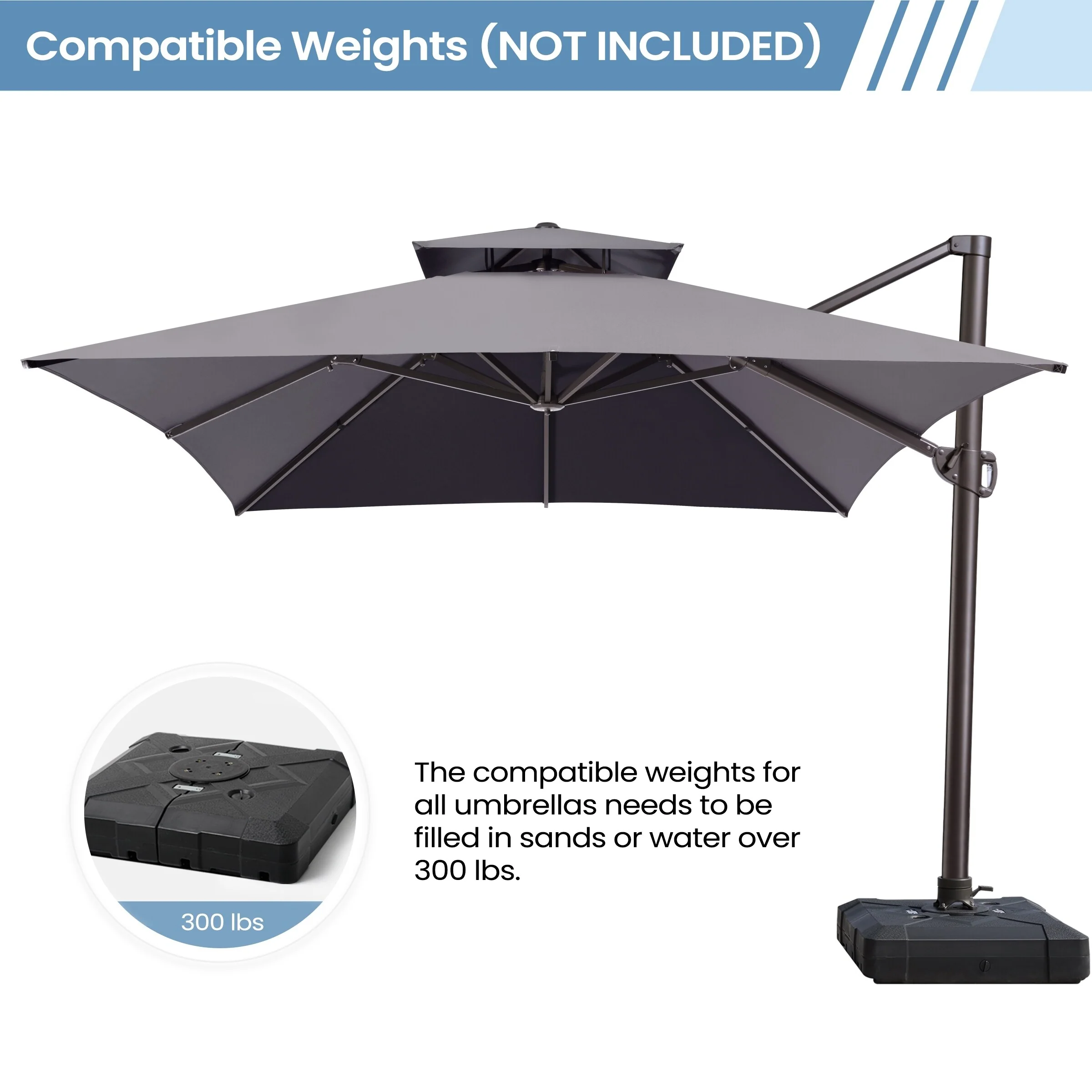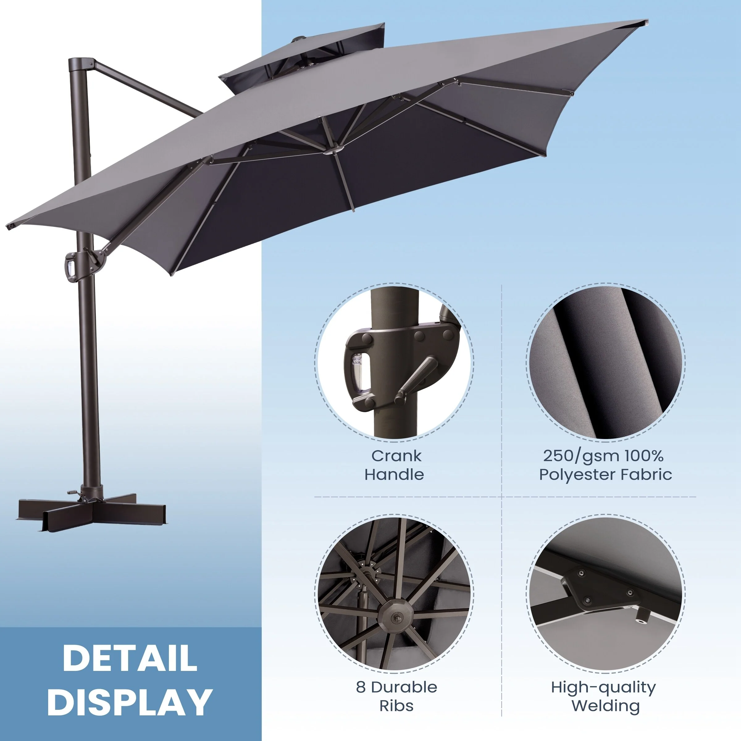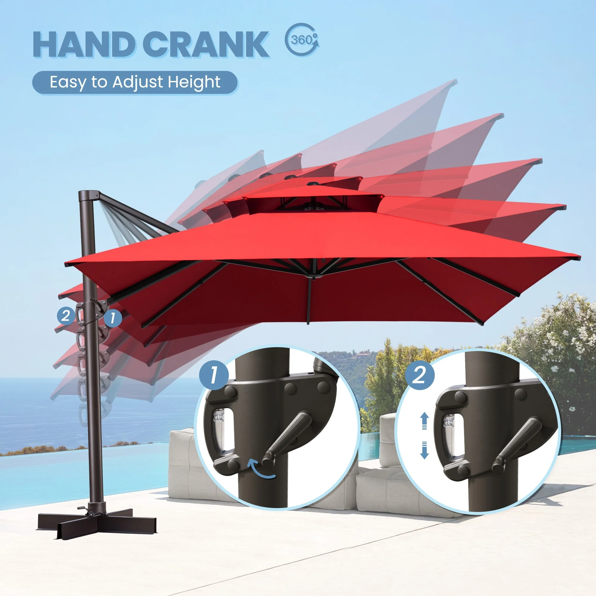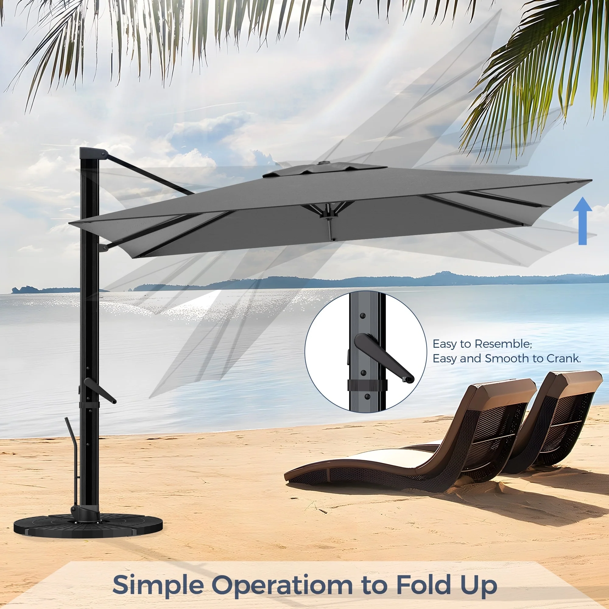 PURPLE LEAF 10ft Square Cantilever Umbrellas with Tilt-and-Crank with Base