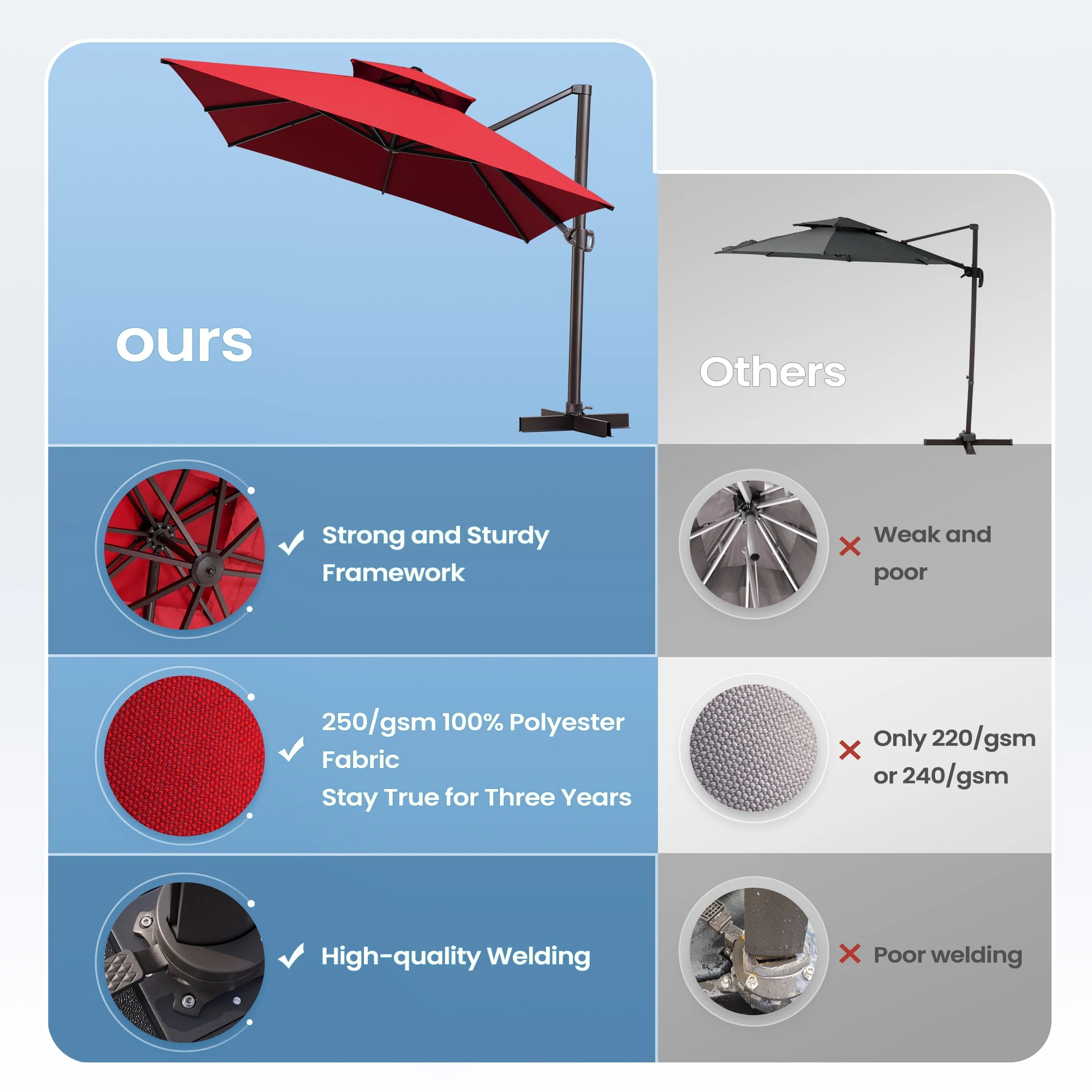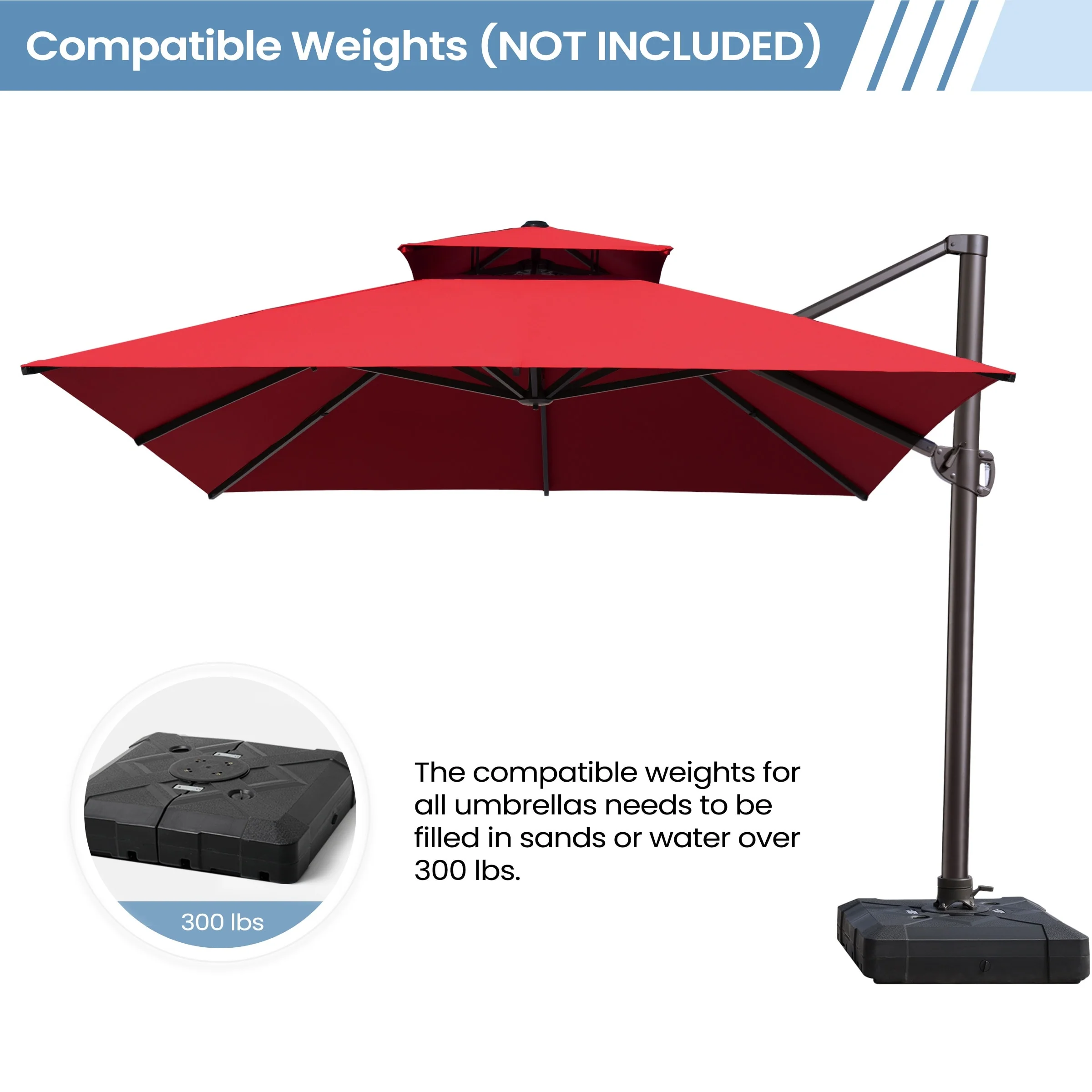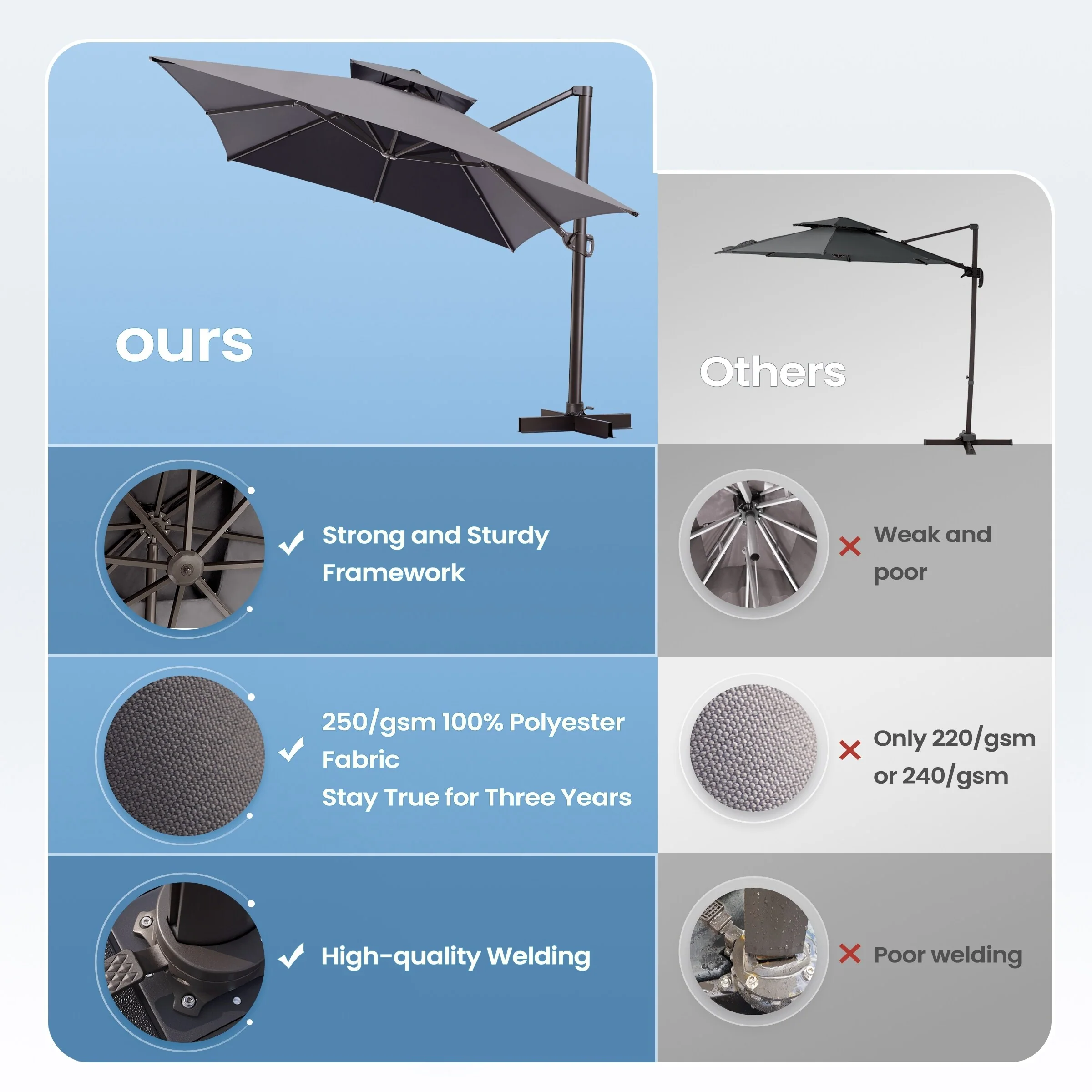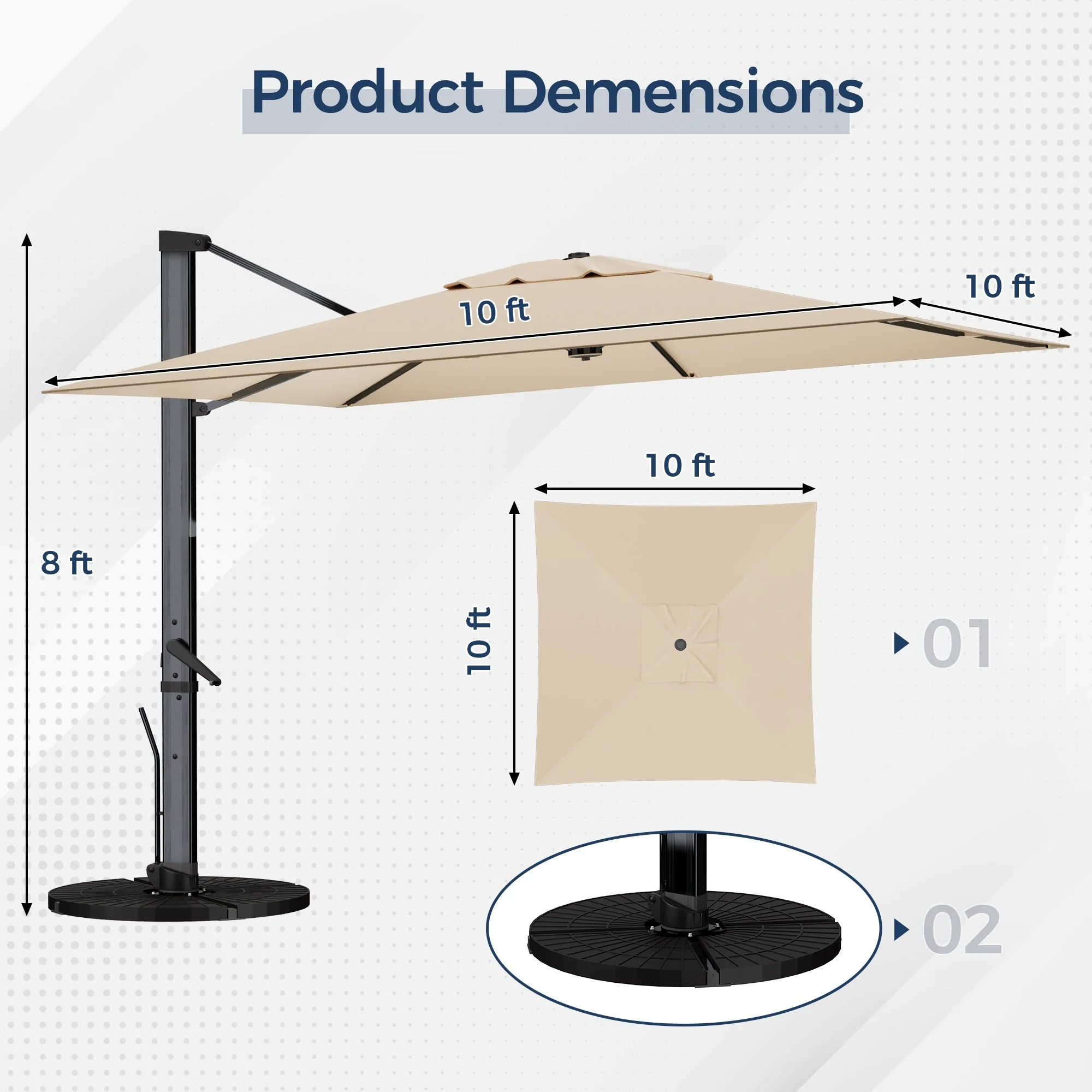 PURPLE LEAF 10ft Square Cantilever Umbrellas with Tilt-and-Crank with Base