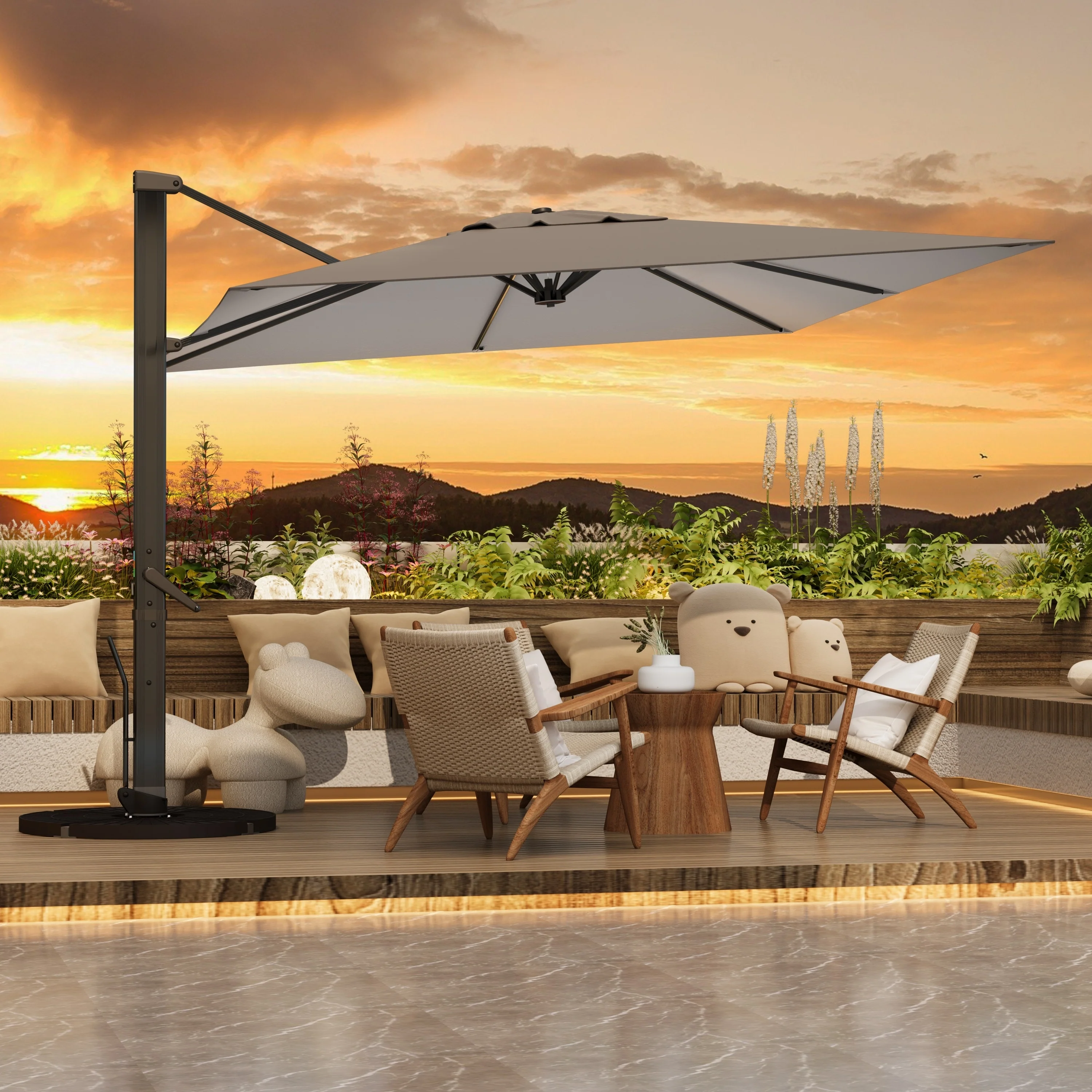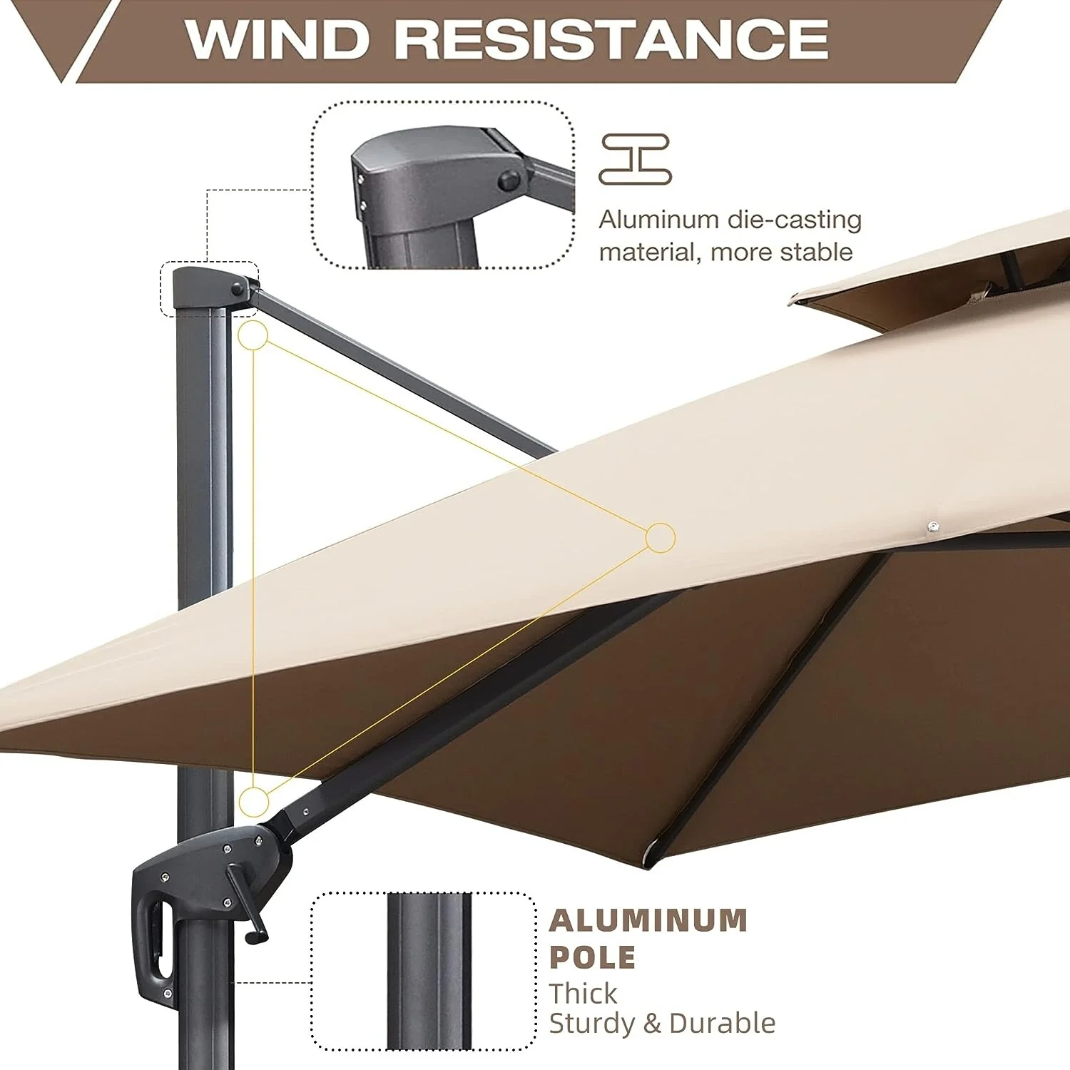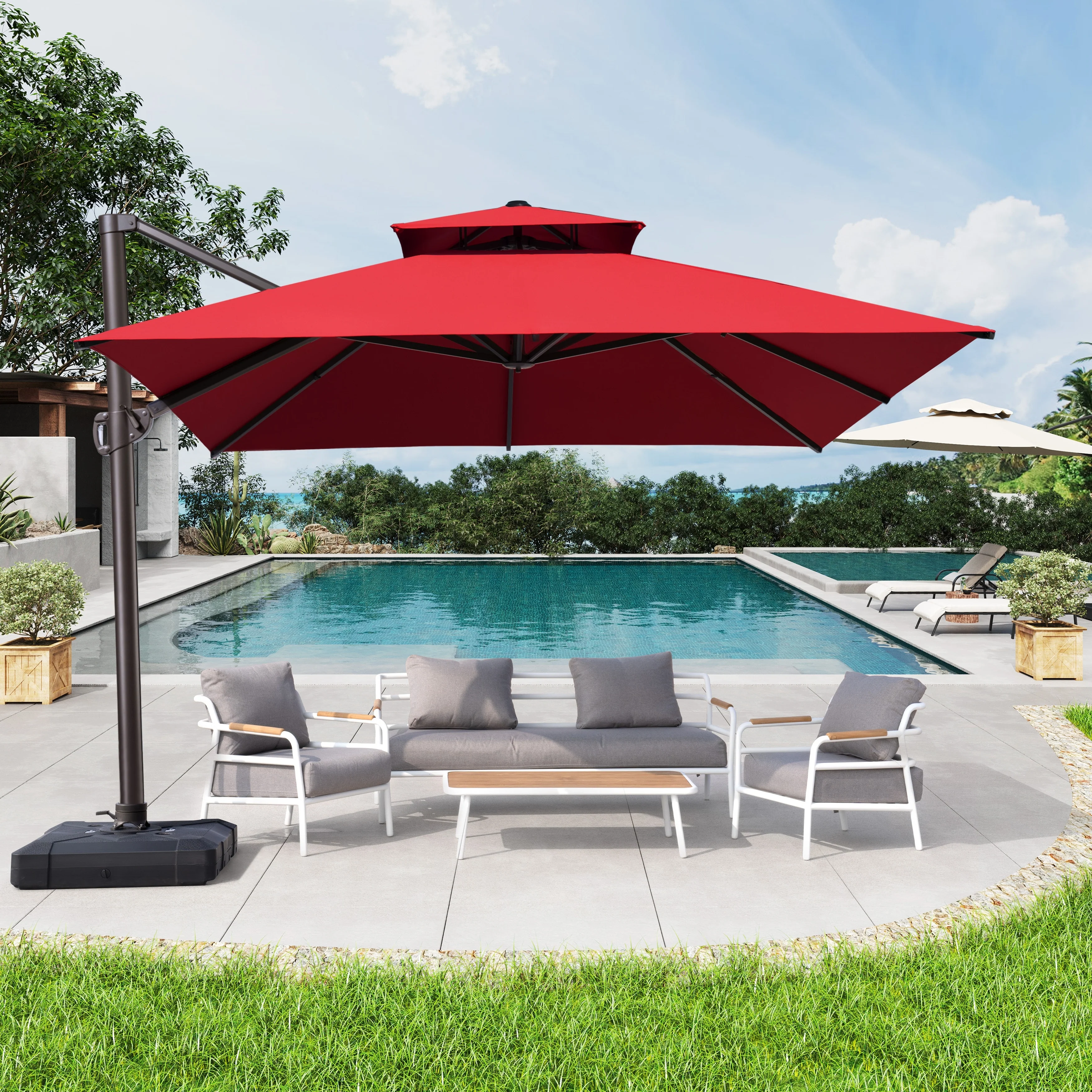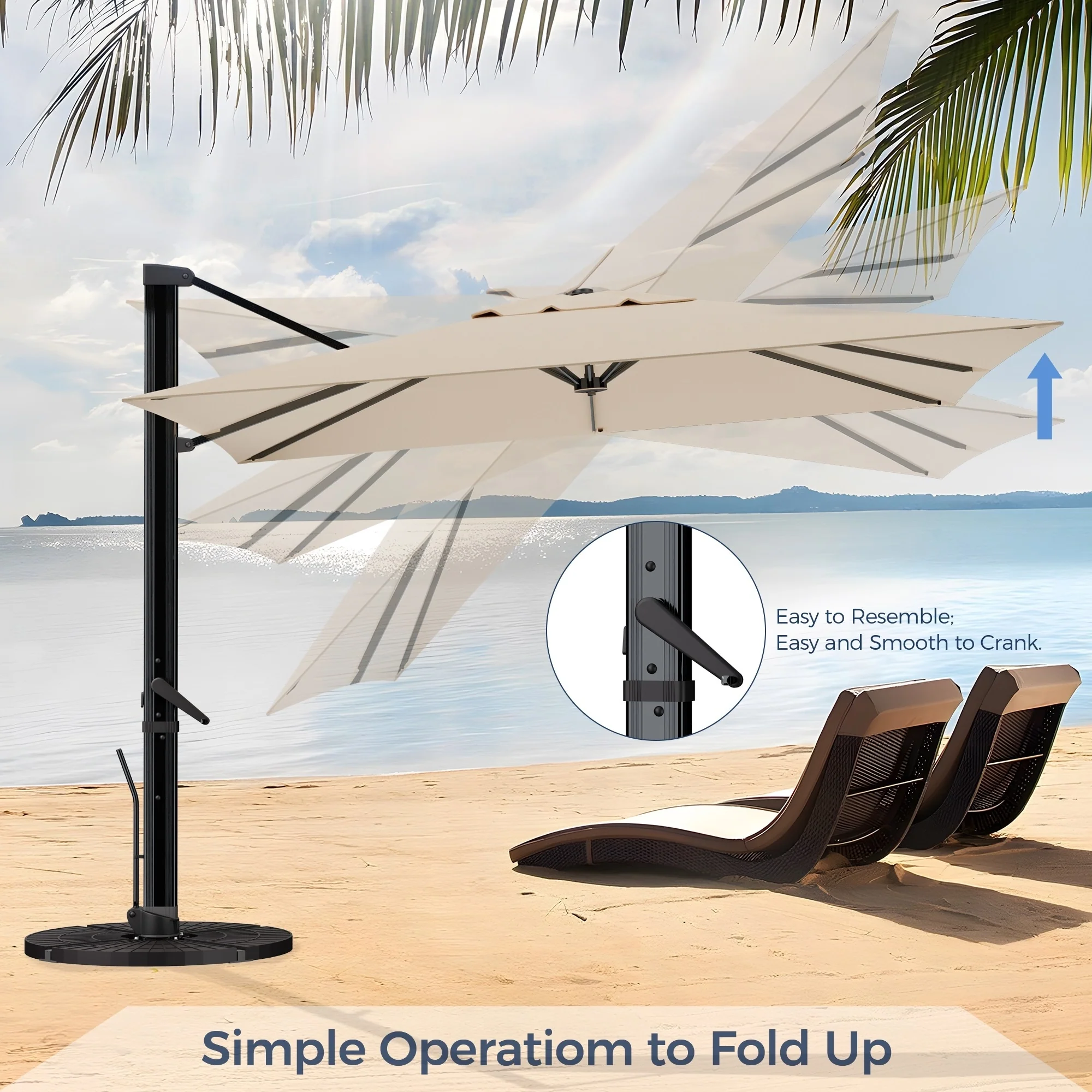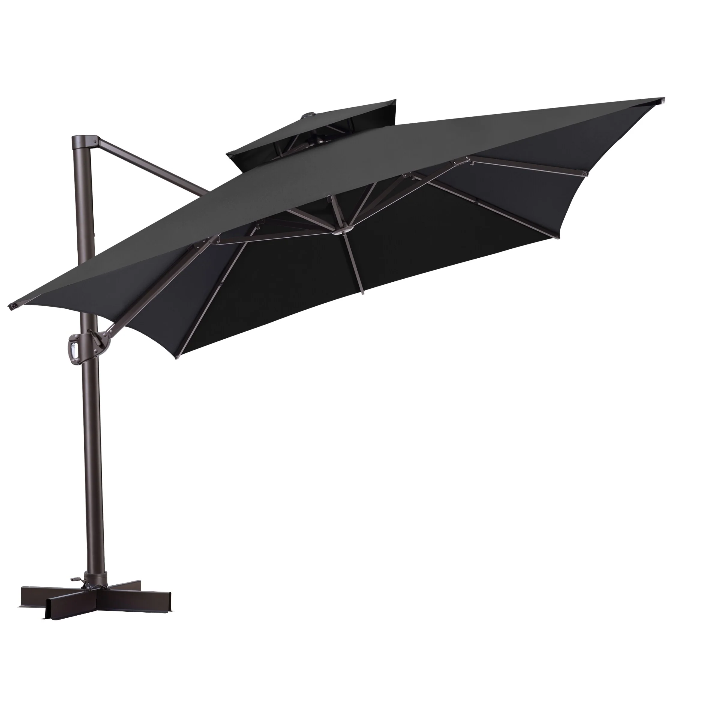 PURPLE LEAF 10ft Square Cantilever Umbrellas with Tilt-and-Crank with Base