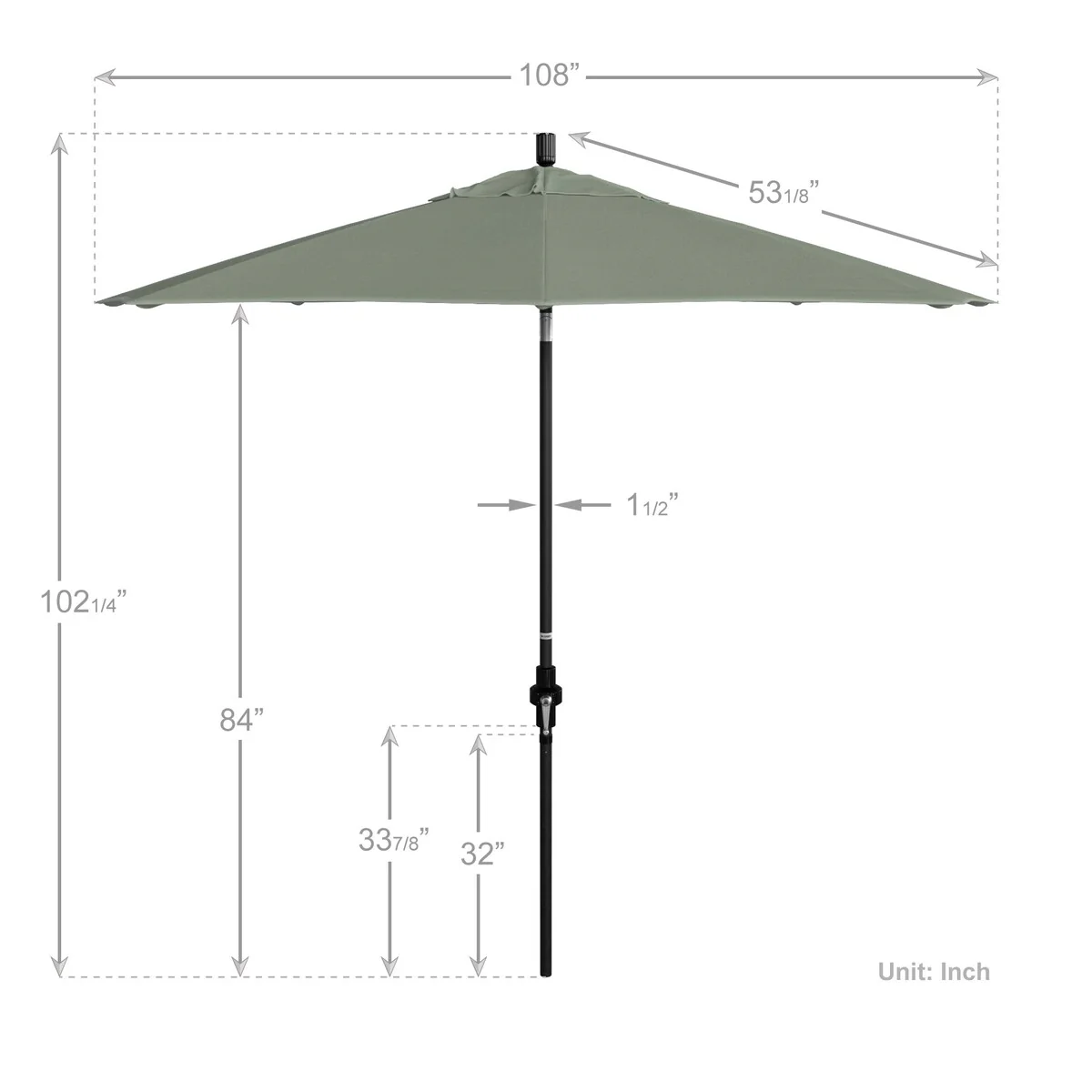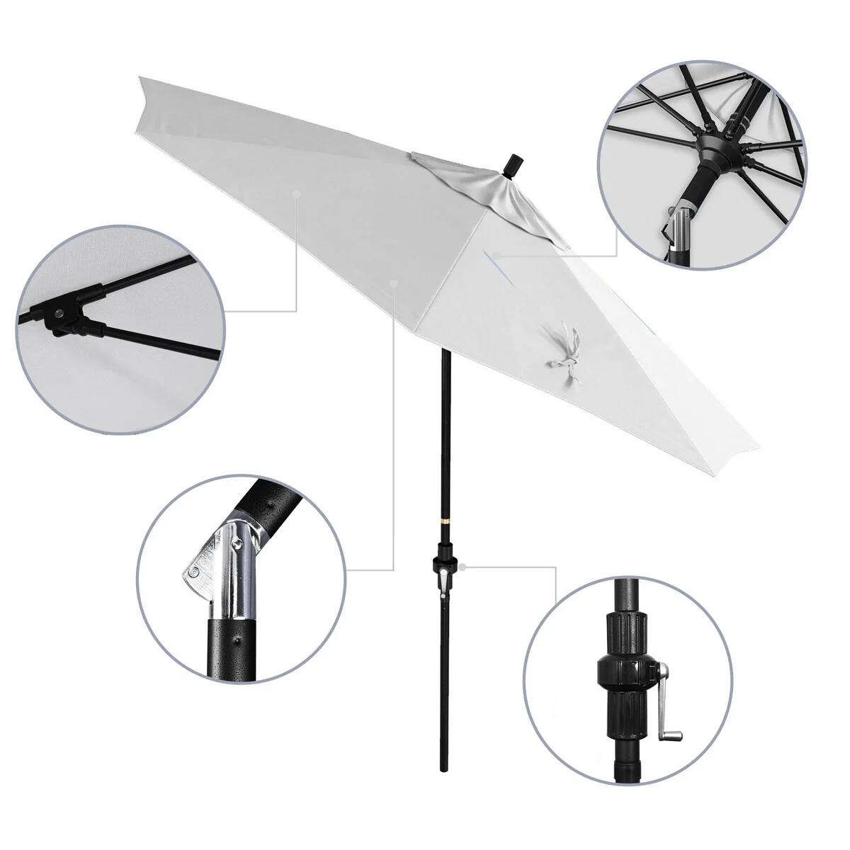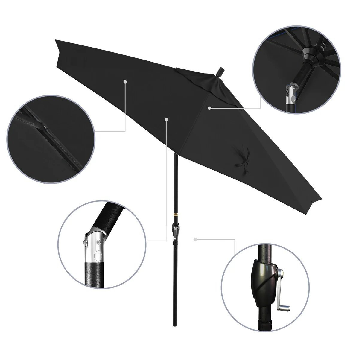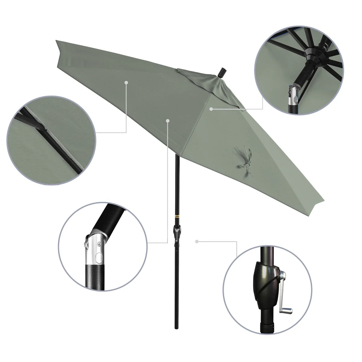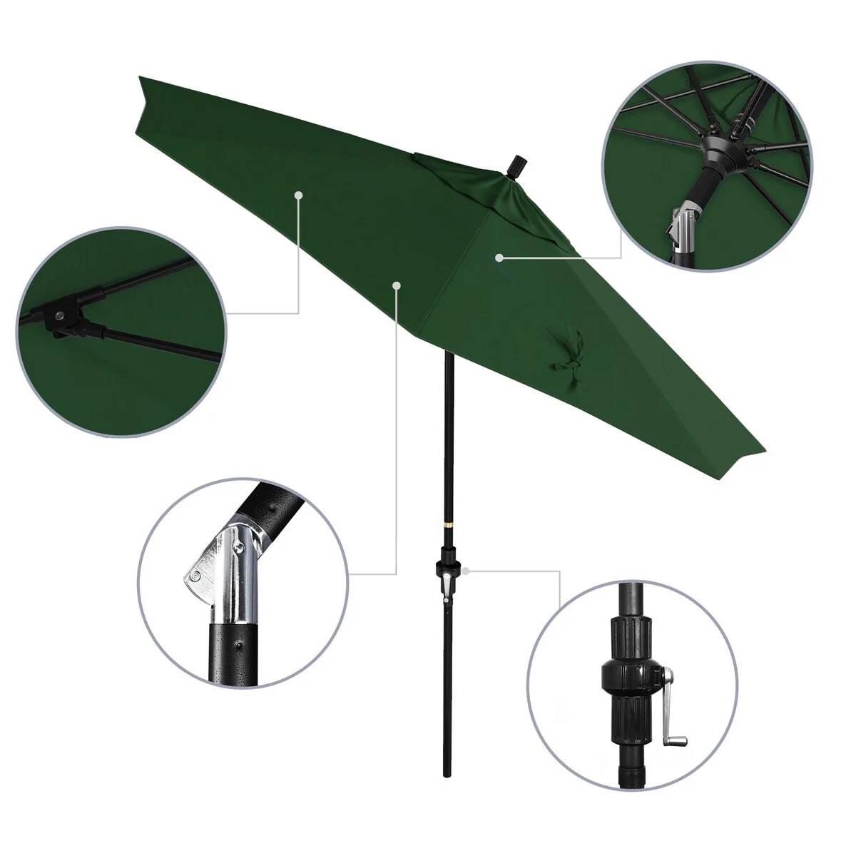 California Umbrella 9' Rd Patio Umbrella Black Aluminum Frame Fiberglass Ribs Crank Lift Collar Tilt, Sunbrella Cilantro