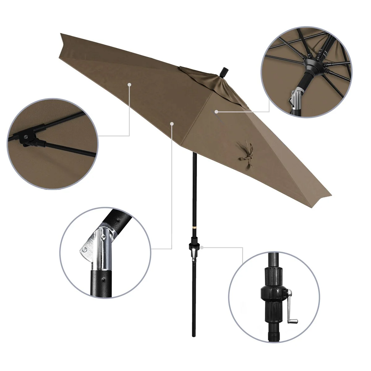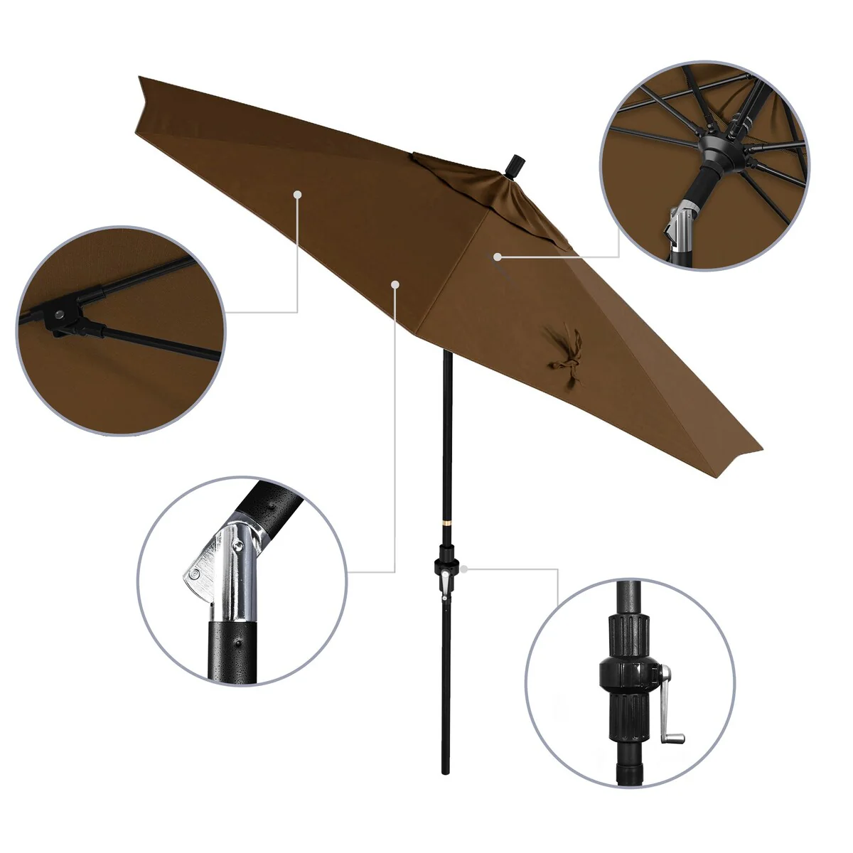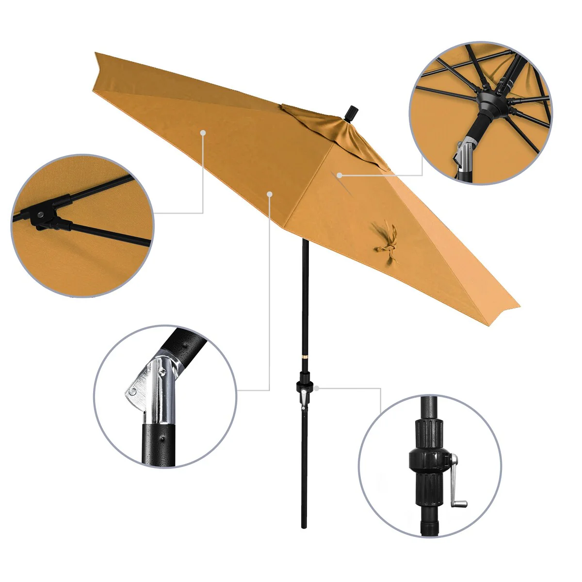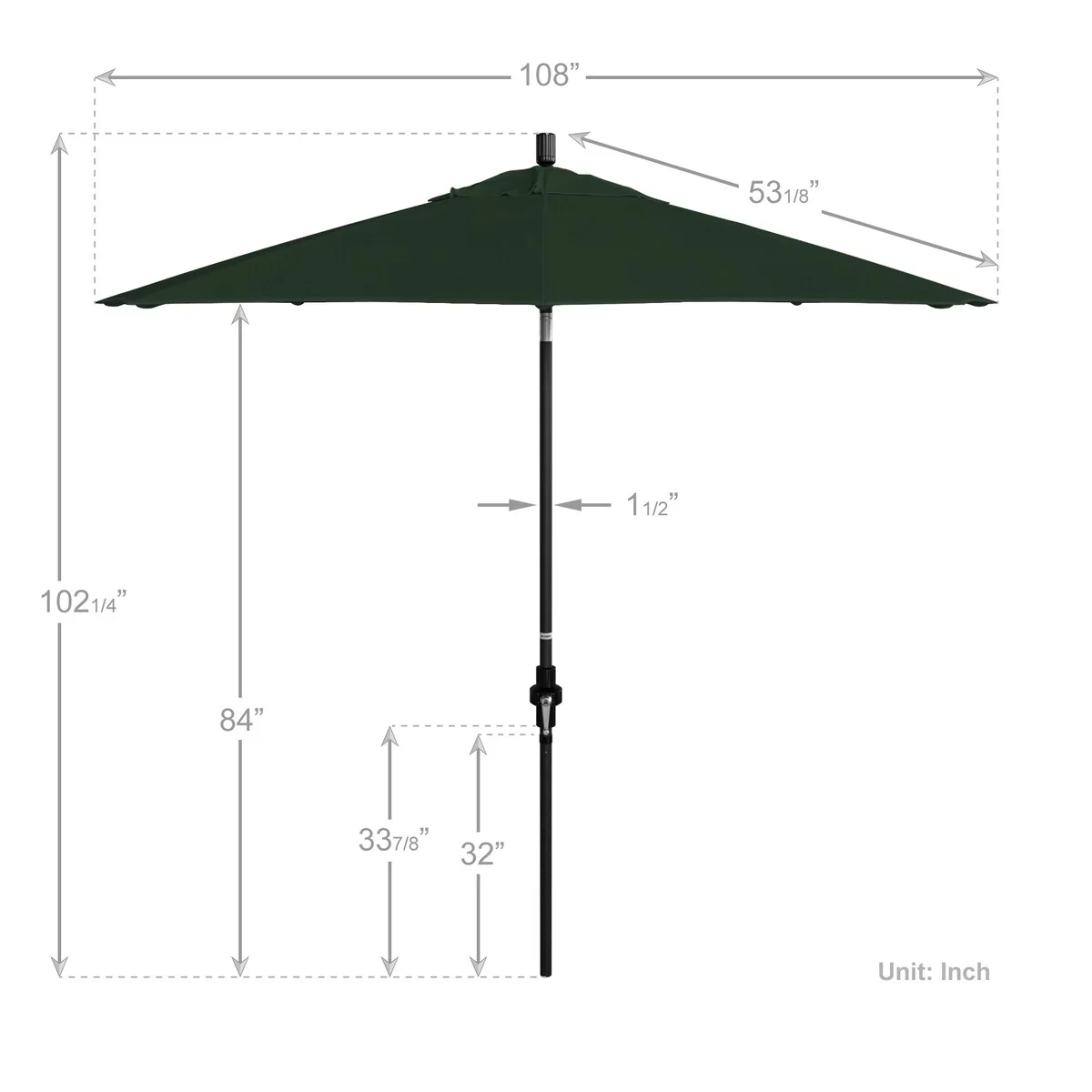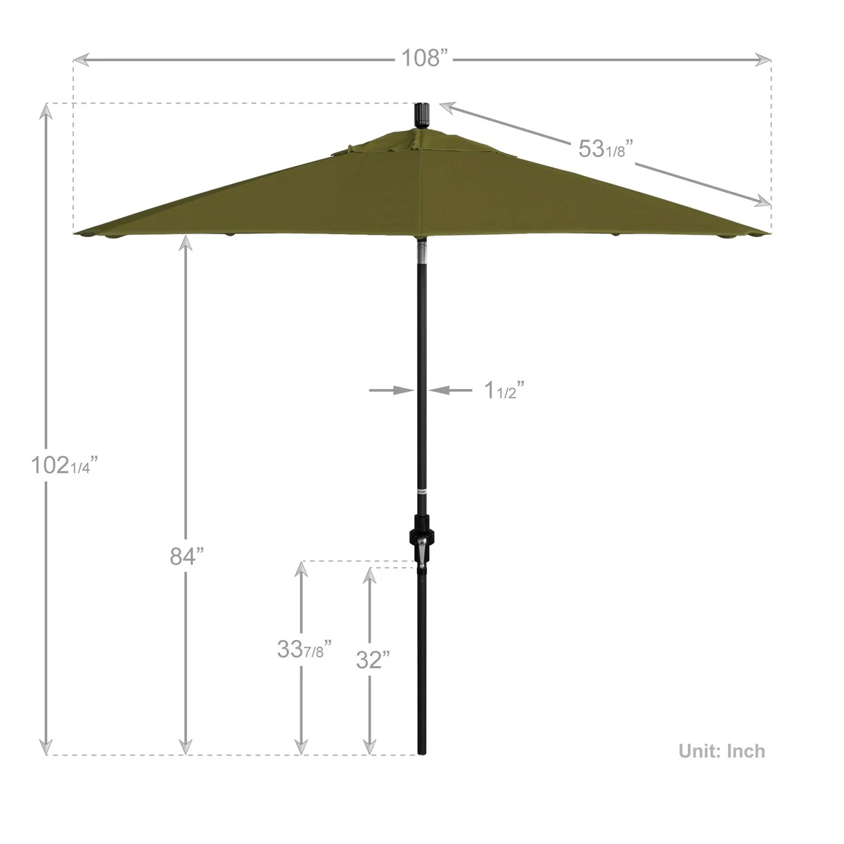 California Umbrella 9' Rd Patio Umbrella Black Aluminum Frame Fiberglass Ribs Crank Lift Collar Tilt, Sunbrella Cilantro