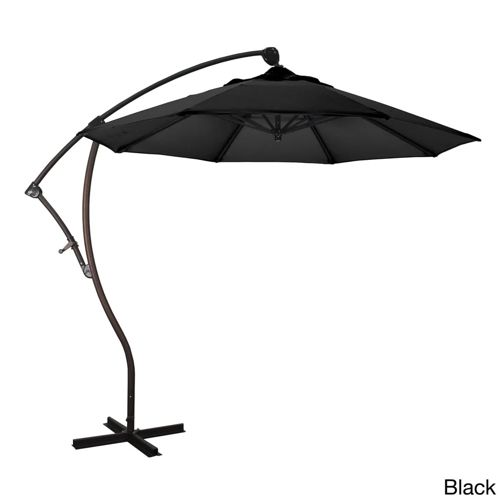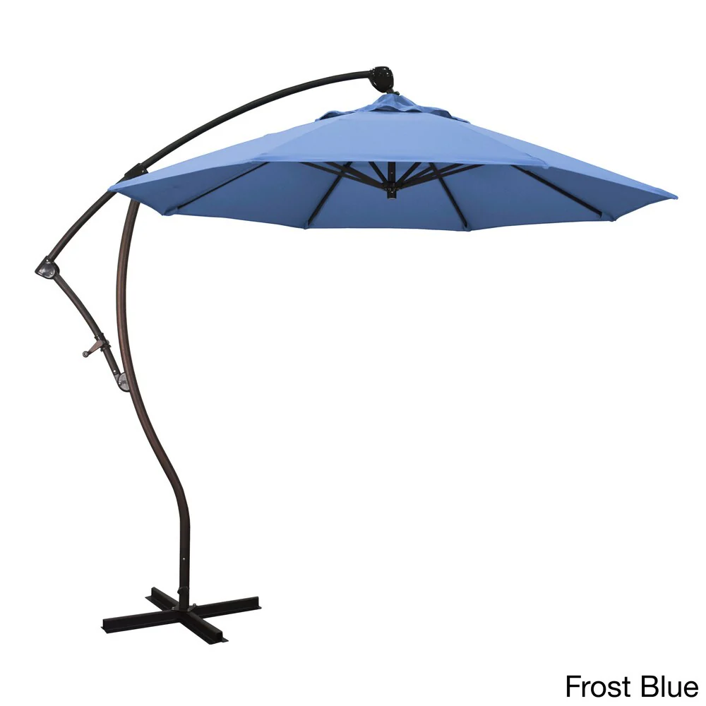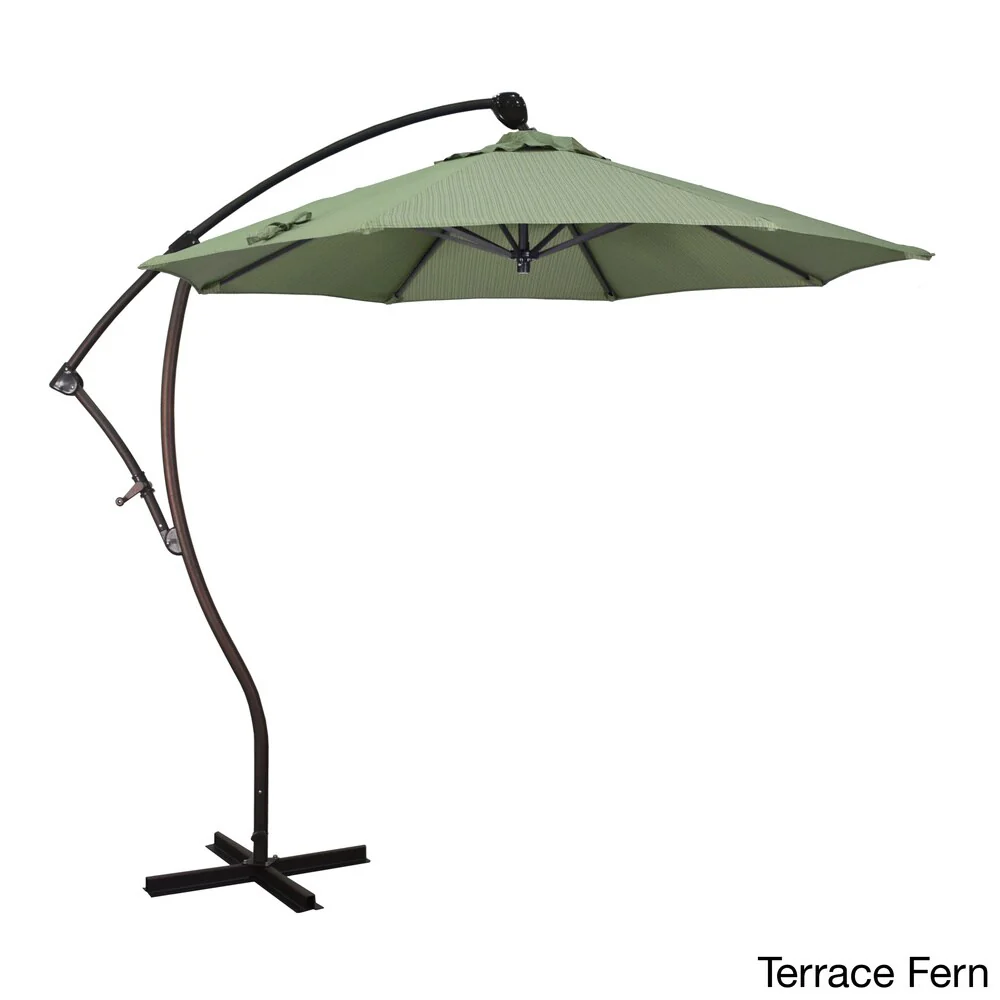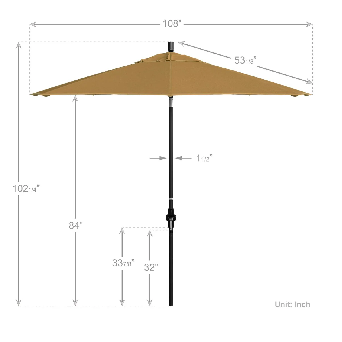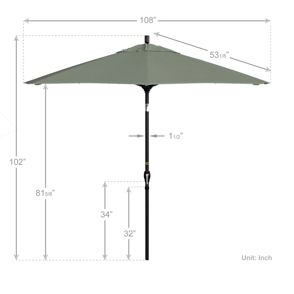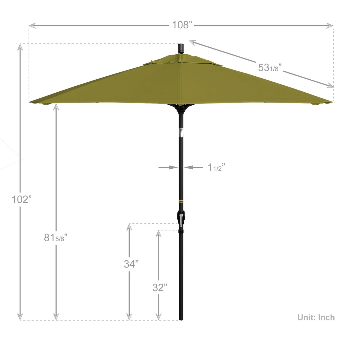 California Umbrella 9' Rd Patio Umbrella Black Aluminum Frame Fiberglass Ribs Crank Lift Collar Tilt, Sunbrella Cilantro