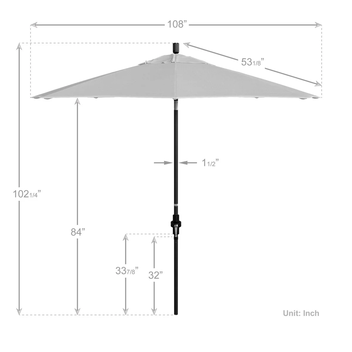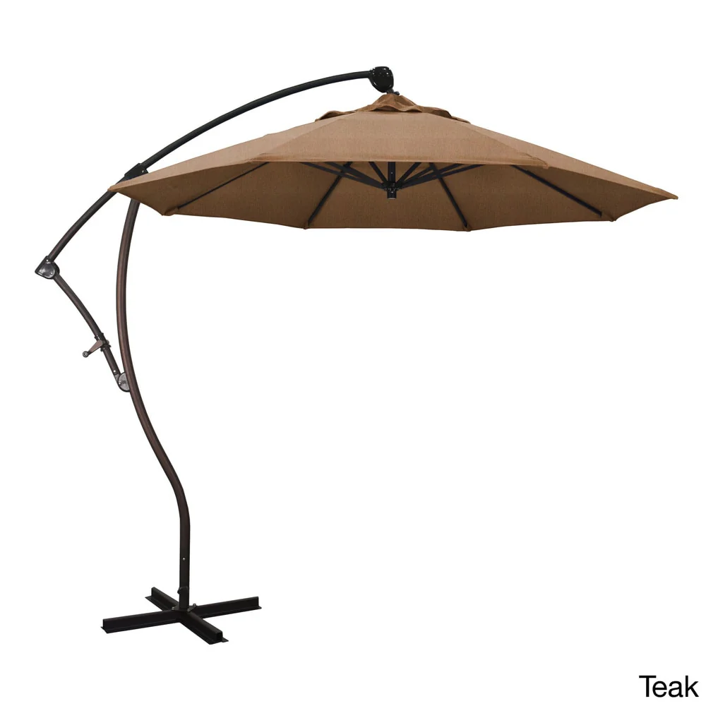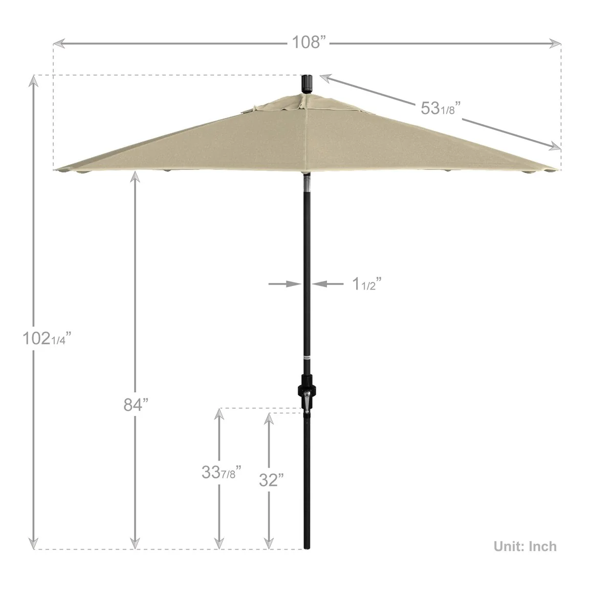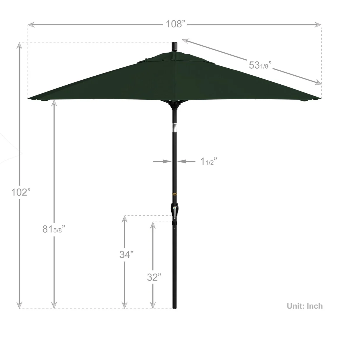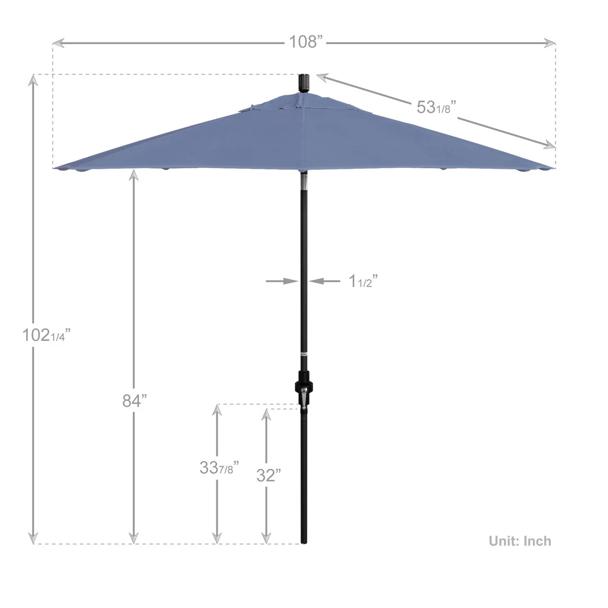 California Umbrella 9' Rd Patio Umbrella Black Aluminum Frame Fiberglass Ribs Crank Lift Collar Tilt, Sunbrella Cilantro