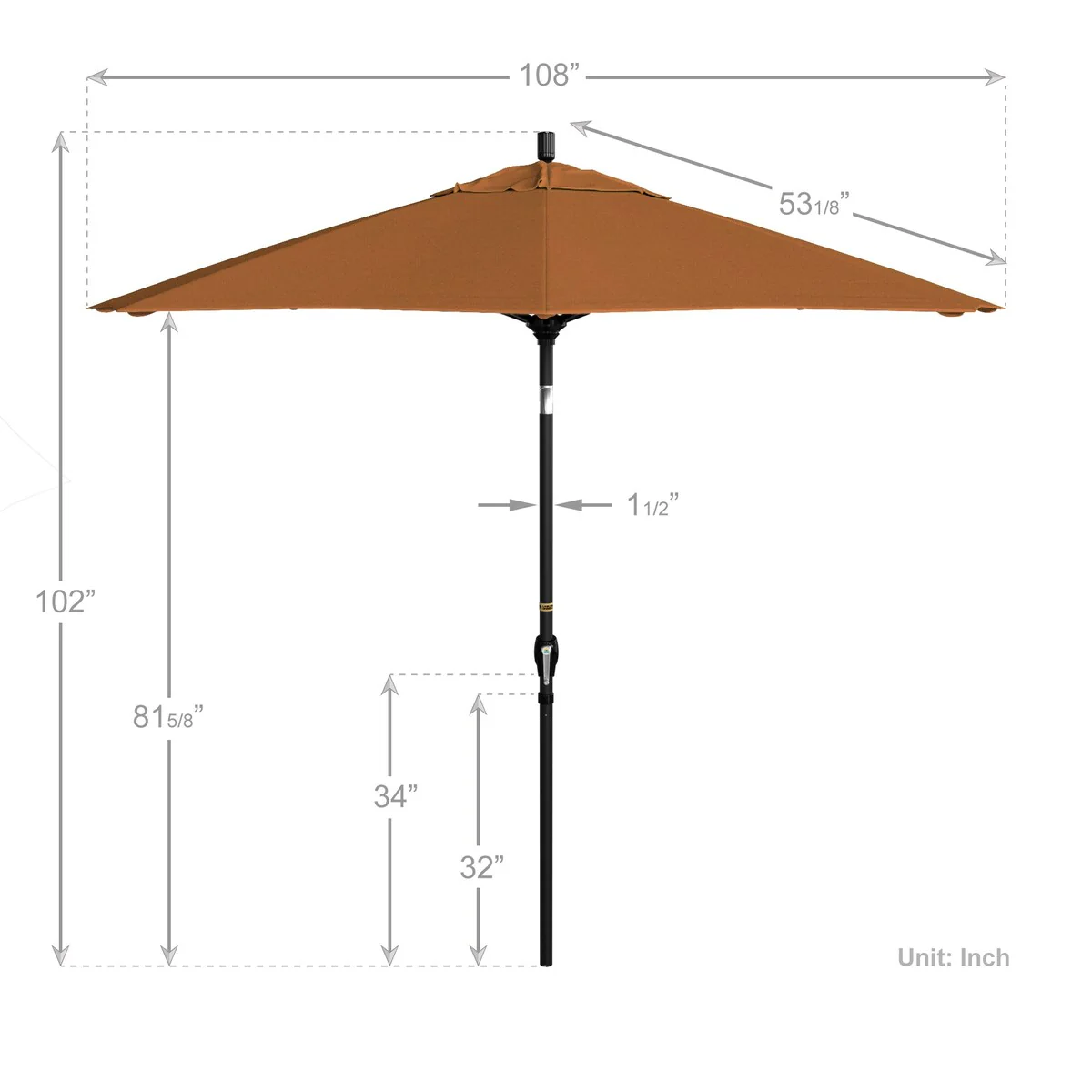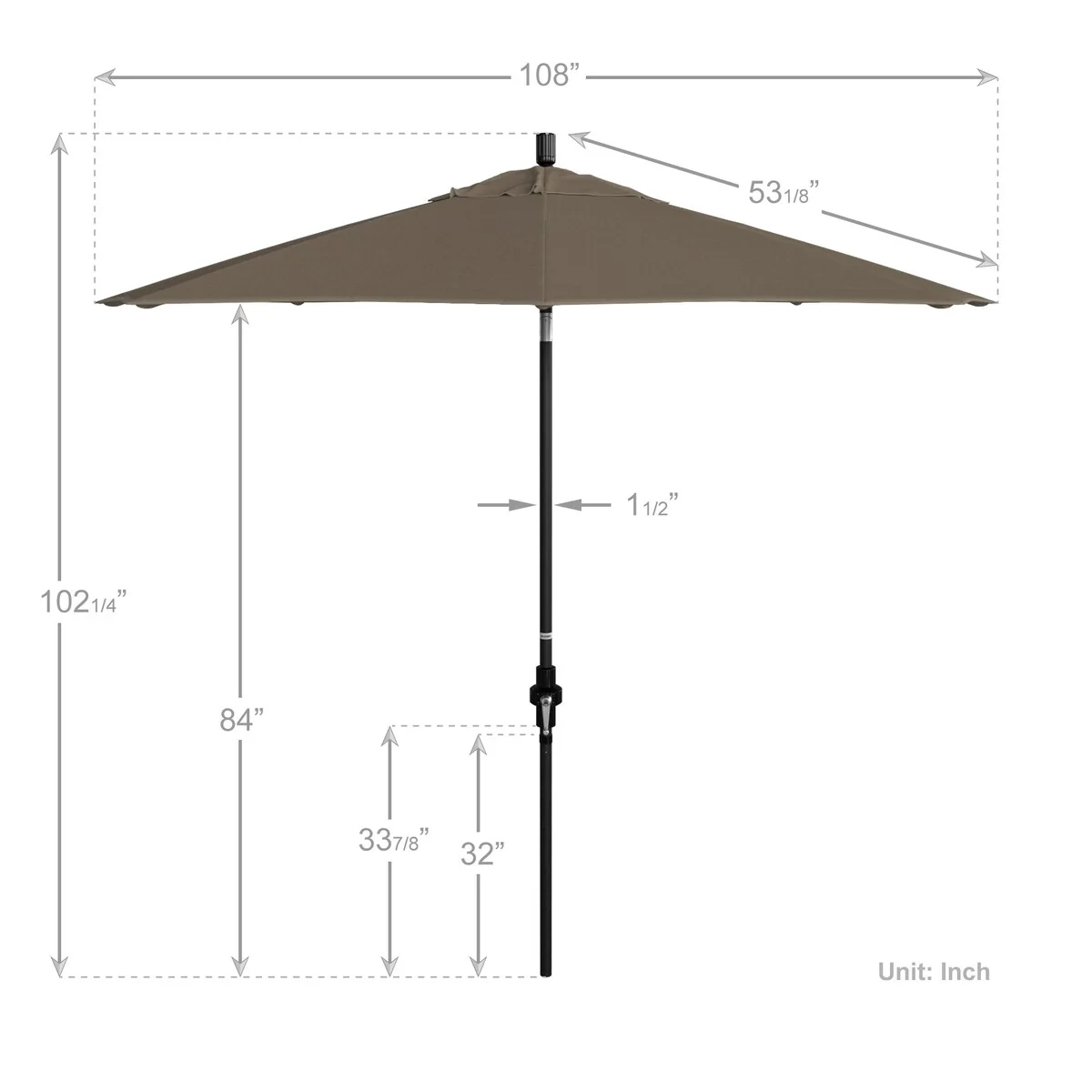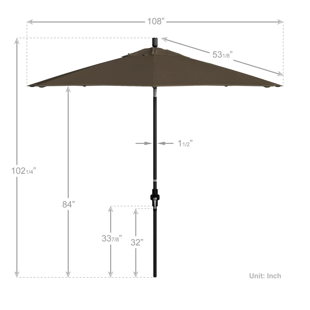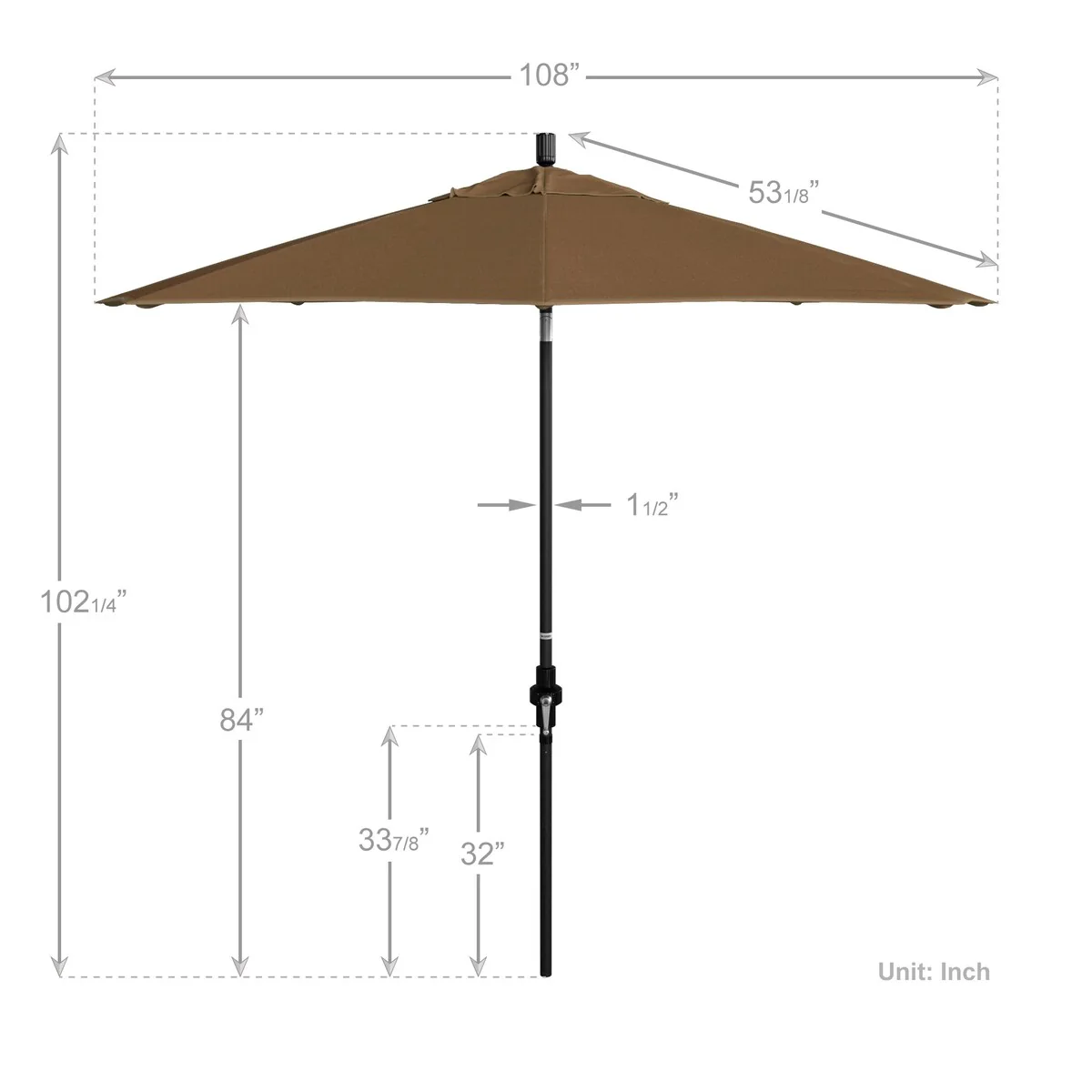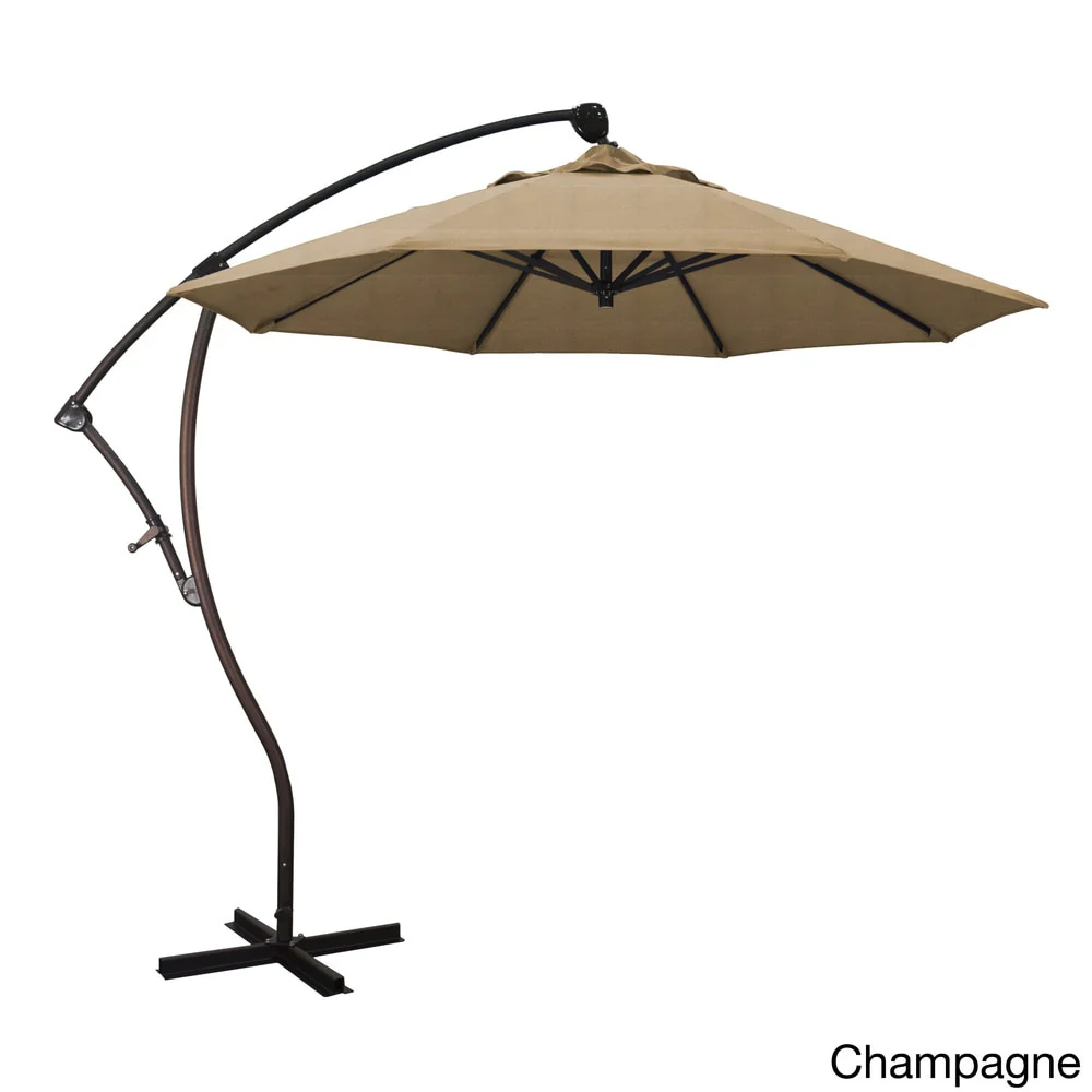 California Umbrella 9' Rd Patio Umbrella Black Aluminum Frame Fiberglass Ribs Crank Lift Collar Tilt, Sunbrella Cilantro