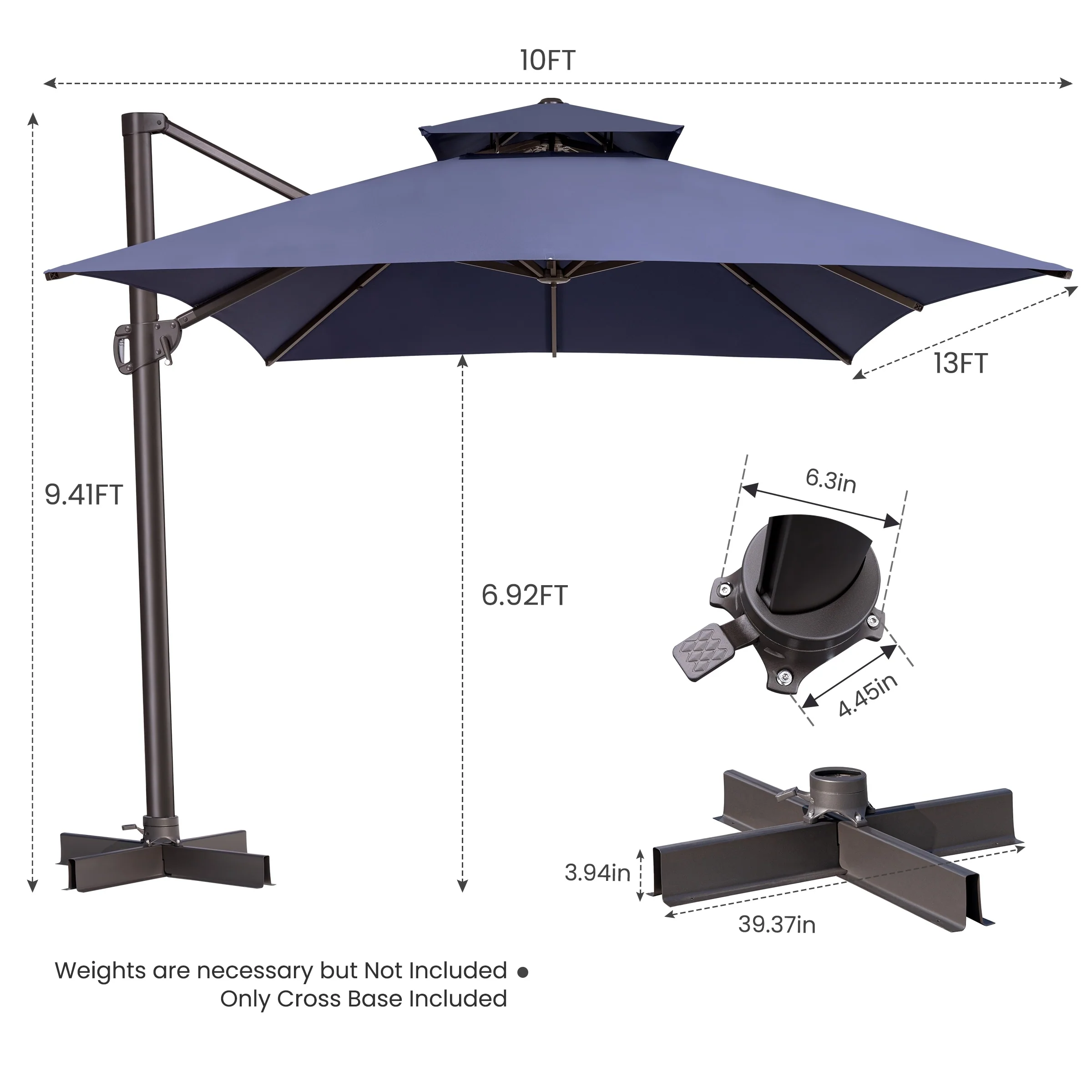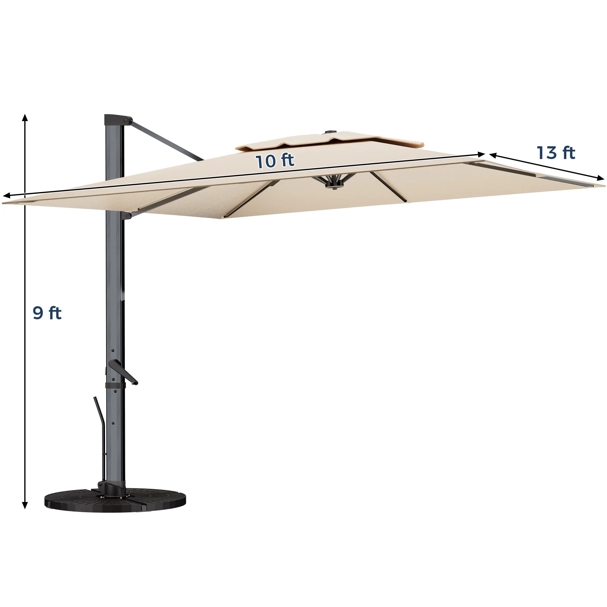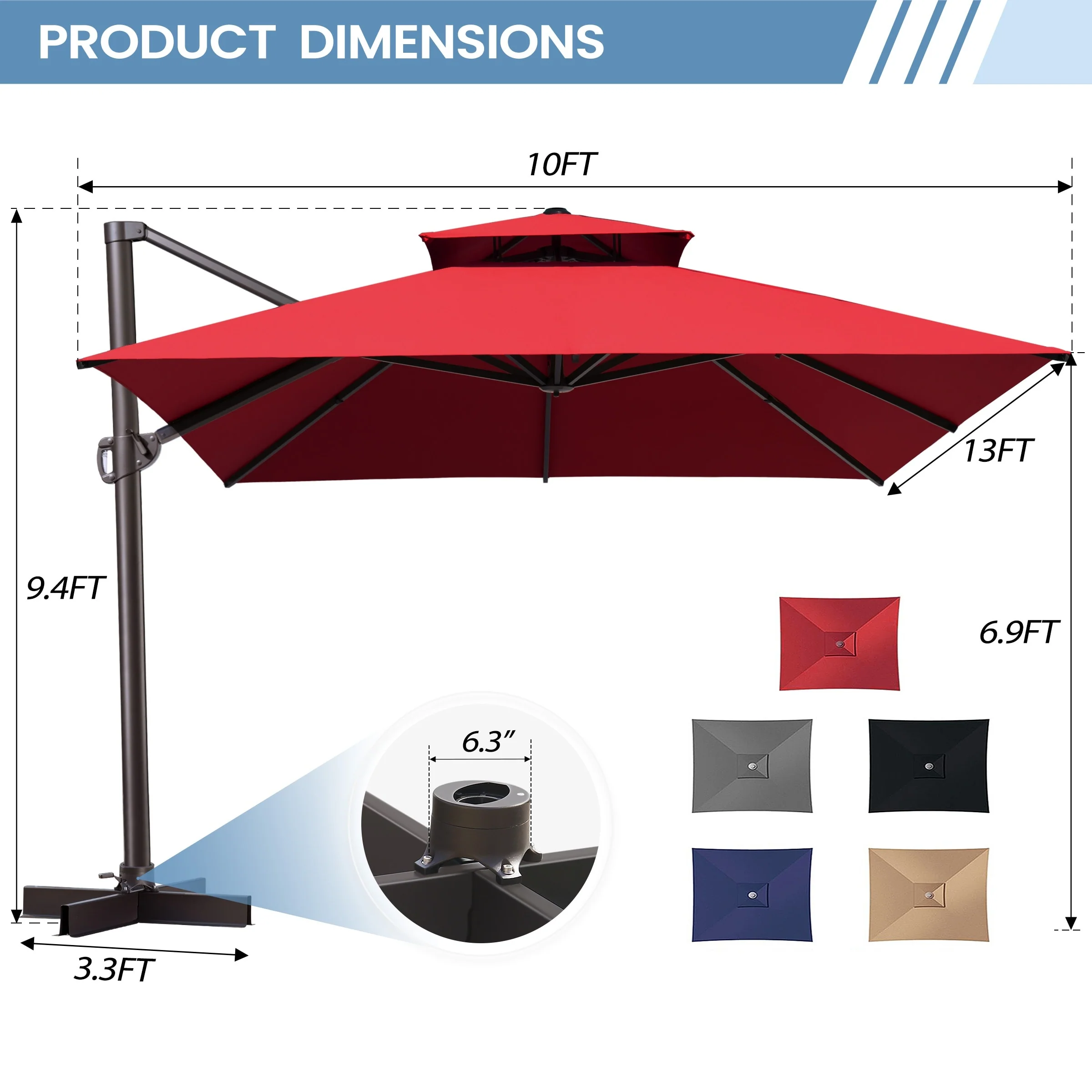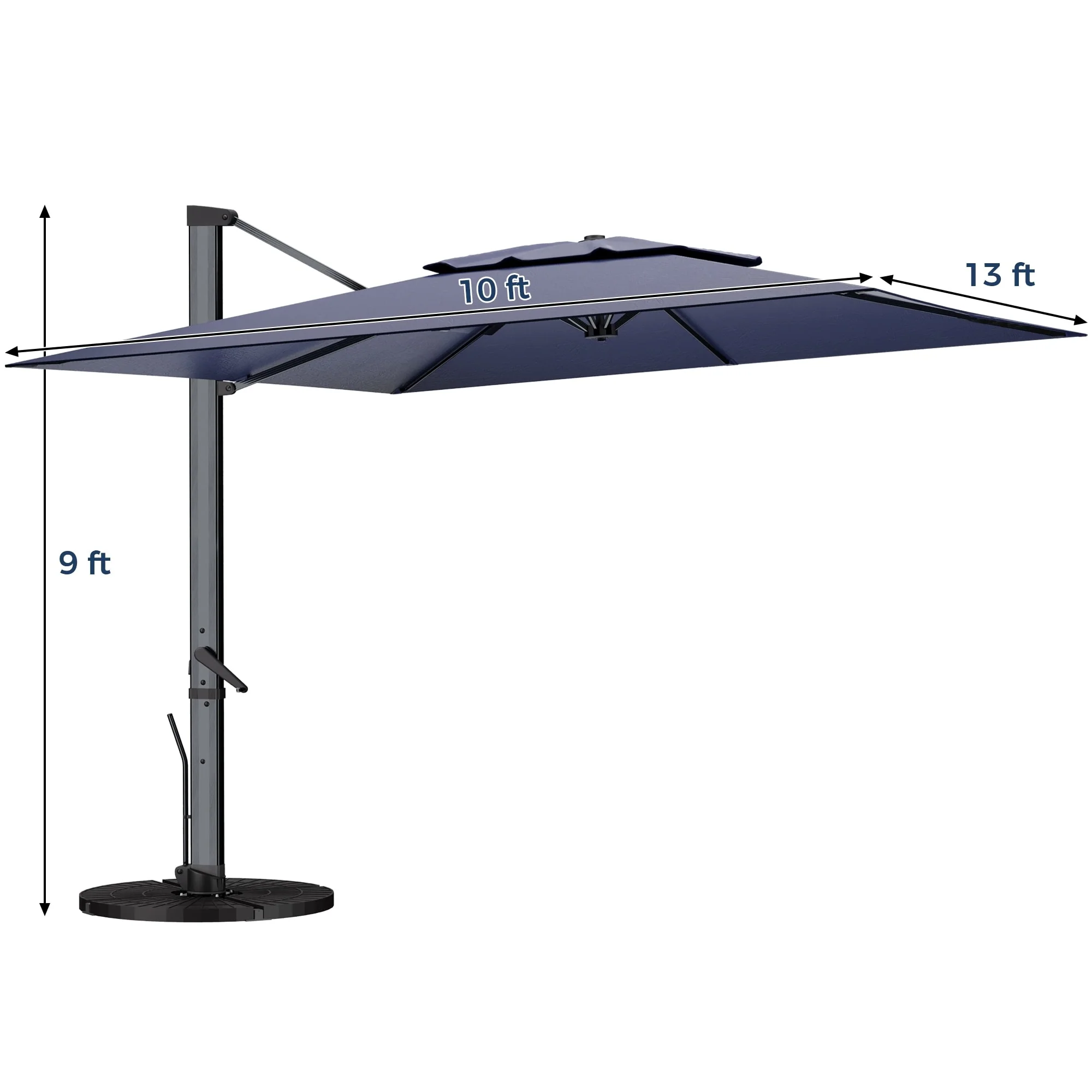 10 x 13 Feet Double Top Rectangular Rotating Patio Offset Cantilever Umbrella with Crank