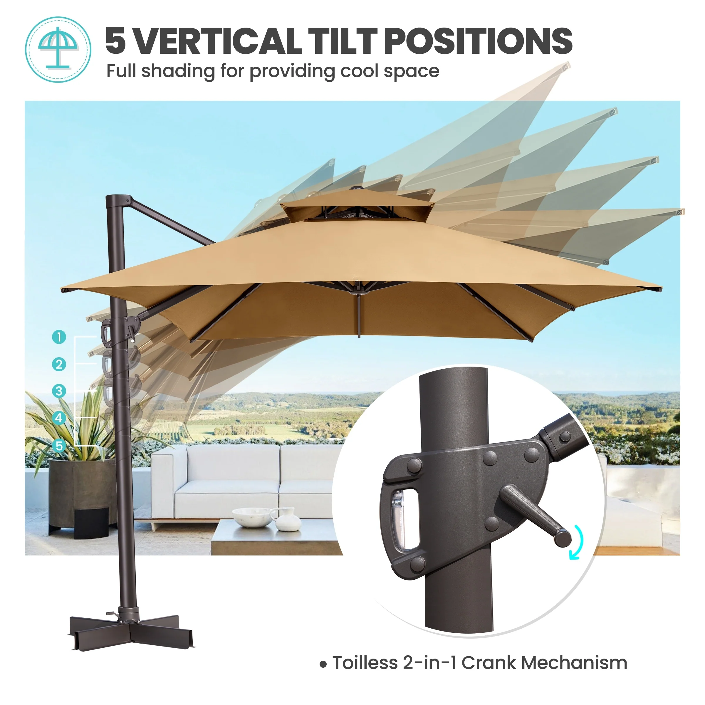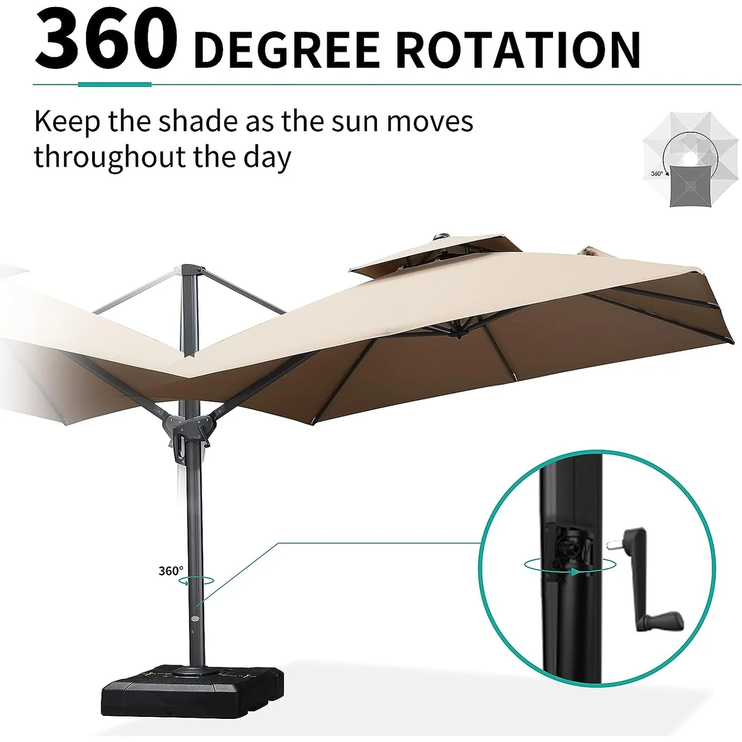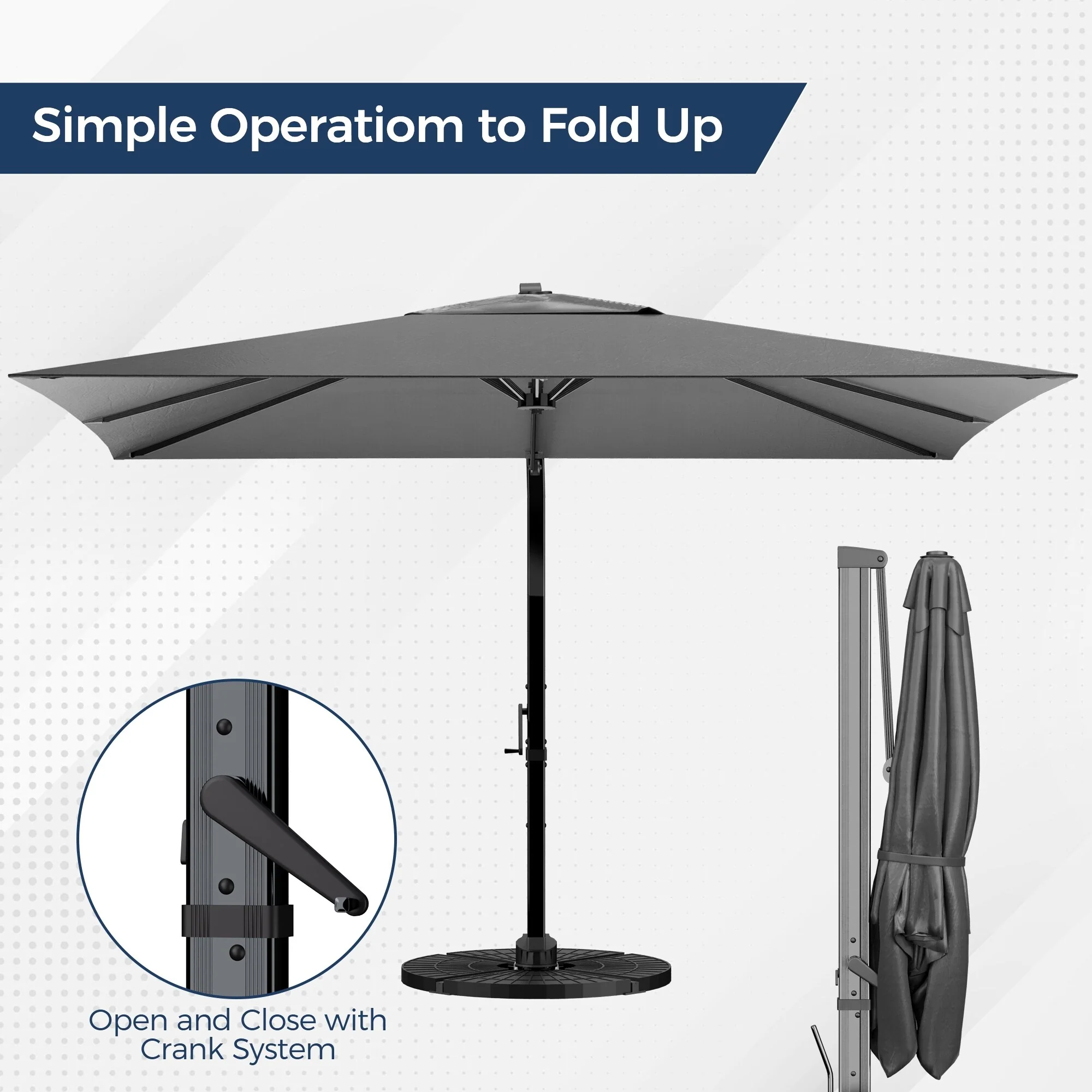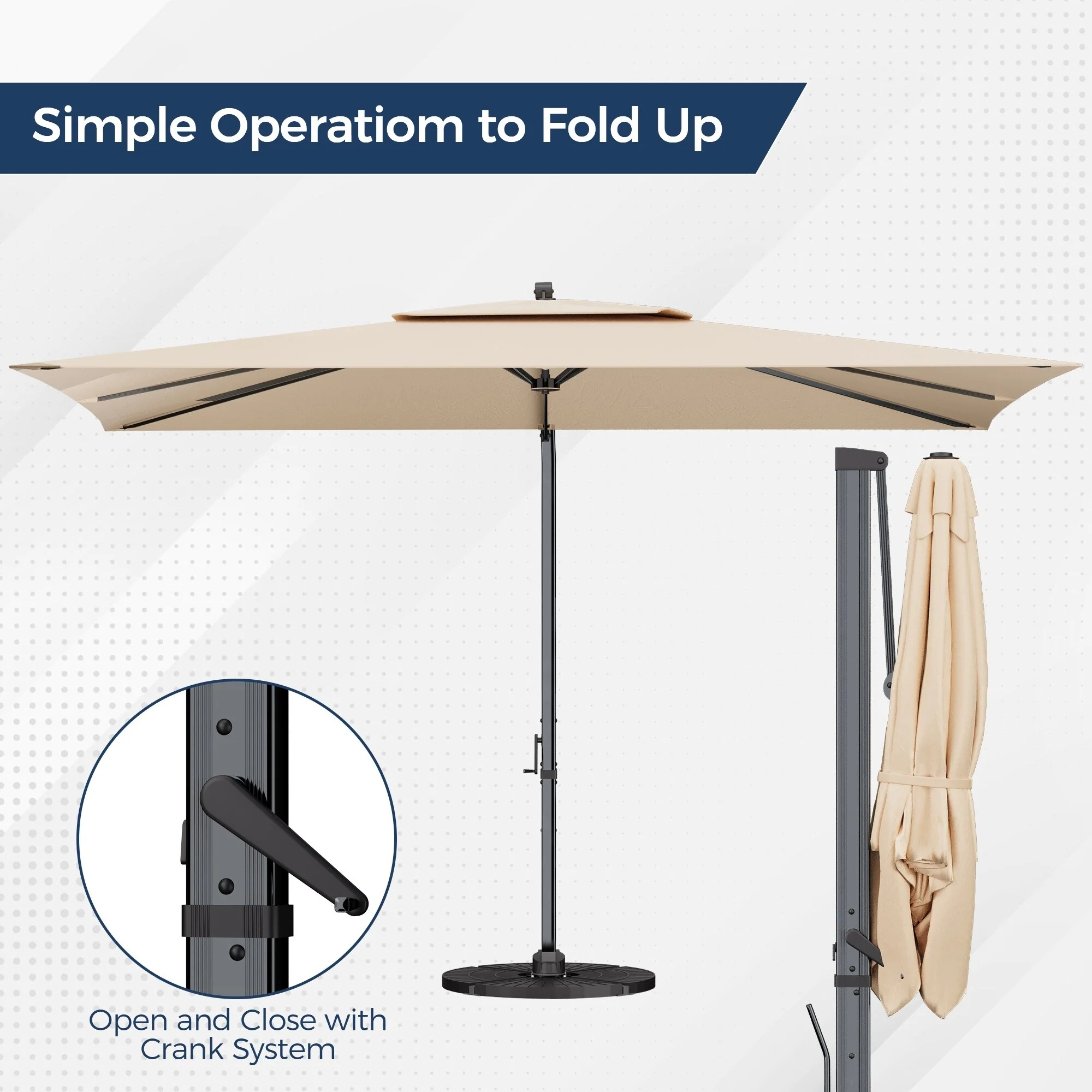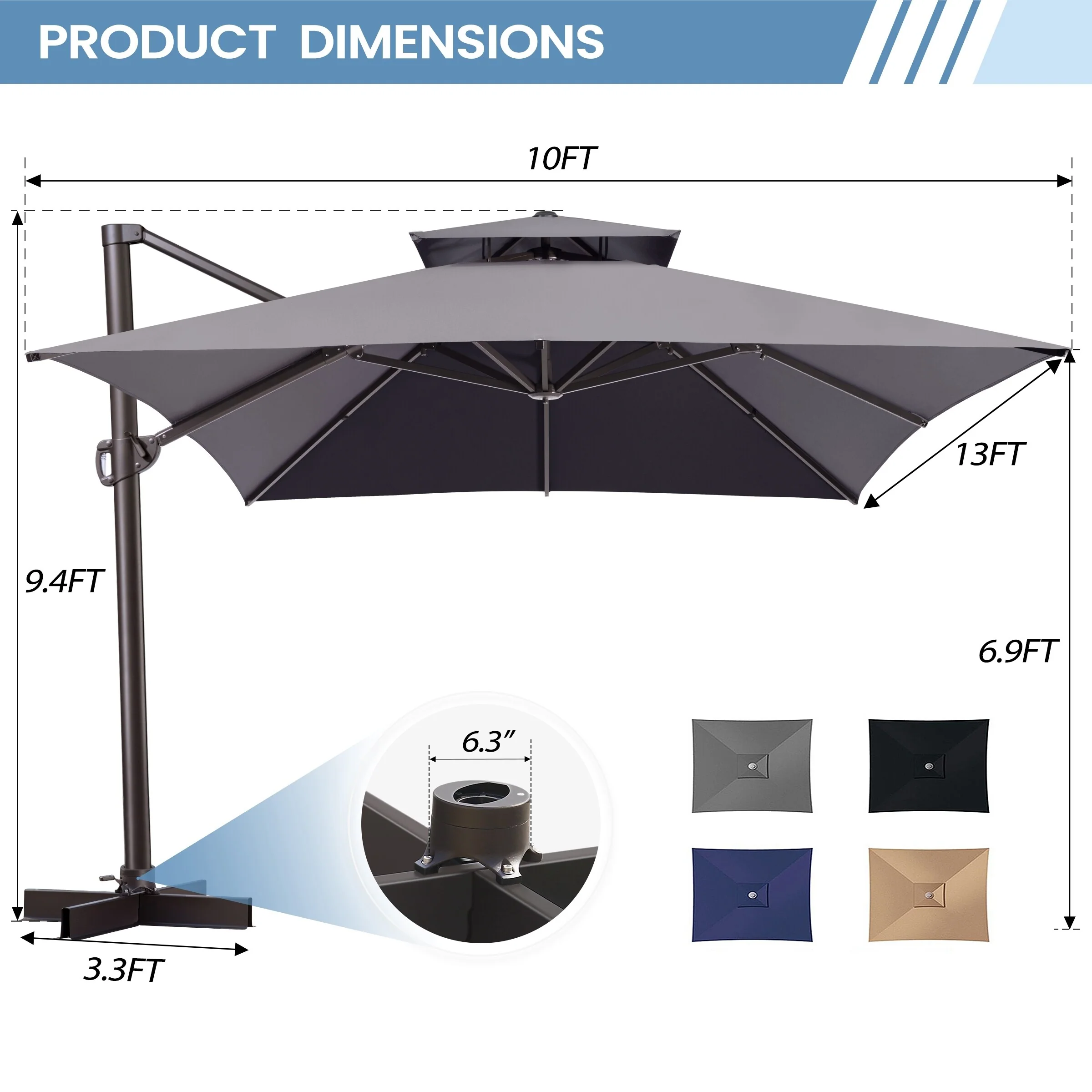 10 x 13 Feet Double Top Rectangular Rotating Patio Offset Cantilever Umbrella with Crank