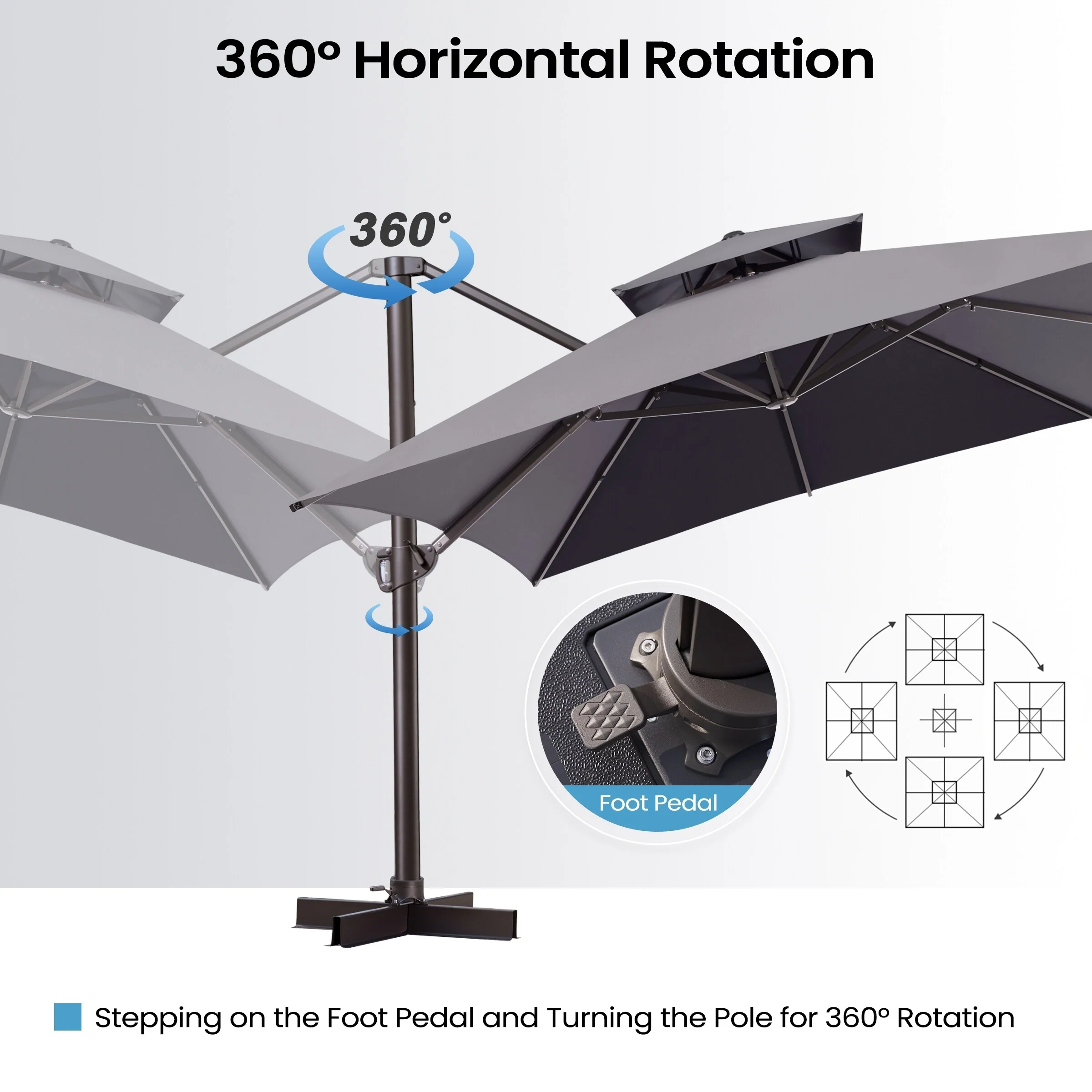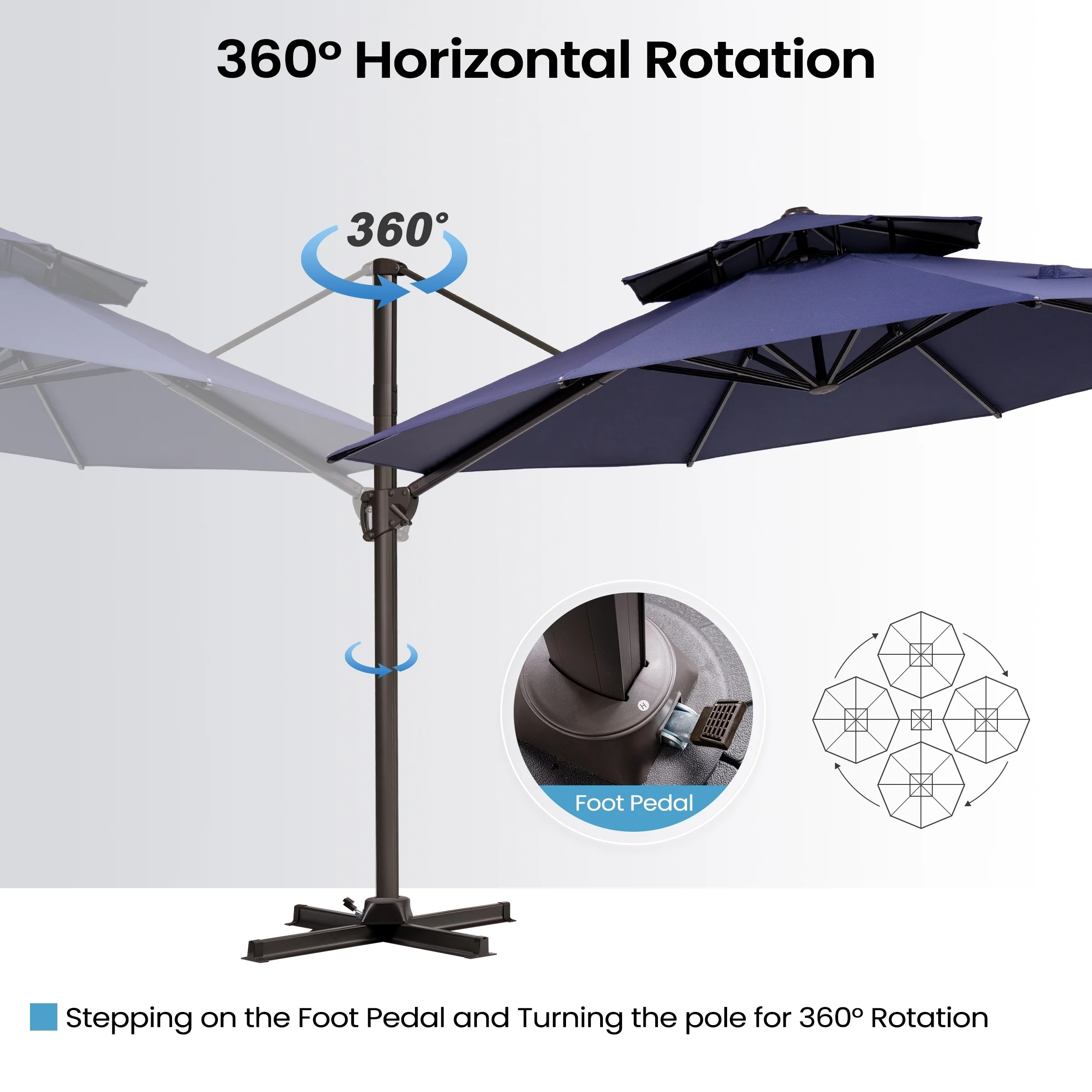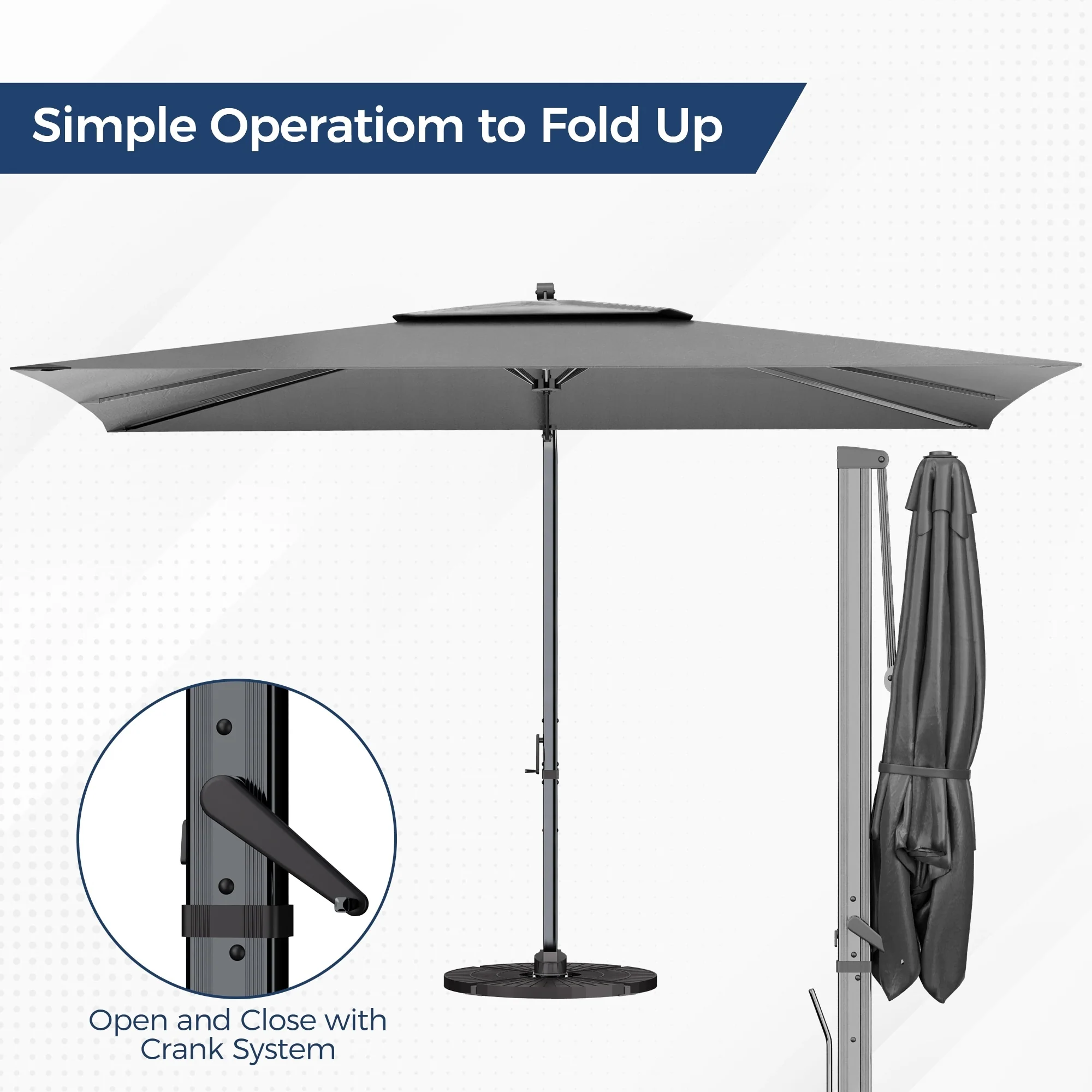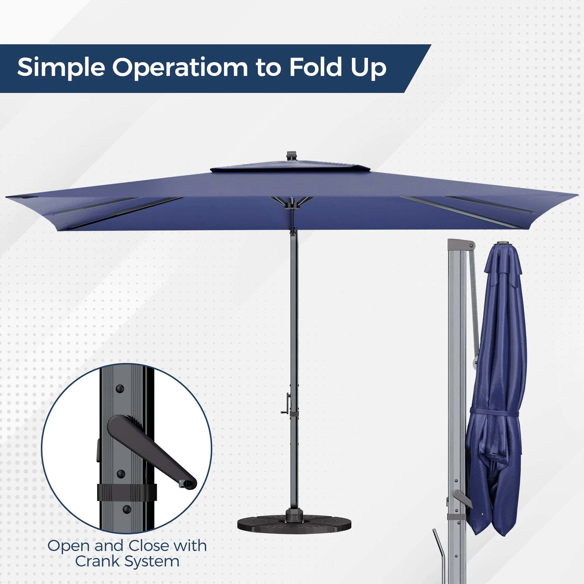 10 x 13 Feet Double Top Rectangular Rotating Patio Offset Cantilever Umbrella with Crank