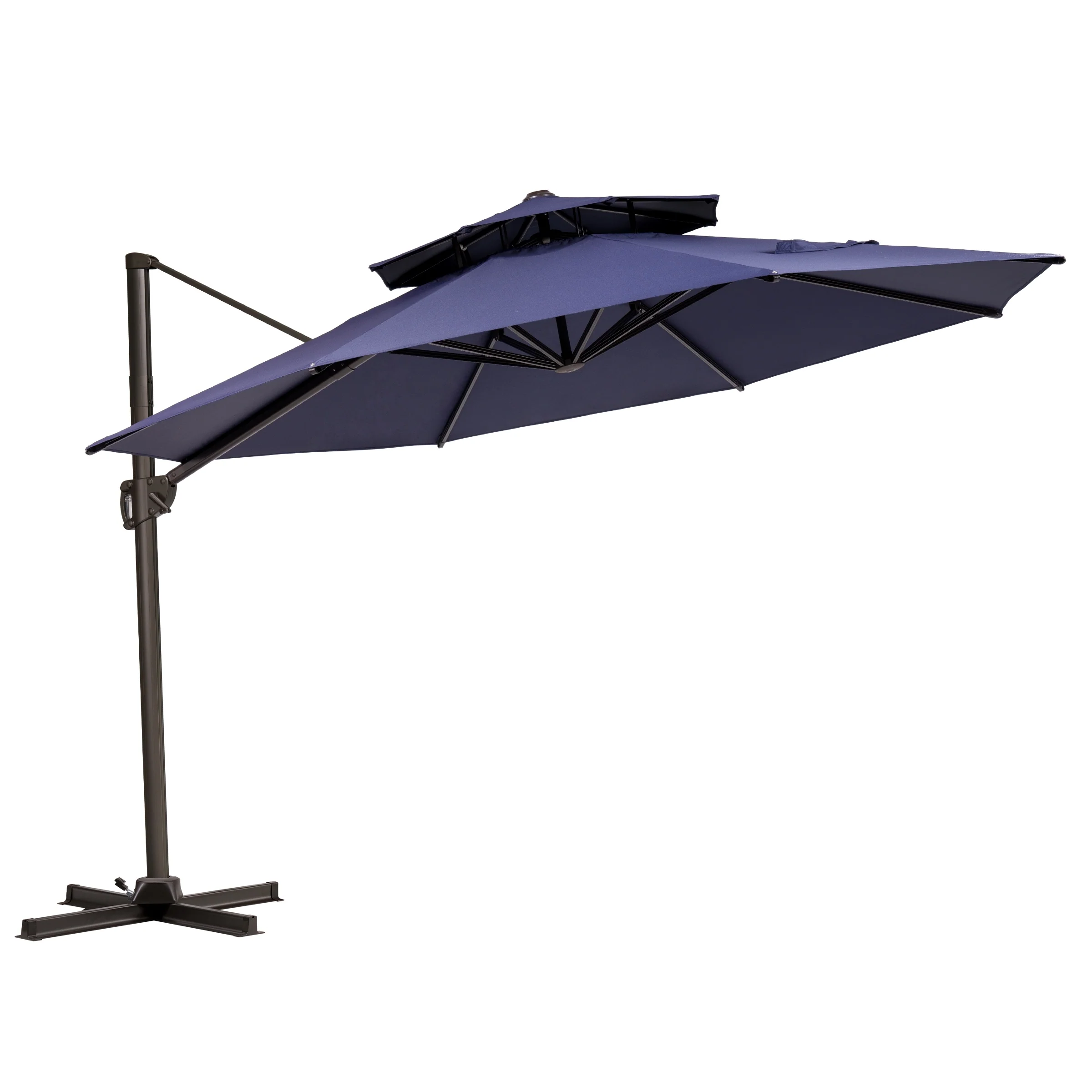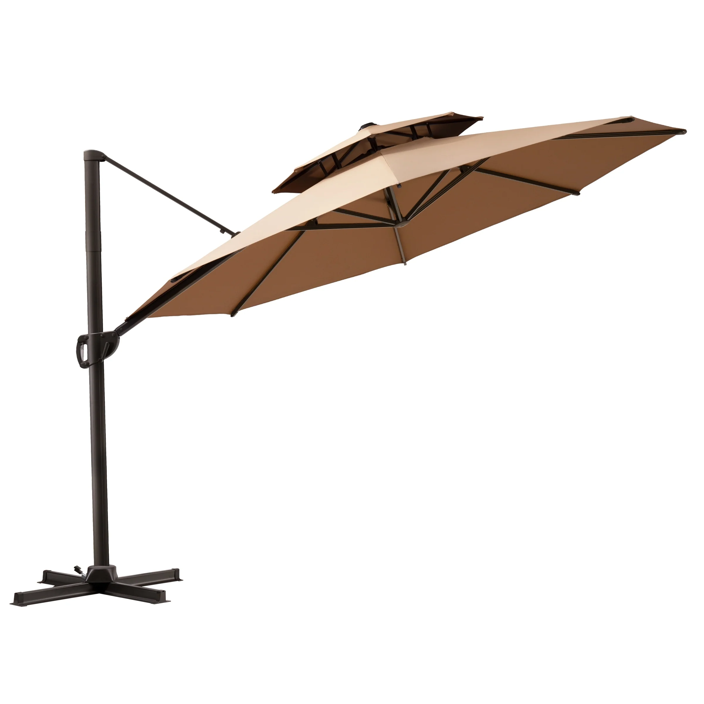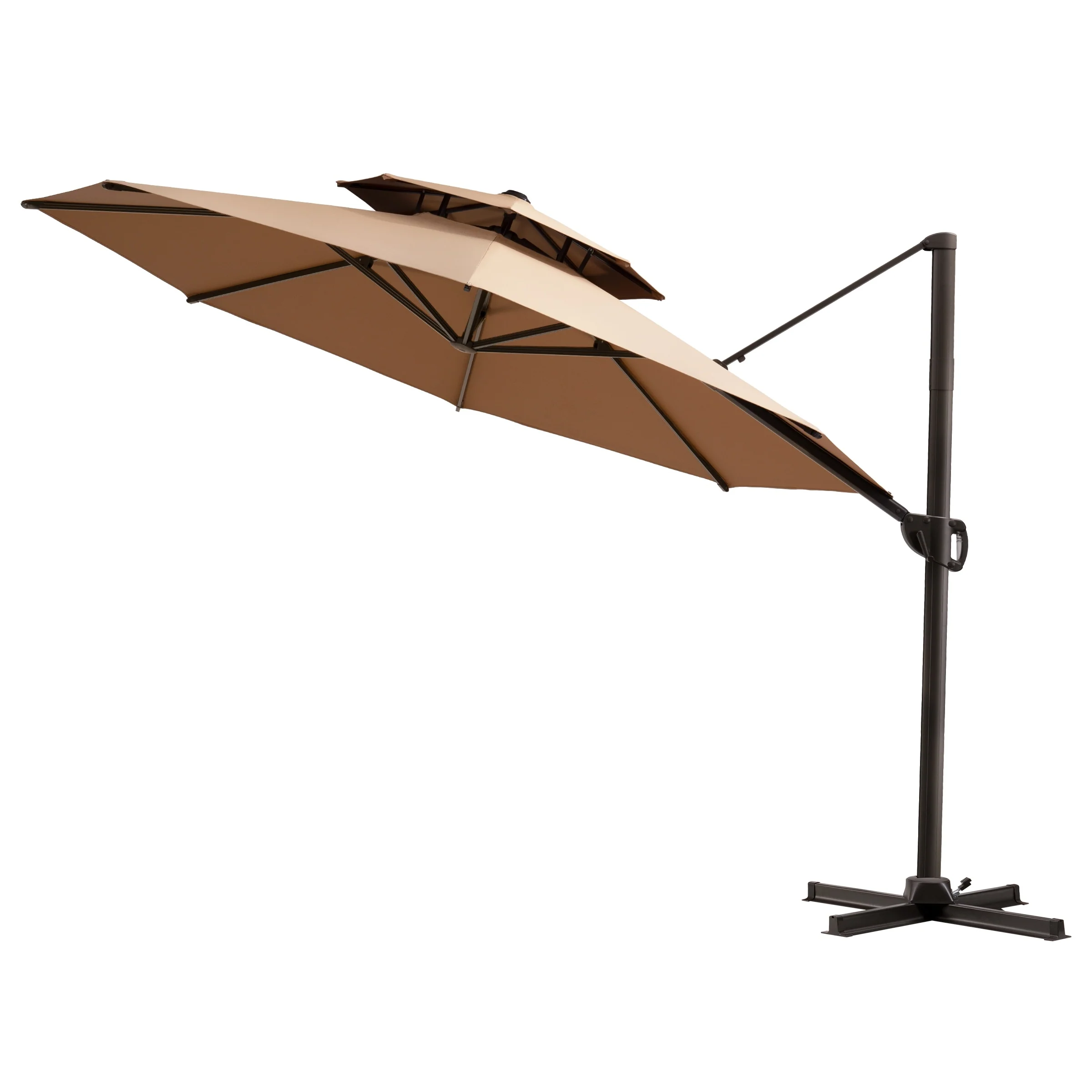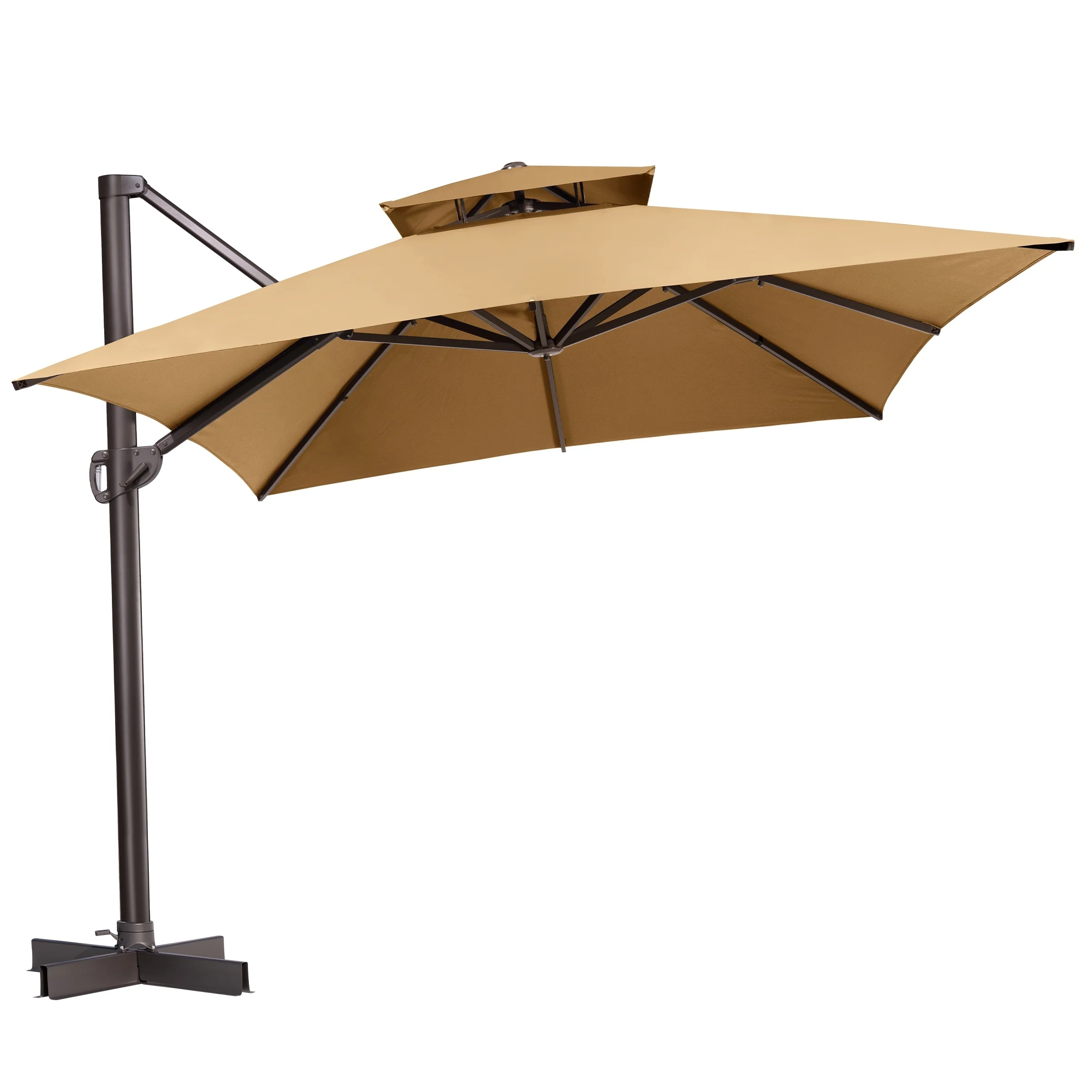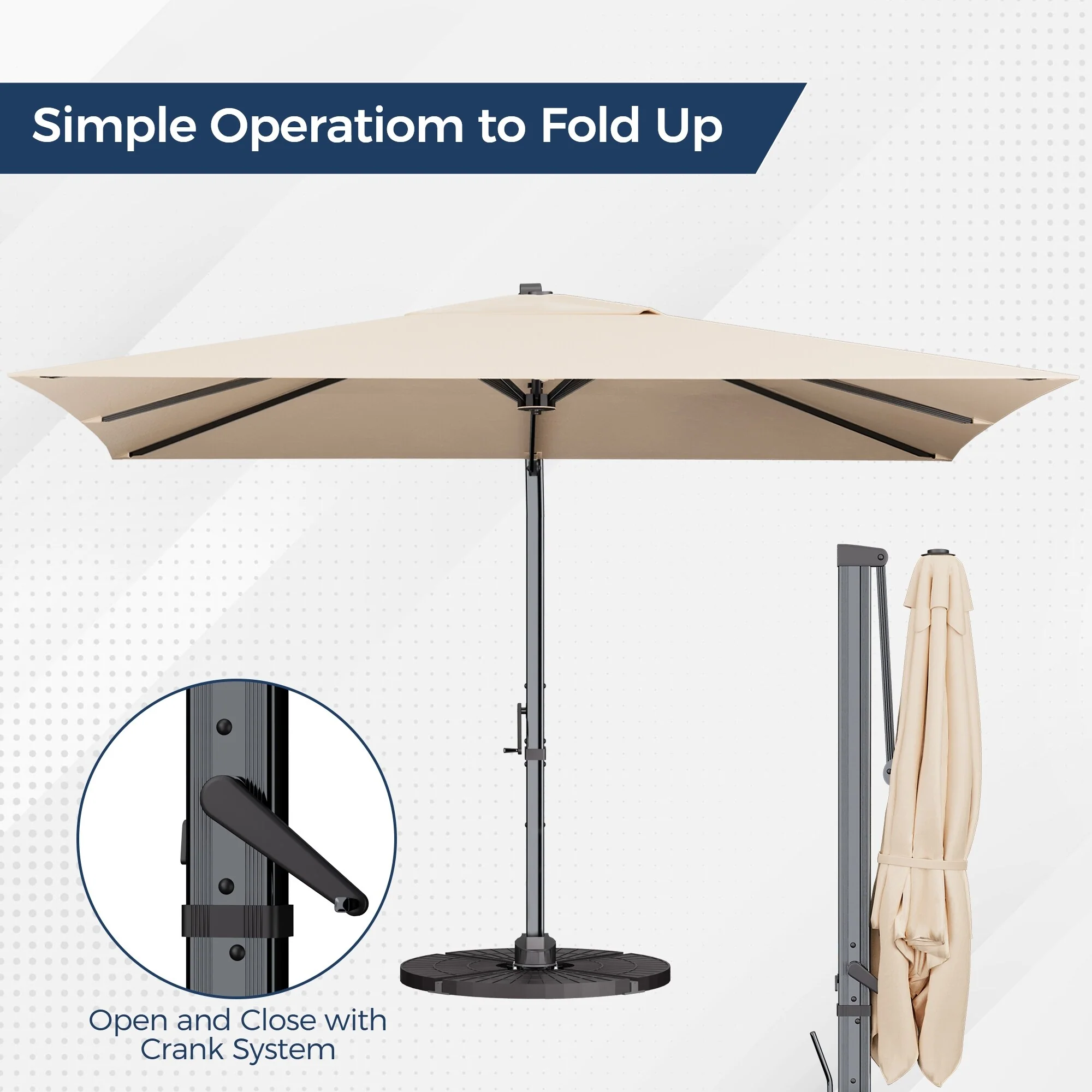 10 x 13 Feet Double Top Rectangular Rotating Patio Offset Cantilever Umbrella with Crank