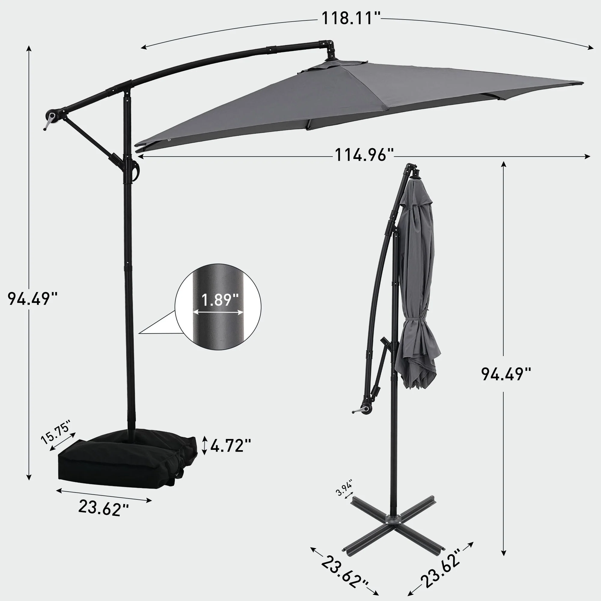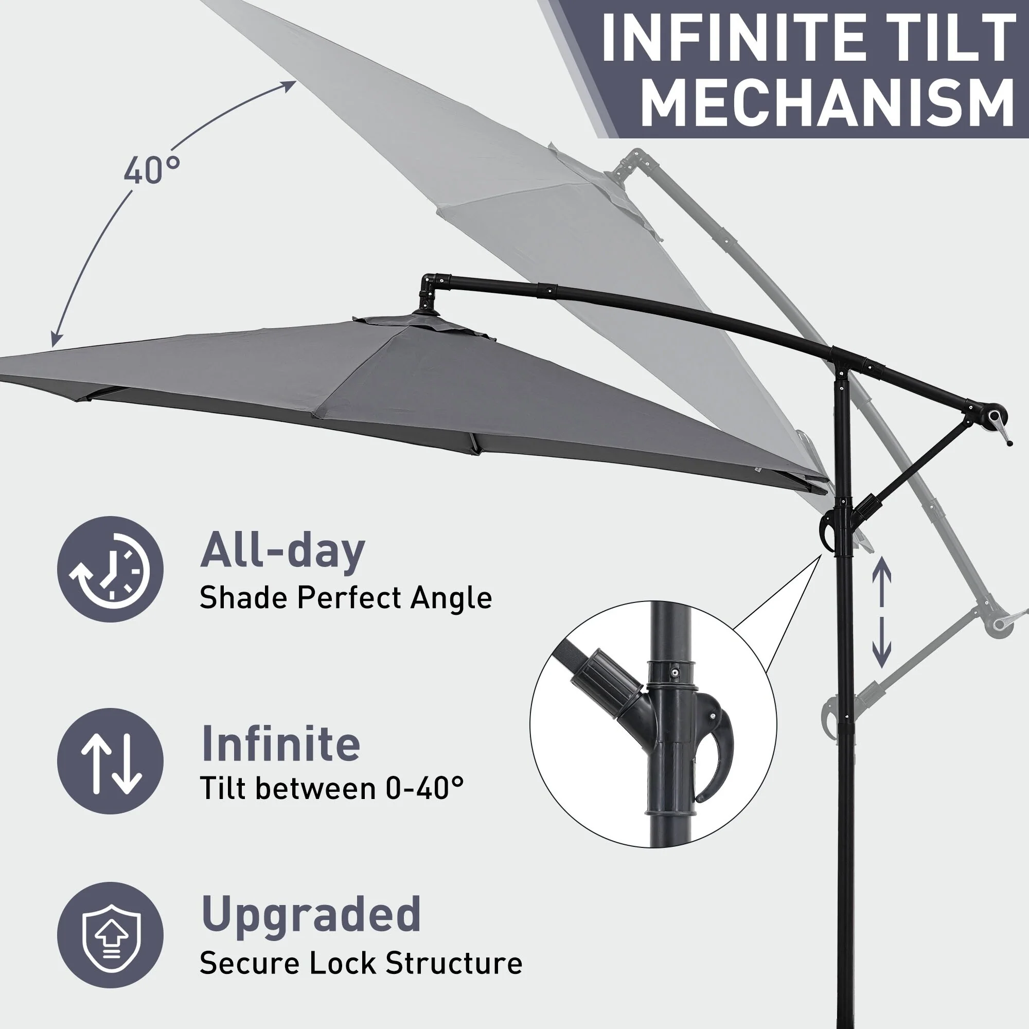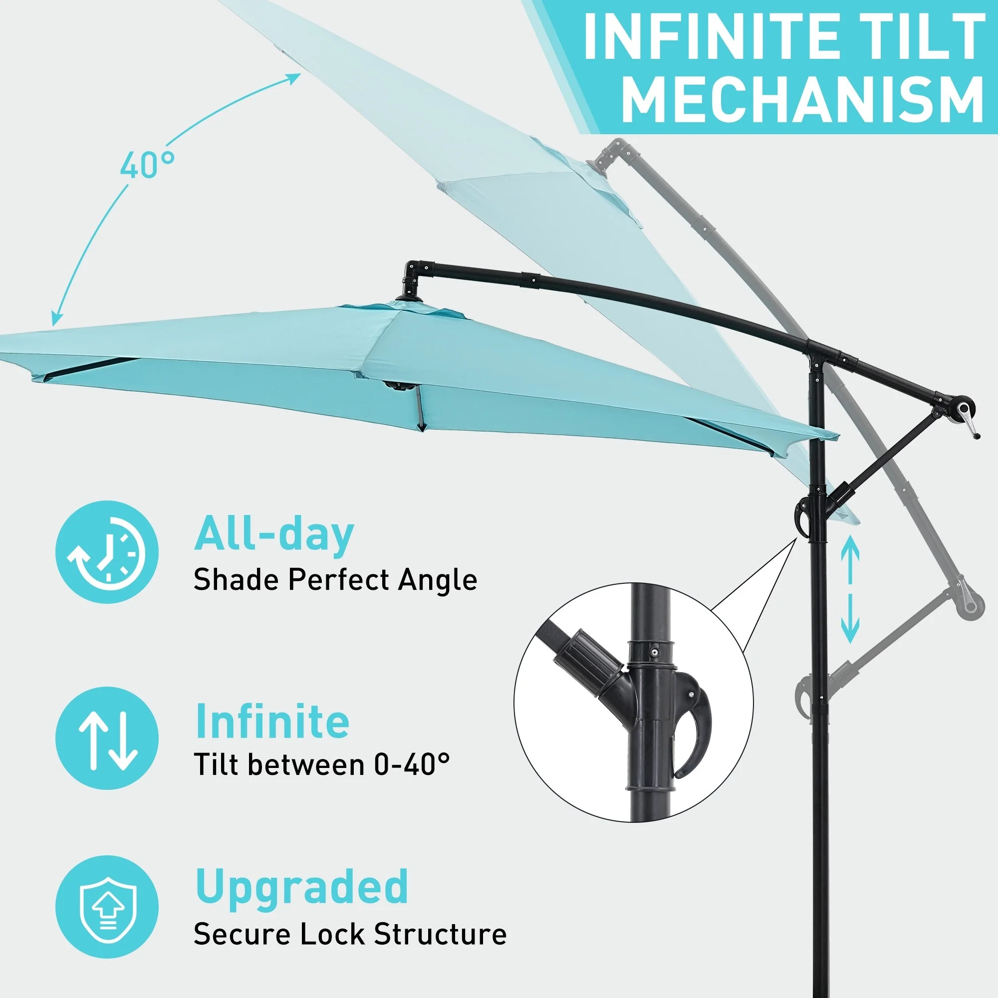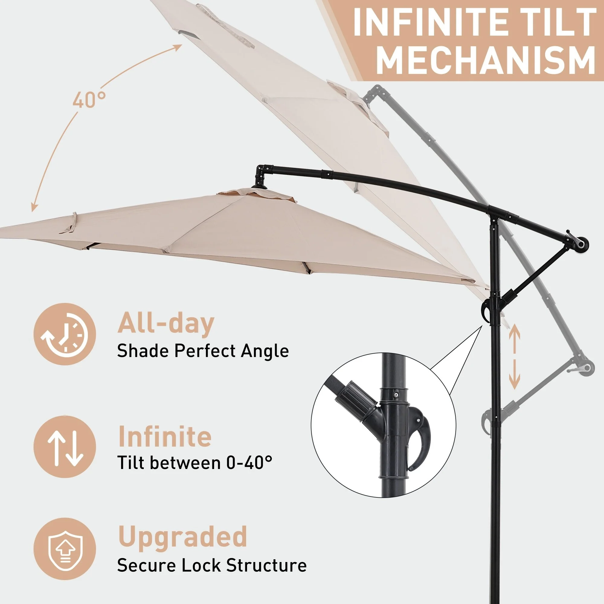 Ainfox 10 ft Cantilever Offset Outdoor Patio Umbrella with Base Stand Rotate and Tilt