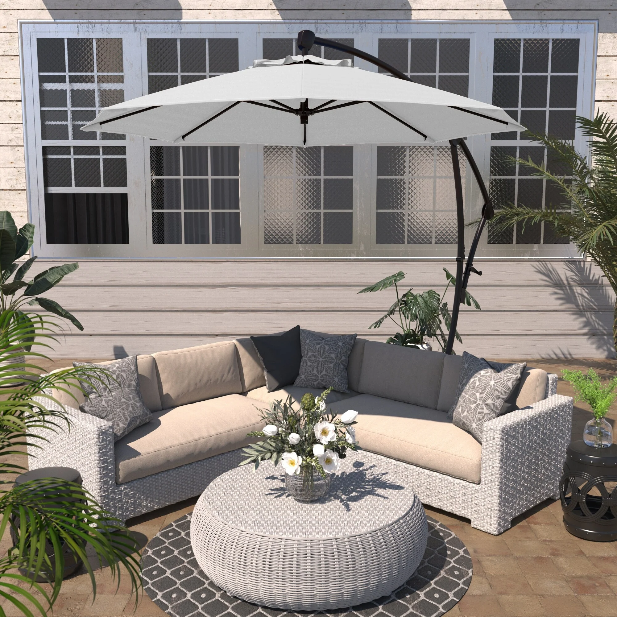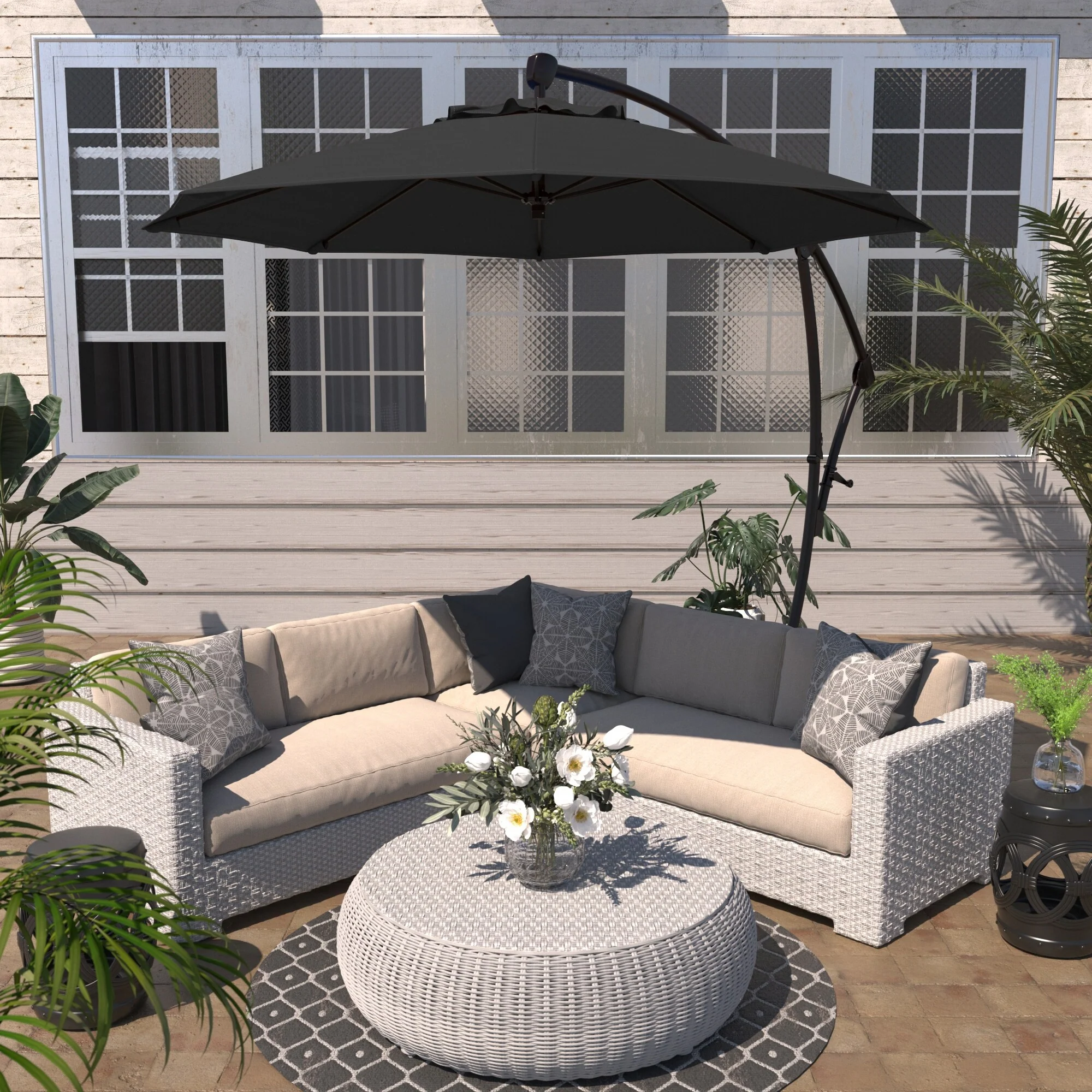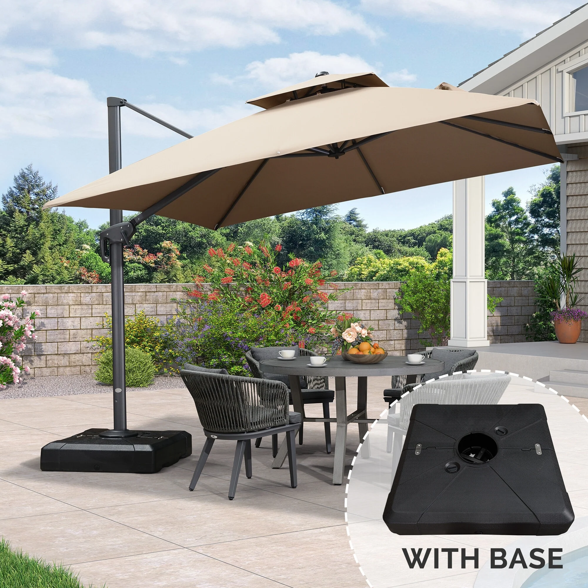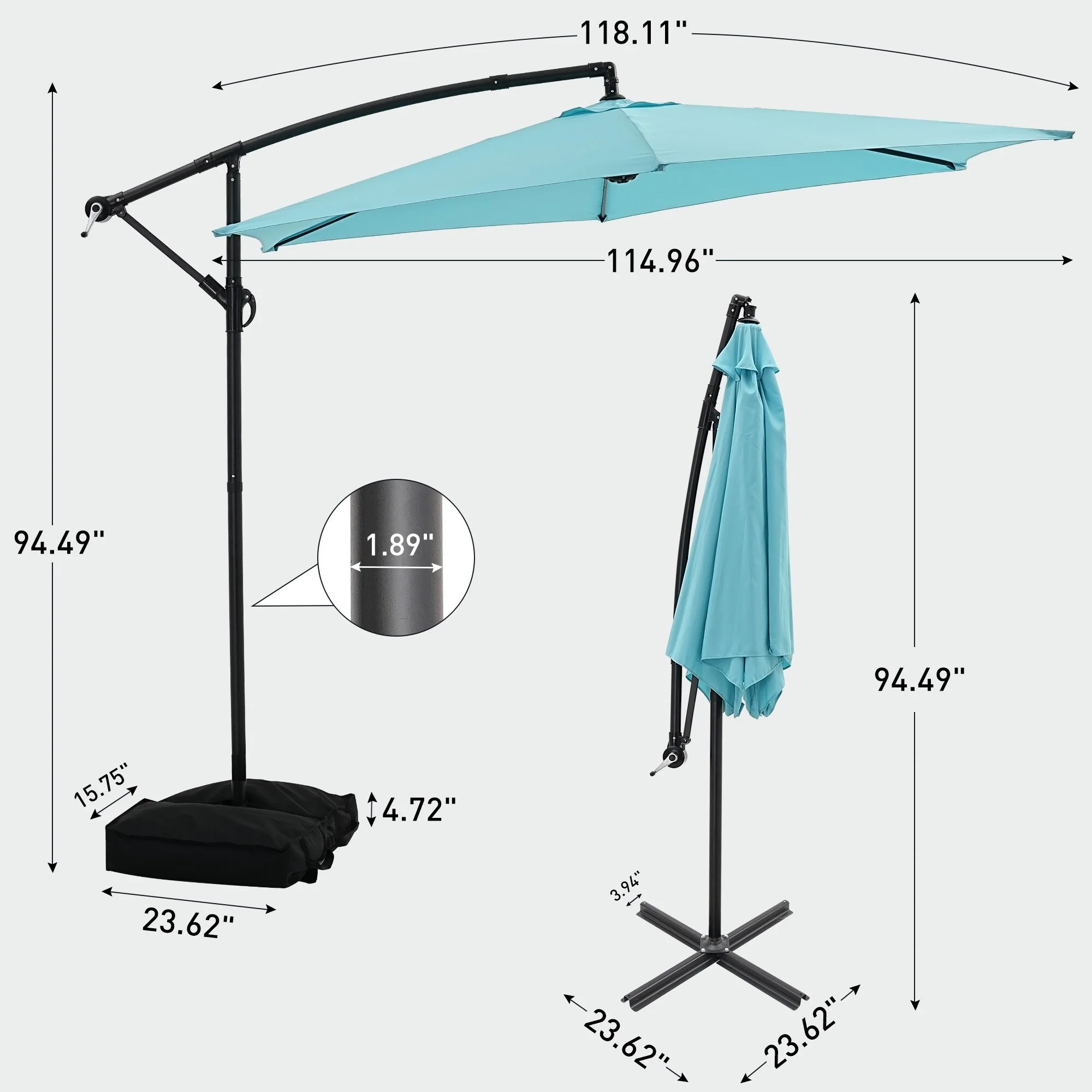 Ainfox 10 ft Cantilever Offset Outdoor Patio Umbrella with Base Stand Rotate and Tilt