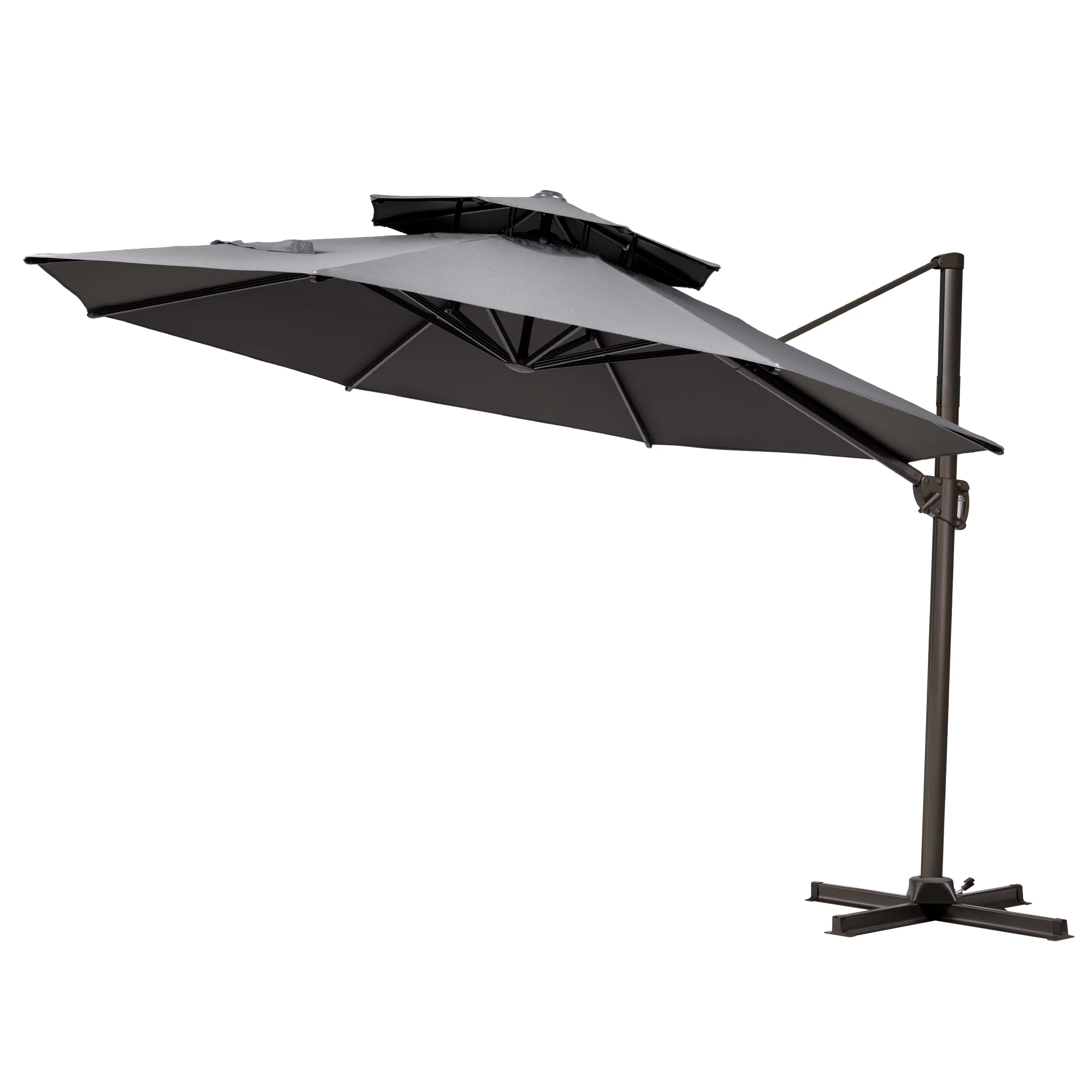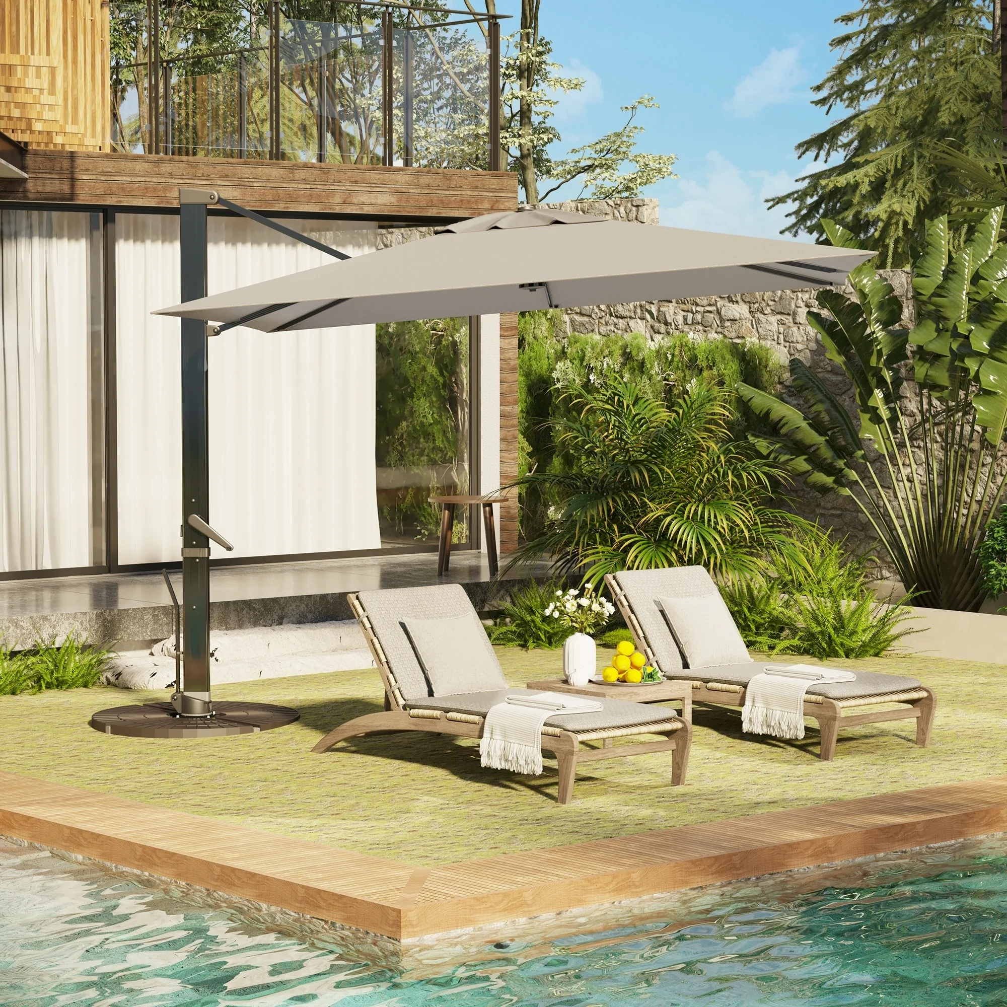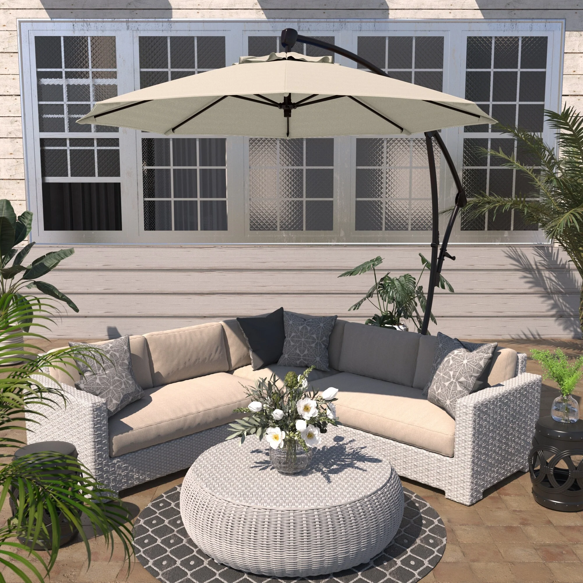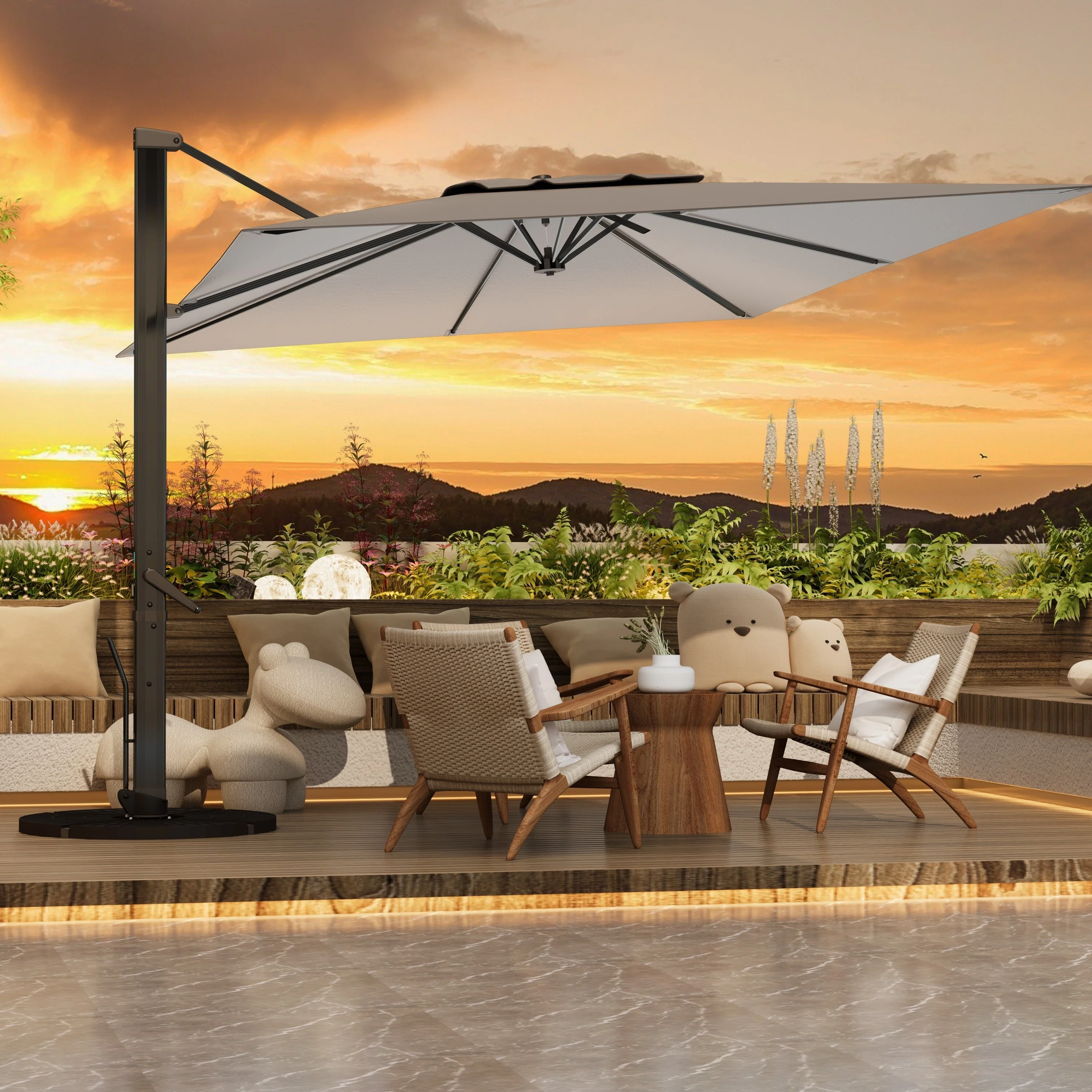 Ainfox 10 ft Cantilever Offset Outdoor Patio Umbrella with Base Stand Rotate and Tilt