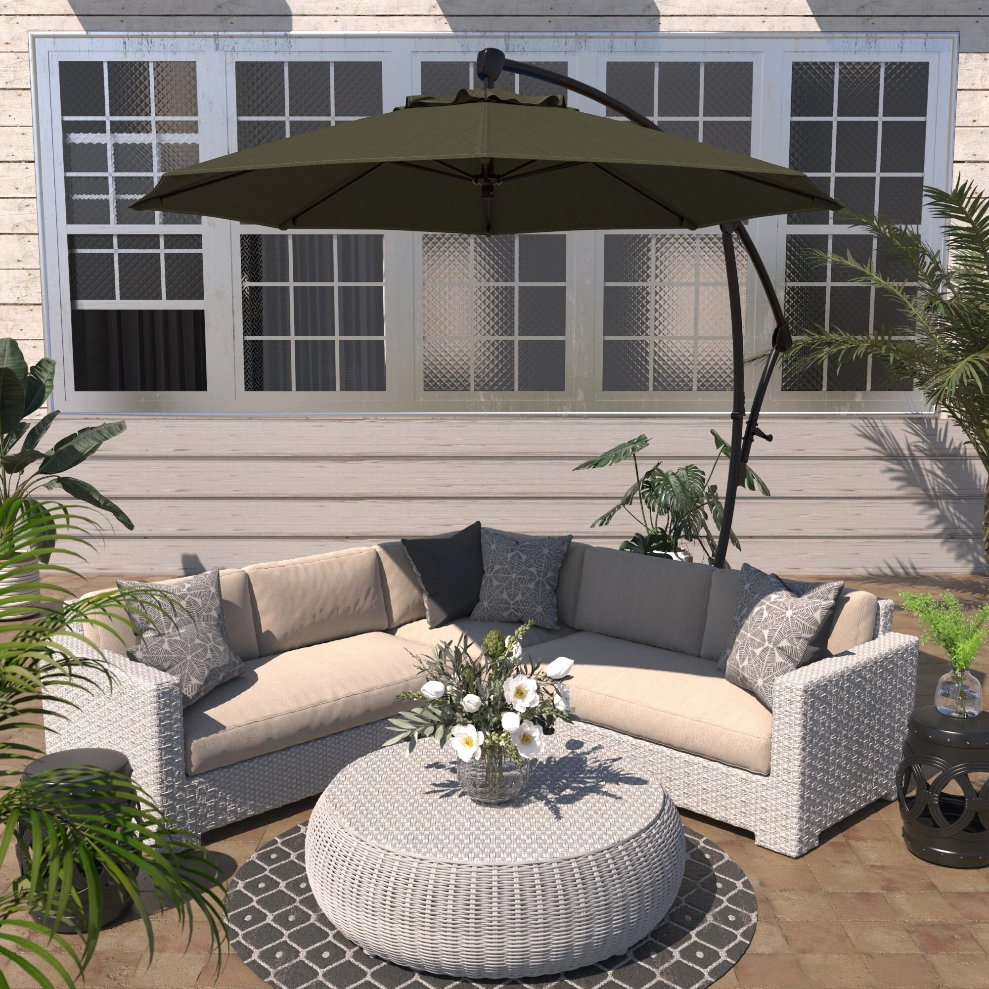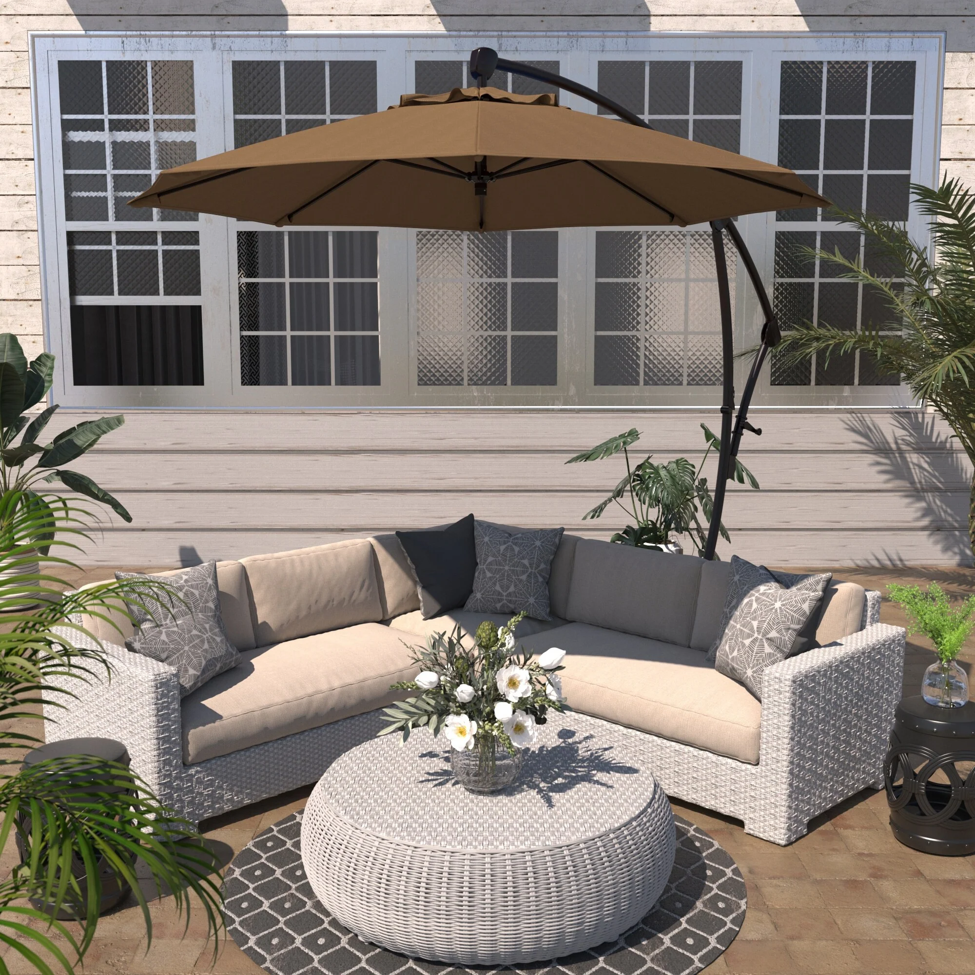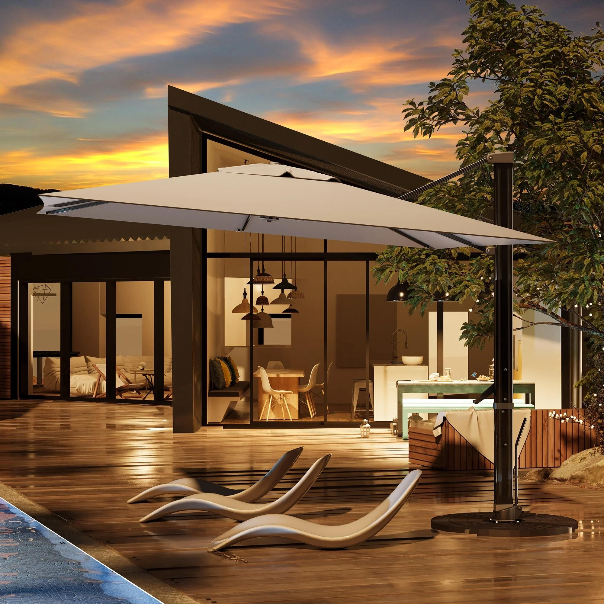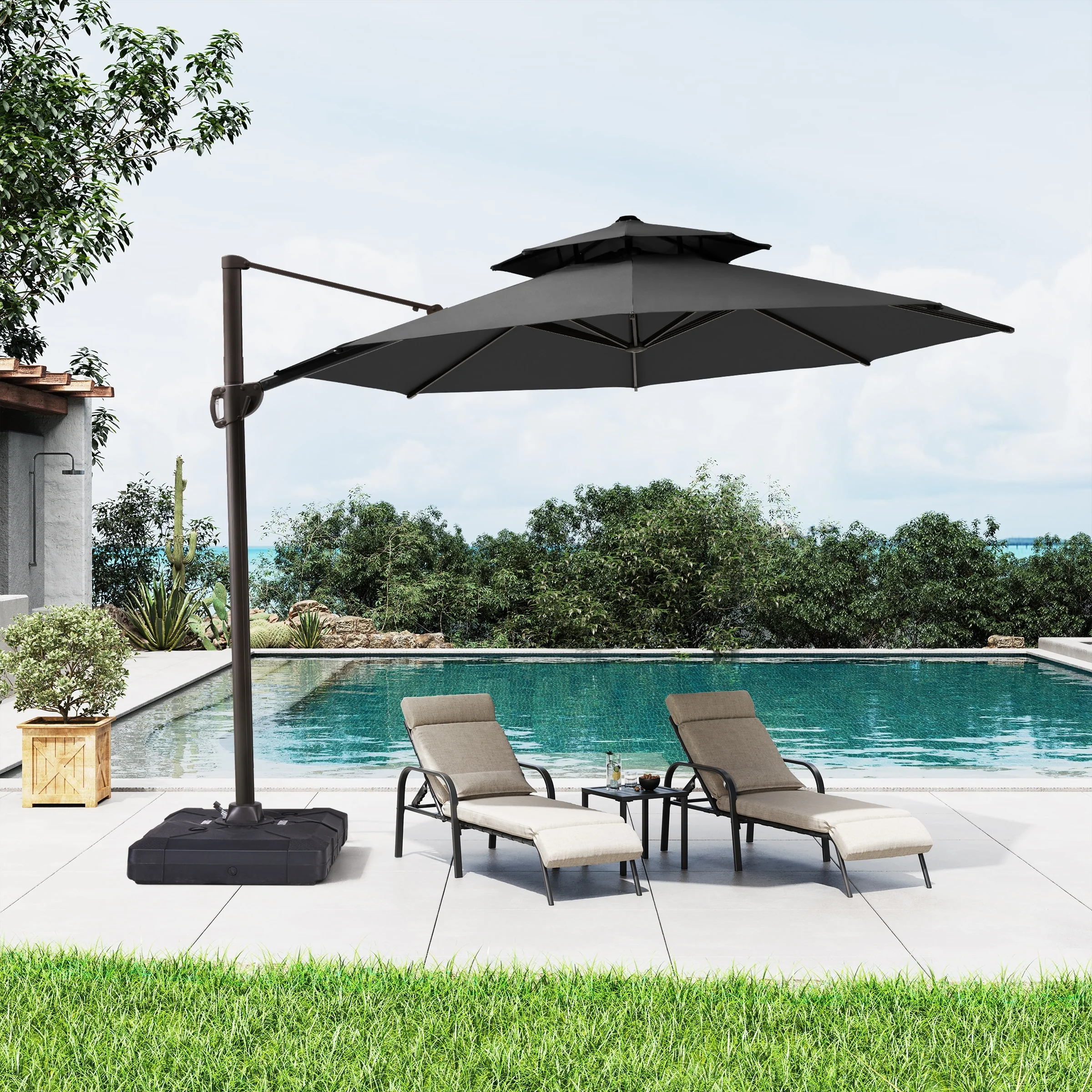 Ainfox 10 ft Cantilever Offset Outdoor Patio Umbrella with Base Stand Rotate and Tilt