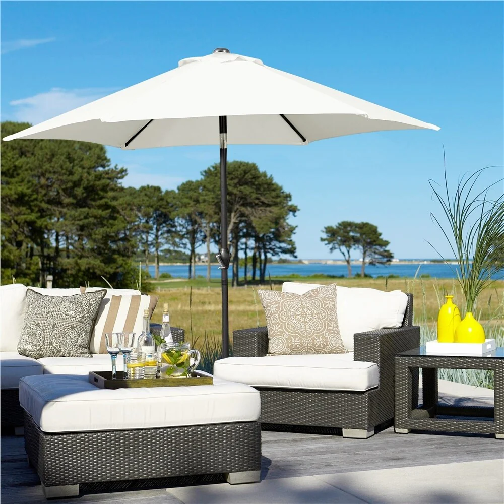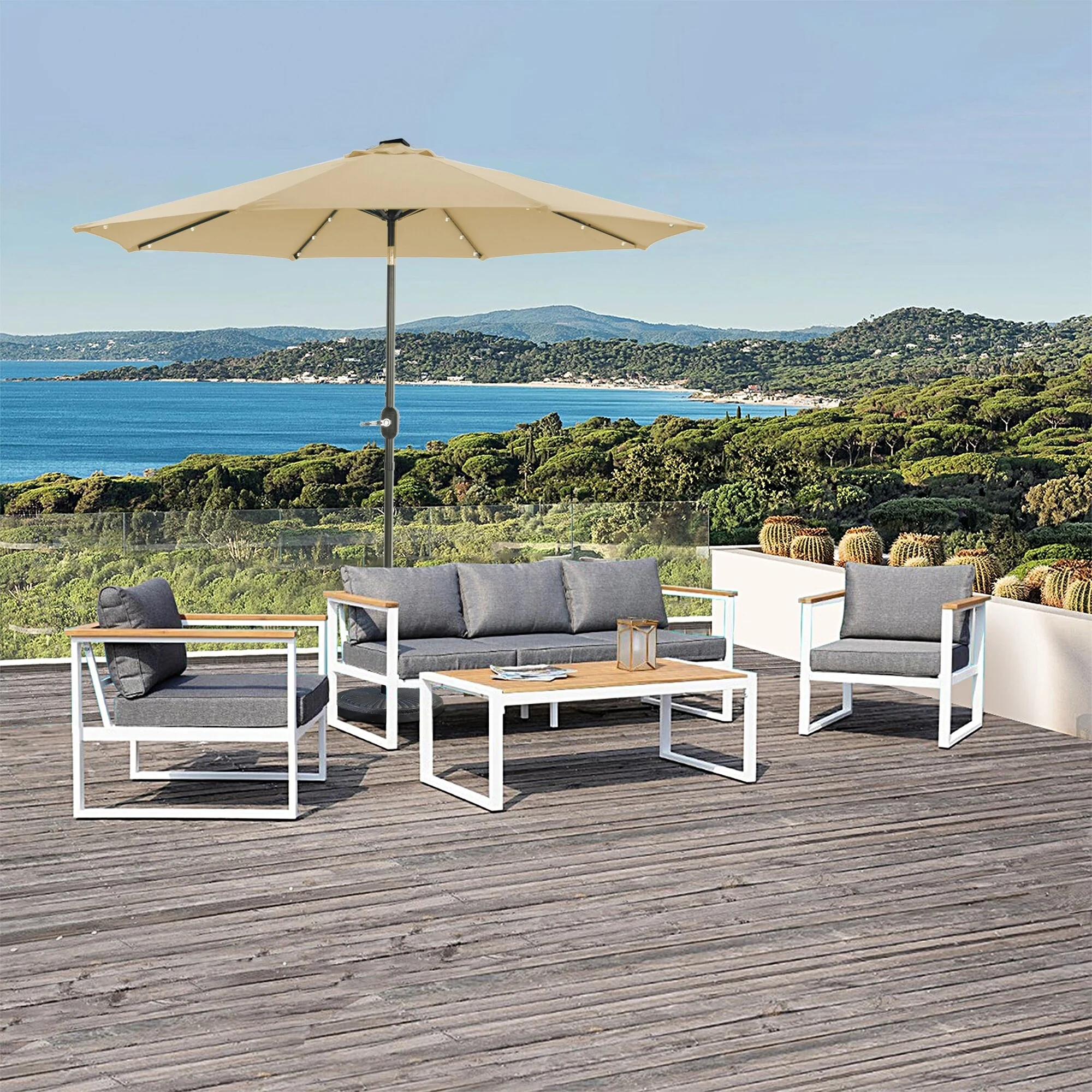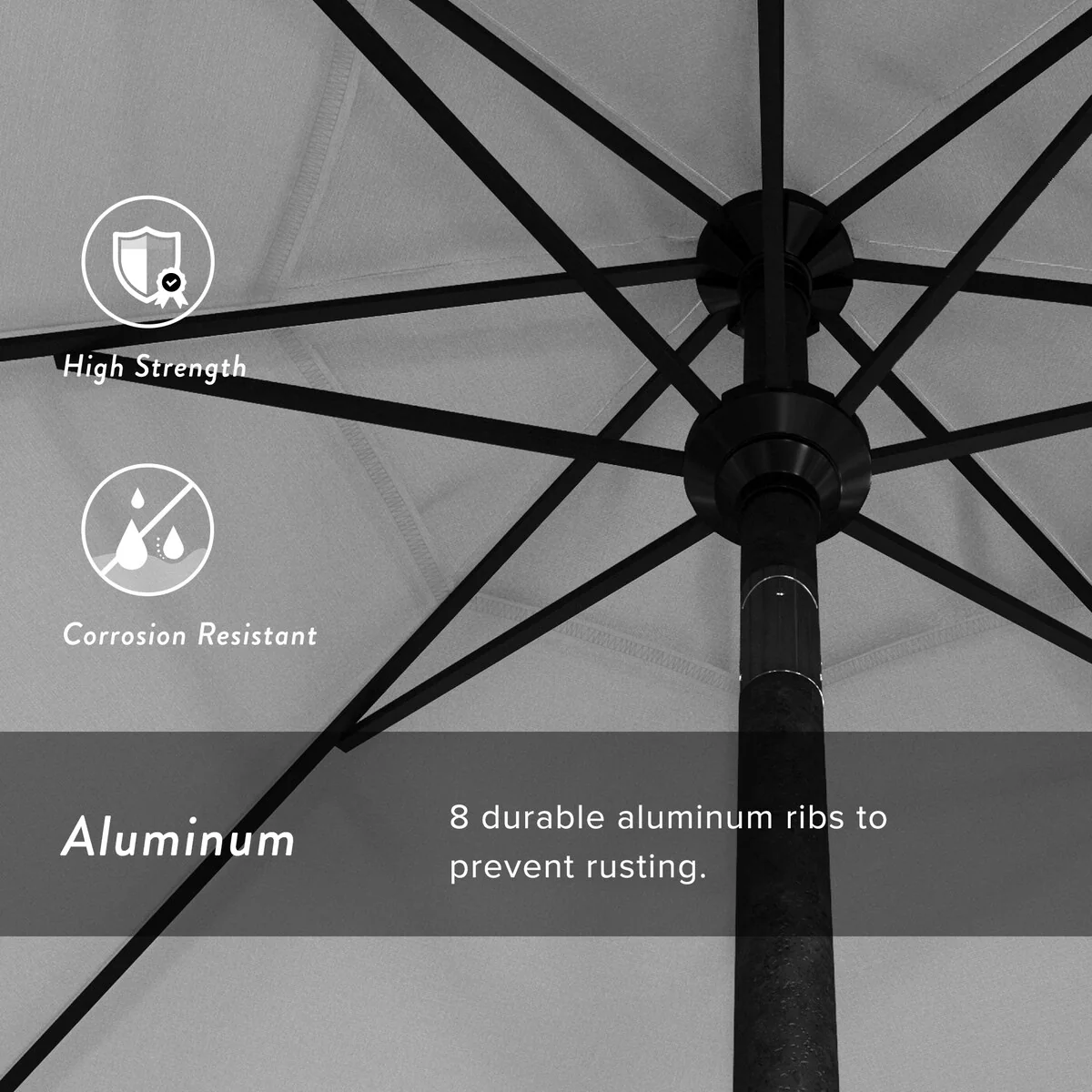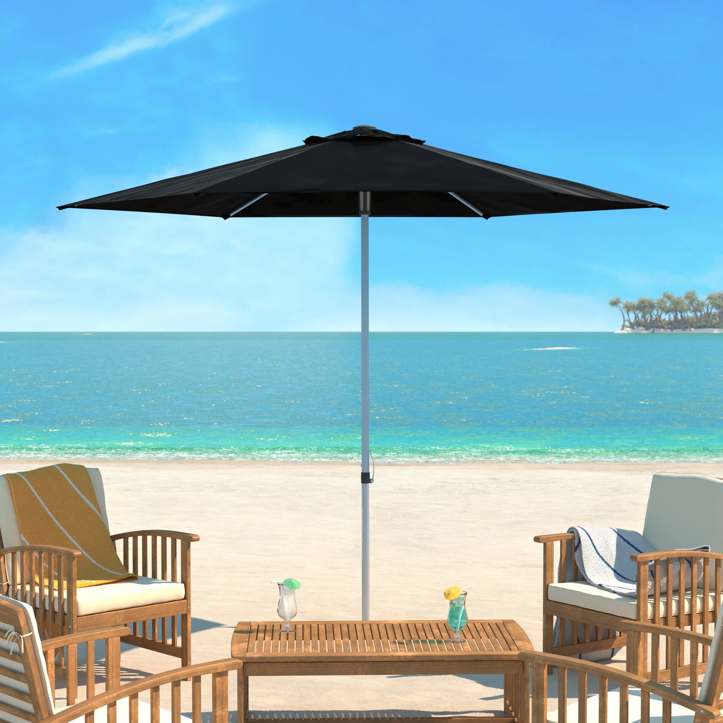 SAFAVIEH Hurst Natural Aluminum Tilt and Crank 9-foot Easy Glide Market Patio Umbrella