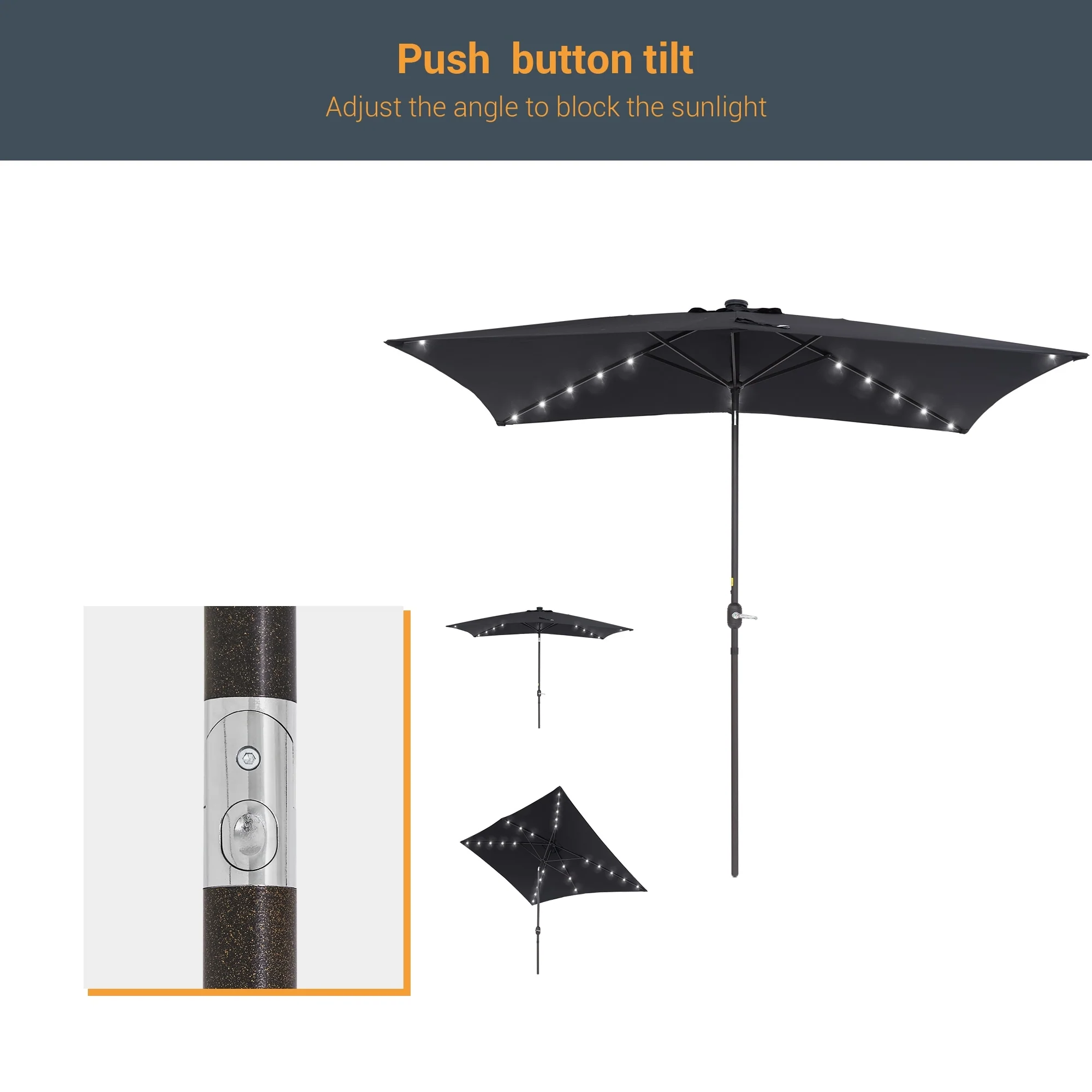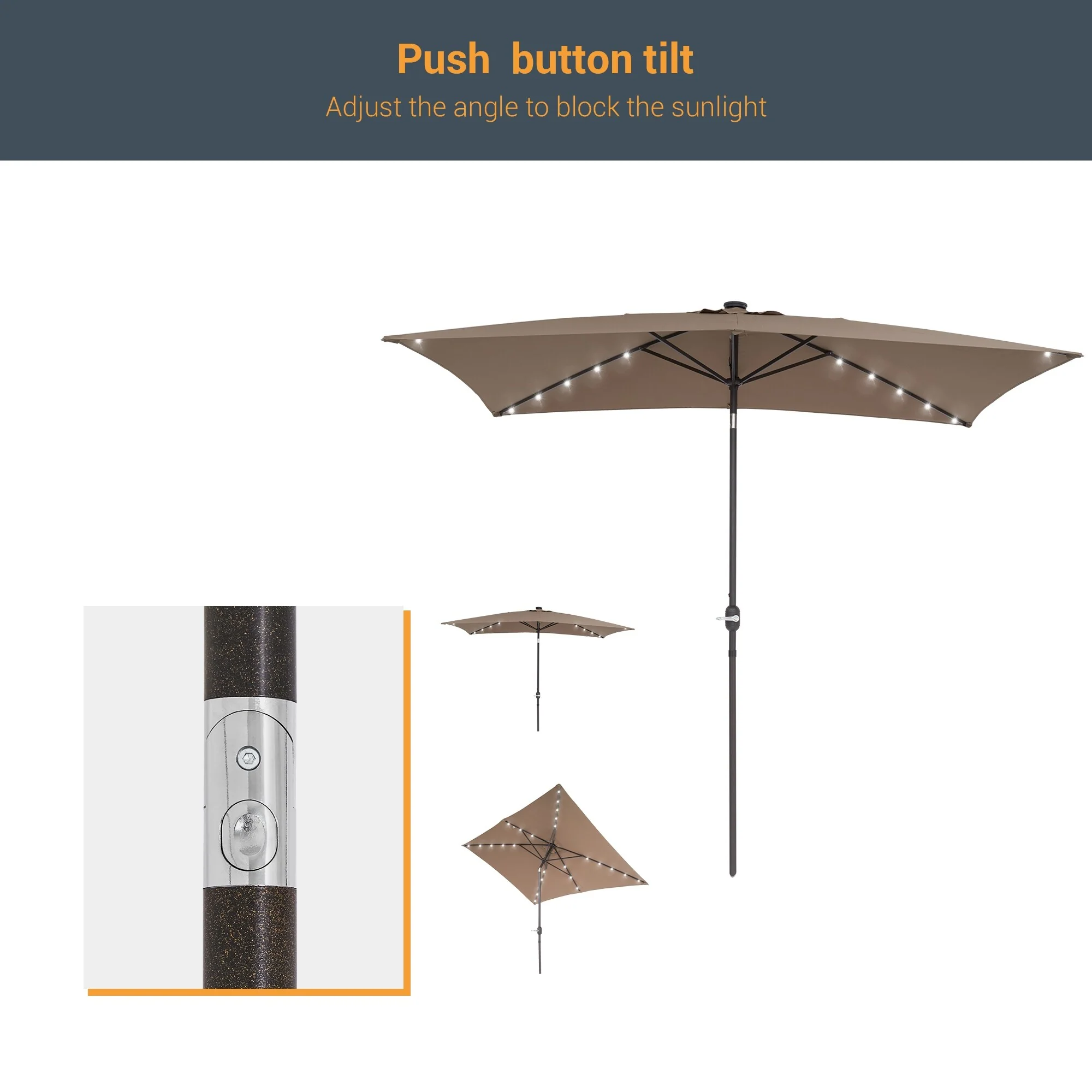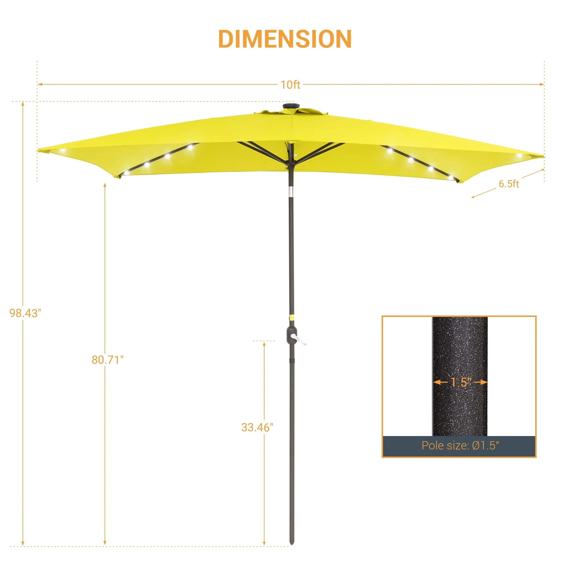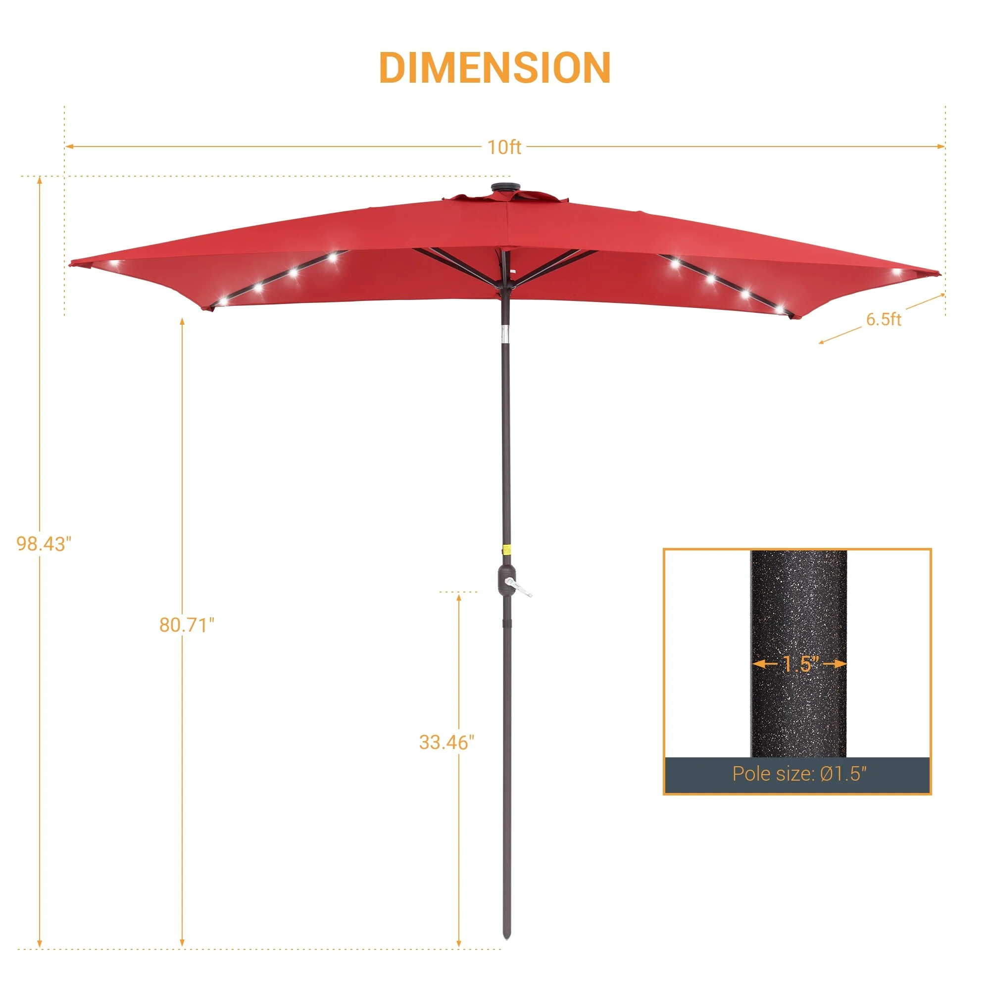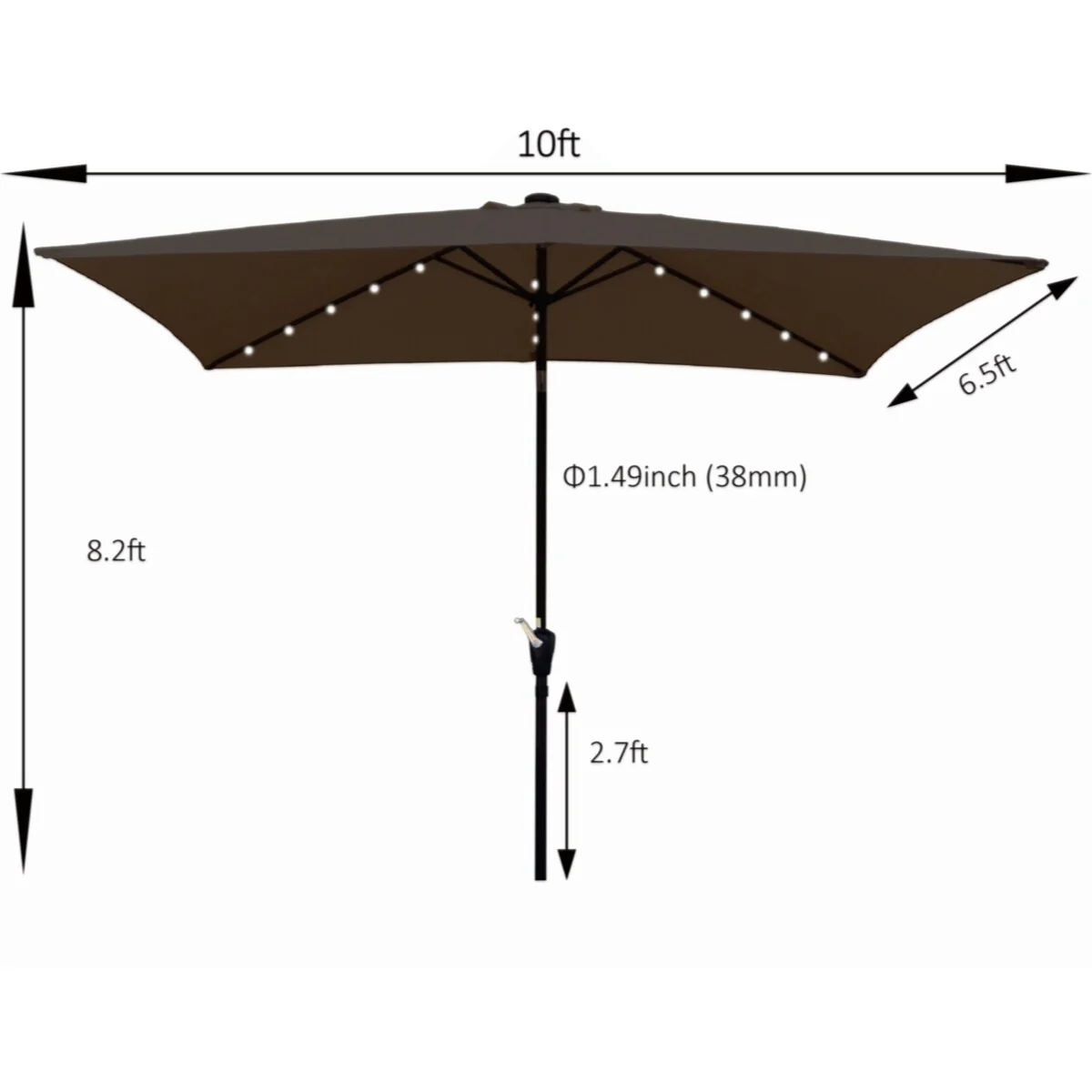 10 x 6.5t Rectangular Patio Solar LED Lighted Outdoor Market Umbrellas with Crank and Push Button Tilt