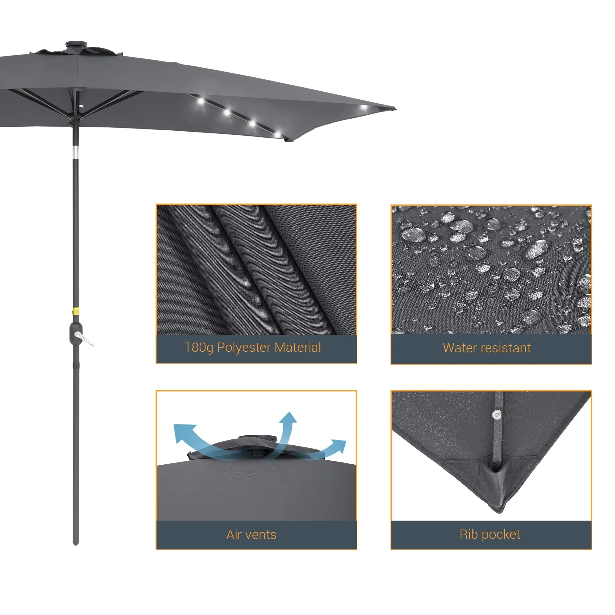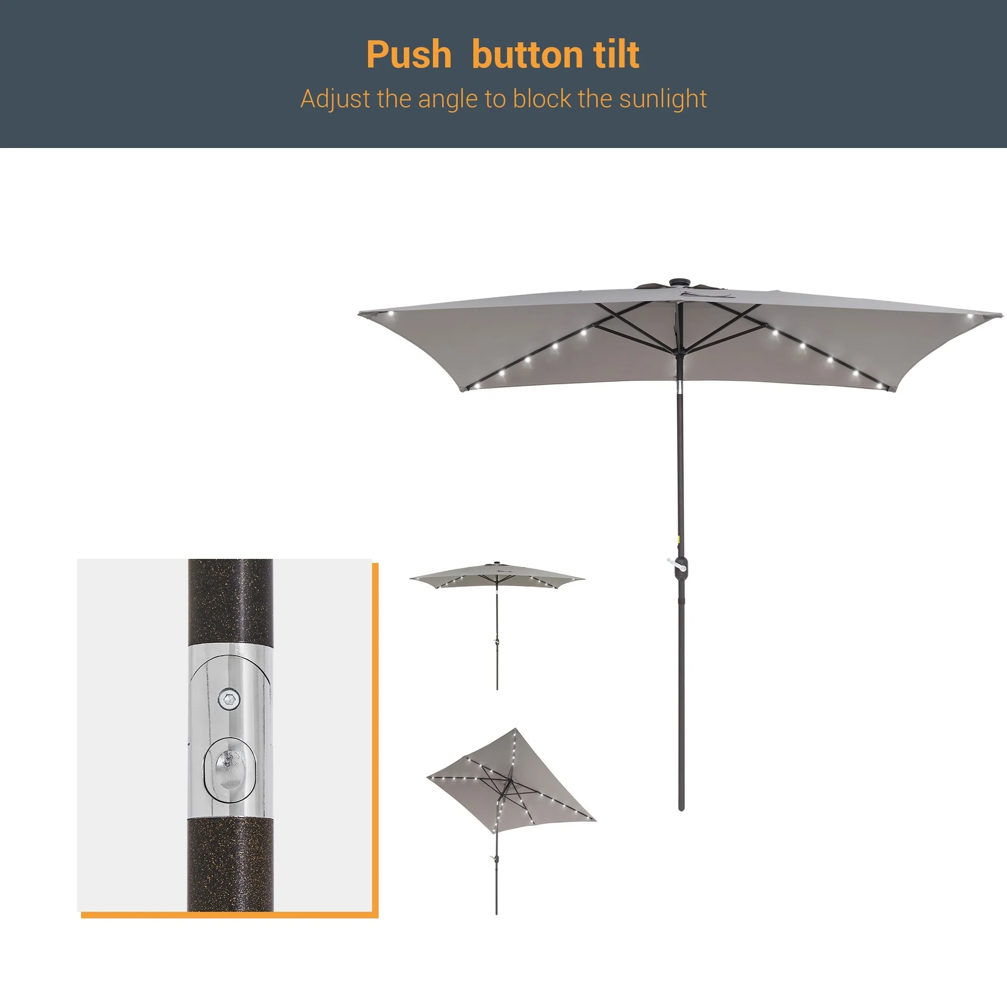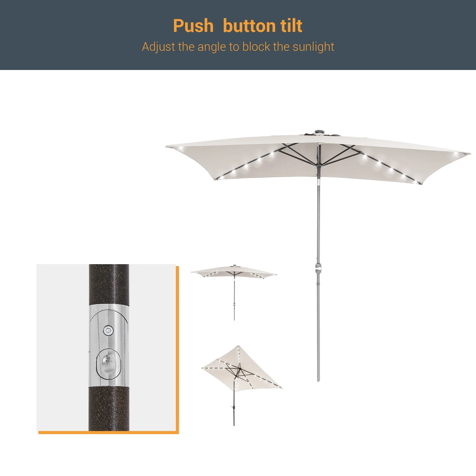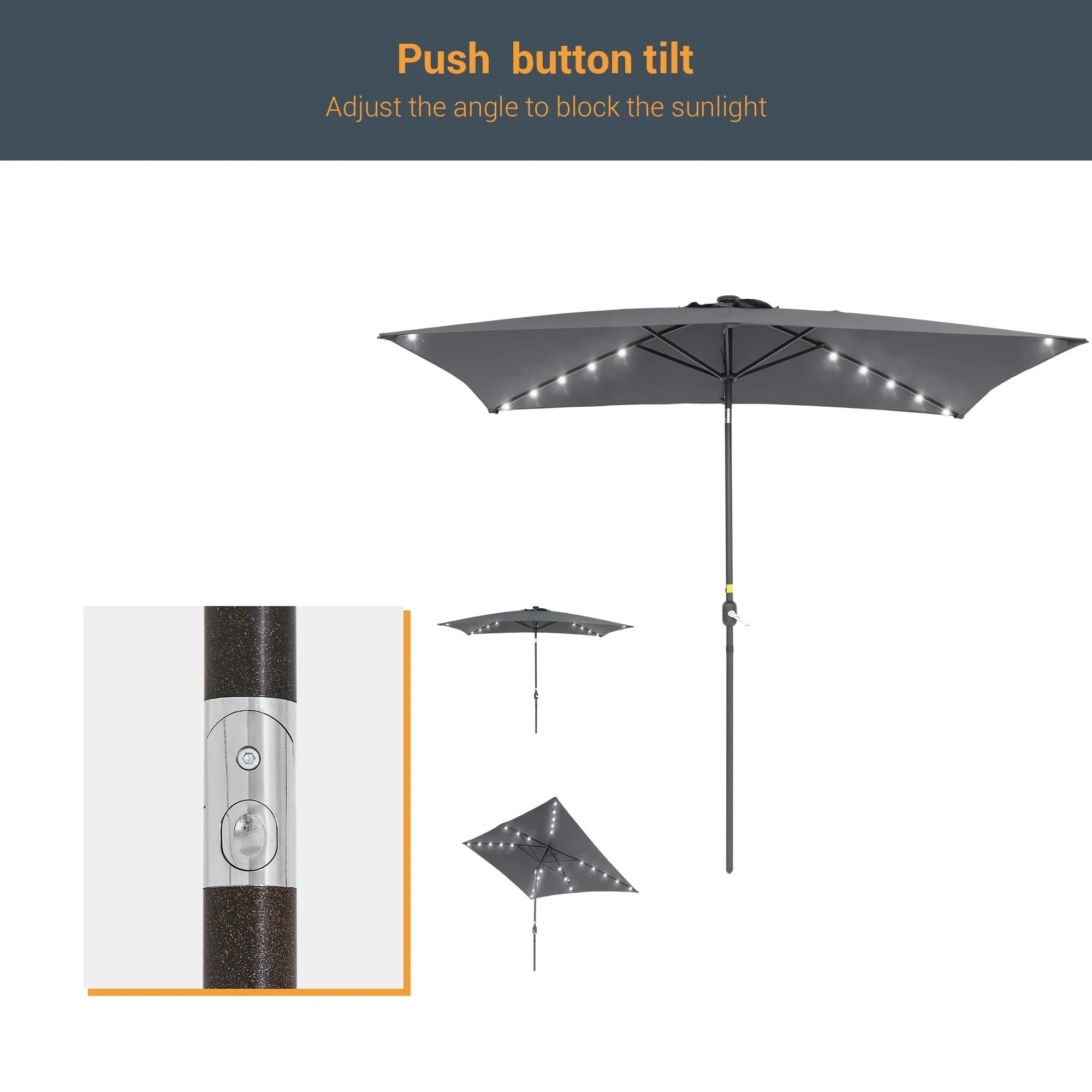 10 x 6.5t Rectangular Patio Solar LED Lighted Outdoor Market Umbrellas with Crank and Push Button Tilt