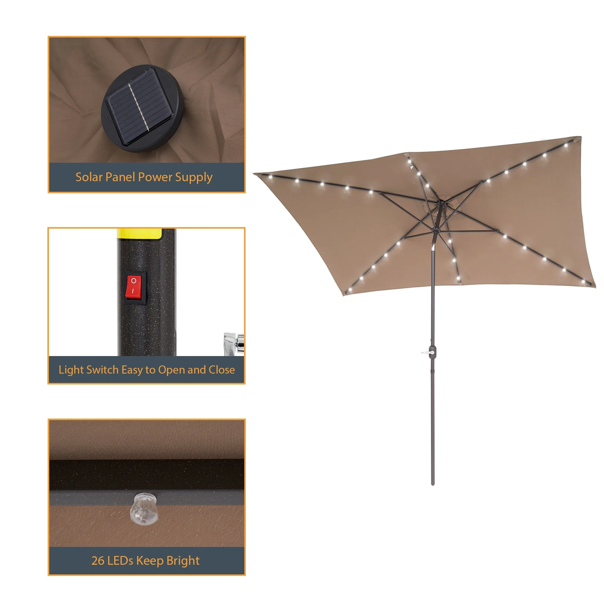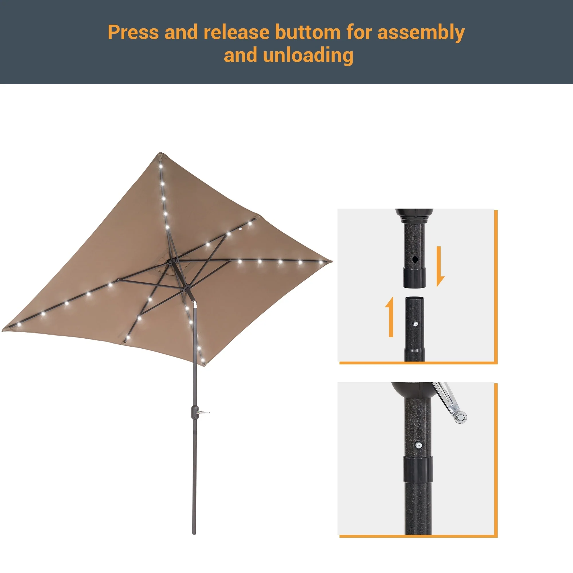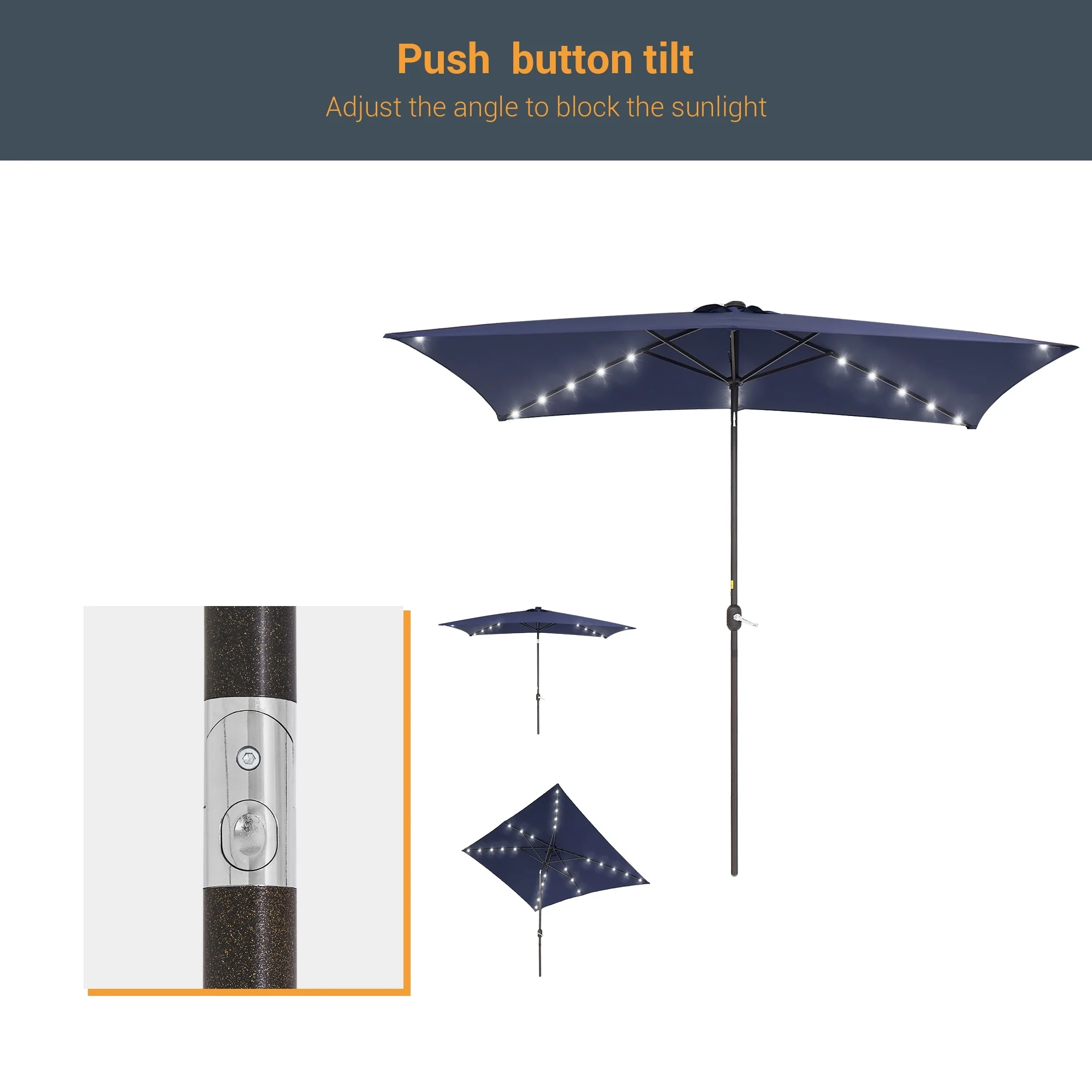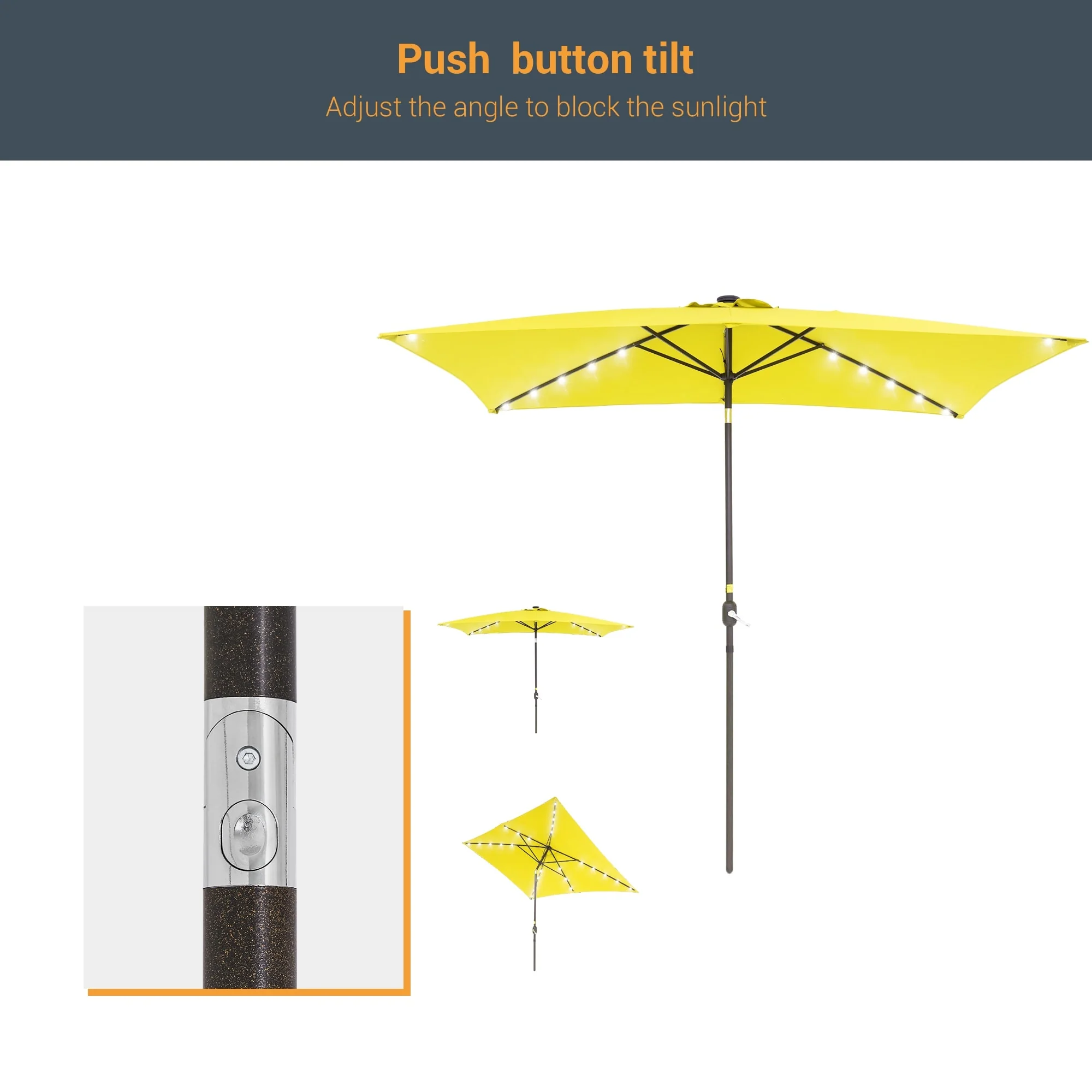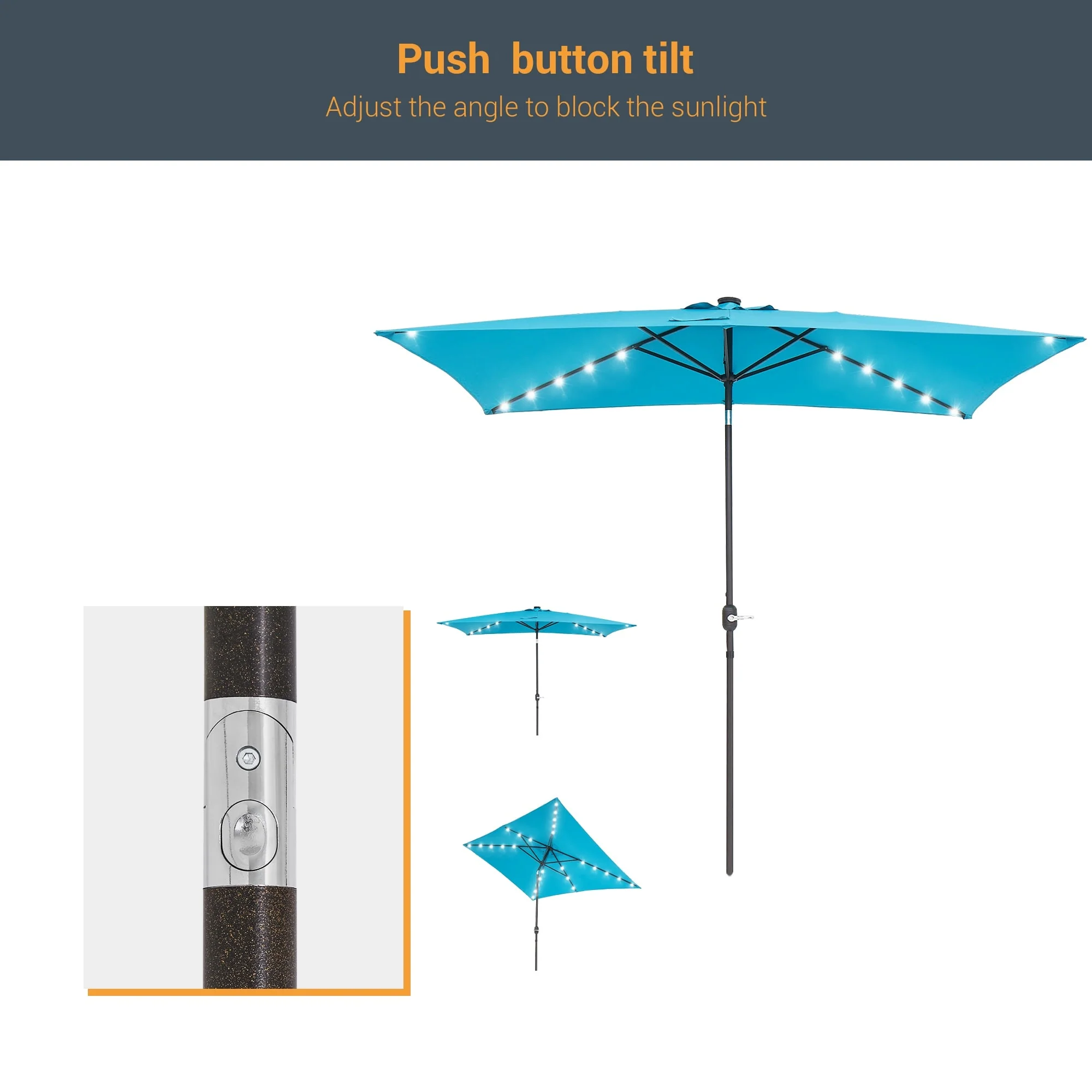 10 x 6.5t Rectangular Patio Solar LED Lighted Outdoor Market Umbrellas with Crank and Push Button Tilt