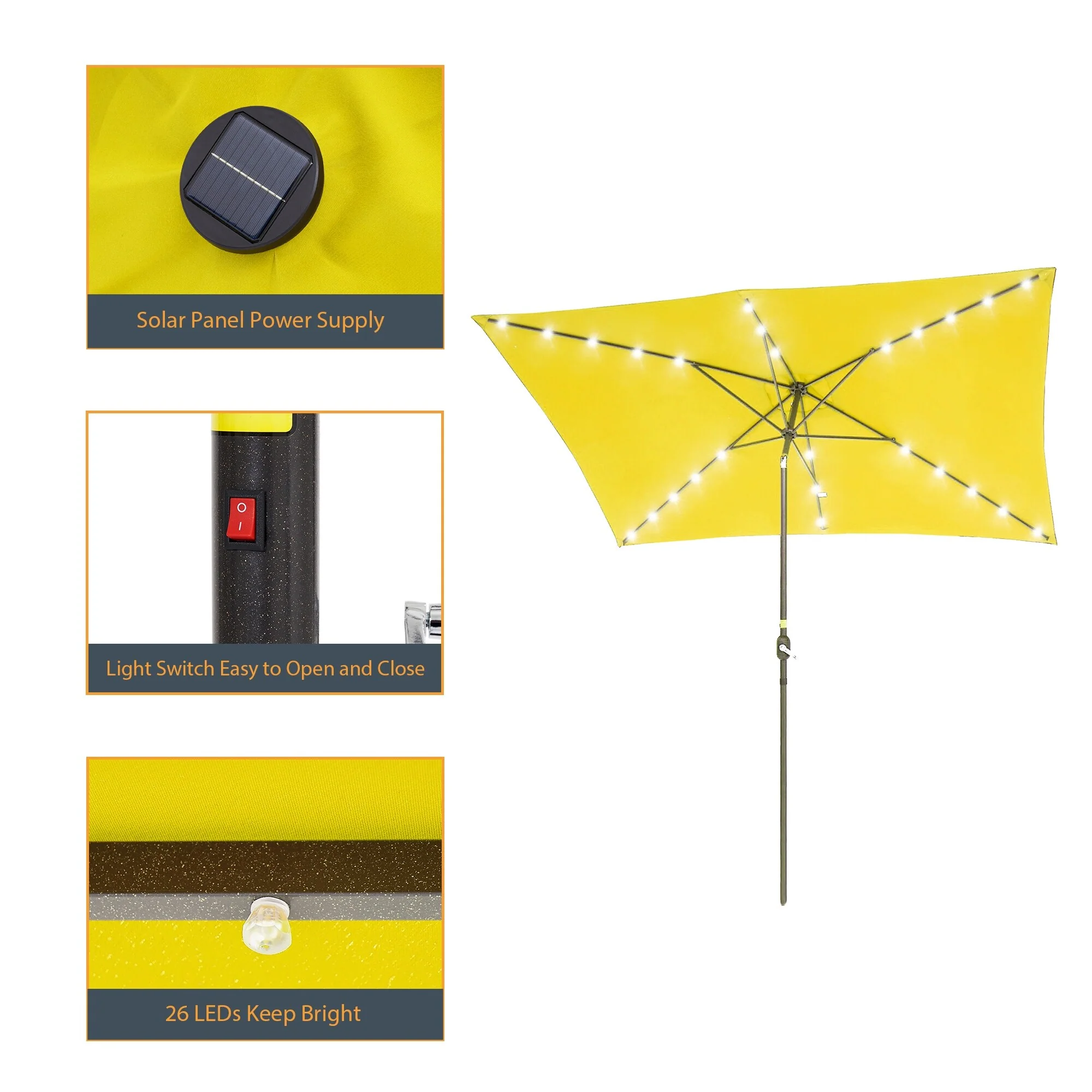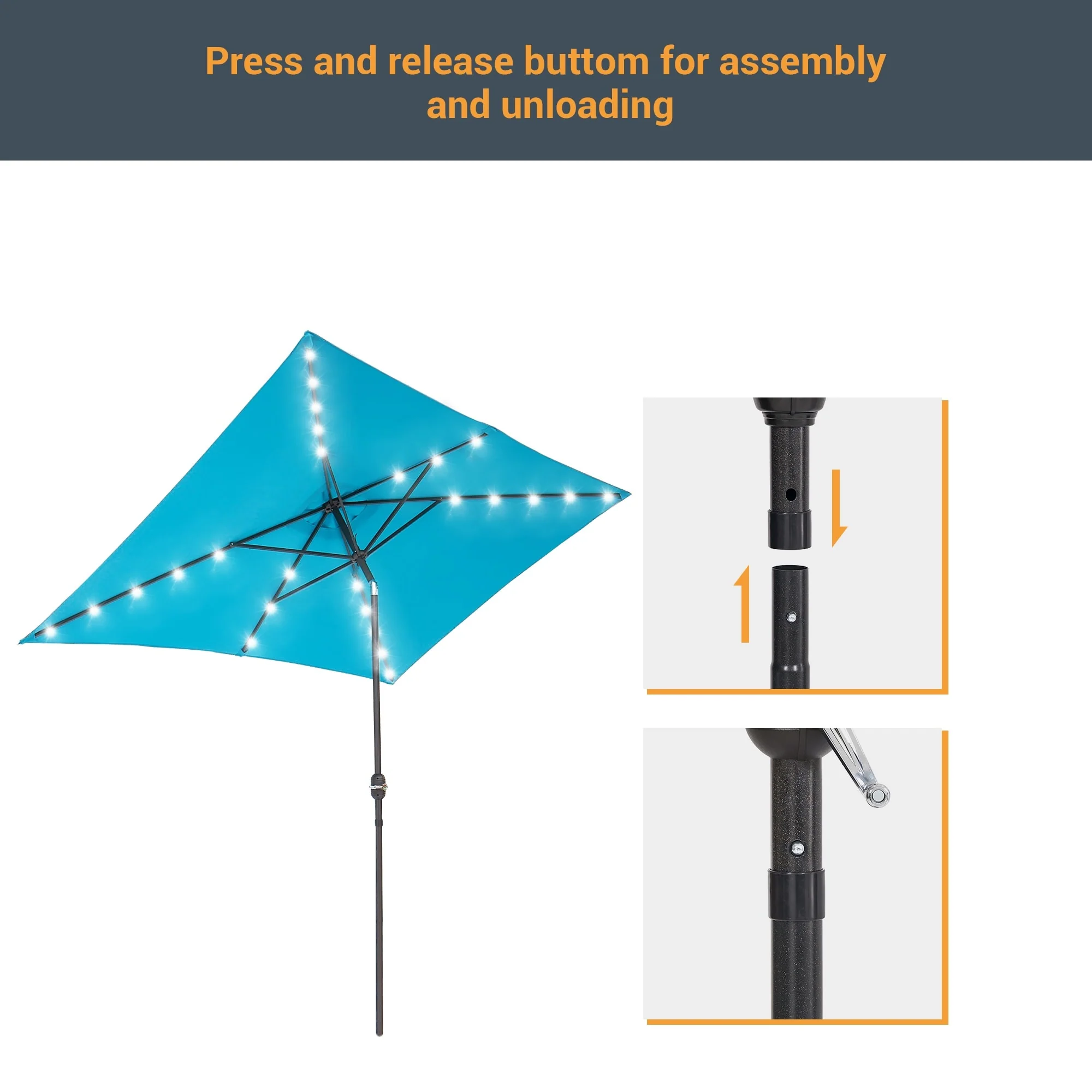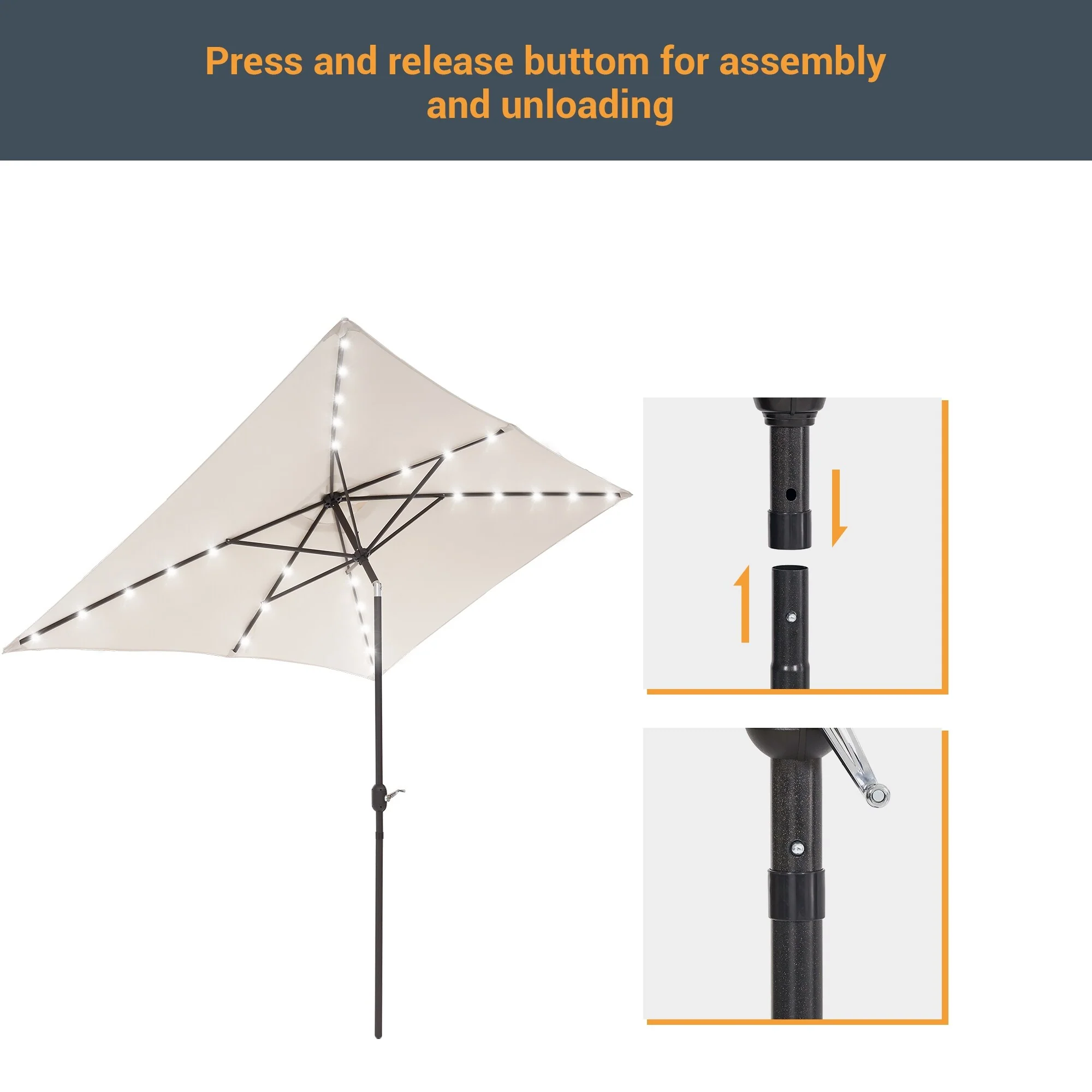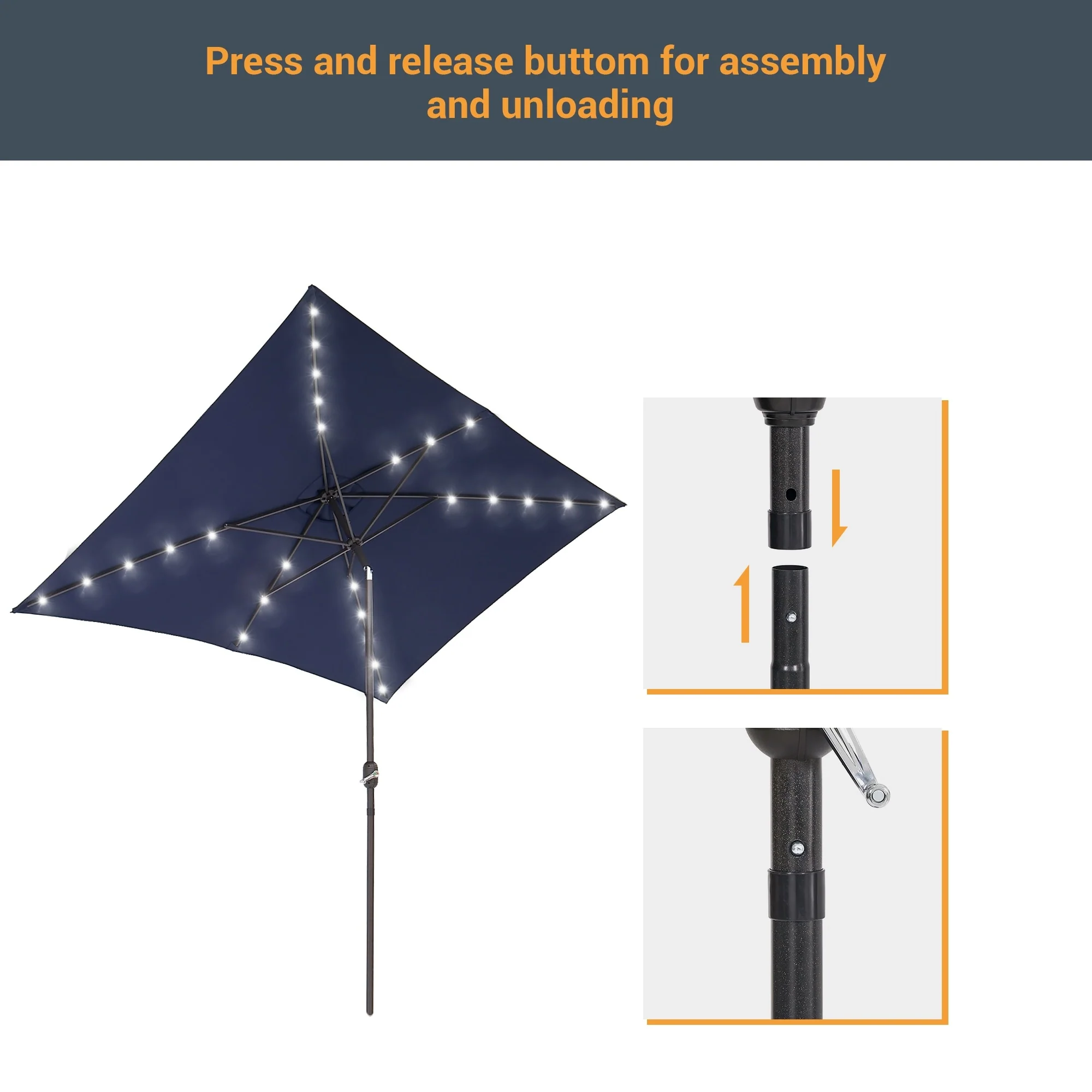 10 x 6.5t Rectangular Patio Solar LED Lighted Outdoor Market Umbrellas with Crank and Push Button Tilt