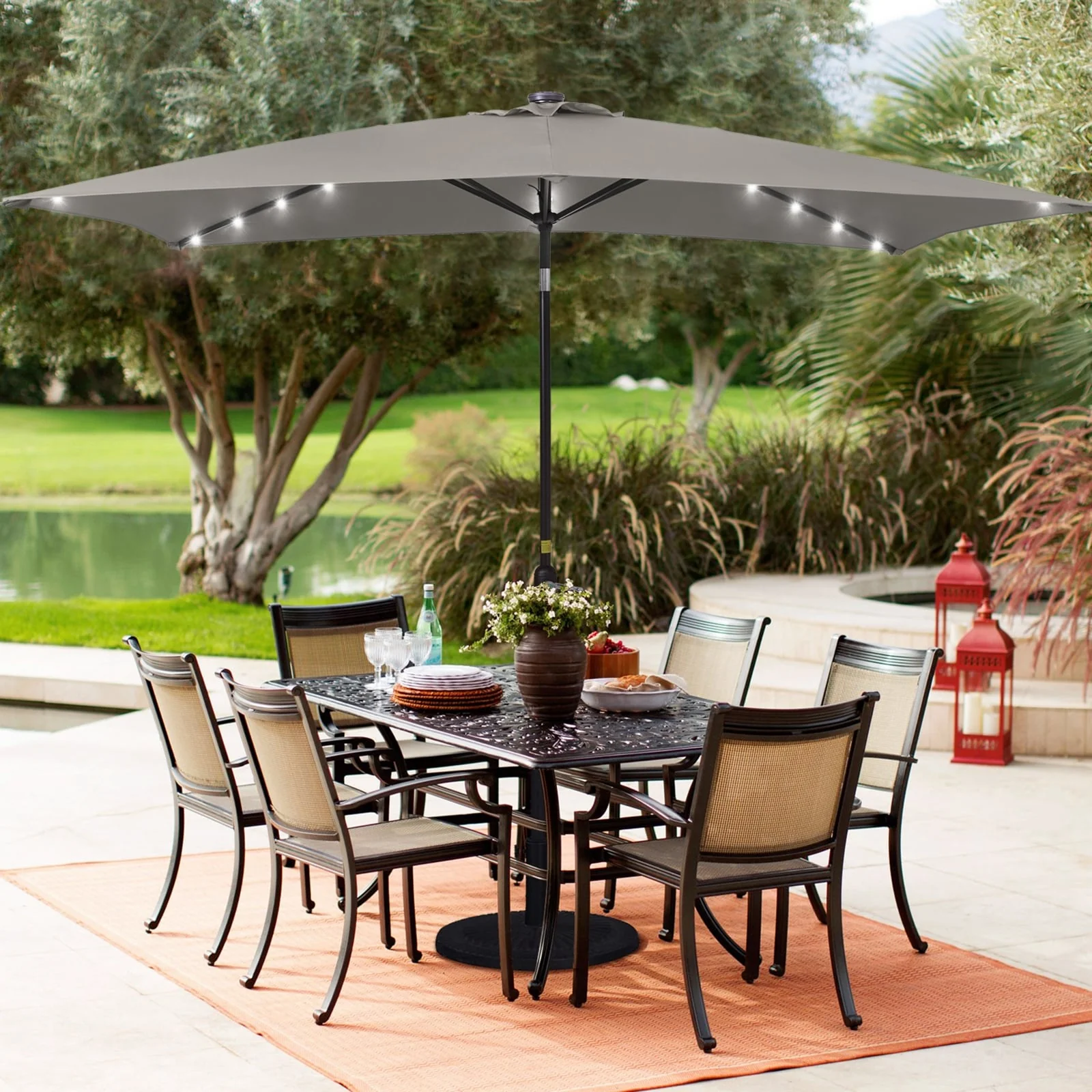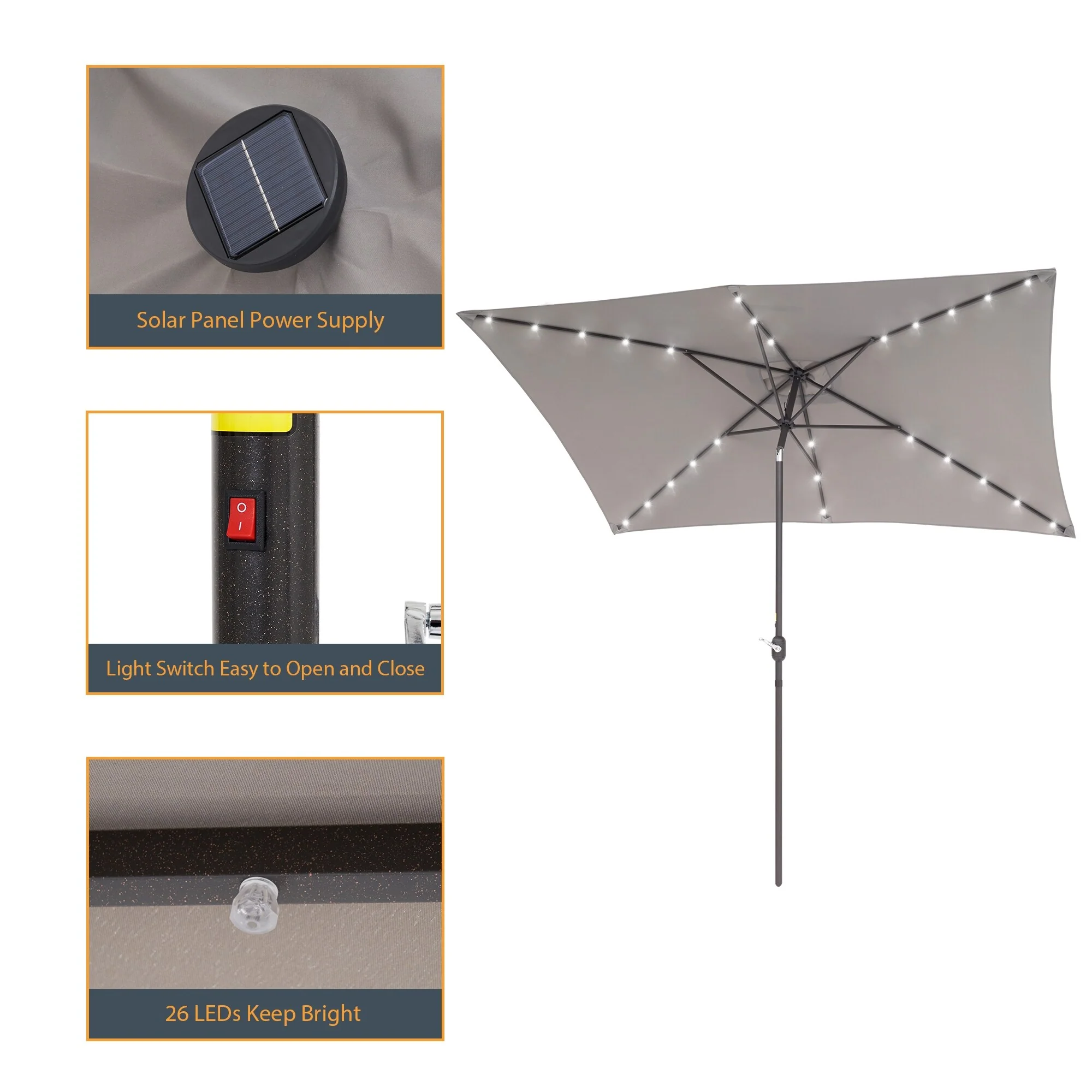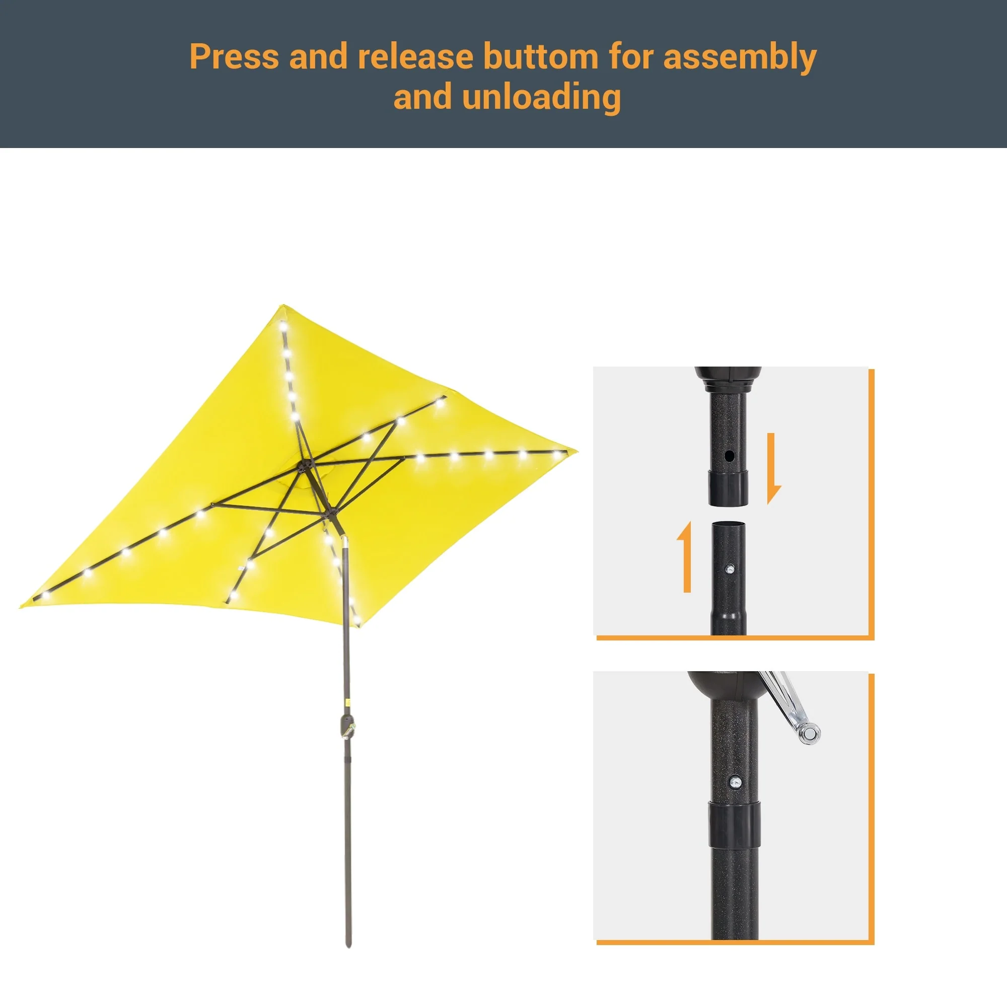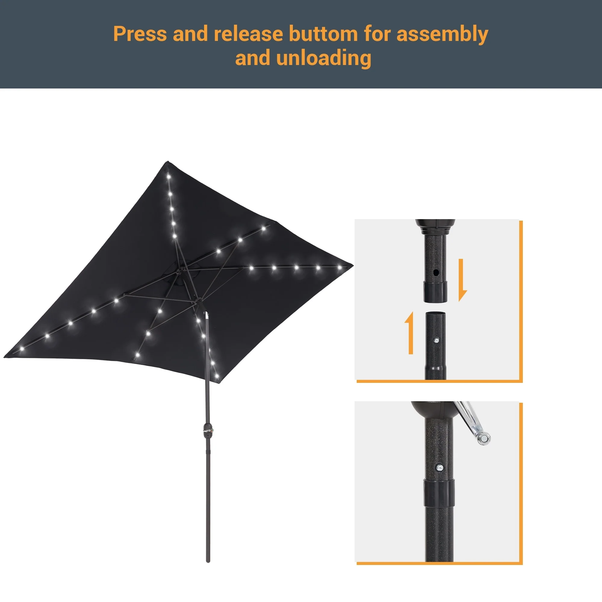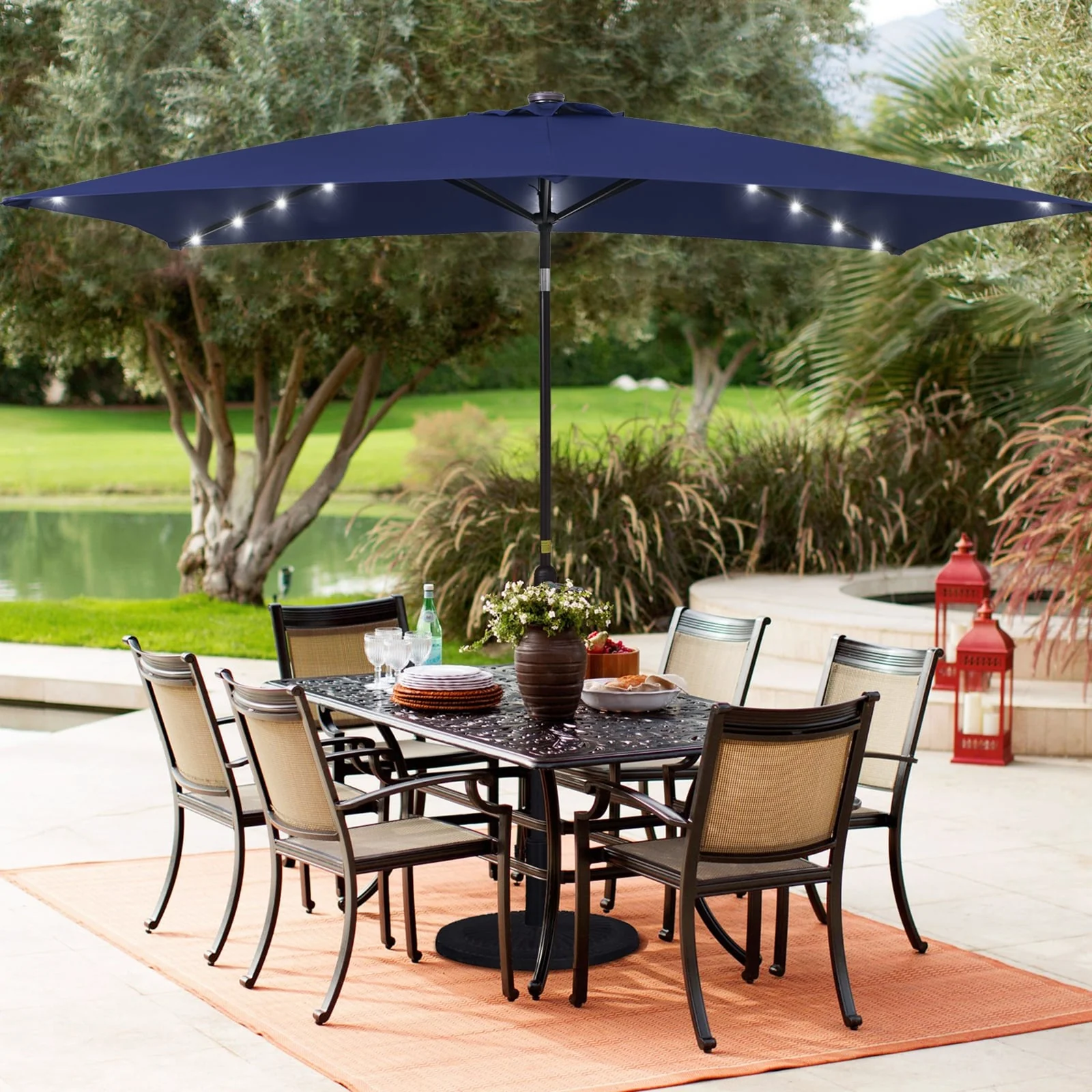 10 x 6.5t Rectangular Patio Solar LED Lighted Outdoor Market Umbrellas with Crank and Push Button Tilt