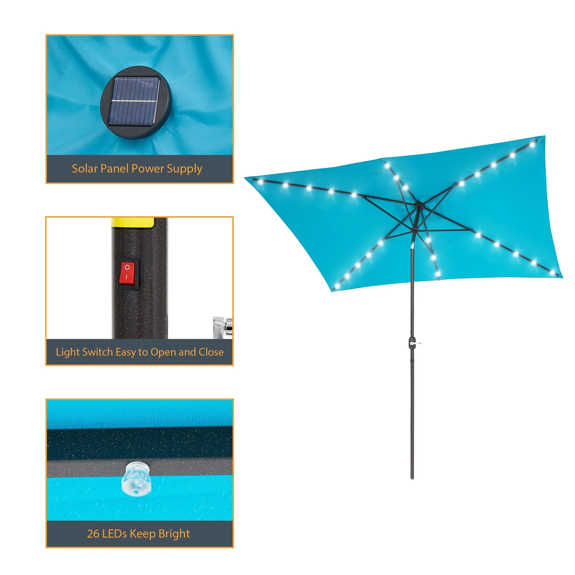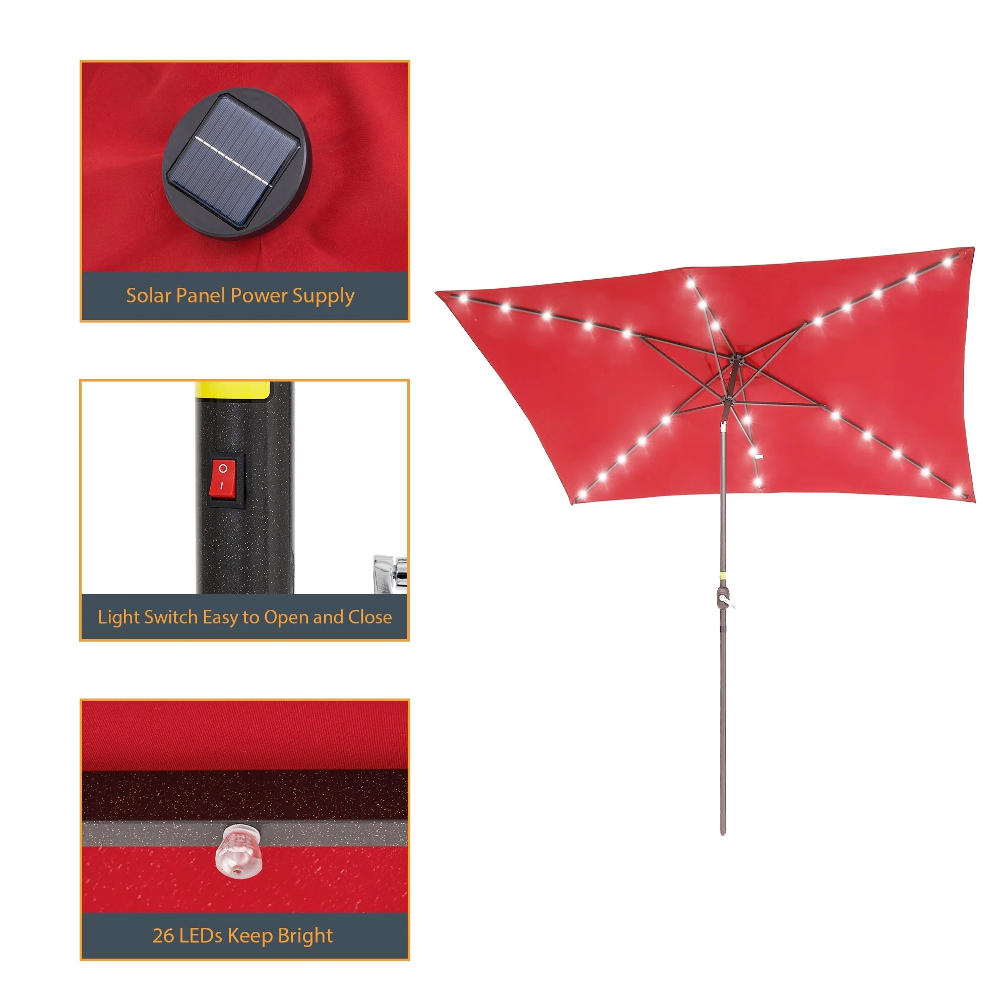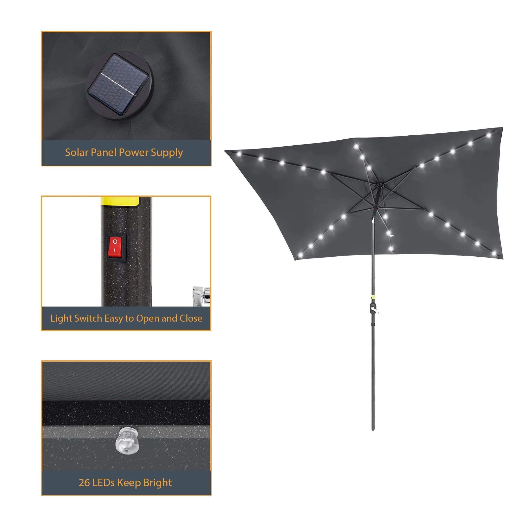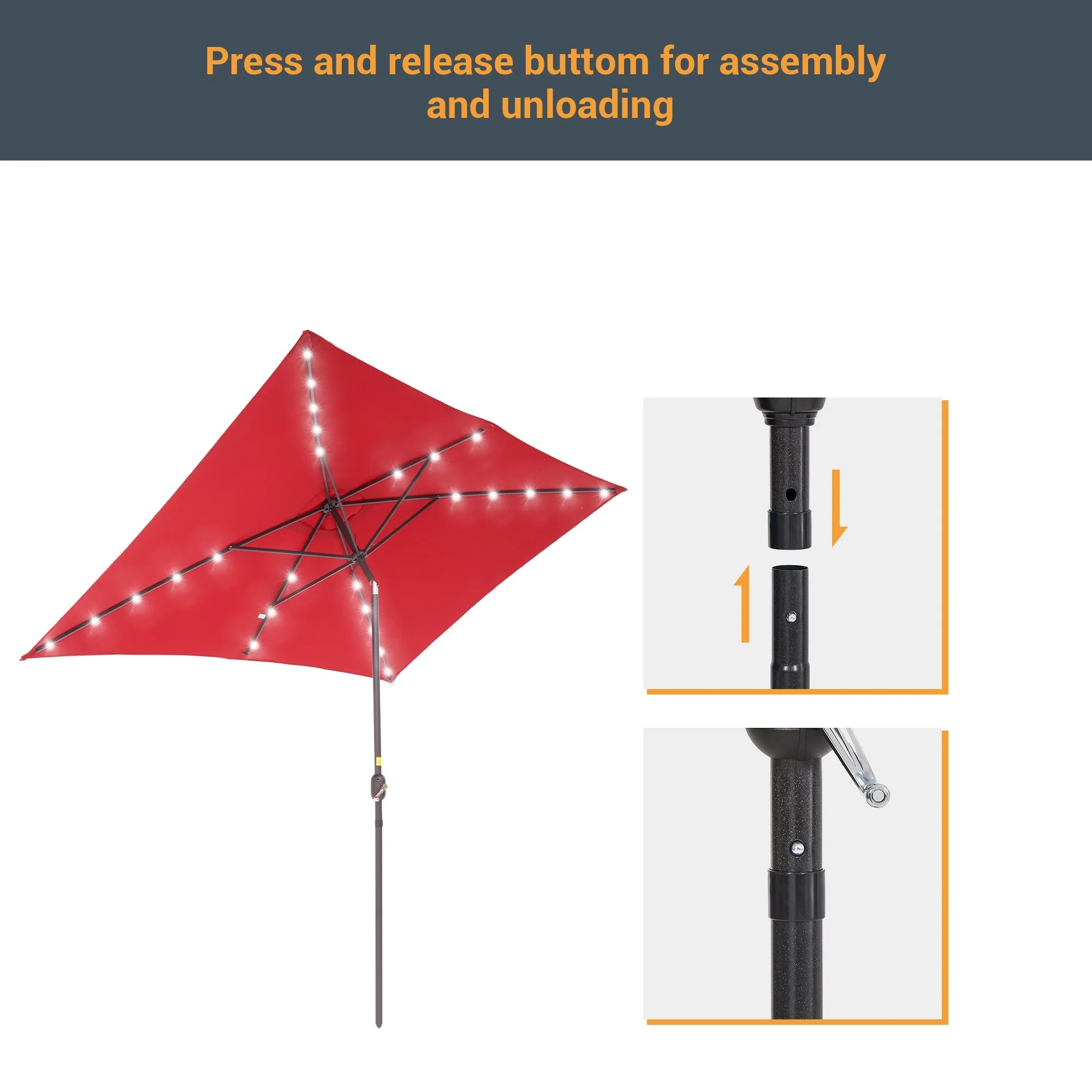 10 x 6.5t Rectangular Patio Solar LED Lighted Outdoor Market Umbrellas with Crank and Push Button Tilt