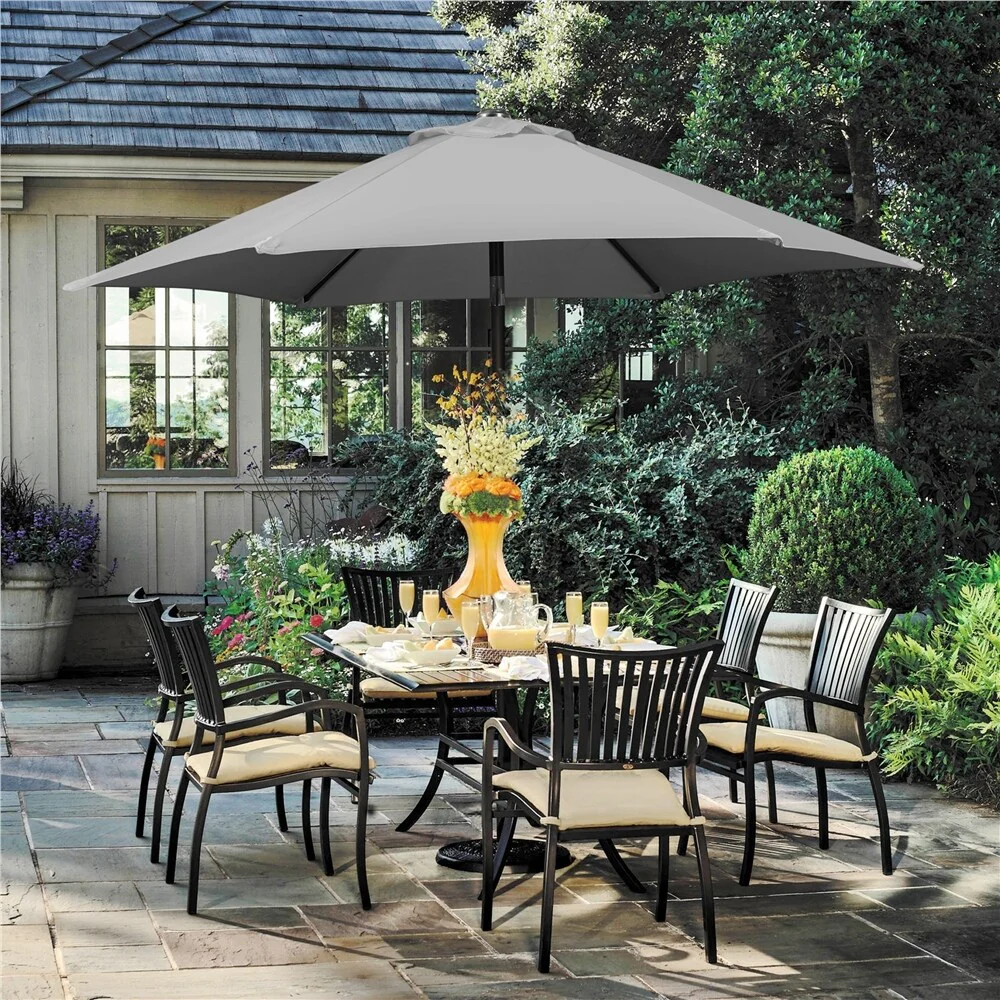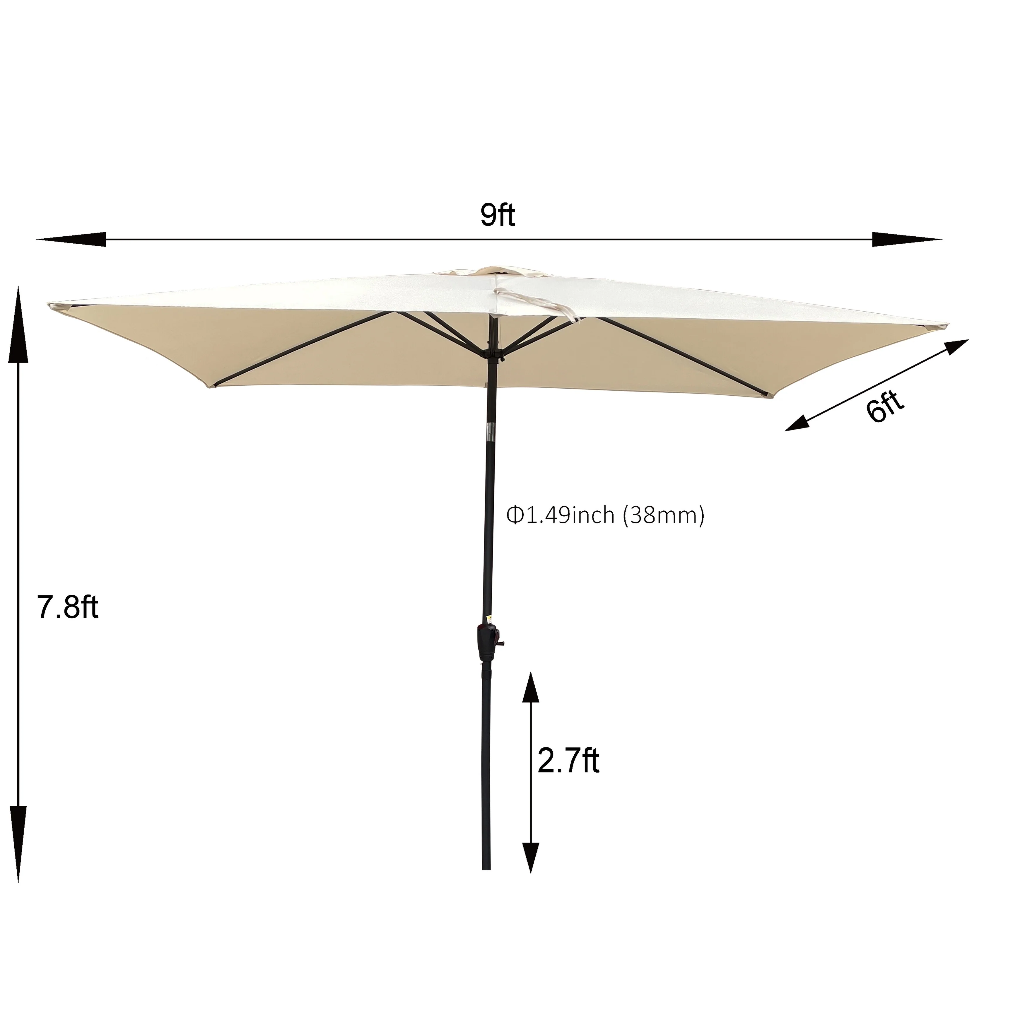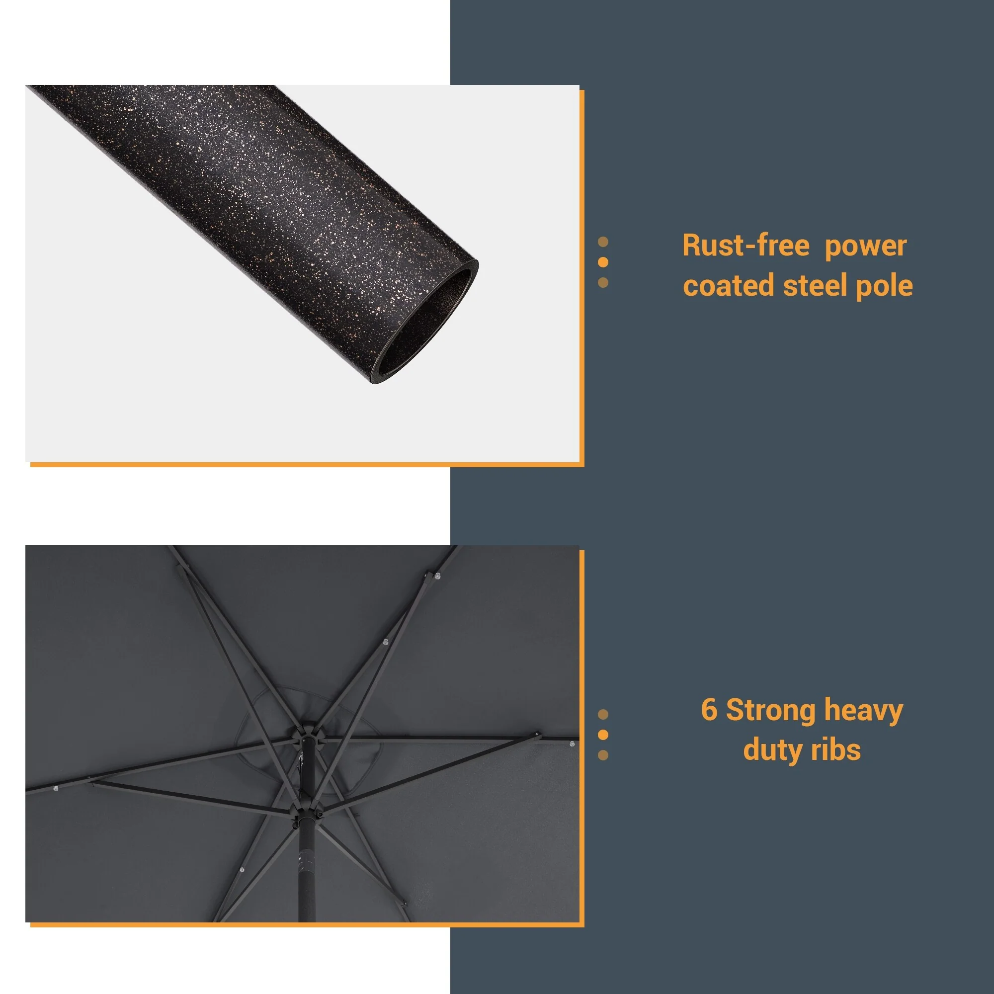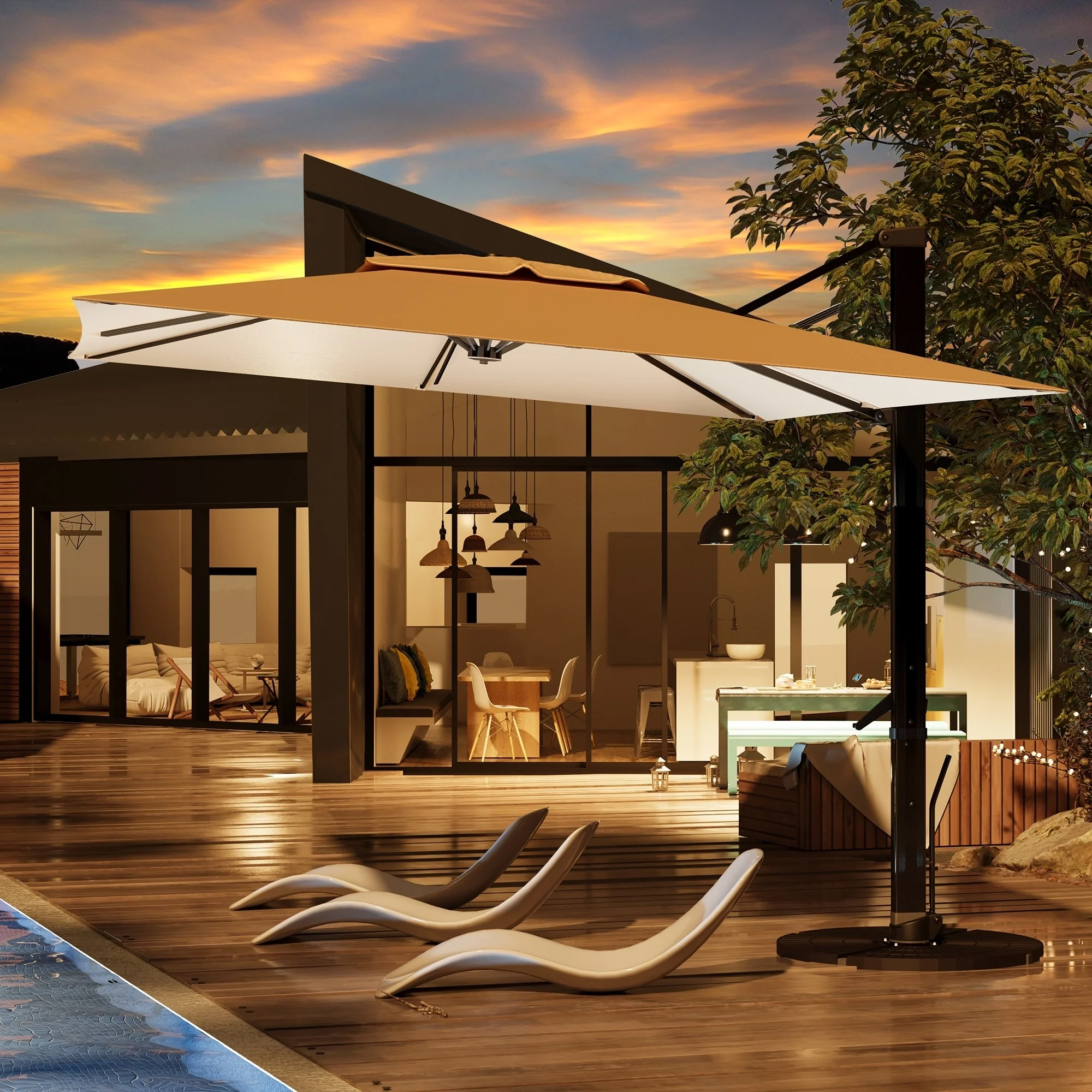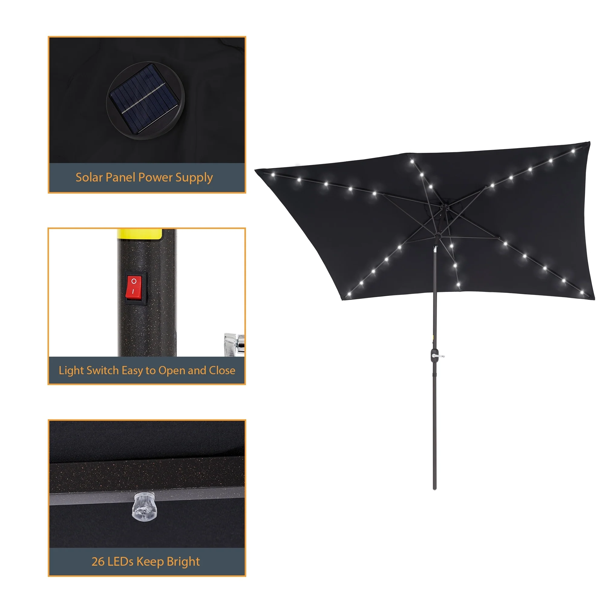 10 x 6.5t Rectangular Patio Solar LED Lighted Outdoor Market Umbrellas with Crank and Push Button Tilt