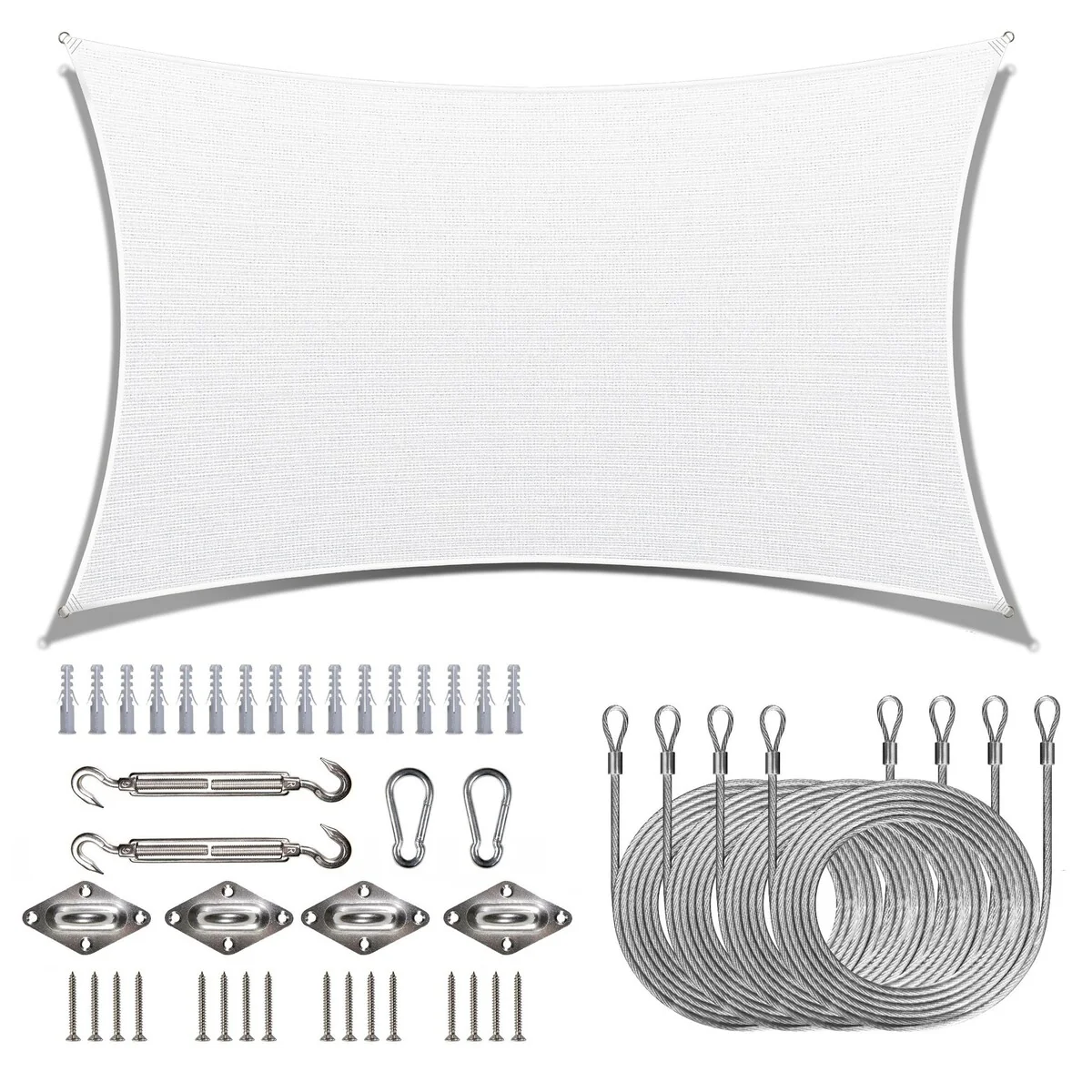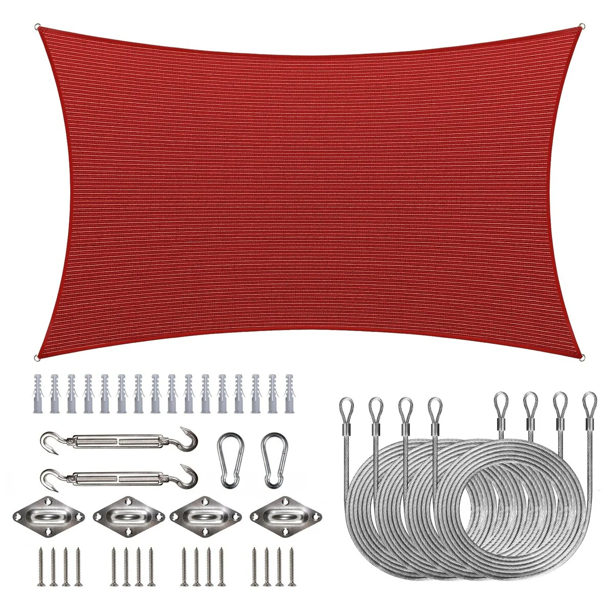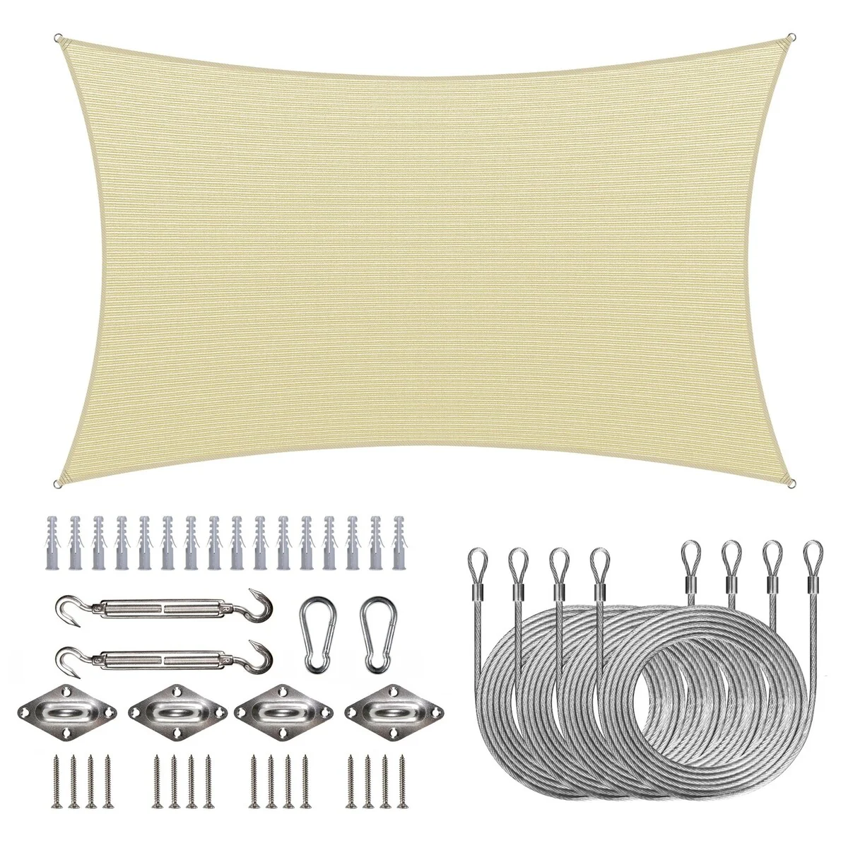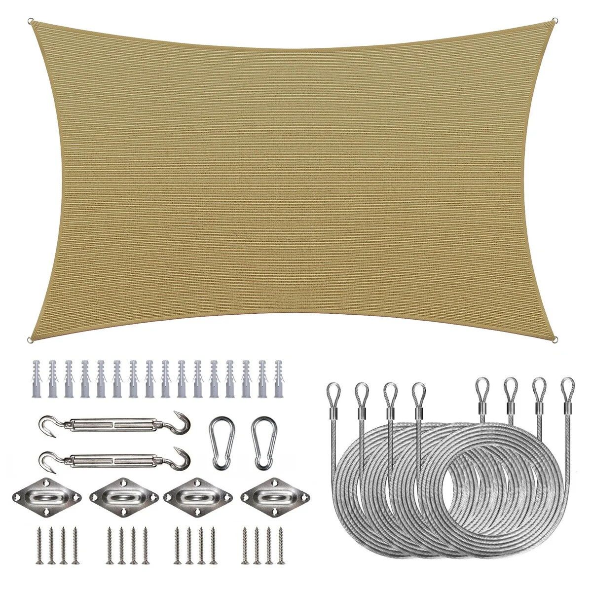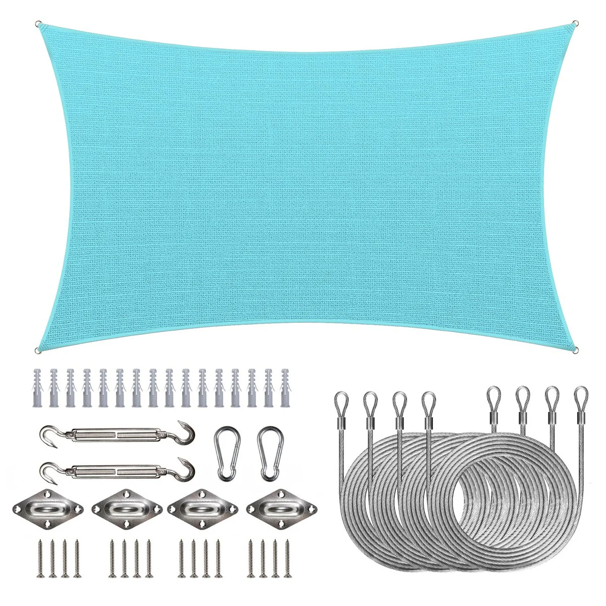 ColourTree Rectangle Sun Shade Sail w/Hardware Kit + Cable Ropes HDPE Mesh Fabric Screen Canopy UV Block 190 GSM