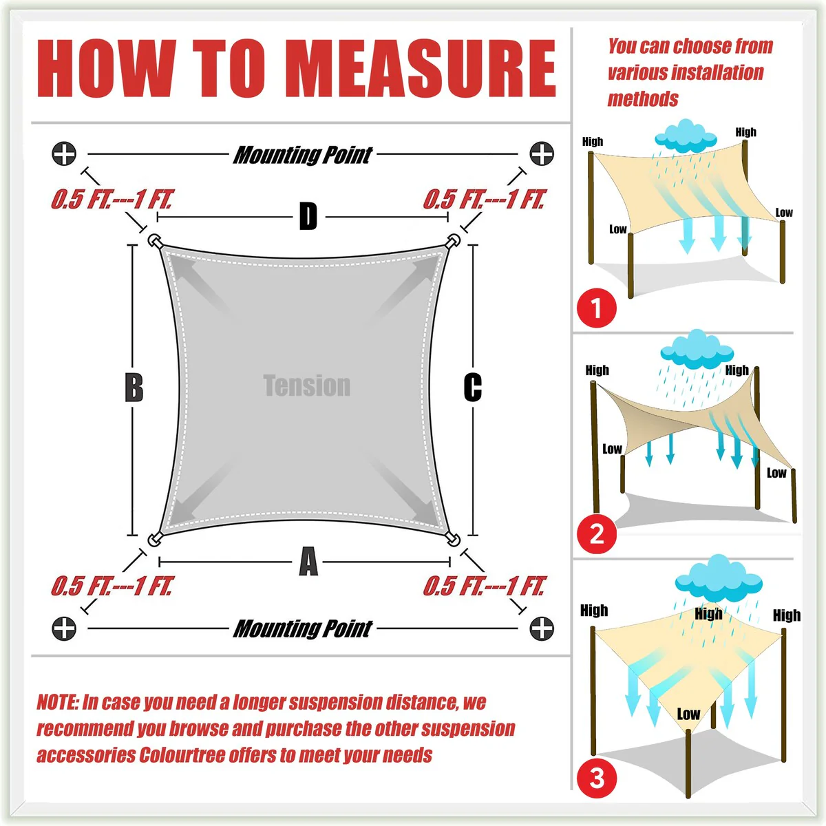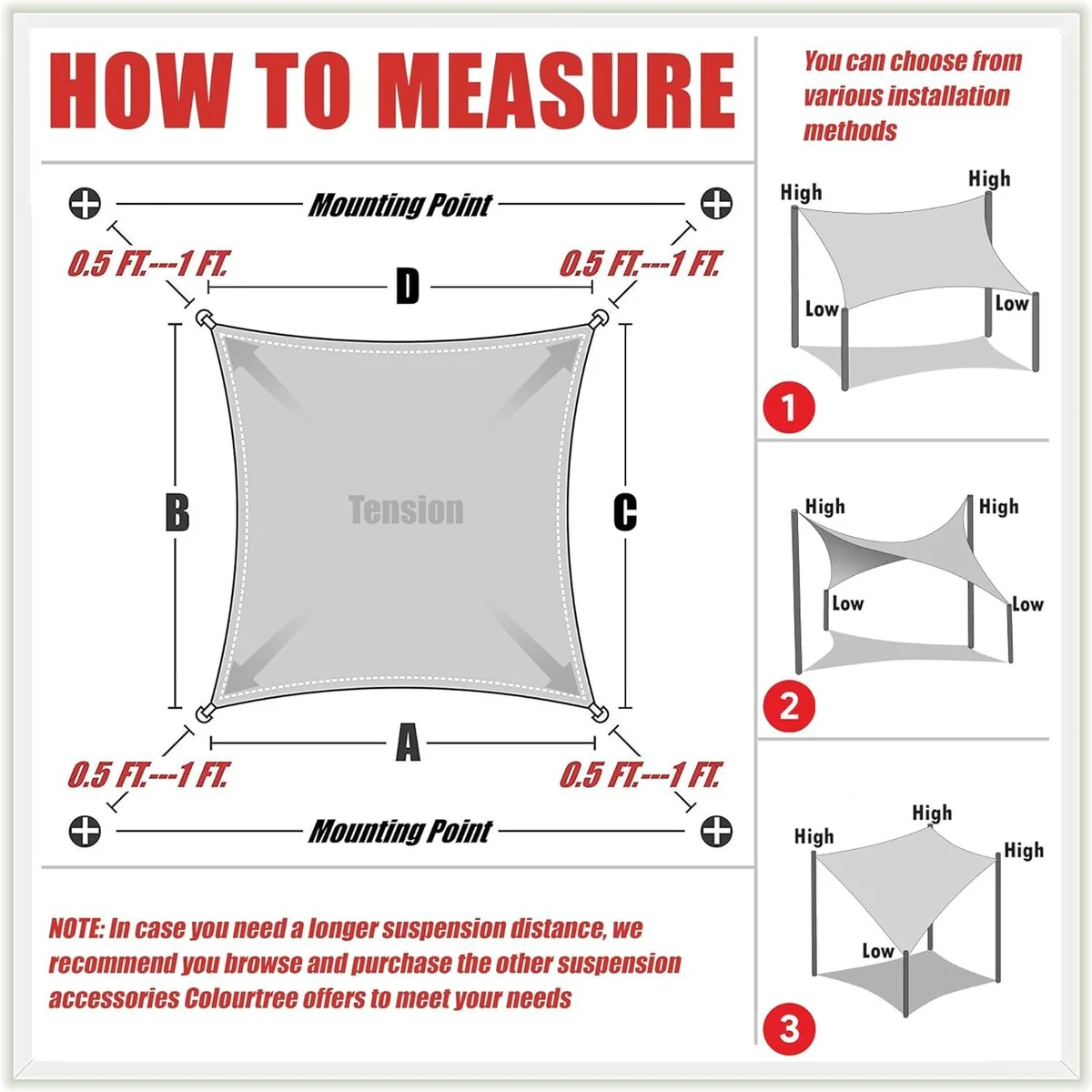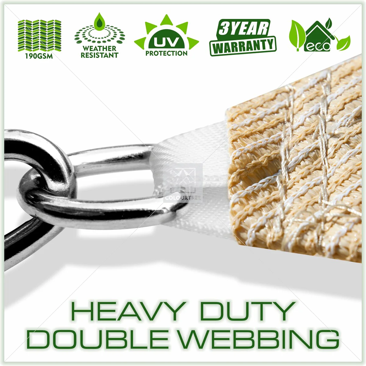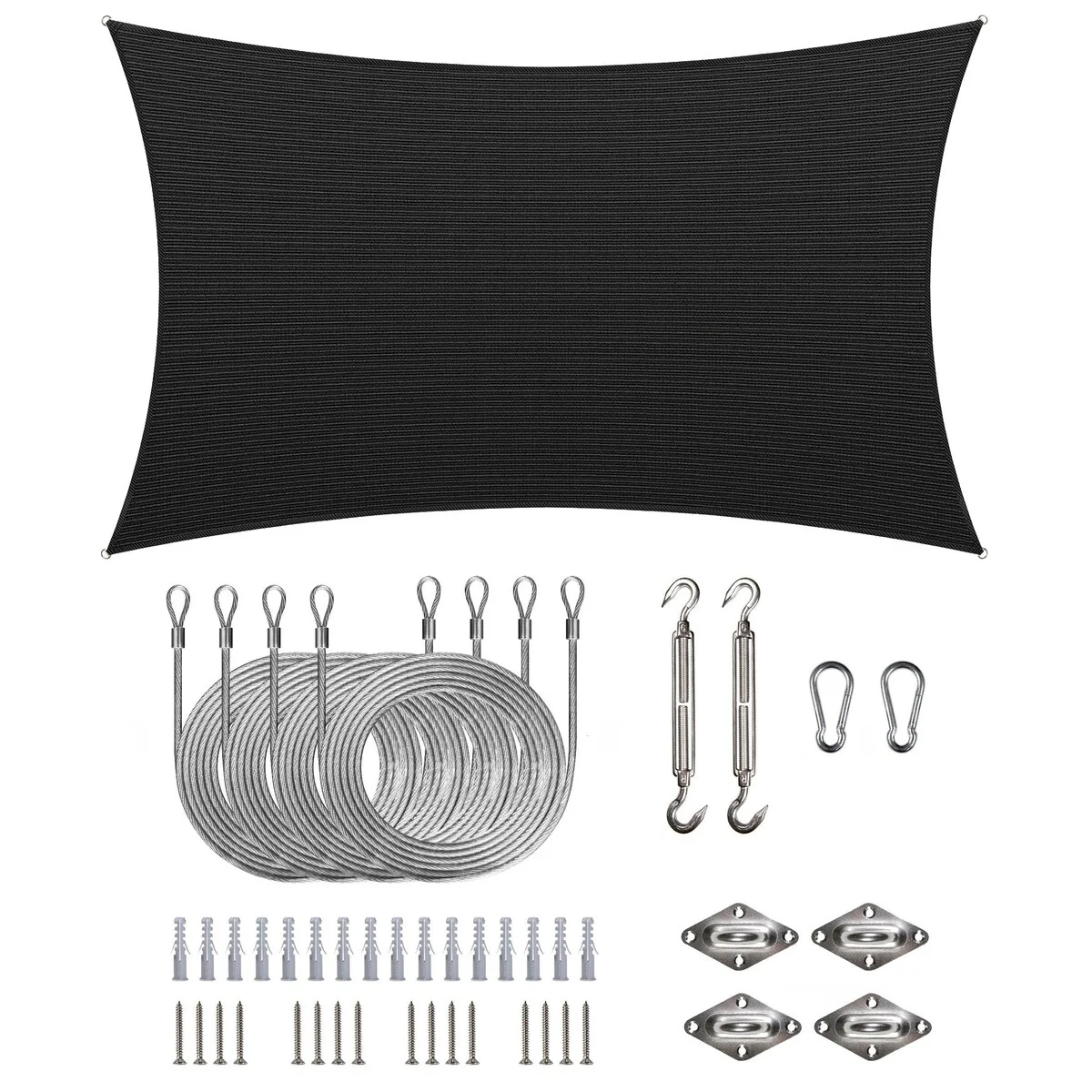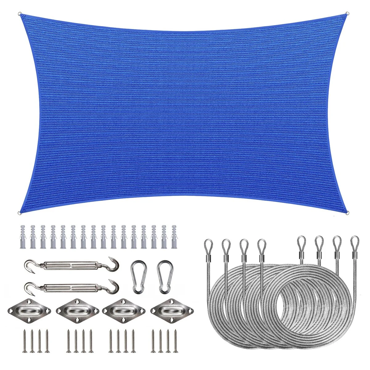ColourTree Rectangle Sun Shade Sail w/Hardware Kit + Cable Ropes HDPE Mesh Fabric Screen Canopy UV Block 190 GSM