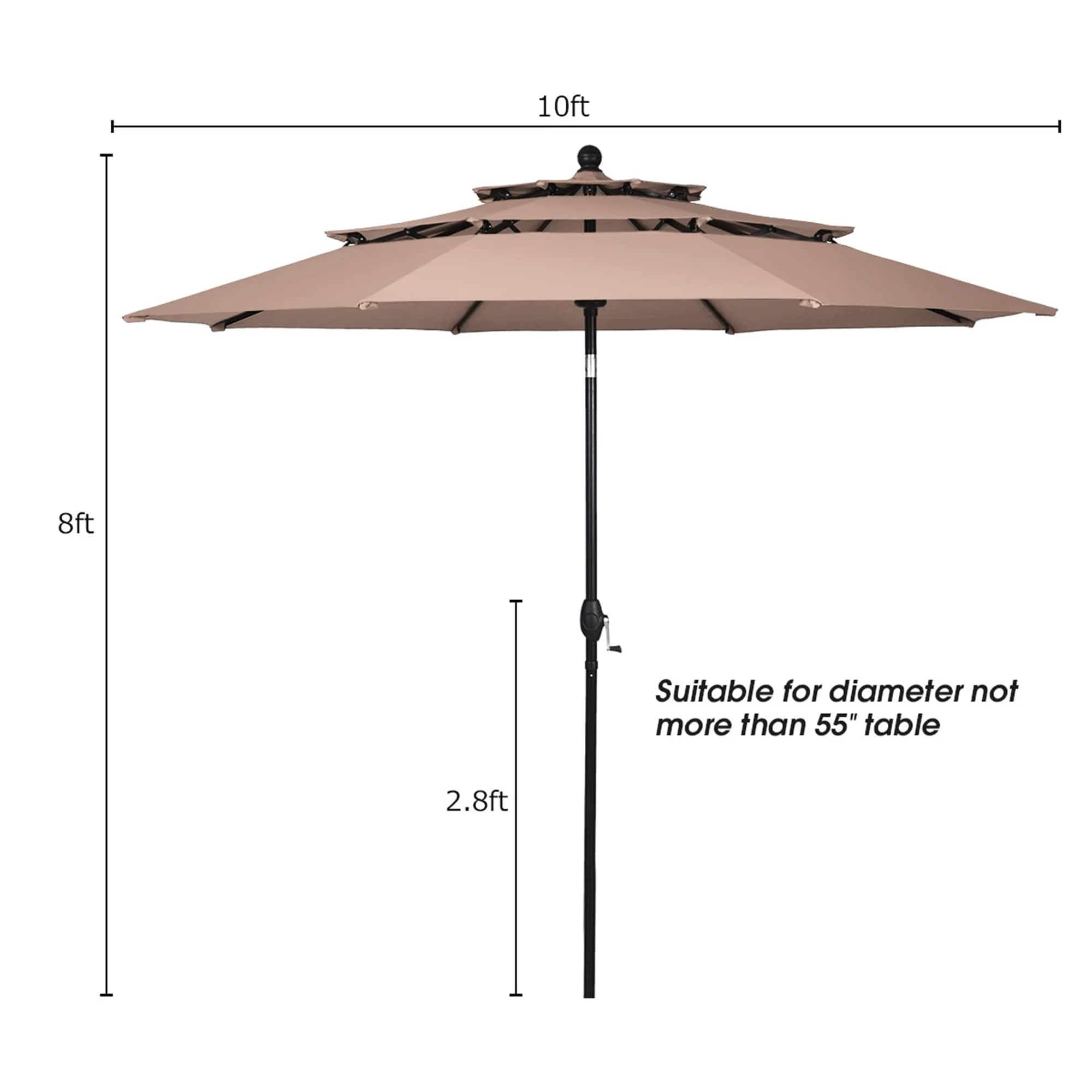 Autlaycil 10FT 3-tier Tilting Patio Umbrella 120'' Market Umbrella