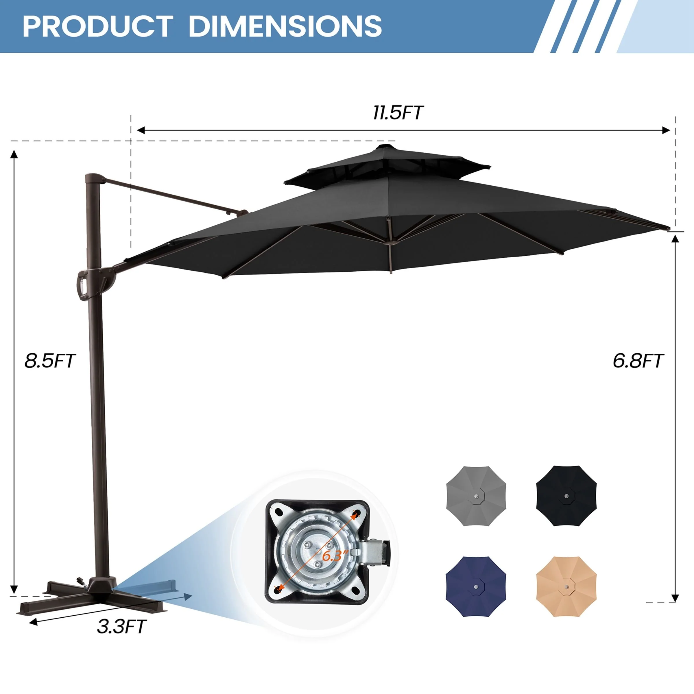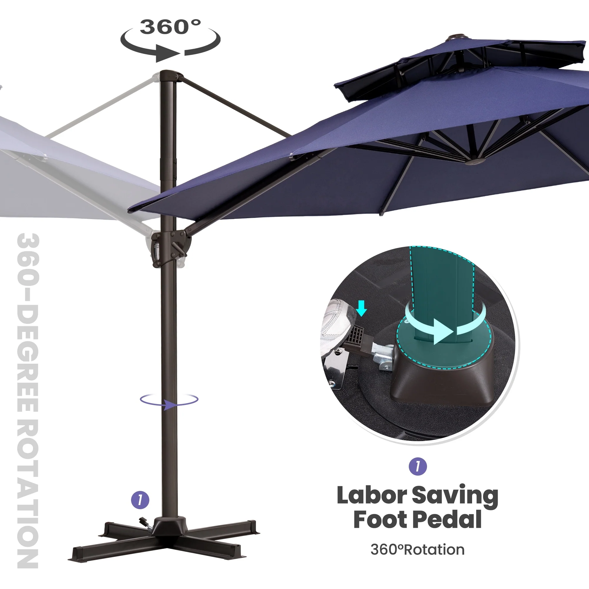PURPLE LEAF 9 x 11.5 ft 360 Degree Rotation Patio Cantilever Umbrella