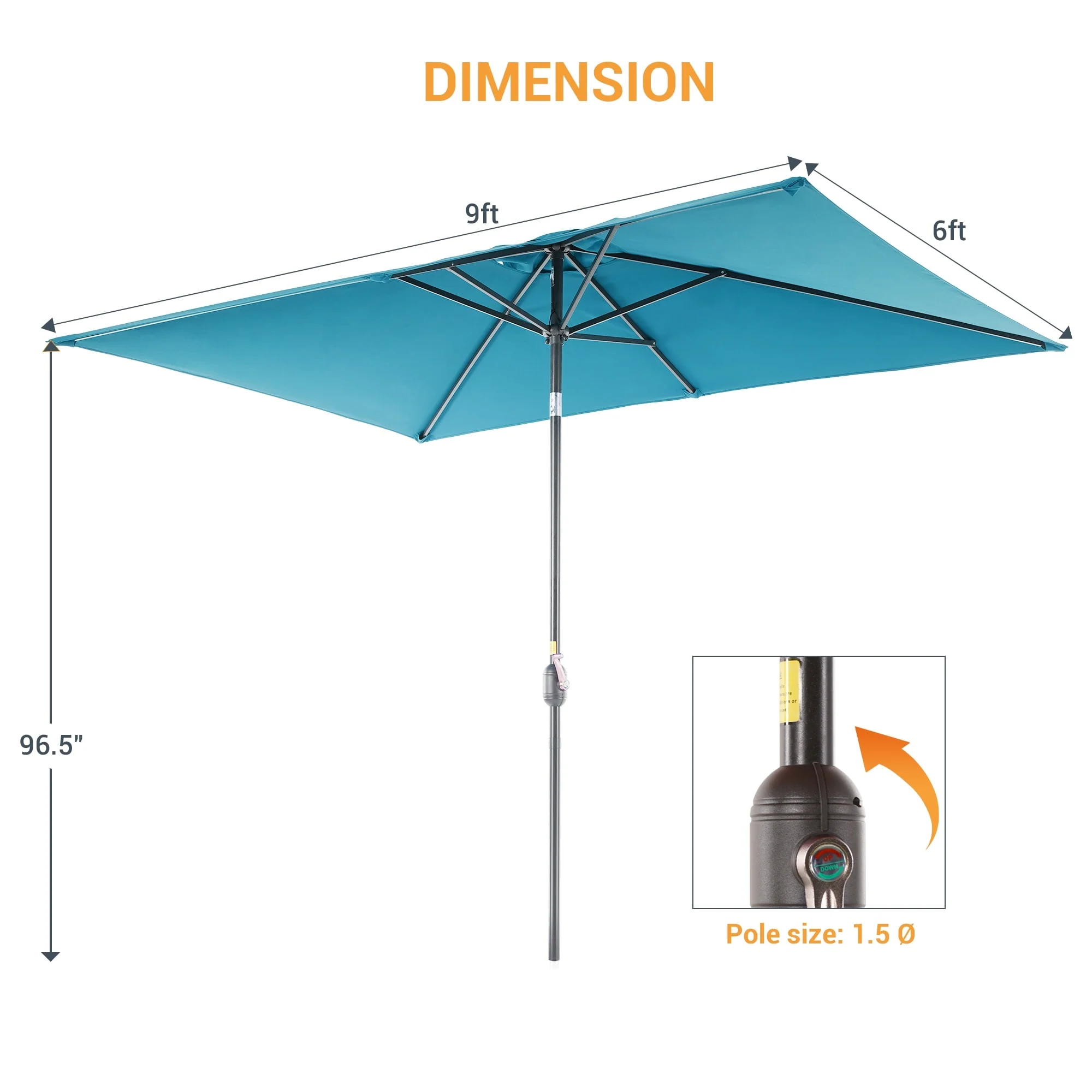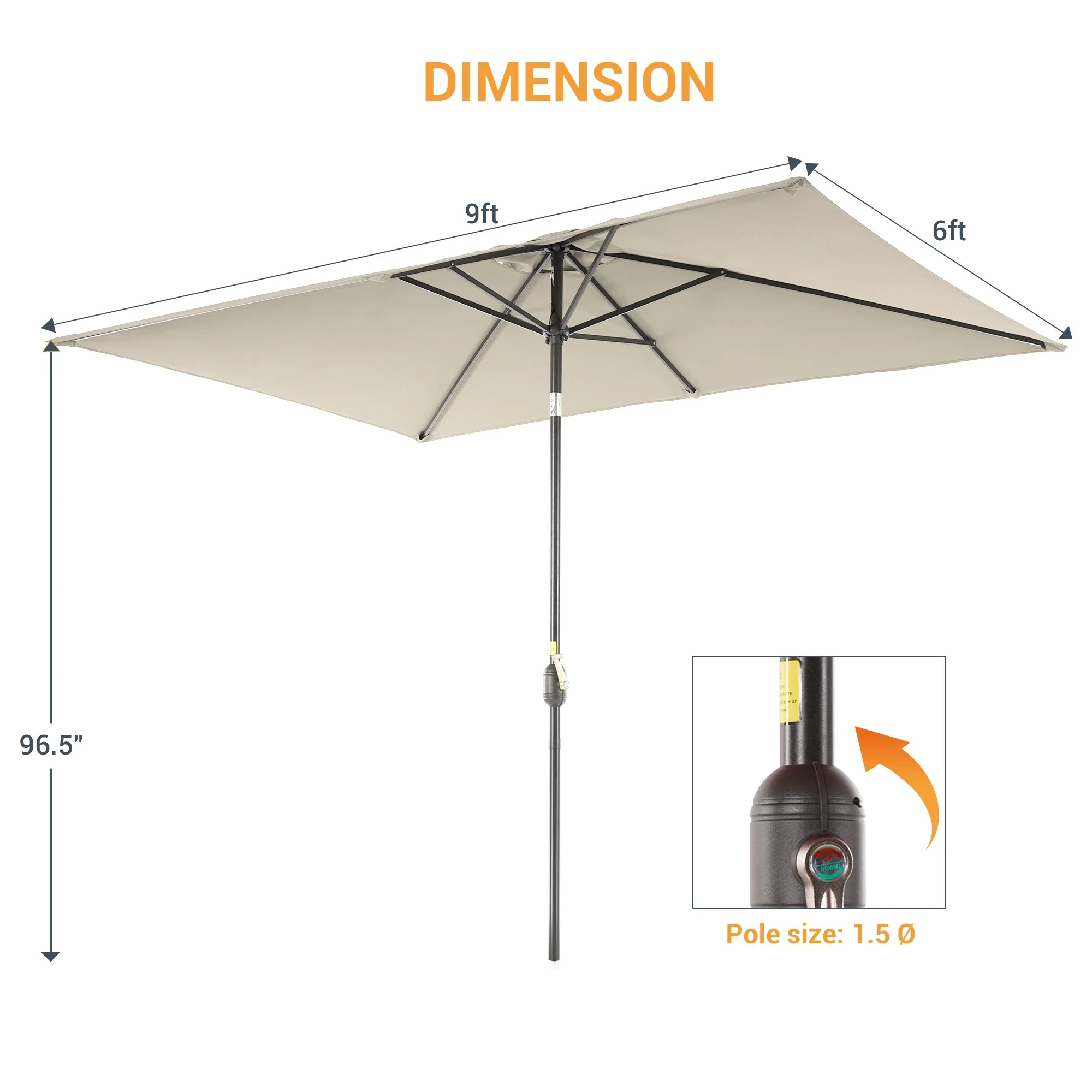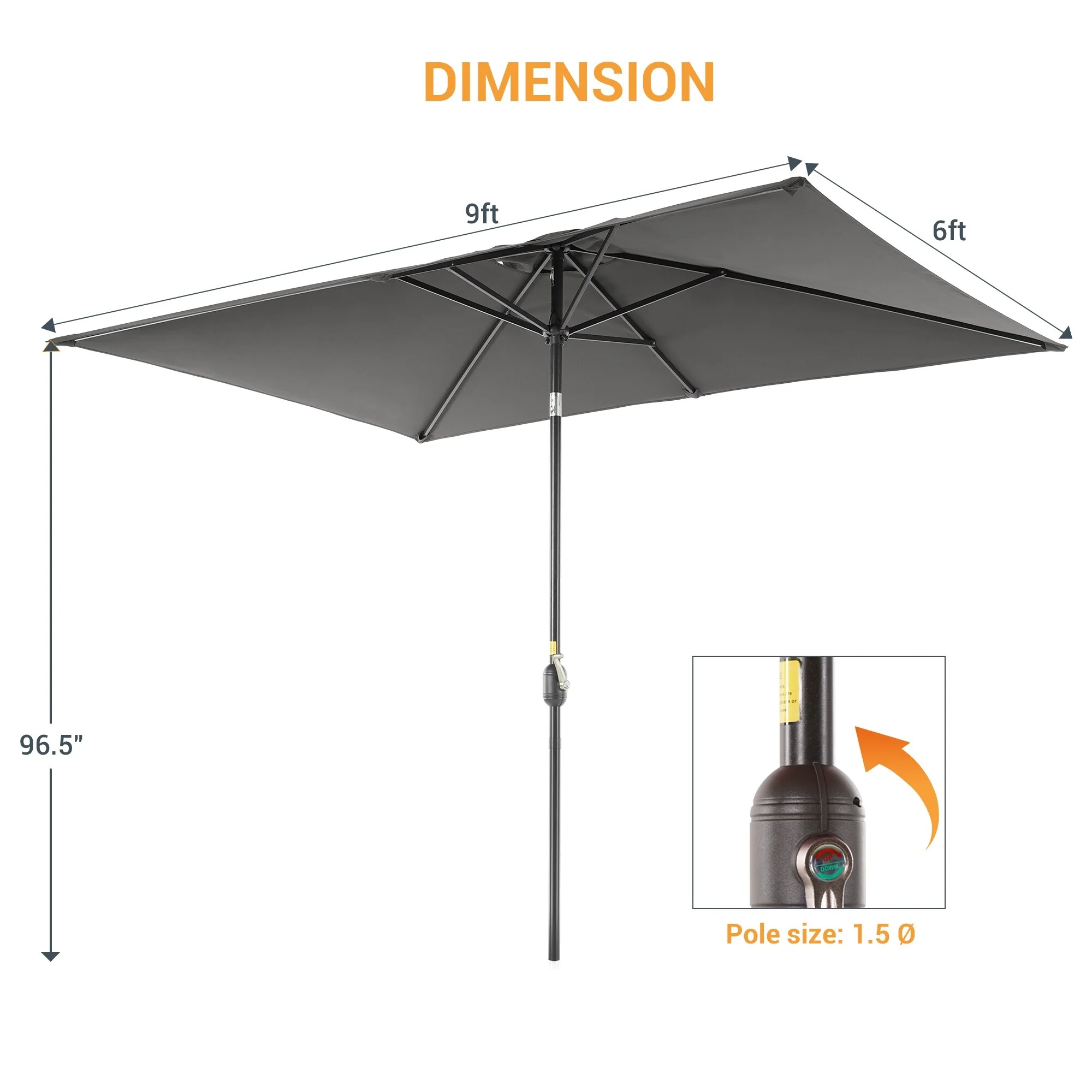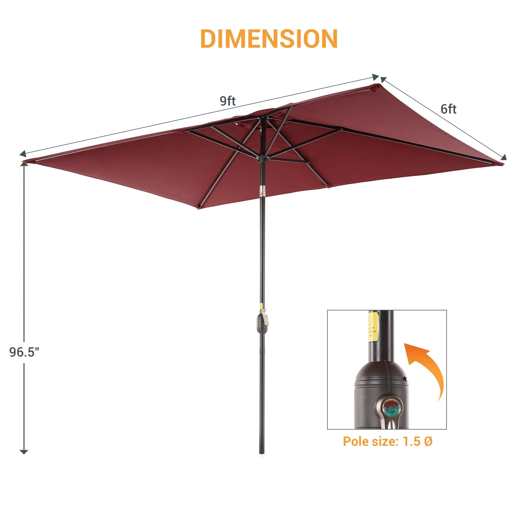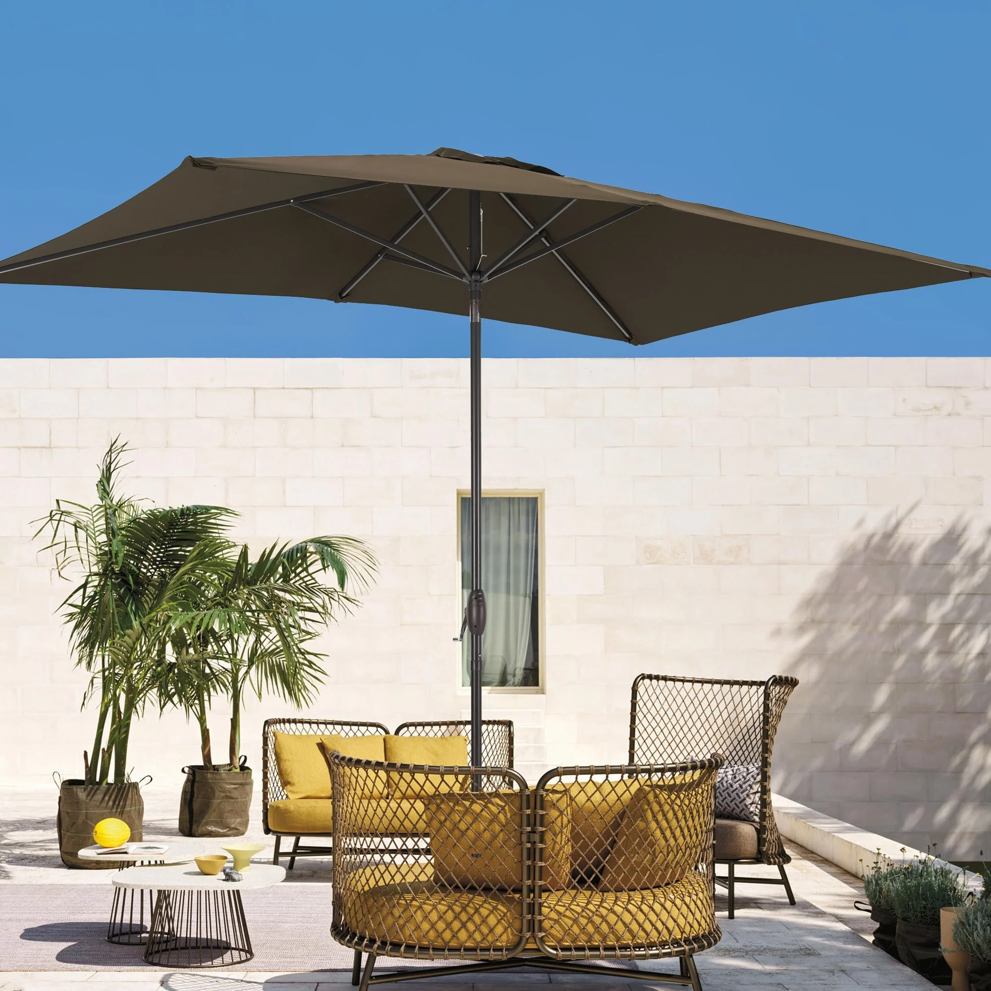 10' x 6' Rectangular Outdoor Patio Umbrella with Crank Opening