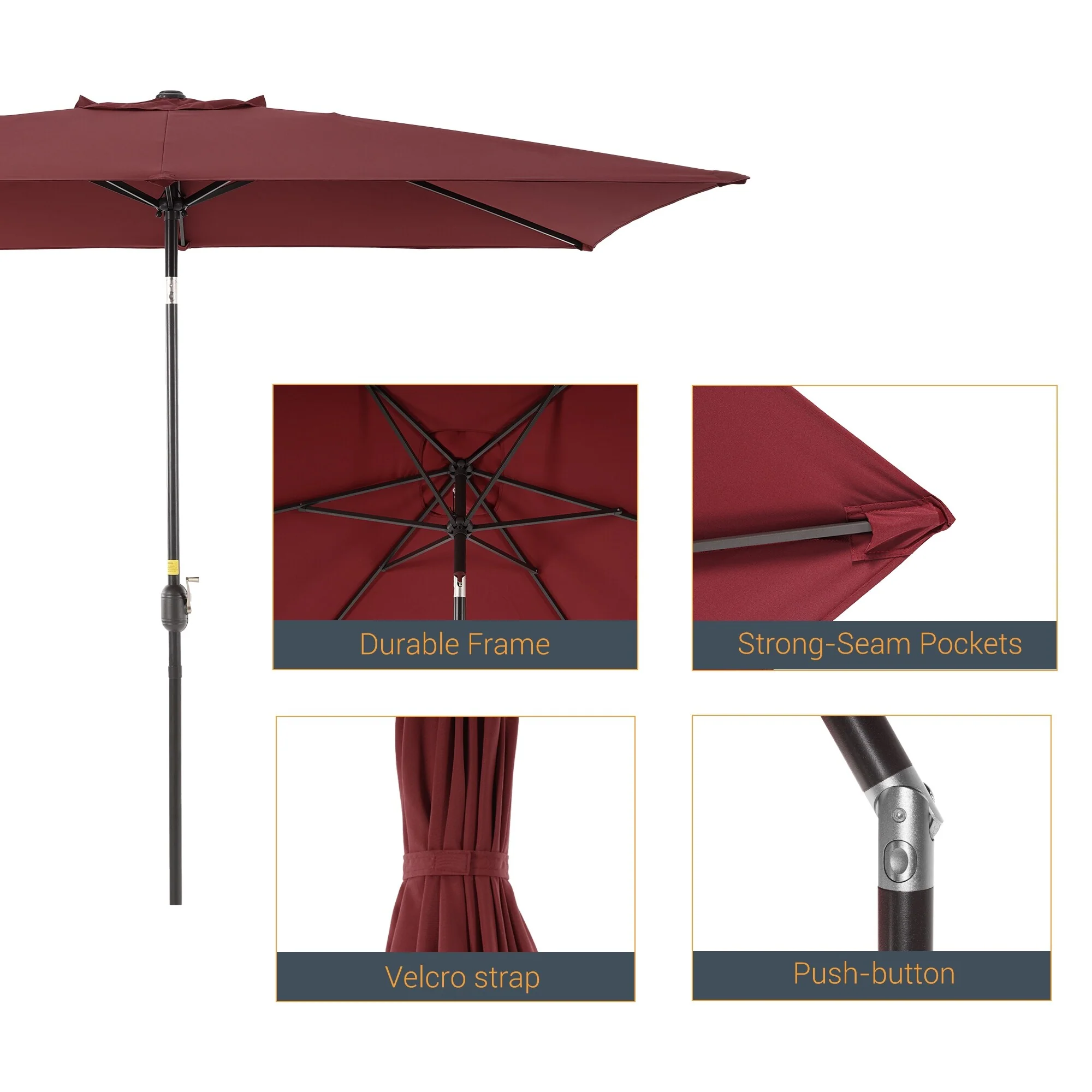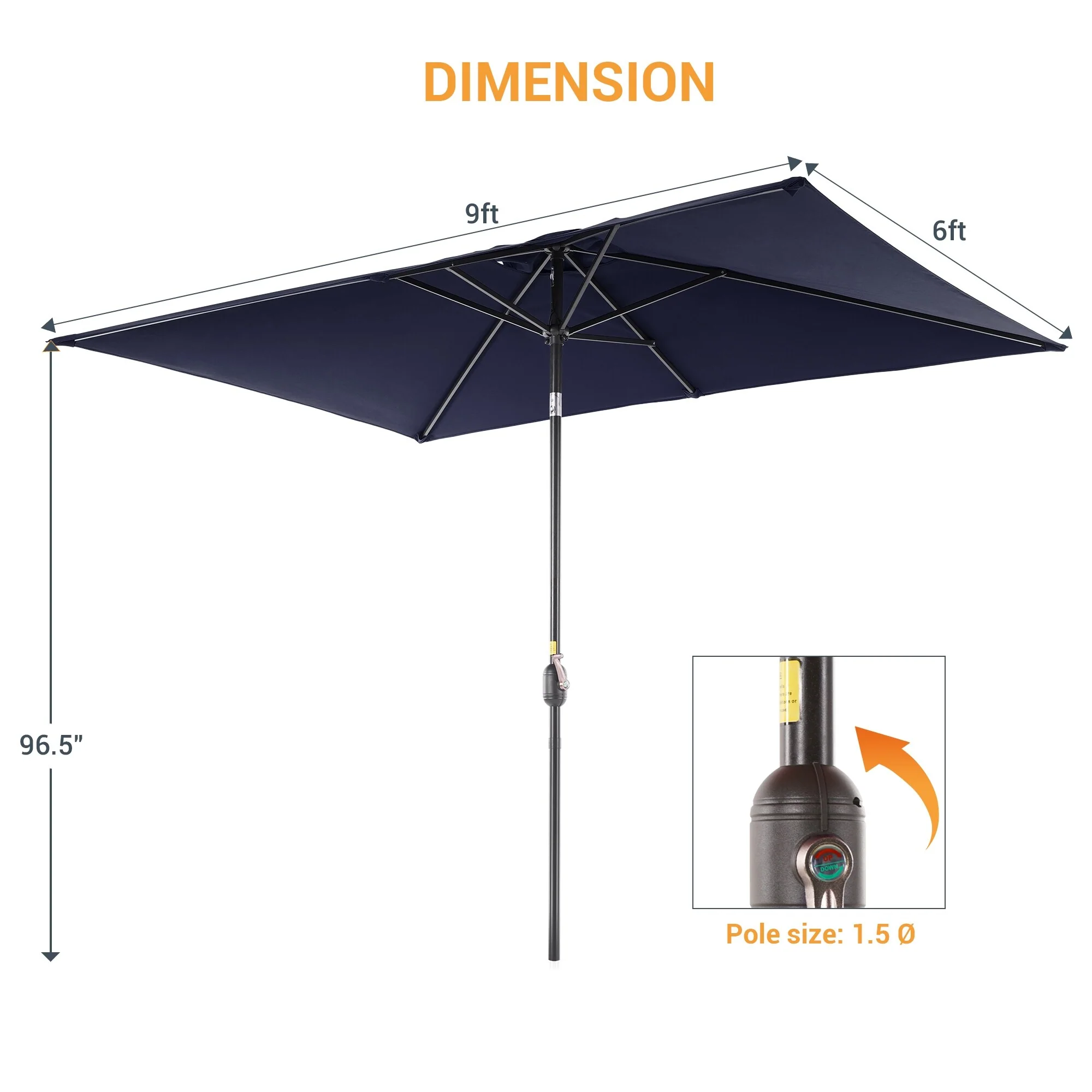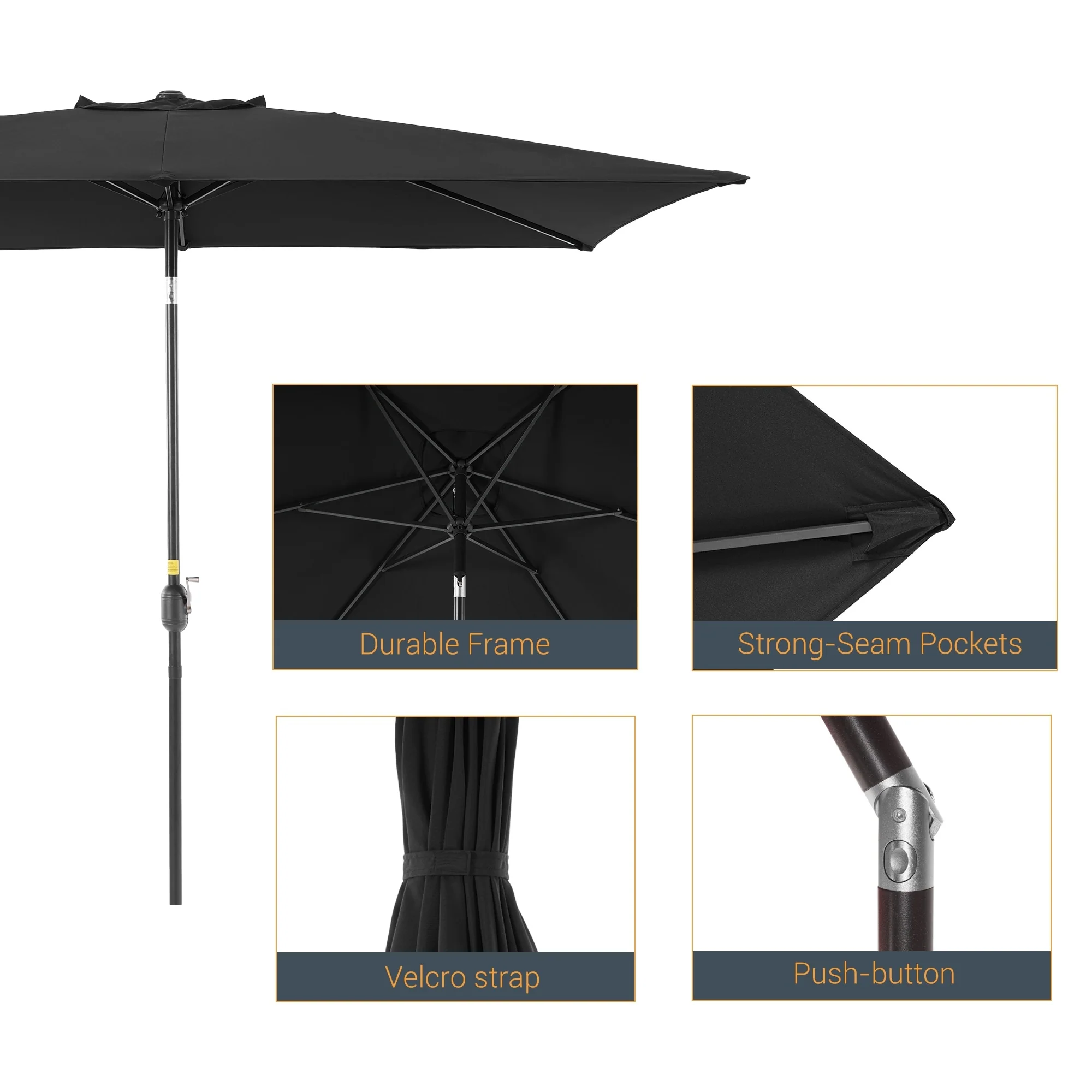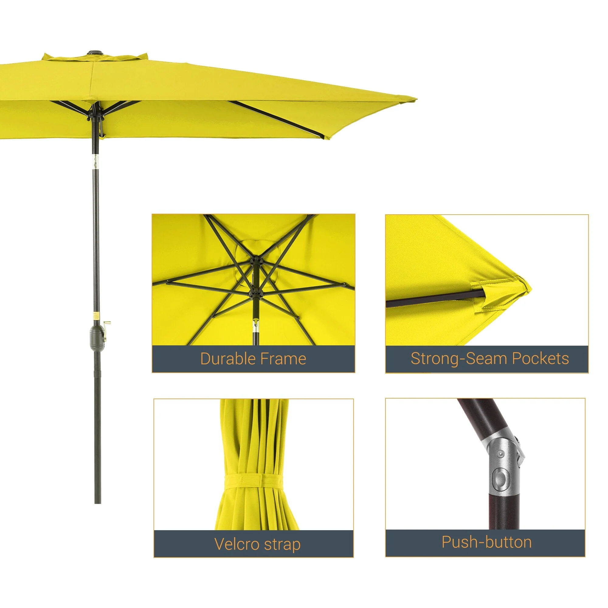 10' x 6' Rectangular Outdoor Patio Umbrella with Crank Opening