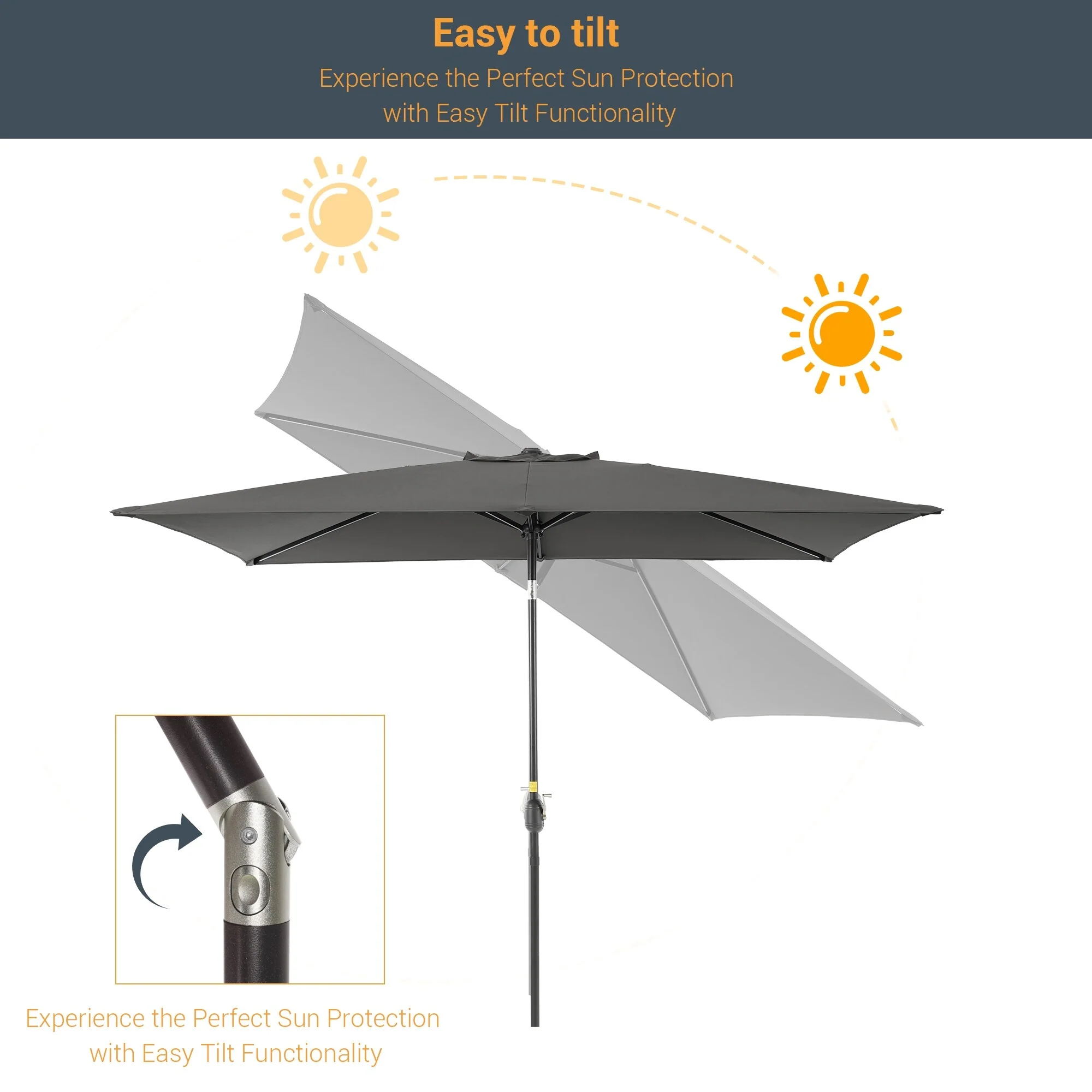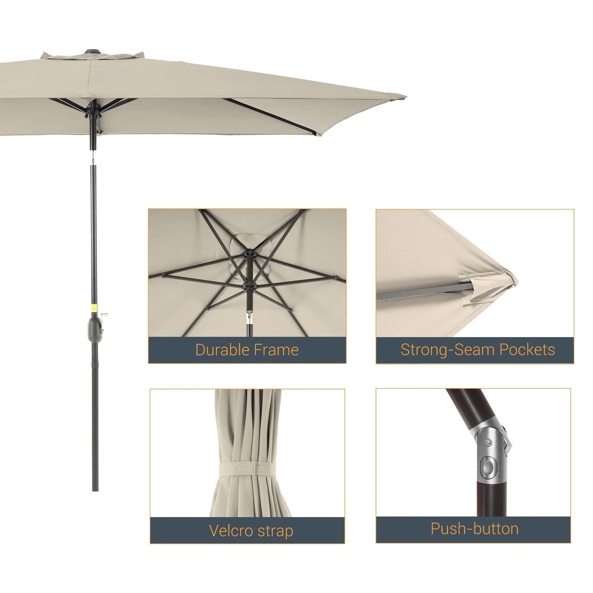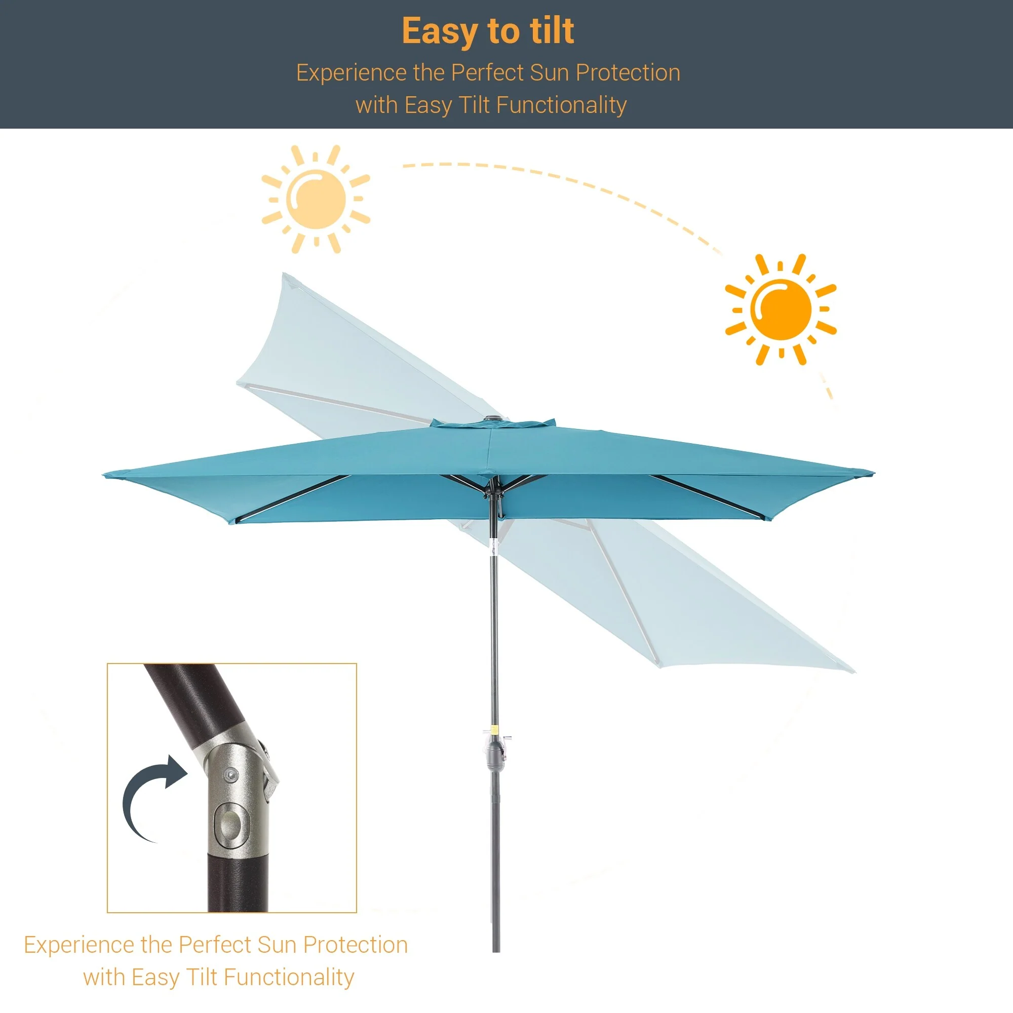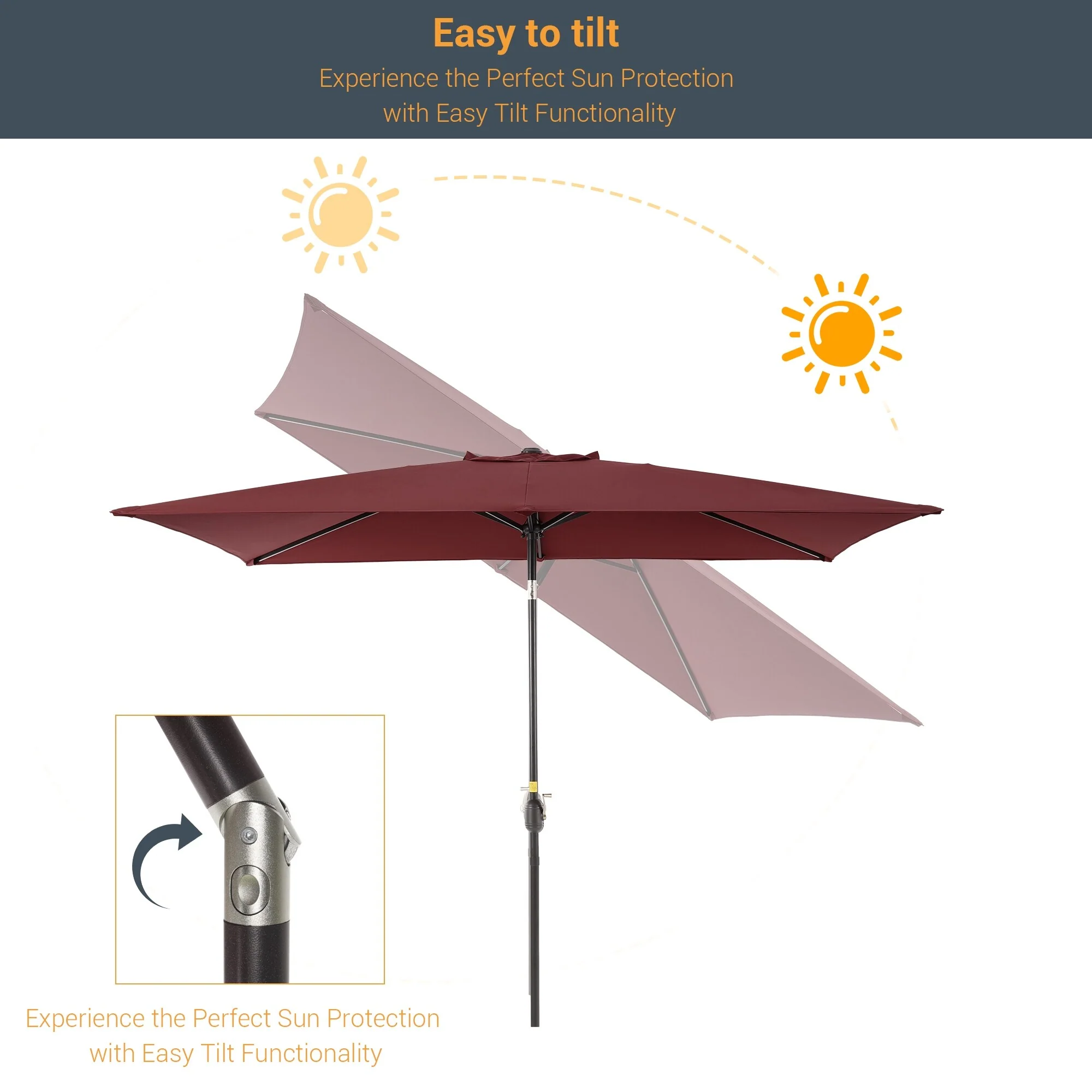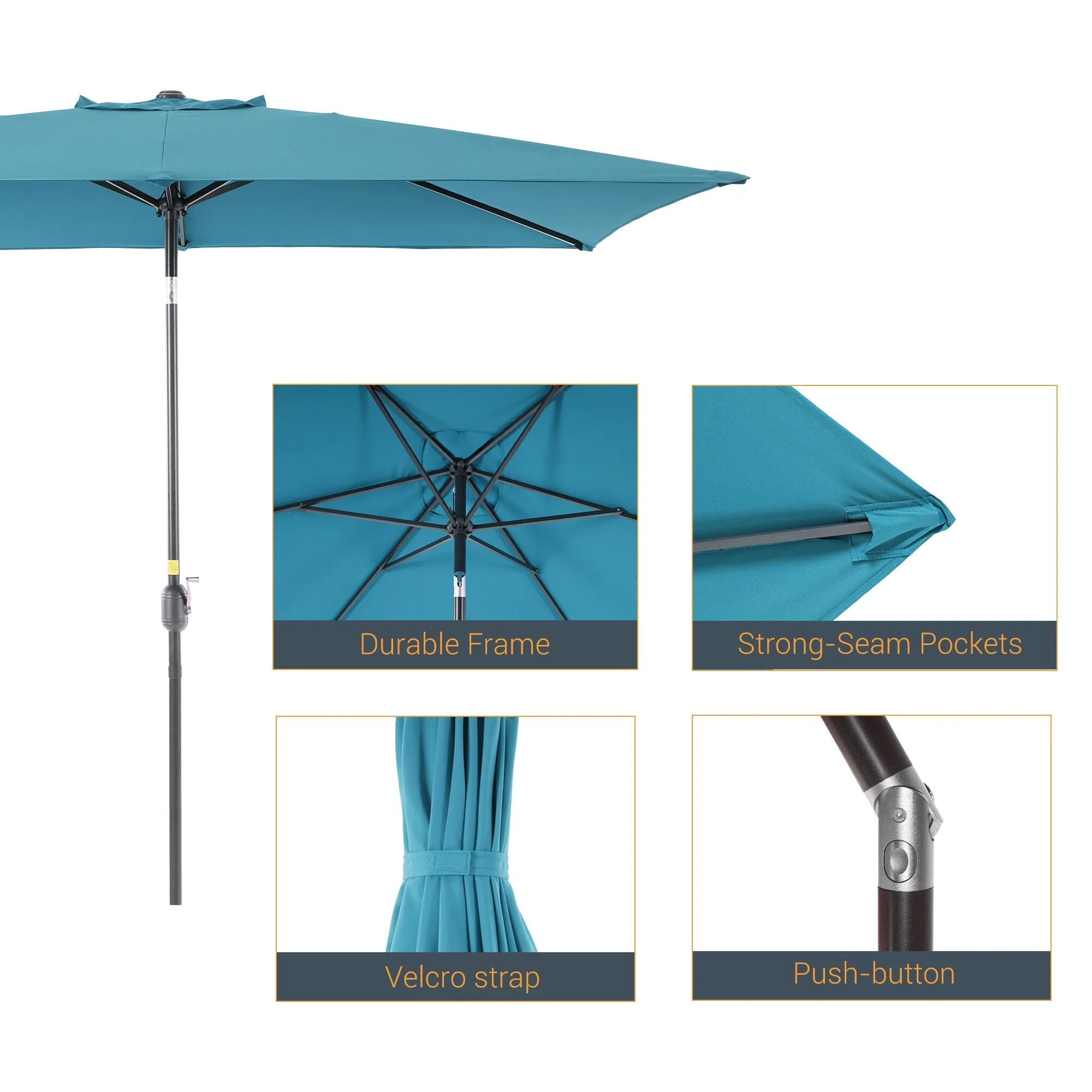 10' x 6' Rectangular Outdoor Patio Umbrella with Crank Opening